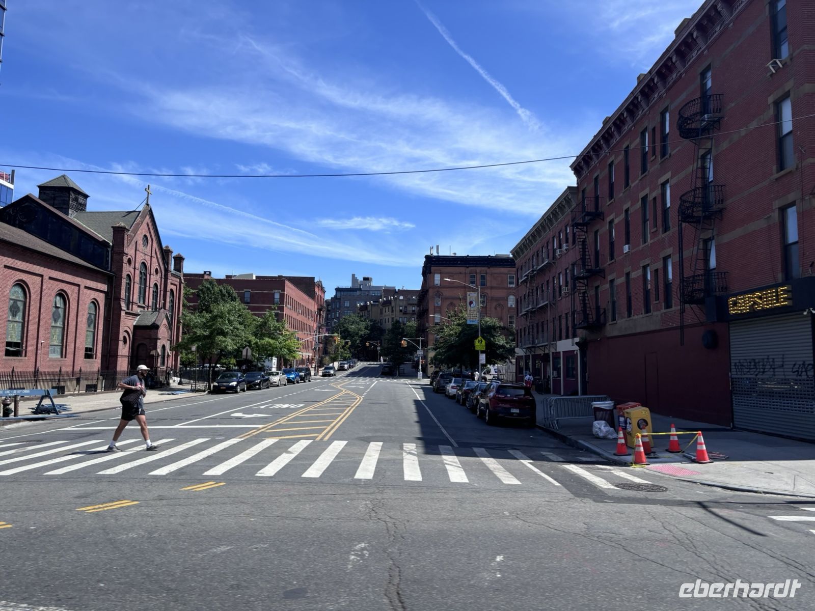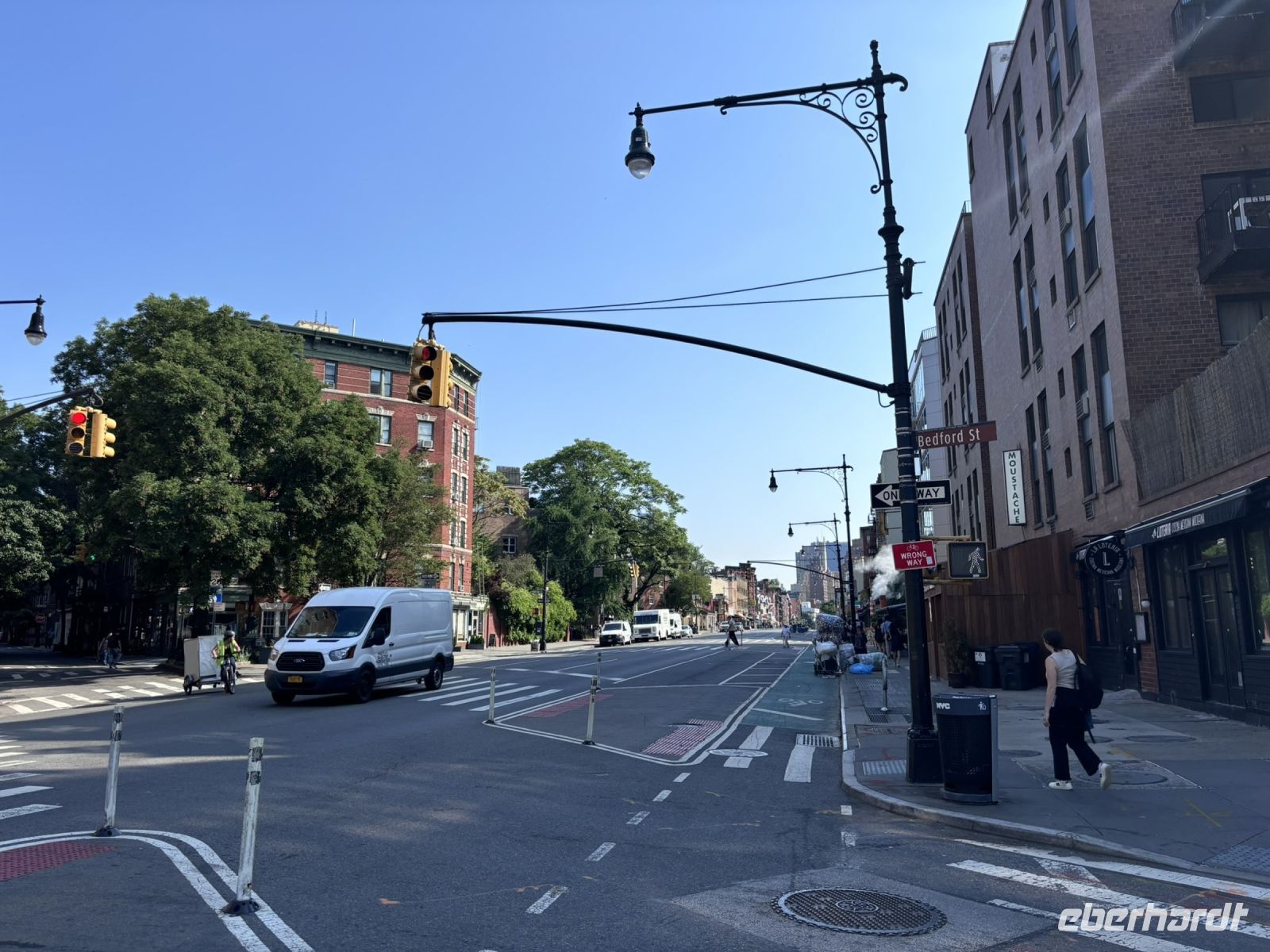 Wir durchquerten das jüdische Viertel in Williamsburg, was bekannt für seine große orthodox-jüdische Gemeinschaft ist. Hier findet man zahlreiche Synagogen, koschere Restaurants und Geschäfte. Auf den Straßen sieht man Menschen in traditioneller Kleidung.