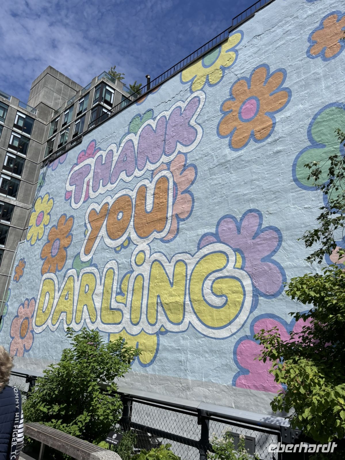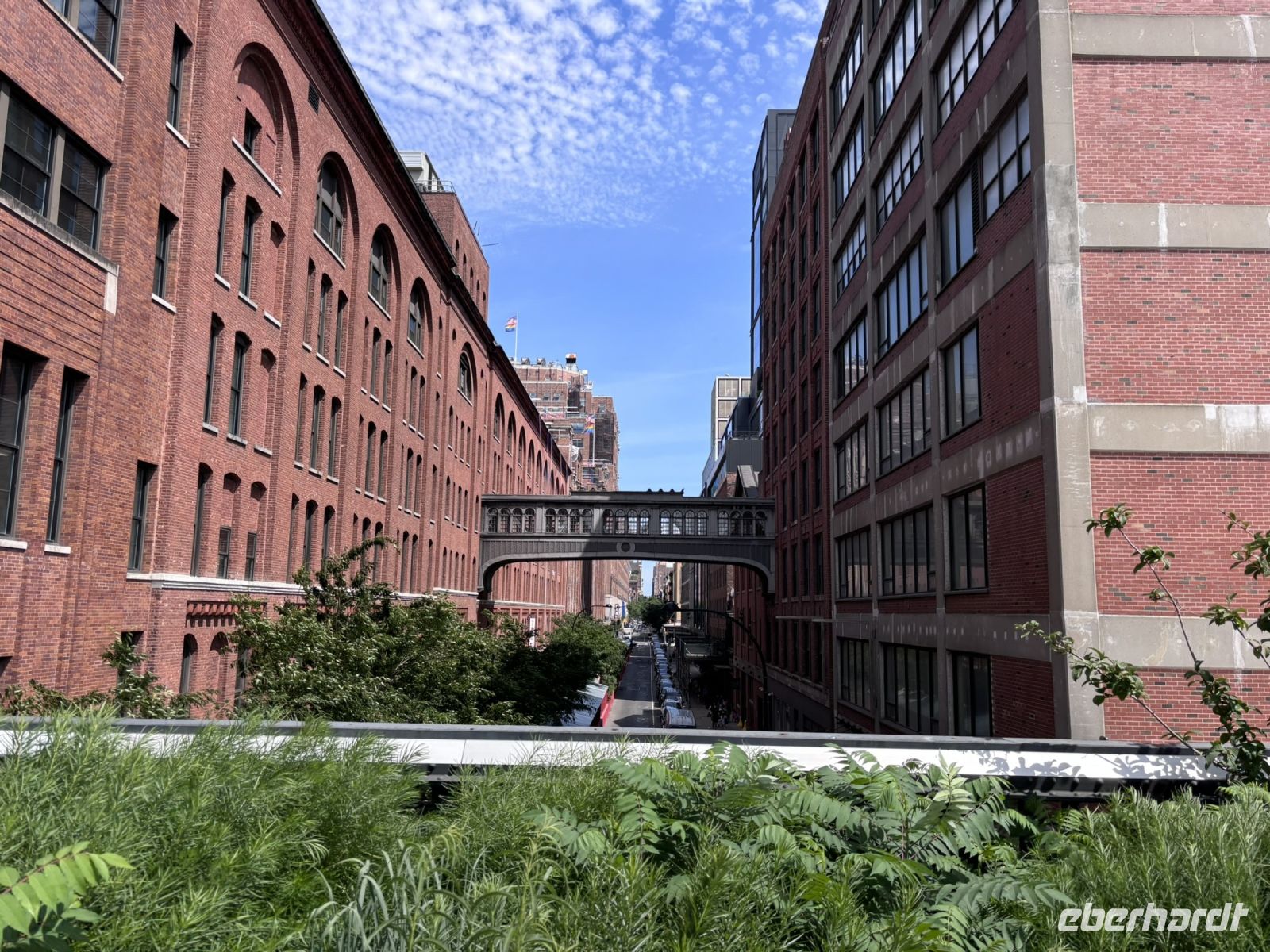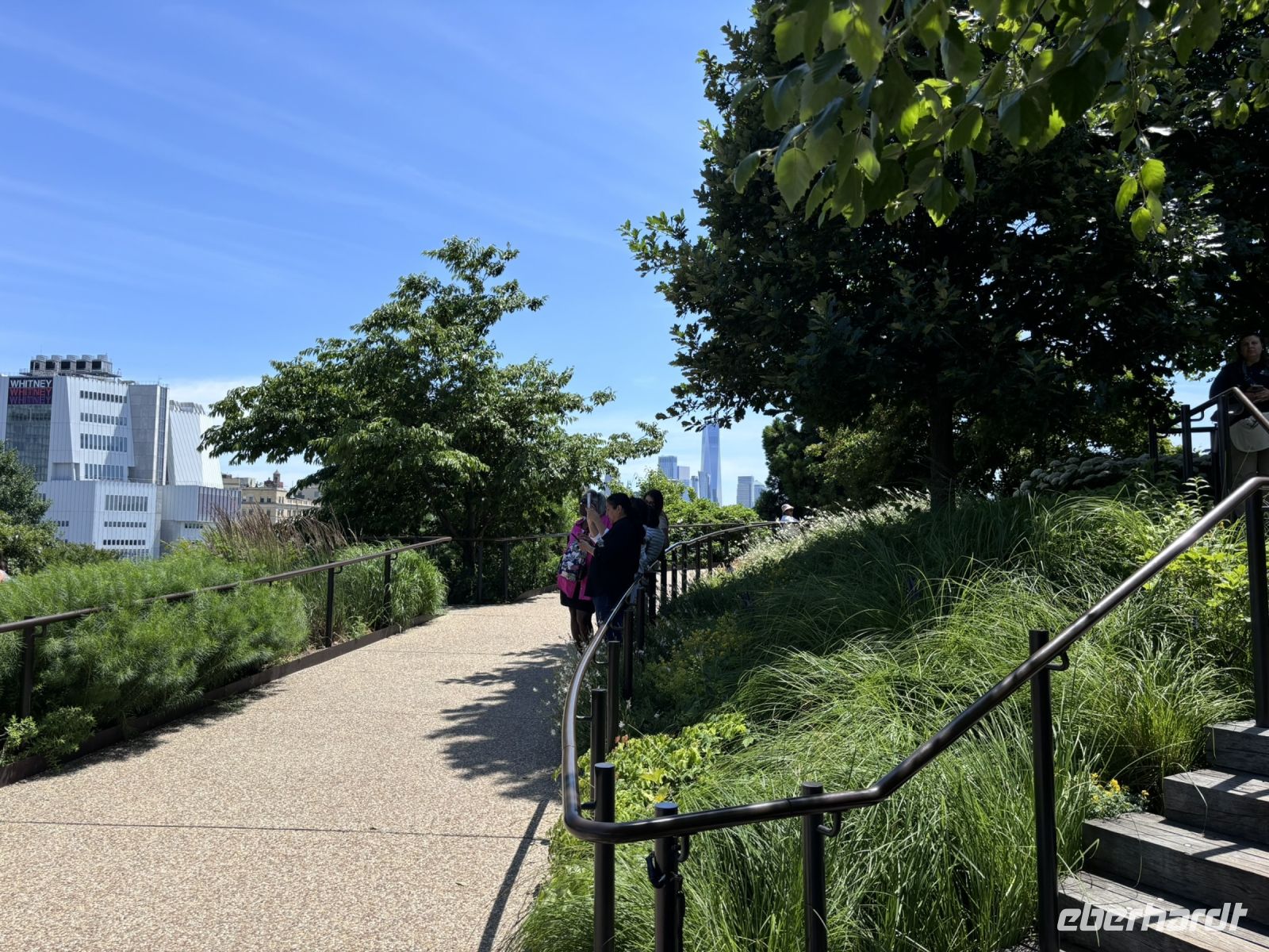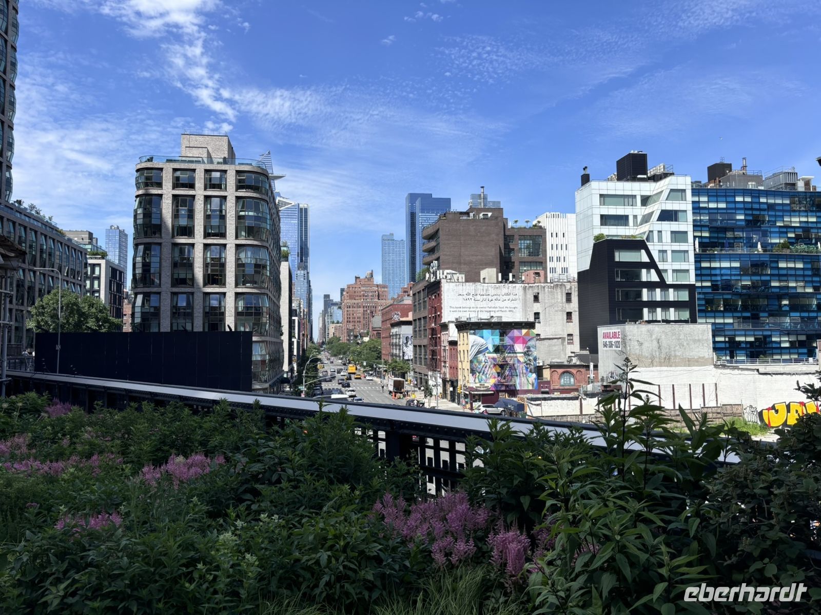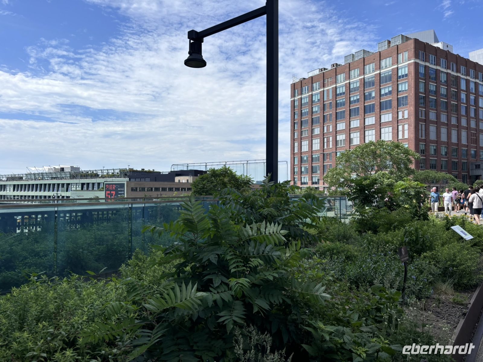 Bei warmen 27° C wagt wir noch einen Spaziergang über die 2,6 km lange Highline. Die alte Güterzugstrecke wurde im Jahr 2011 zu einer schönen Parkanlage in 7,5 m Höhe über der Straße angelegt. Hier kann man entspannen, die Mittagspause verbringen, etwas essen und trinken und die Stadt in Ruhe aus einer anderen Perspektive genießen.