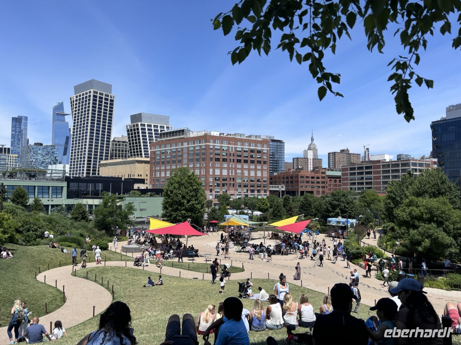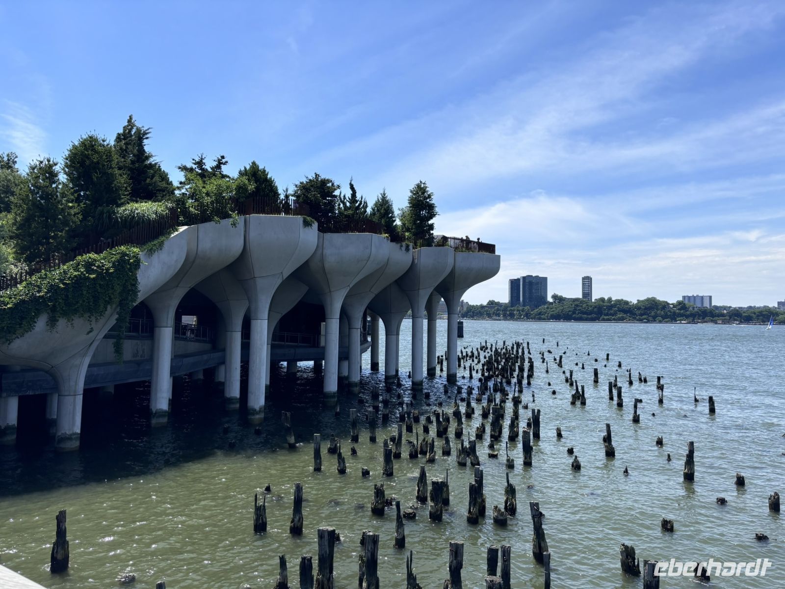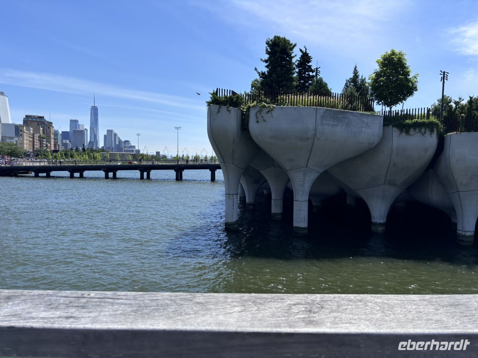 Wir beschlossen, den Nachmittag in Chelsea ausklingen zu lassen. Der Bus ließ uns am berühmten Chelsea Market raus. Ein schönes altes Fabrikgebäude, wo der Oreo Keks erfunden wurde und nun mit vielen kleinen Geschäften und Restaurants bestückt ist. Man kann dort sogar eine originale Berliner Currywurst essen, was zwei meiner Gäste auch taten. Zum zweiten Mal. Und sie kommen aus Berlin. Nach der Mittagspause überquerten wir die Straße und machten einen kleinen Rundgang auf Little Island, einem Inselpark im Hudson River mit Liegewiesen und Entspannungsmöglichkeiten - eine kleine Erholungszone für New Yorker und Besucher.
