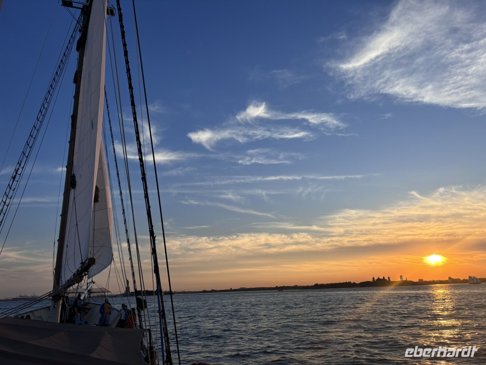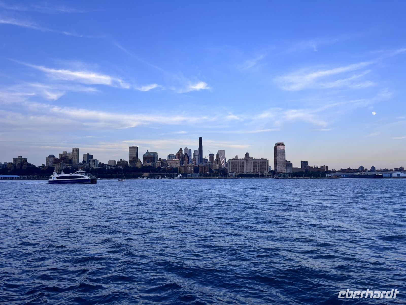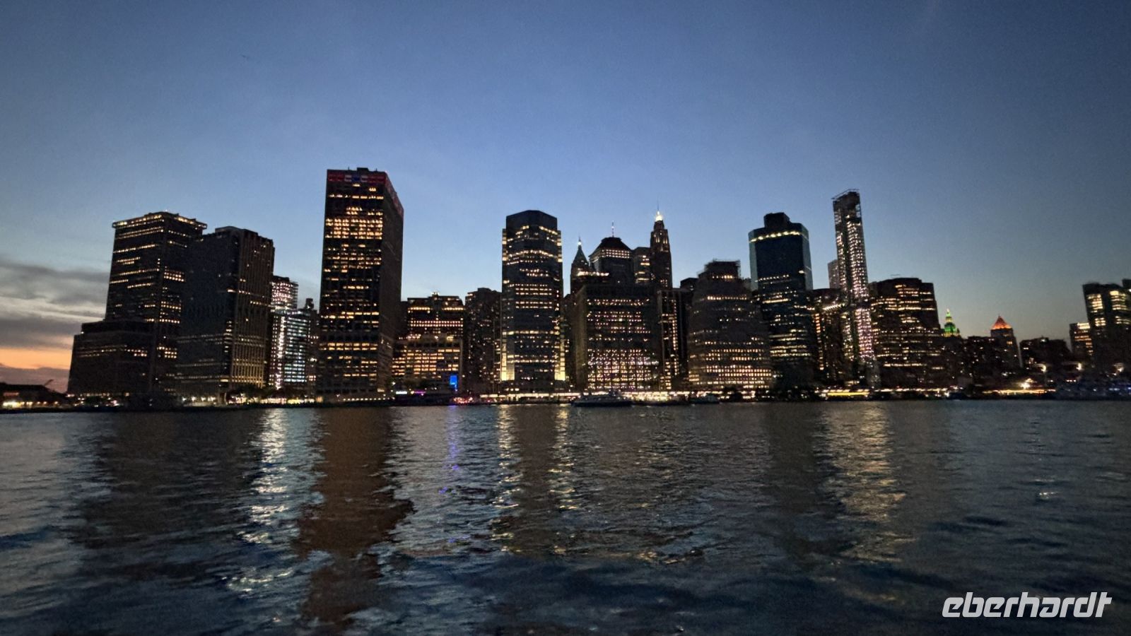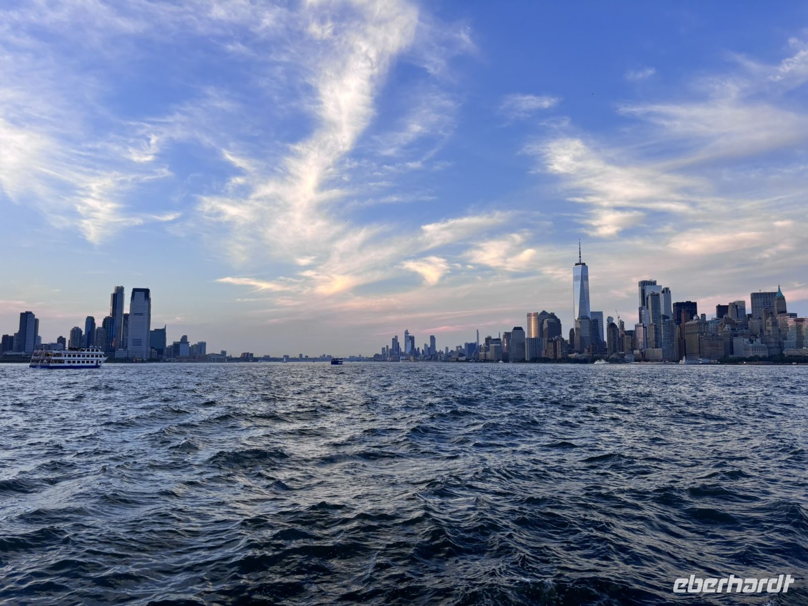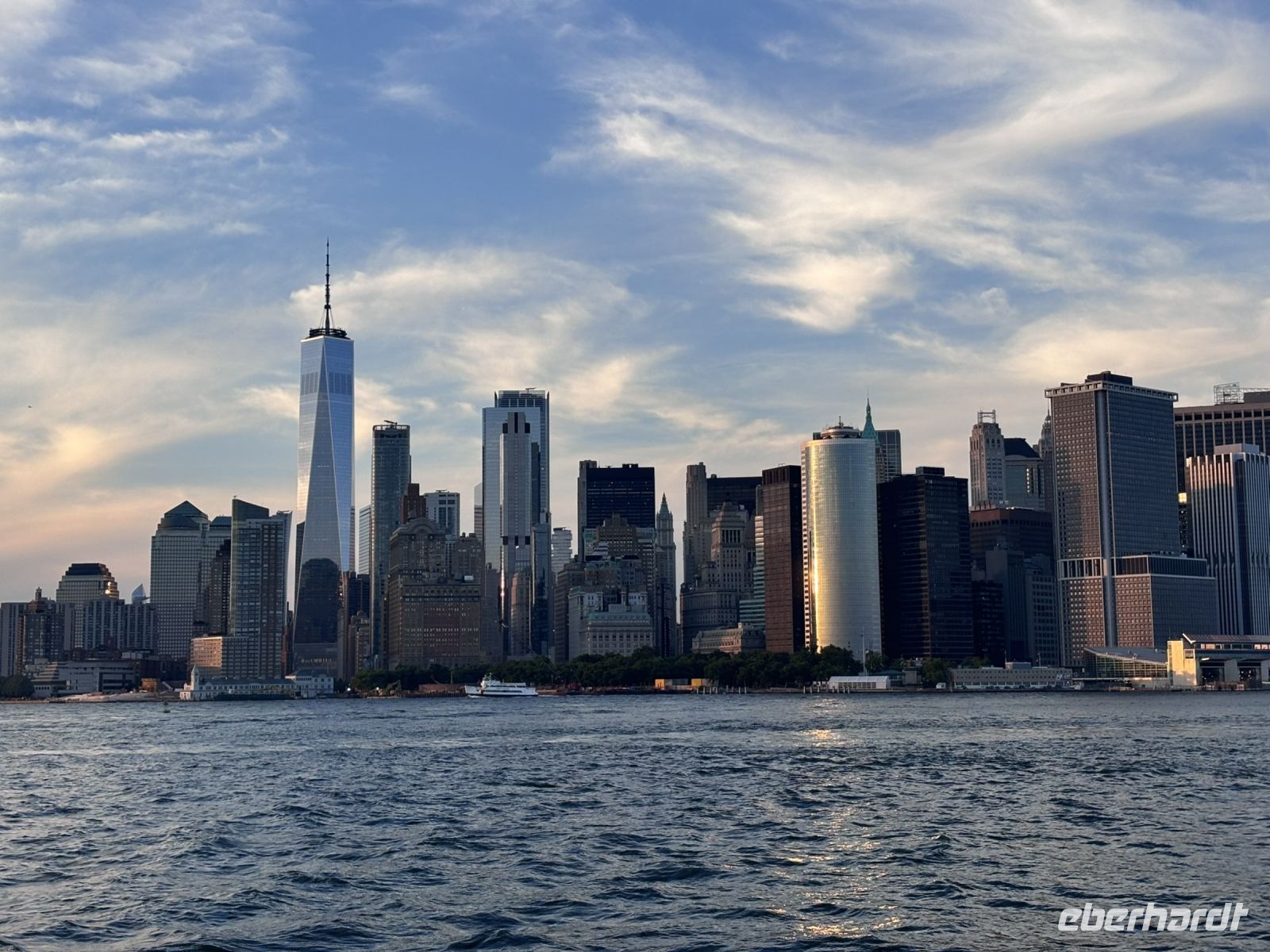 Am Abend erlebten wir das nächste Highlight unserer Reise. Vom Pier 17 startete unser Segeltörn auf der Clipper City, begleitet von Wein und Live-Jazzmusik. Zwei Stunden lang schipperten wir entspannt auf dem Hudson River um Manhattan. Bei Sonnenuntergang genossen wir die großartigen Ausblicke auf die Freiheitsstatue und die Skyline Manhattans.
