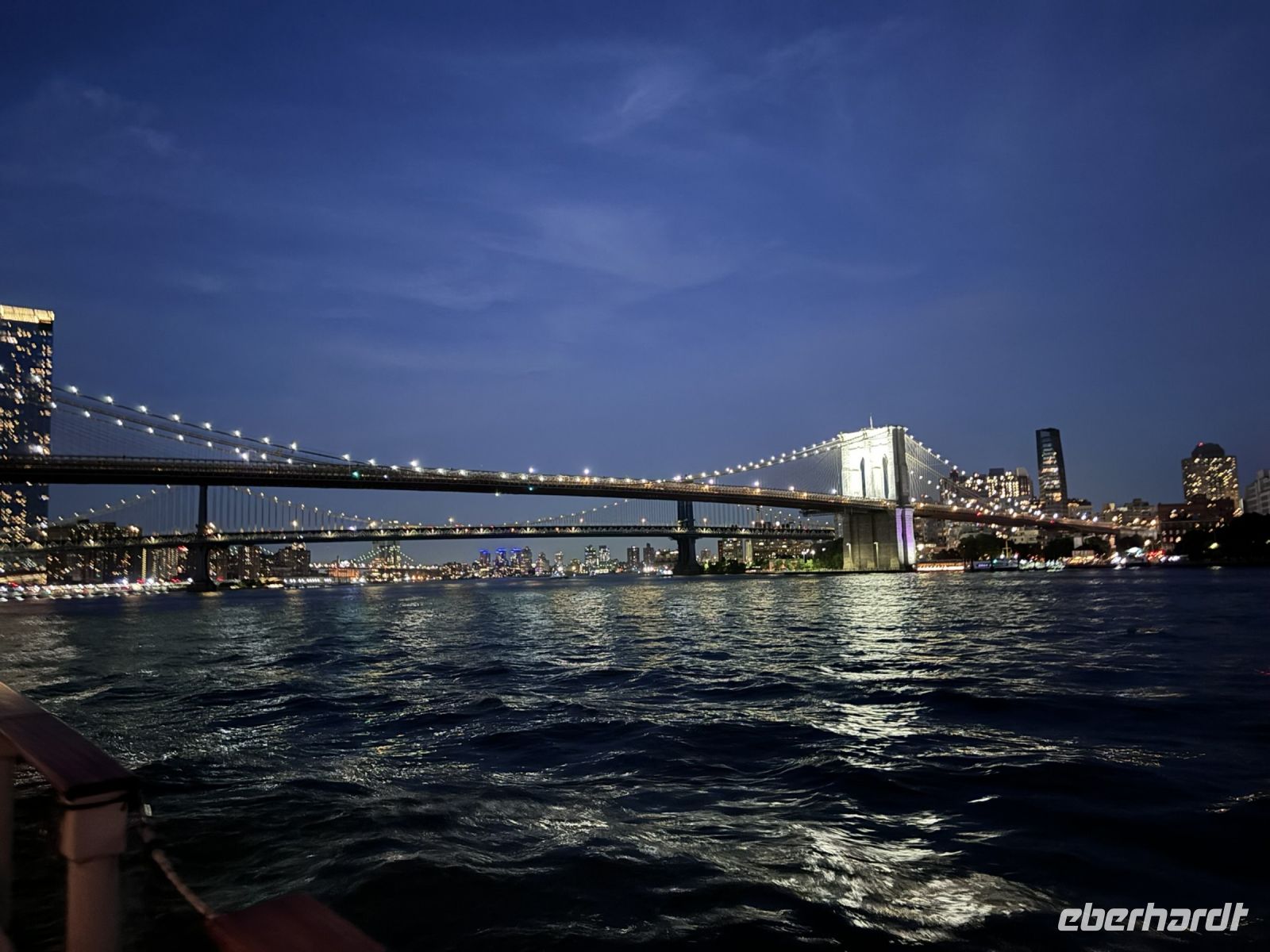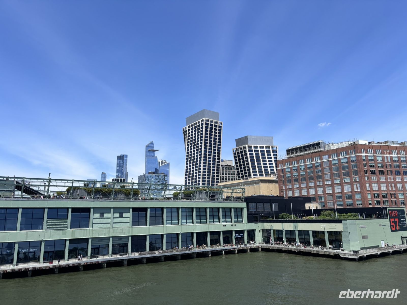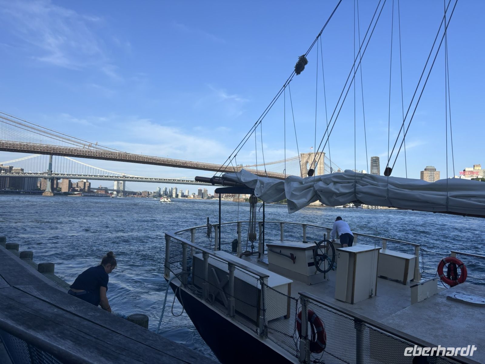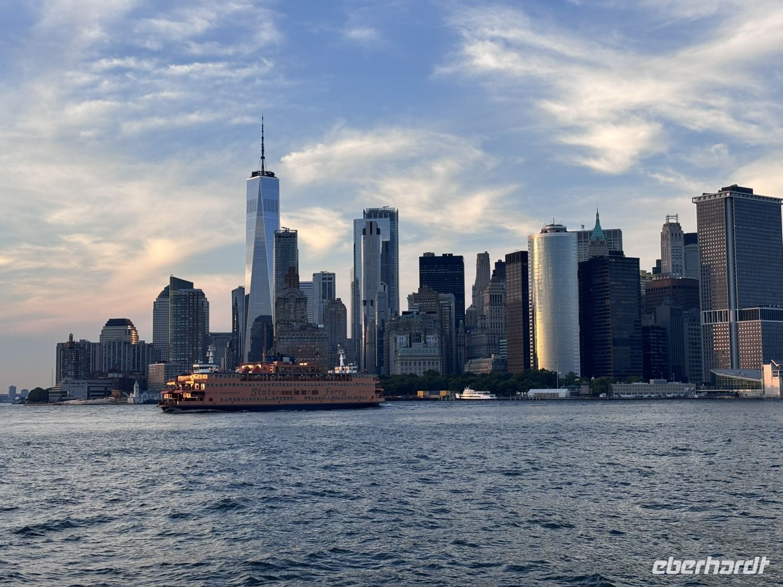 Am Abend erlebten wir das nächste Highlight unserer Reise. Vom Pier 17 startete unser Segeltörn auf der Clipper City, begleitet von Wein und Live-Jazzmusik. Zwei Stunden lang schipperten wir entspannt auf dem Hudson River um Manhattan. Bei Sonnenuntergang genossen wir die großartigen Ausblicke auf die Freiheitsstatue und die Skyline Manhattans.