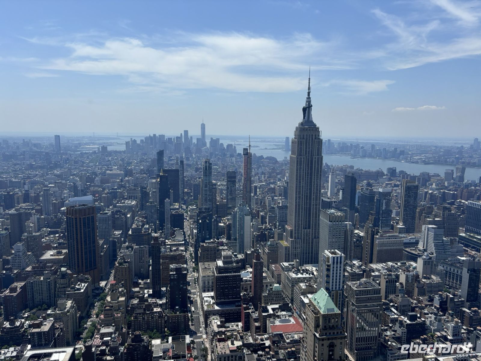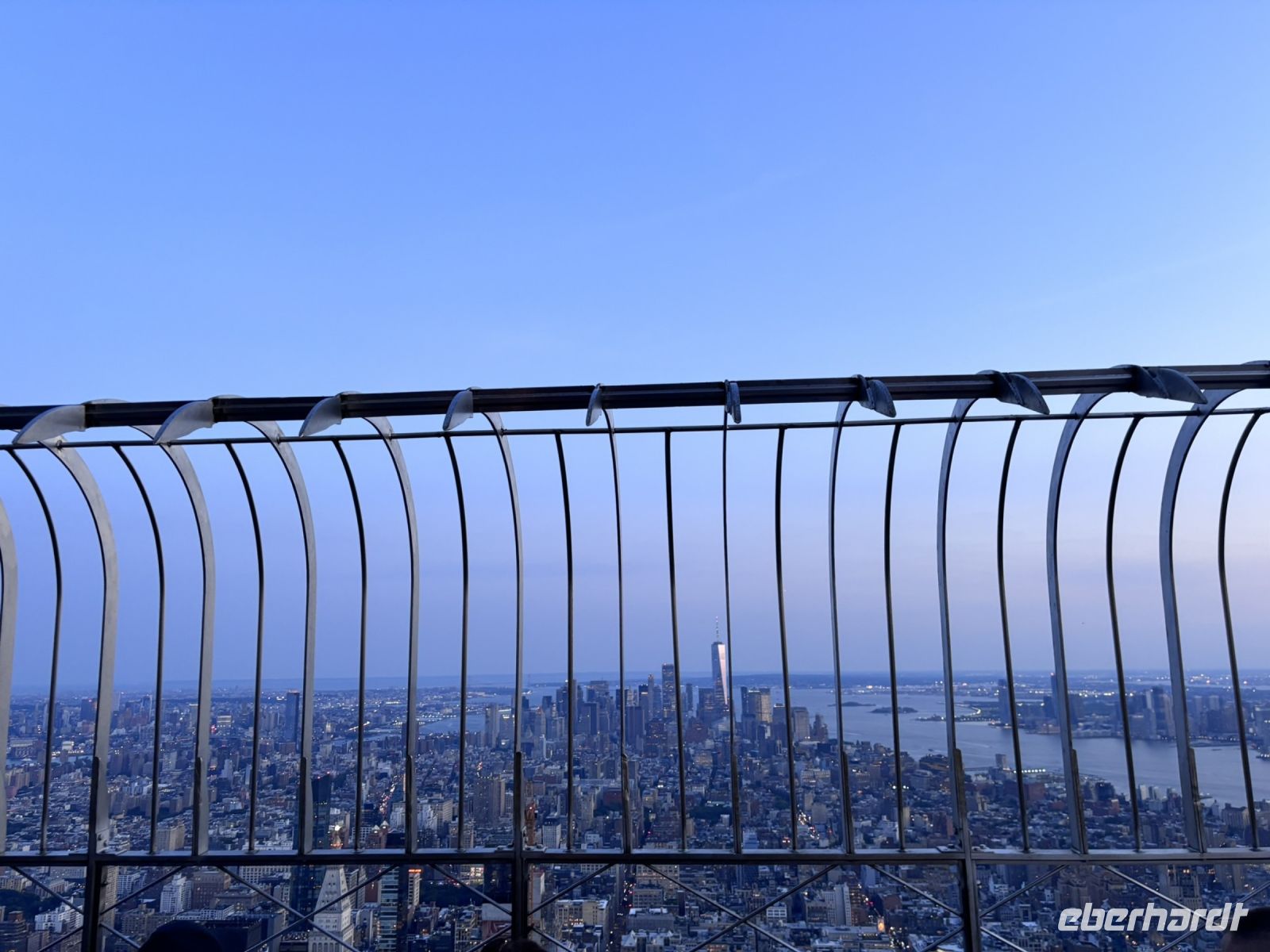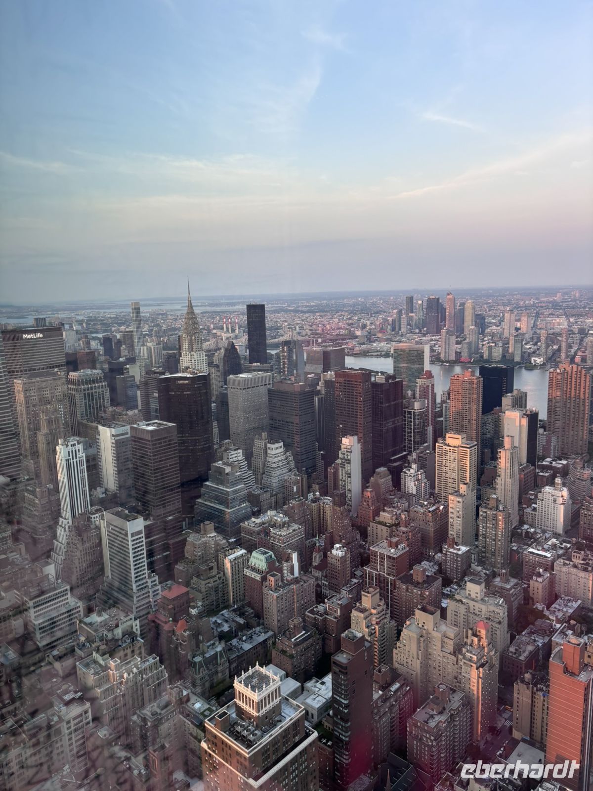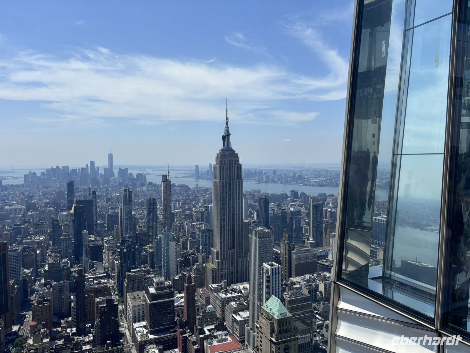Weiter ging es zur Aussichtsplattform "SUMMIT One Vanderbilt". 2021 wurde diese neue Plattform eröffnet und befindet sich in 335 m Höhe. Das beeindruckende an „The Summit“ sind die verschiedenen Räume mit Spiegeln oder silbernen Luftballons, was das Fotografieren noch spannender macht und natürlich der Wahnsinnsausblick, den man dank der bodentiefen Fenster noch besser genießen kann. Auf der Terrace gibt es auch eine Bar. Mit einem kühlen Getränk in der Hand ist der Ausblick noch besser.