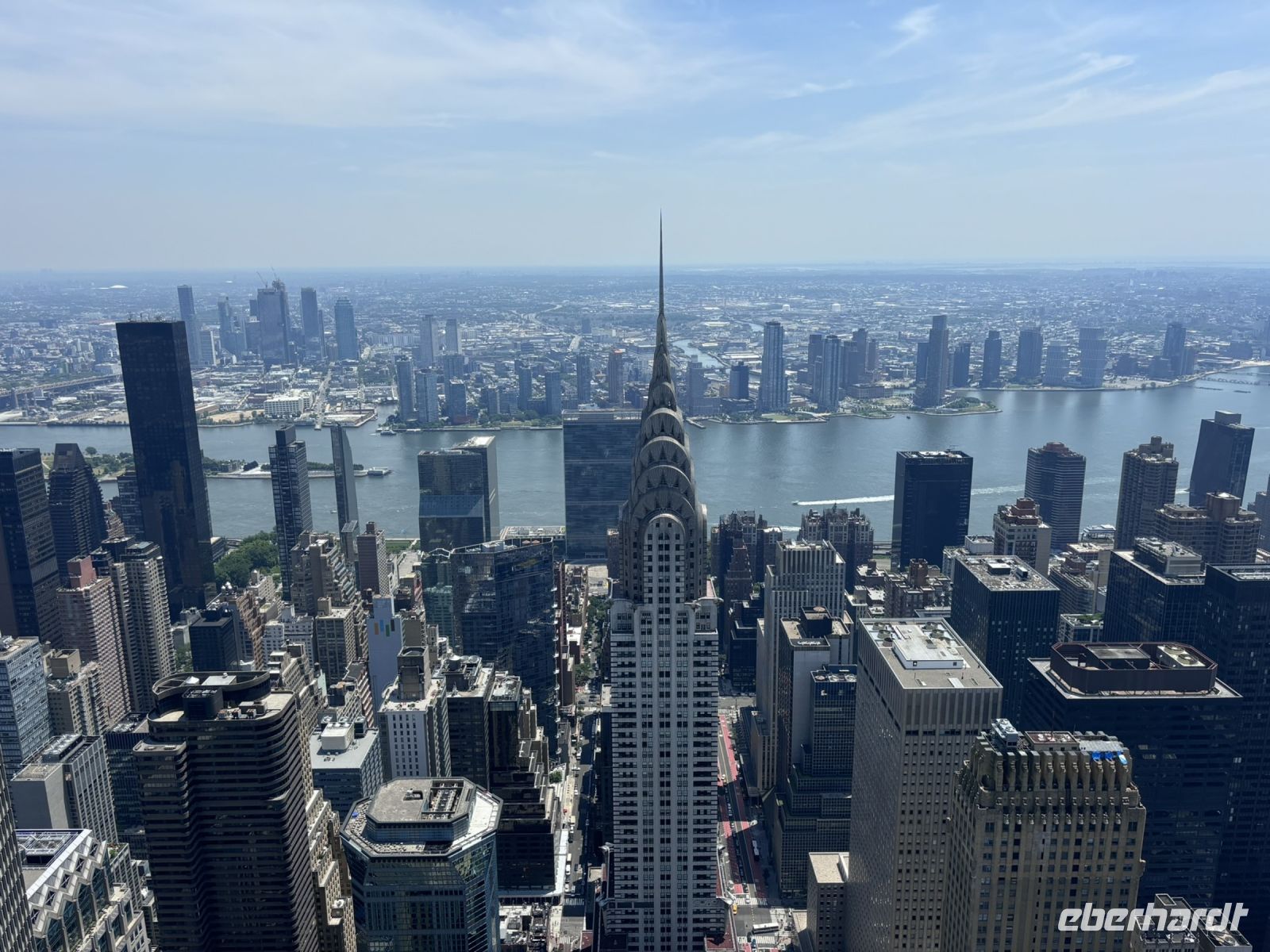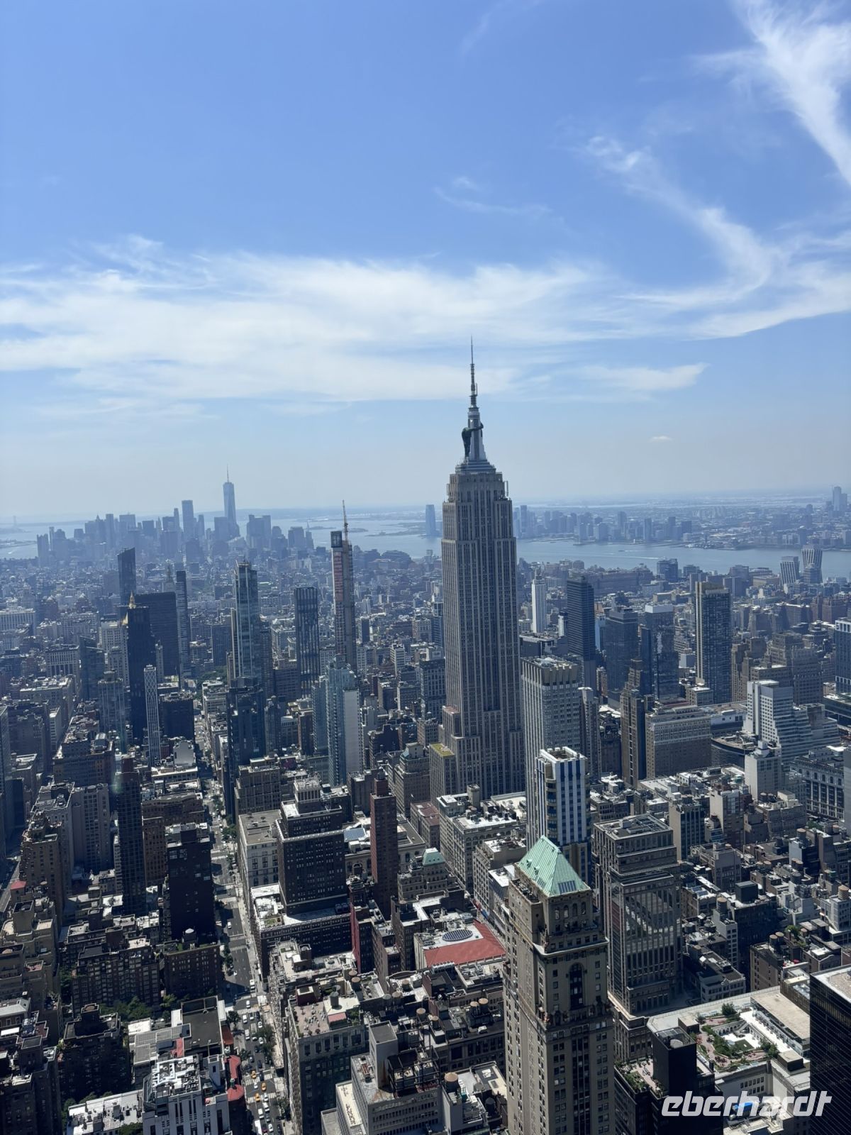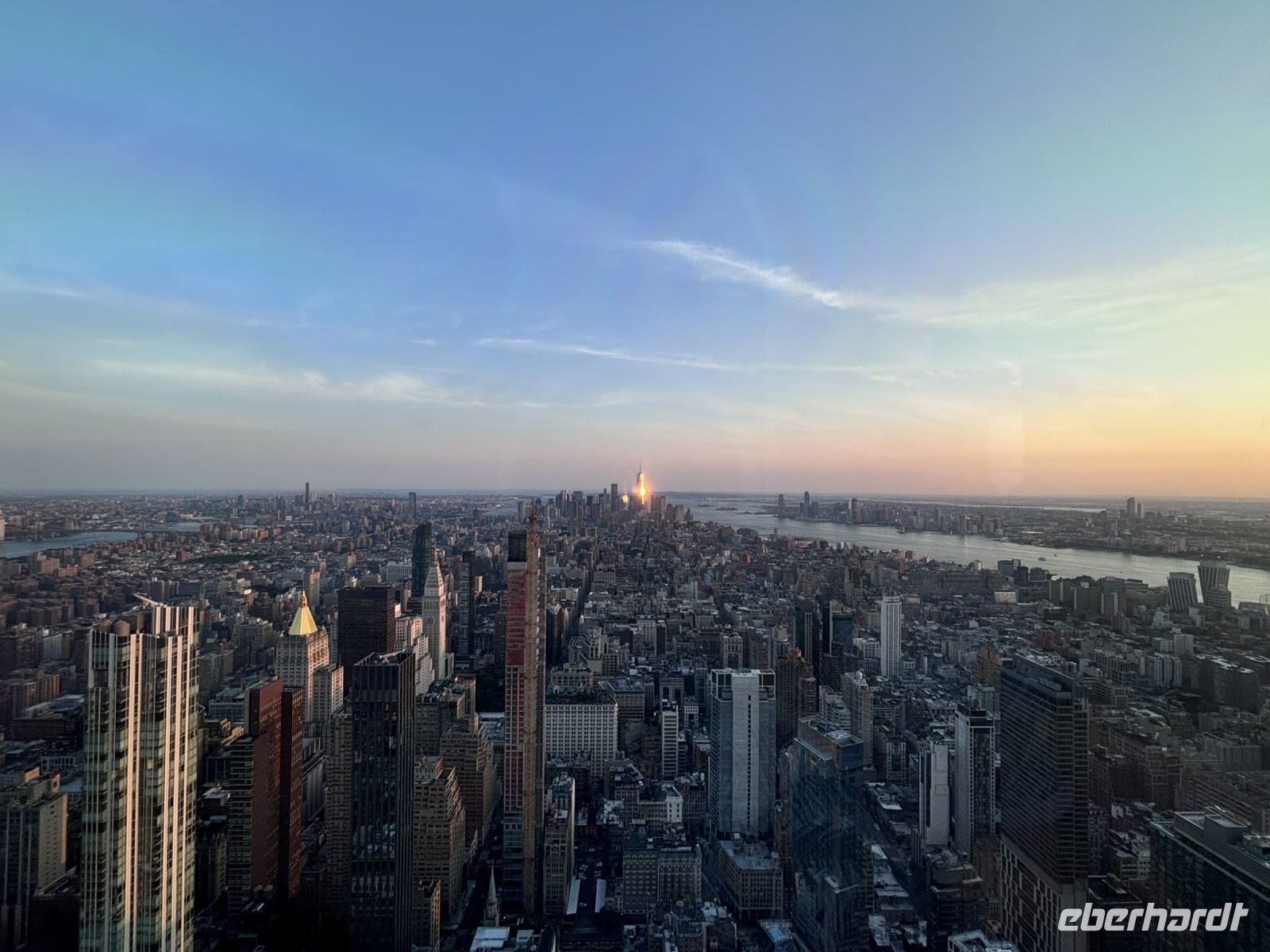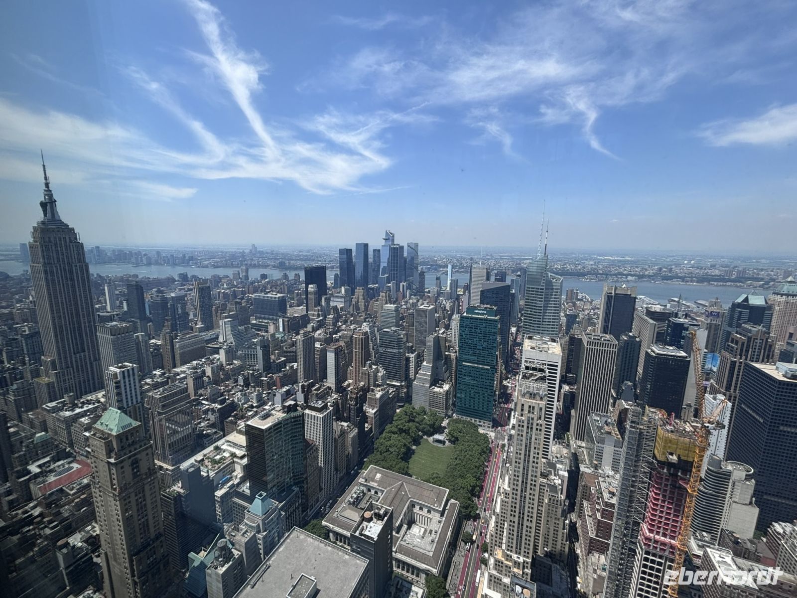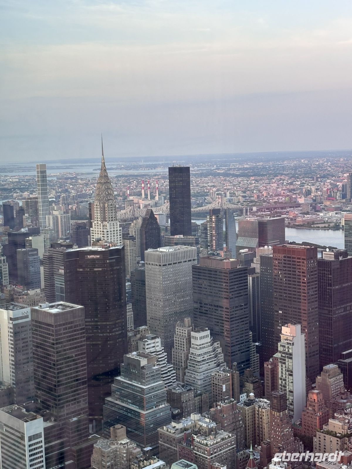 Weiter ging es zur Aussichtsplattform "SUMMIT One Vanderbilt". 2021 wurde diese neue Plattform eröffnet und befindet sich in 335 m Höhe. Das beeindruckende an „The Summit“ sind die verschiedenen Räume mit Spiegeln oder silbernen Luftballons, was das Fotografieren noch spannender macht und natürlich der Wahnsinnsausblick, den man dank der bodentiefen Fenster noch besser genießen kann. Auf der Terrace gibt es auch eine Bar. Mit einem kühlen Getränk in der Hand ist der Ausblick noch besser.