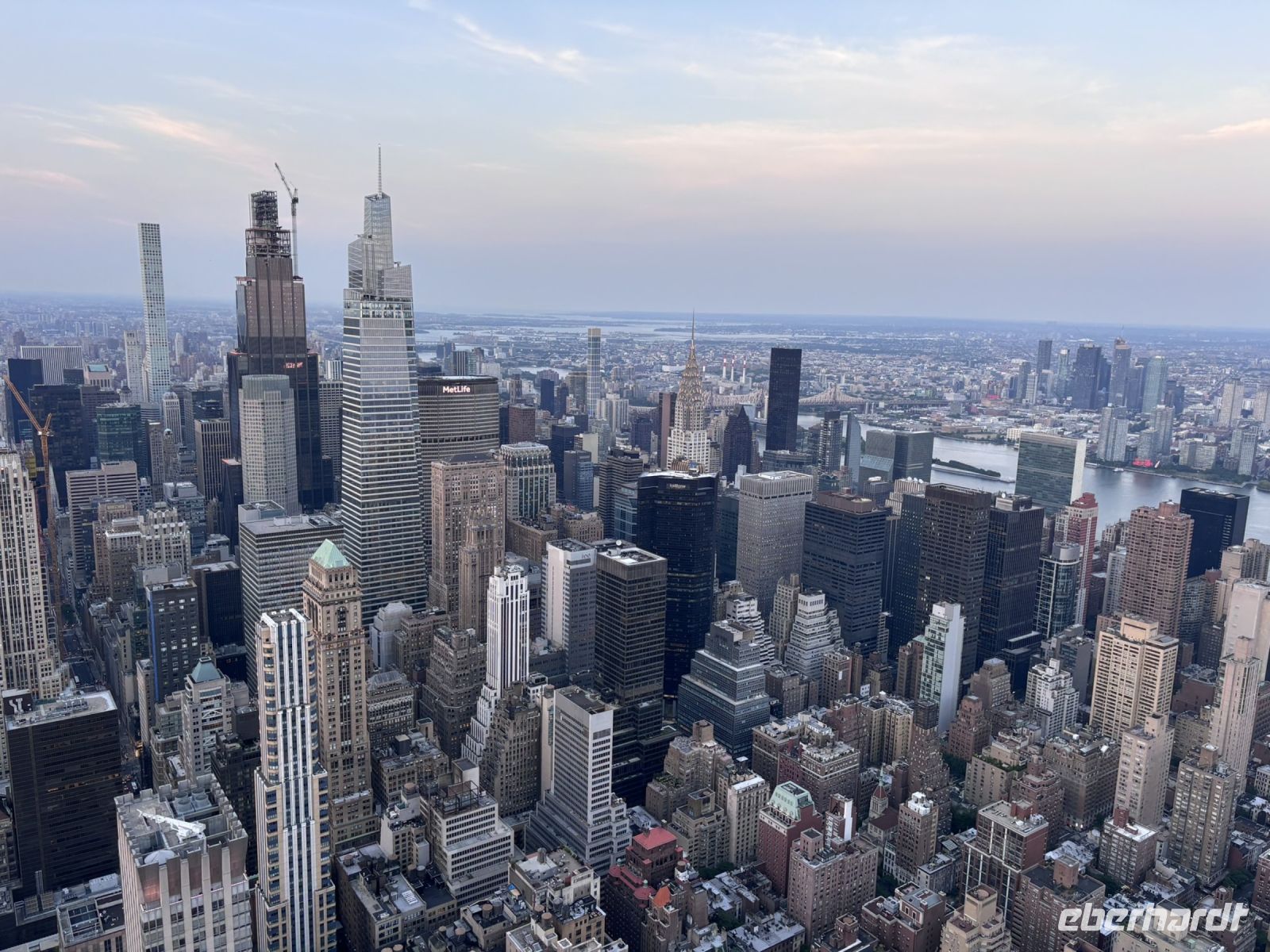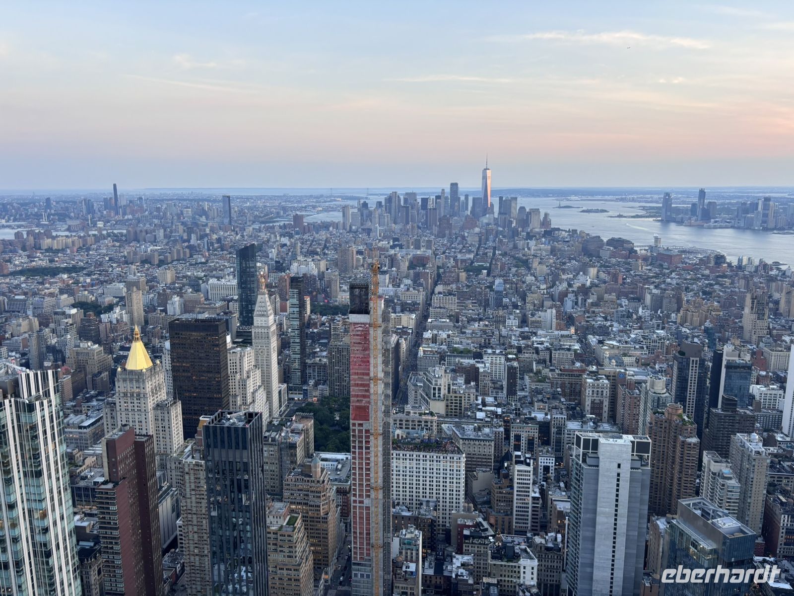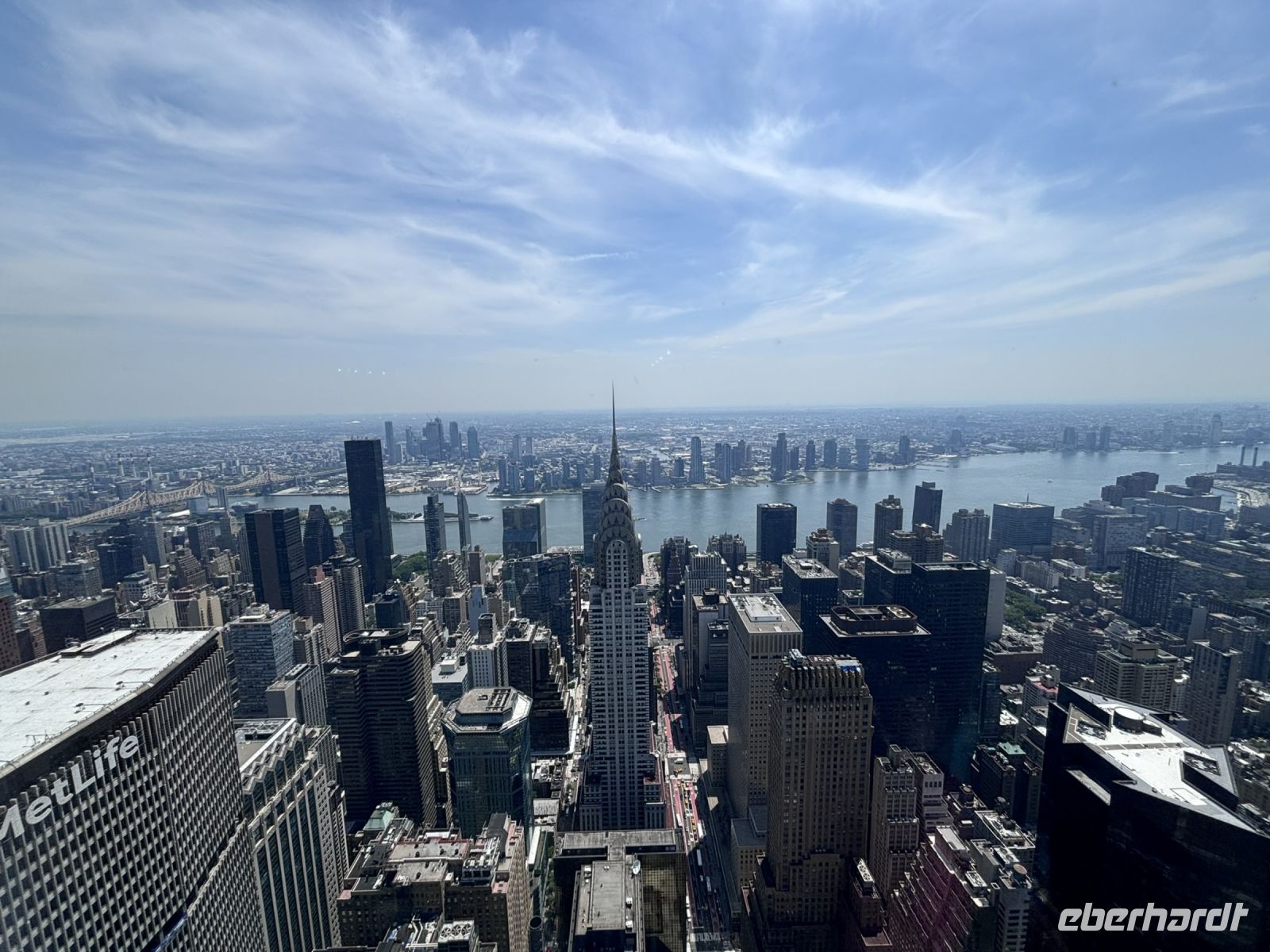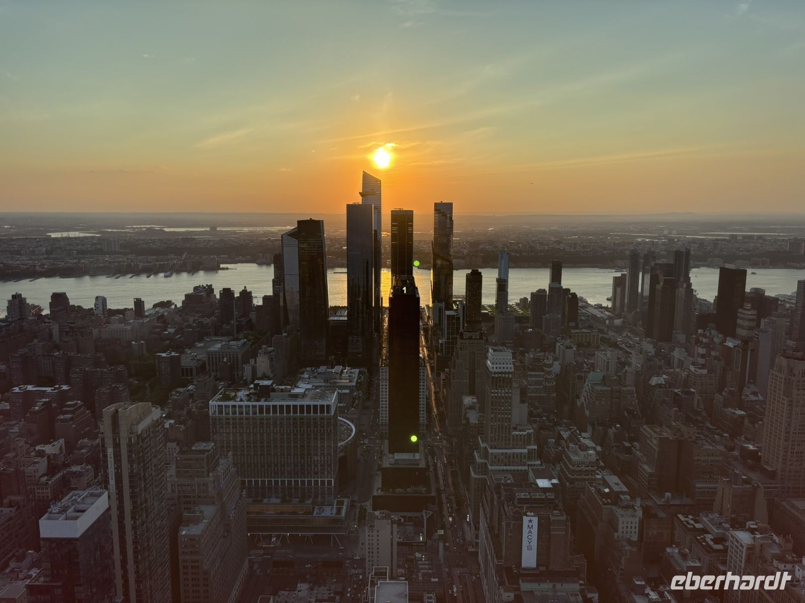 Weiter ging es zur Aussichtsplattform "SUMMIT One Vanderbilt". 2021 wurde diese neue Plattform eröffnet und befindet sich in 335 m Höhe. Das beeindruckende an „The Summit“ sind die verschiedenen Räume mit Spiegeln oder silbernen Luftballons, was das Fotografieren noch spannender macht und natürlich der Wahnsinnsausblick, den man dank der bodentiefen Fenster noch besser genießen kann. Auf der Terrace gibt es auch eine Bar. Mit einem kühlen Getränk in der Hand ist der Ausblick noch besser.