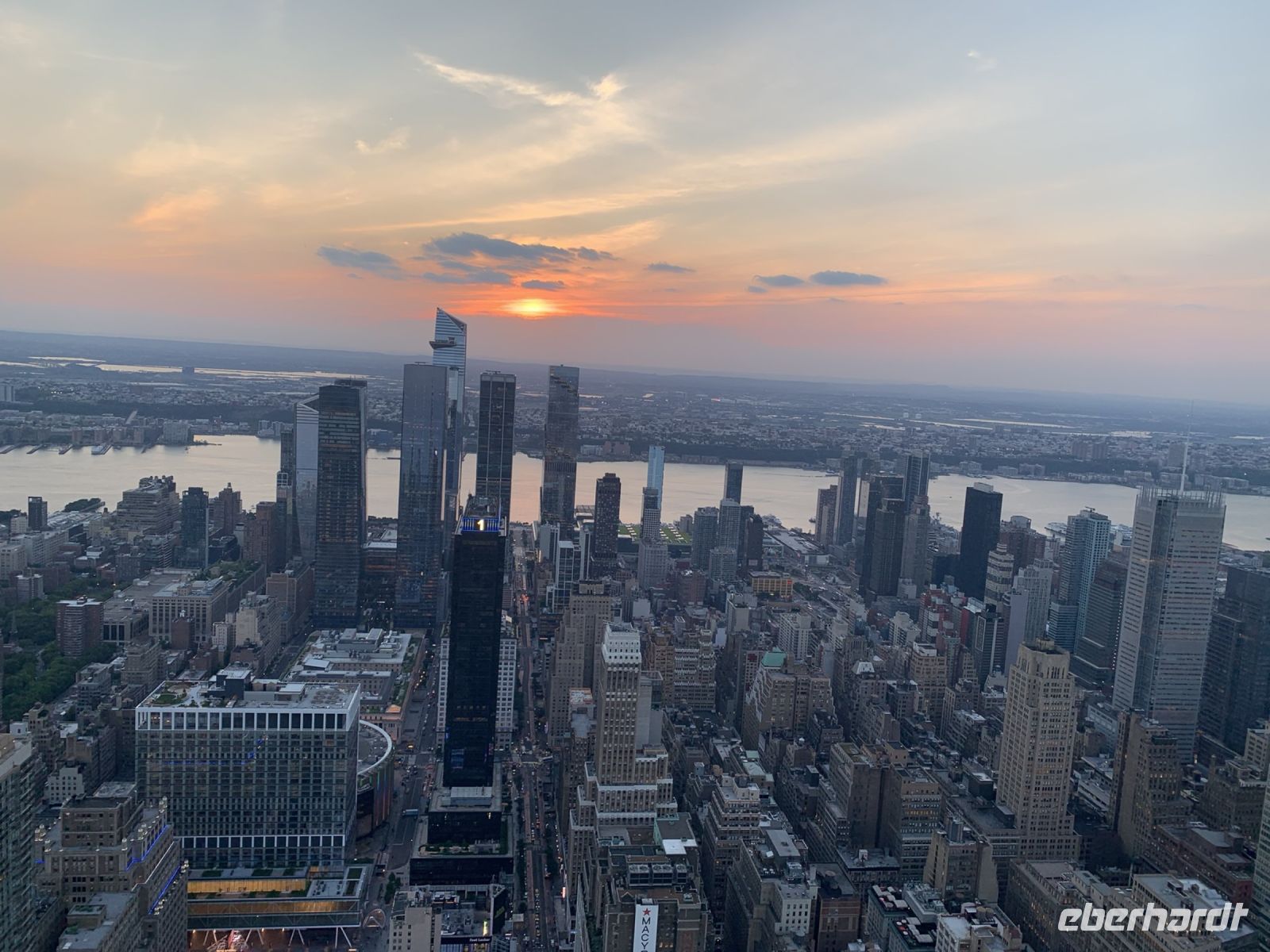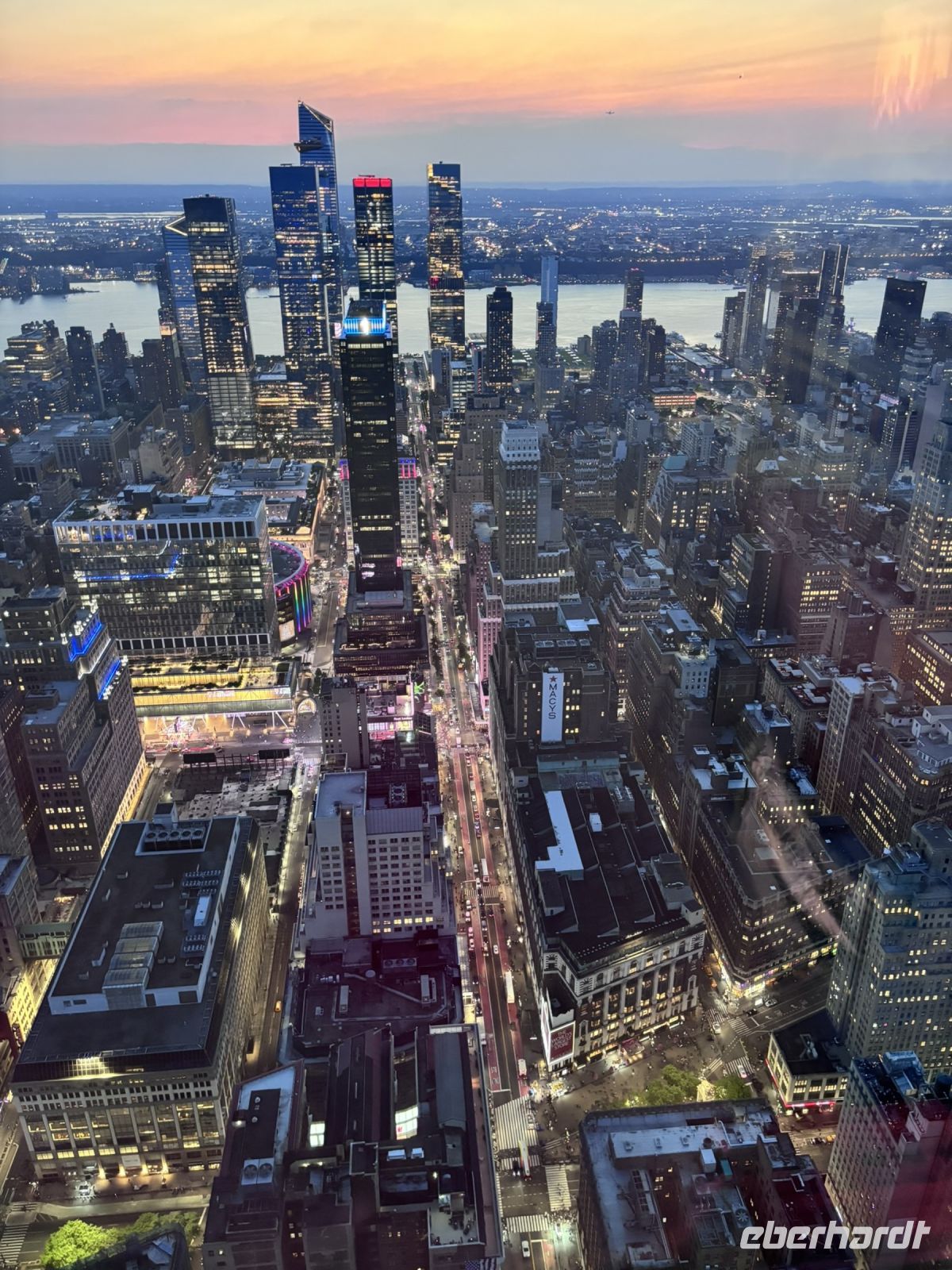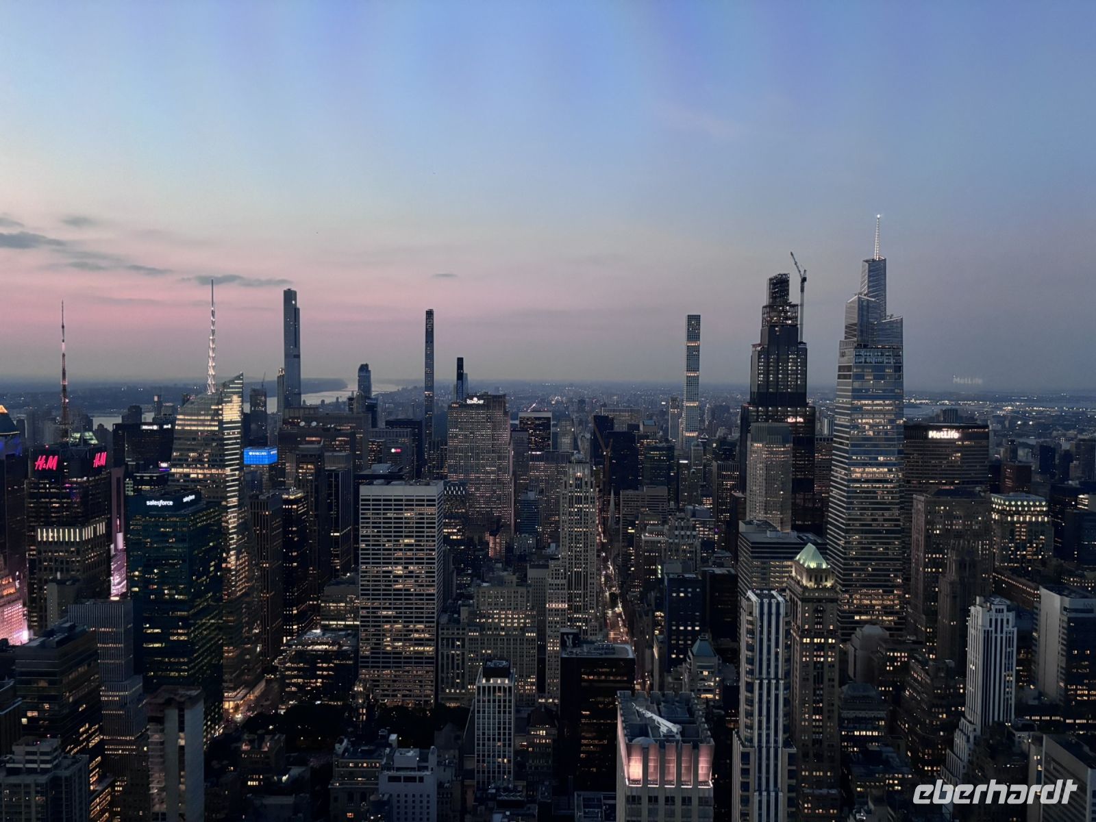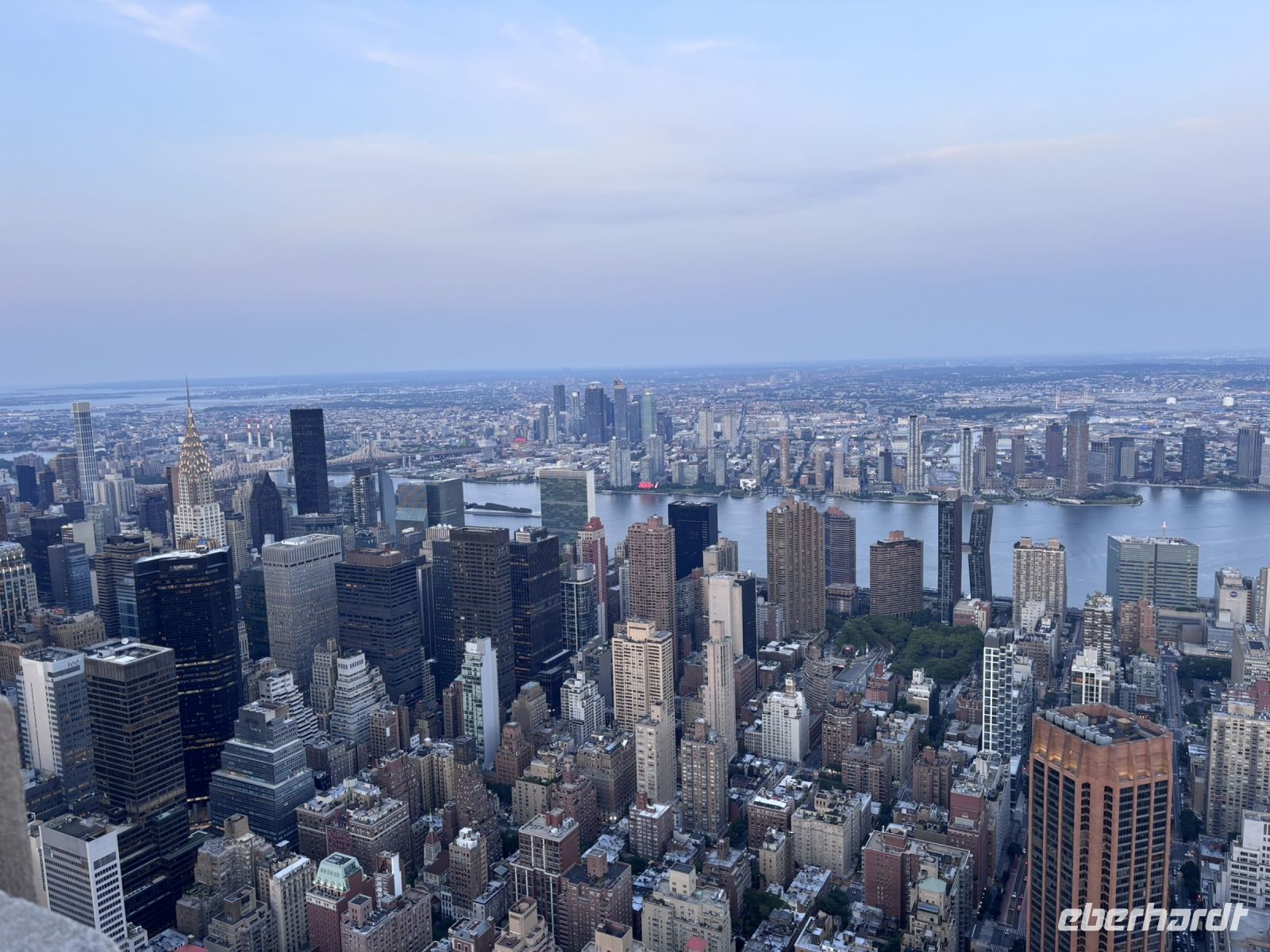 Weiter ging es zur Aussichtsplattform "SUMMIT One Vanderbilt". 2021 wurde diese neue Plattform eröffnet und befindet sich in 335 m Höhe. Das beeindruckende an „The Summit“ sind die verschiedenen Räume mit Spiegeln oder silbernen Luftballons, was das Fotografieren noch spannender macht und natürlich der Wahnsinnsausblick, den man dank der bodentiefen Fenster noch besser genießen kann. Auf der Terrace gibt es auch eine Bar. Mit einem kühlen Getränk in der Hand ist der Ausblick noch besser.