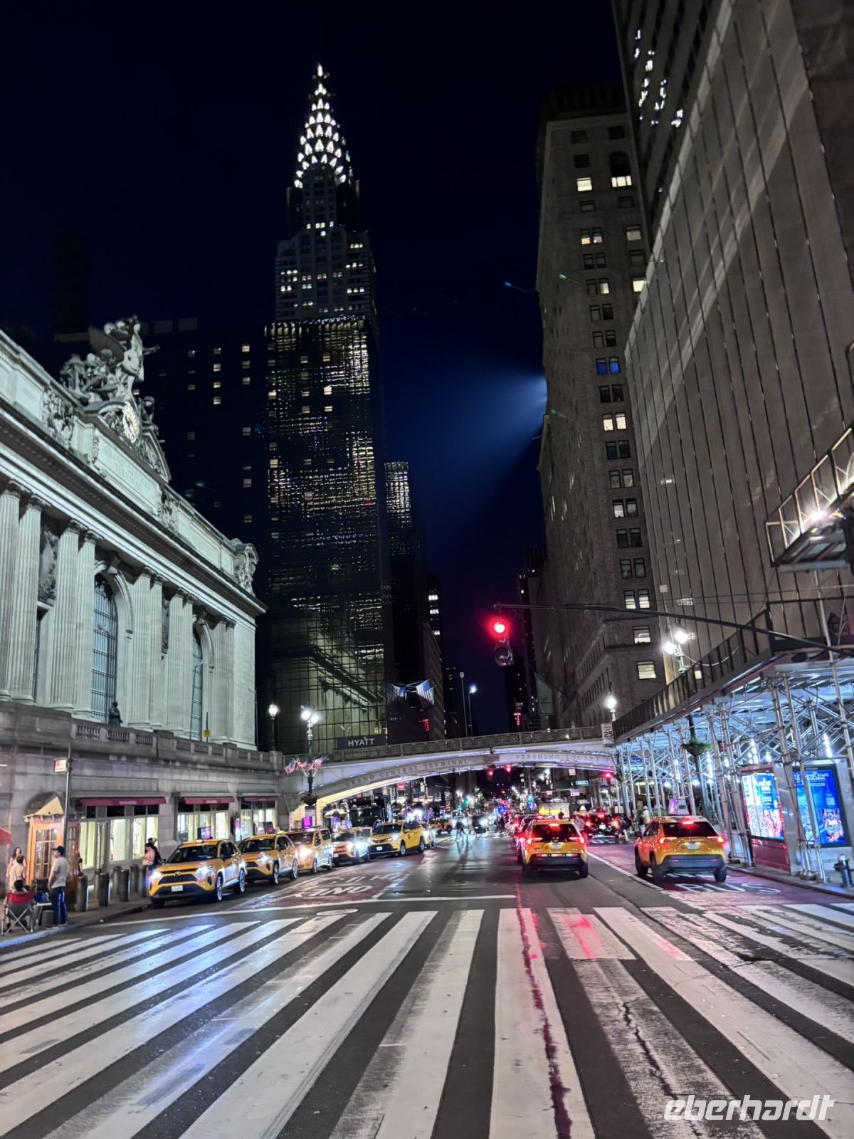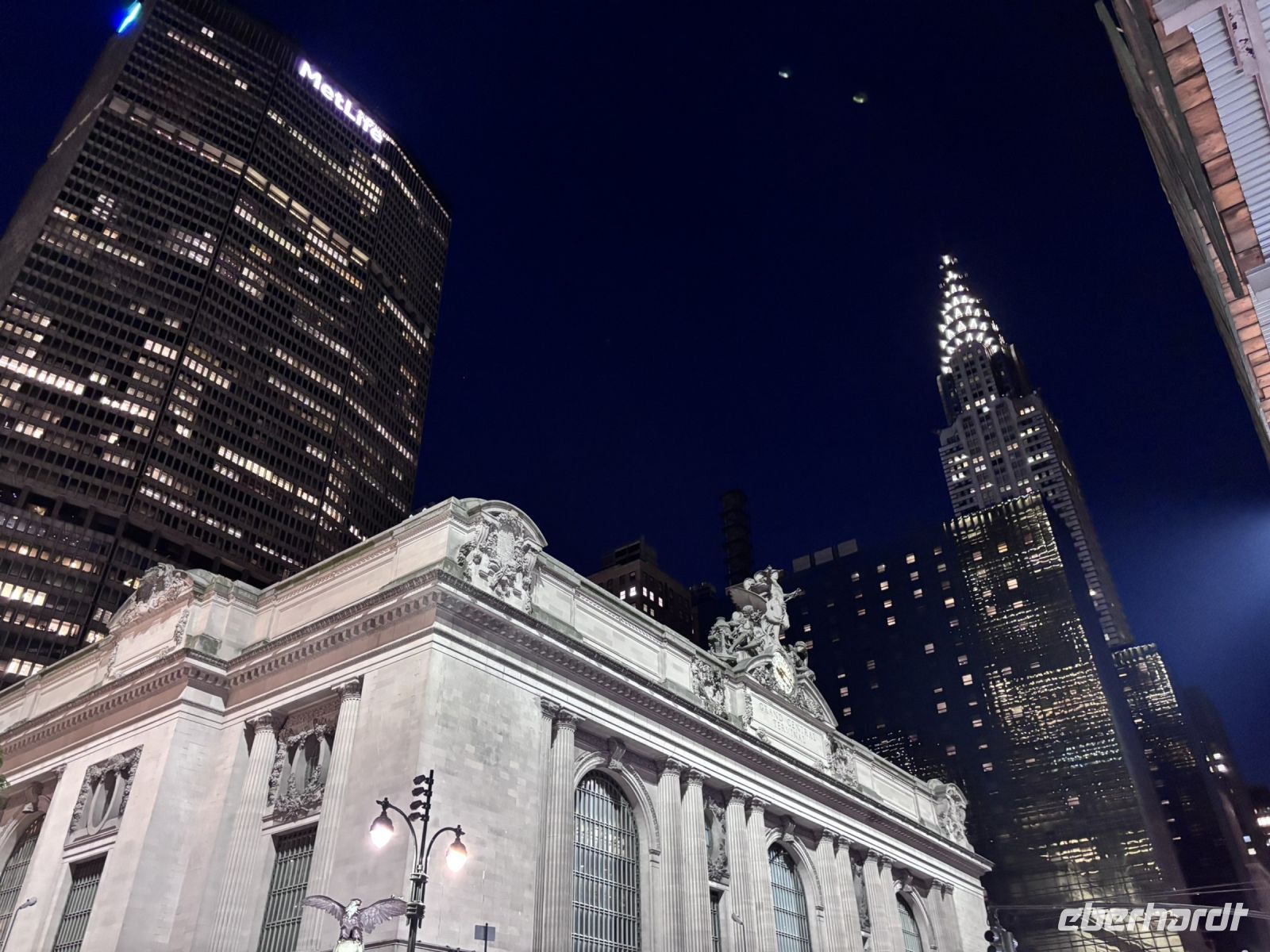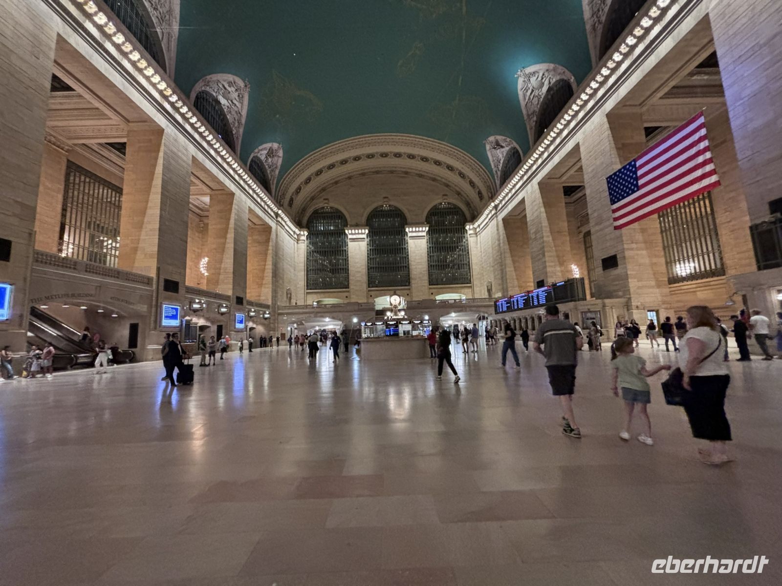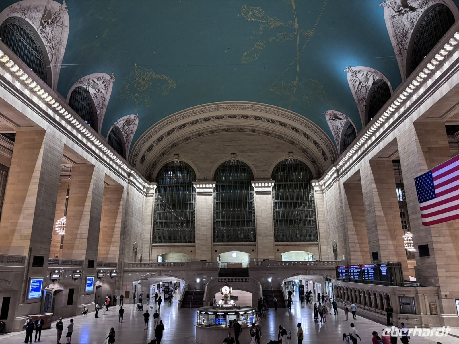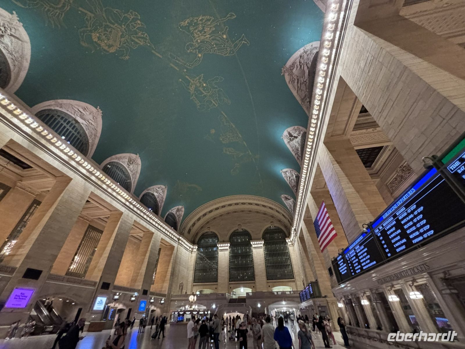 Im Anschluss ging es zum hübschen Bahnhof Grand Central Terminal. Wir bewunderten die große Haupthalle mit der großen Uhr und der spiegelverkehrten sternenbedeckten Decke. Der Bahnhof ist nicht nur ein wichtiger Verkehrsknotenpunkt, sondern bietet auch eine Vielzahl von kleinen Geschäften und Restaurants. Witzig war auch die Whispering Gallery, wo wir durch Flüstern in den Bögen miteinander kommuniziert haben.