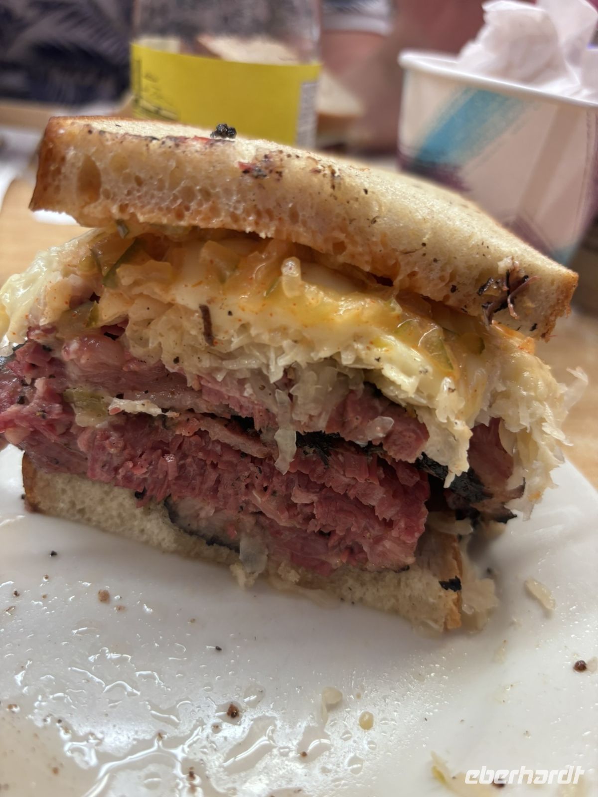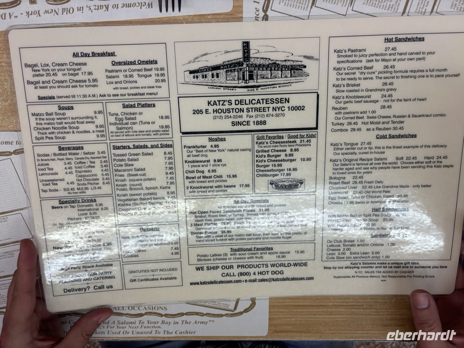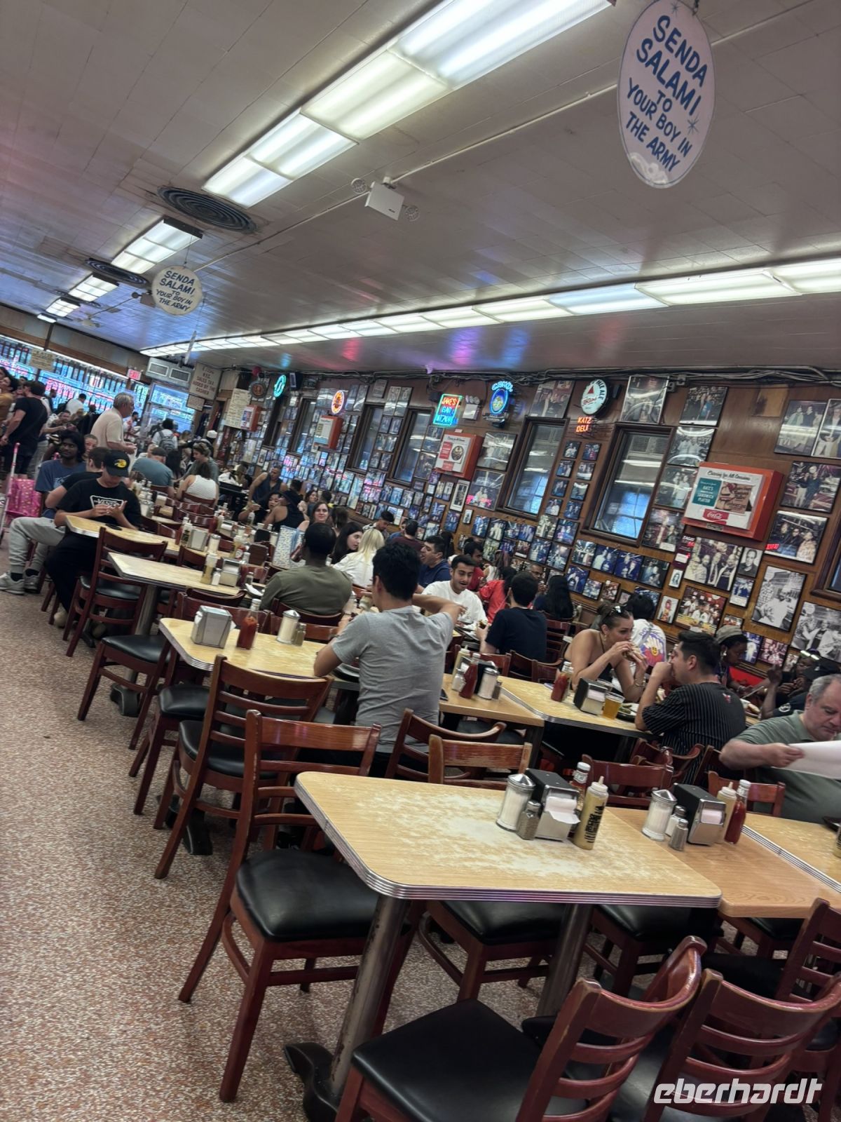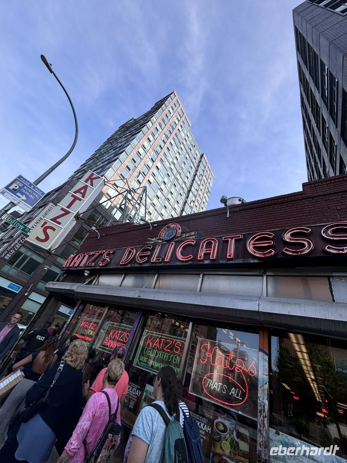 Bevor es zur abendlichen Tour ging, war ich mit einigen Gästen im Katz's Delicatessen zu Abend essen. Katz‘s ist ein berühmtes New Yorker Deli, welches sich ganz in der Nähe unseres Hotels befand und bekannt für sein legendäres Pastrami-Sandwich ist. Das Ambiente erinnerte an eine Kantine mit über Jahren gesammelte Souvenirs und Erinnerungsstücken. Das machte es wieder zu etwas besonderem. Seit 1888 serviert Katz's erstklassige Delikatessen. Das Pastrami-Sandwich ist ein absolutes Muss für jeden Besucher. Katz's ist übrigens auch Drehort für DIE bekannte Szene aus dem Film "Harry und Sally" gewesen.