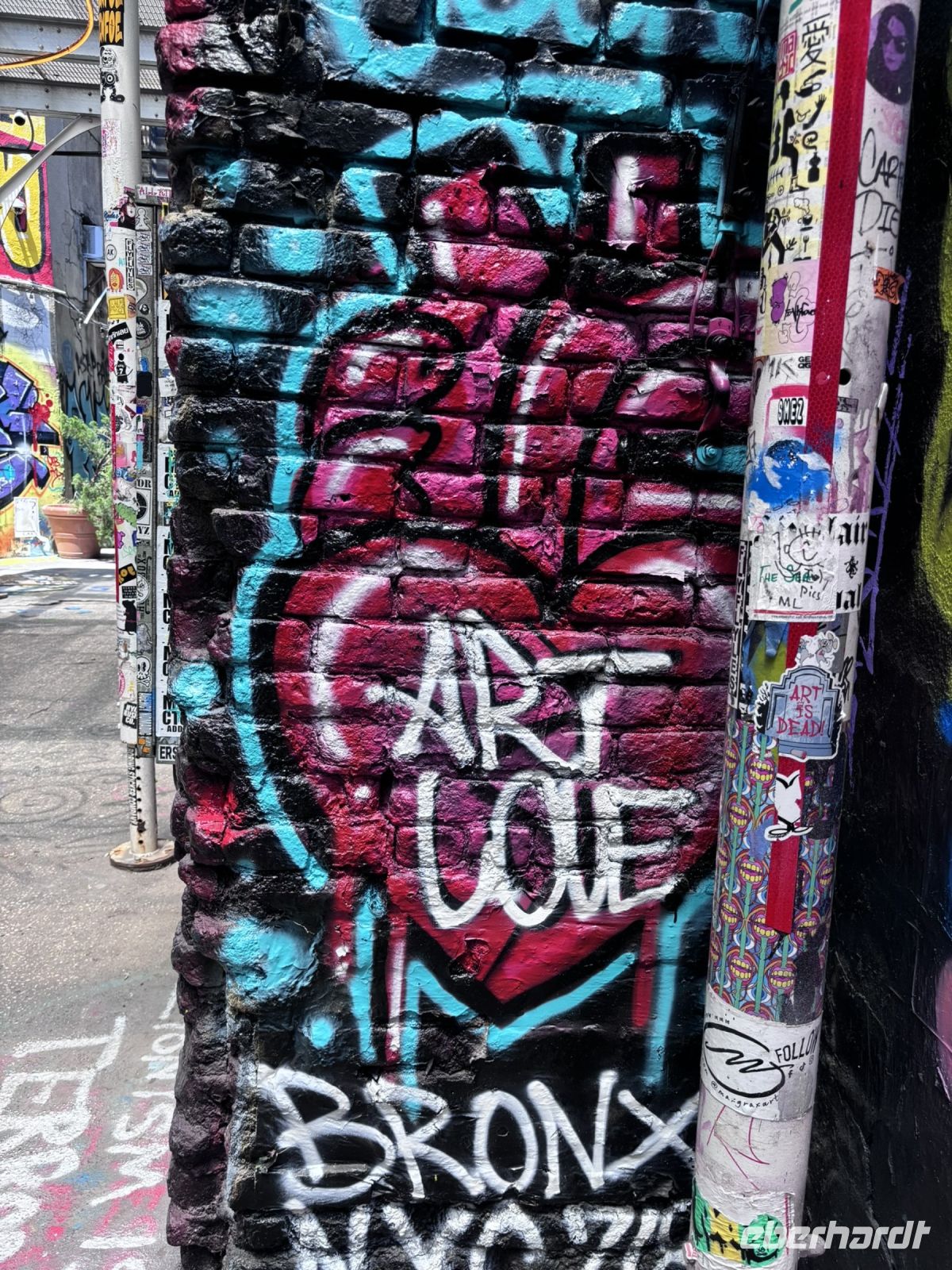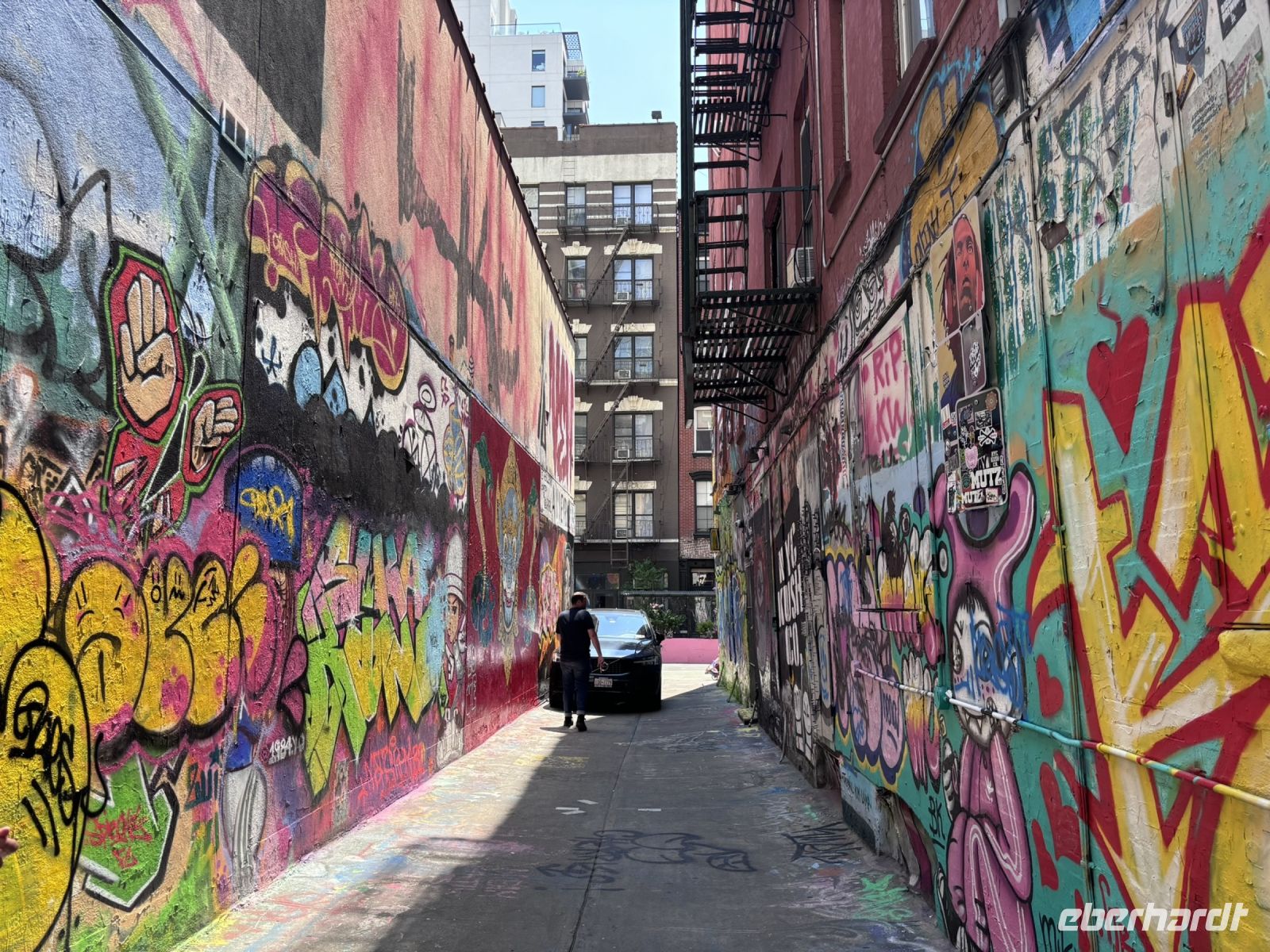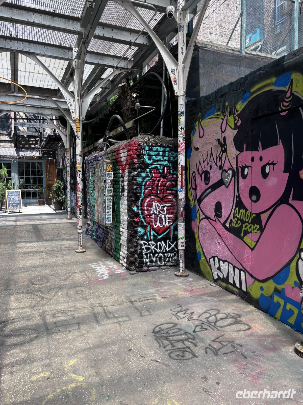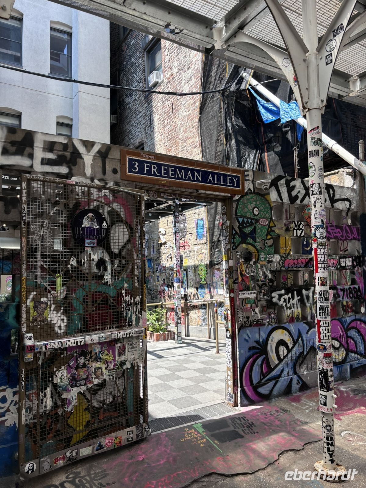 Auf dem Weg zum nächsten Essensstopp besuchten wir die Freeman Alley - eine schmale, mit Graffiti bedeckte Gasse mit ständig wechselnder Sammlung an Graffiti und Straßenkunst.