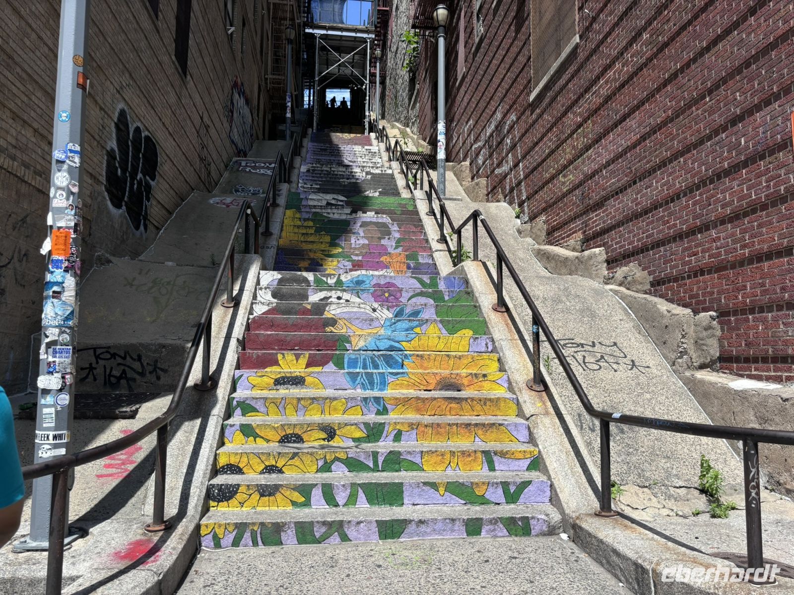 Mit dem Bus ging es weiter Richtung Bronx. Die Bronx hatte früher einen schlechten Ruf. Das hat sich geändert. Es ist der Stadtteil, der sich in den letzten Jahren am meisten verändert hat. Mittlerweile ist es eine hübsche Gegend mit lebendigen Geschäftsstraßen, zahlreichen Restaurants und Geschäften. Wir machten einen Stopp am „Arthur Avenue Retail Market“ in Little Italy. (Auch in der Bronx gibt es ein Little Italy). Der Markt bietet viele italienische Spezialitäten an, wie frische Lebensmittel und handgemachte Produkte an. Außerdem beobachteten wir, wie sechs Männer live Zigarren drehten. Wir gönnten uns ein typisch italienisches Cannoli und setzten unsere Tour durch die Bronx fort. Wir machten Schnappschüsse am New York Yankees Stadion und an den Joker Stairs, die Berühmtheit durch den Film "Joker" erlangten.