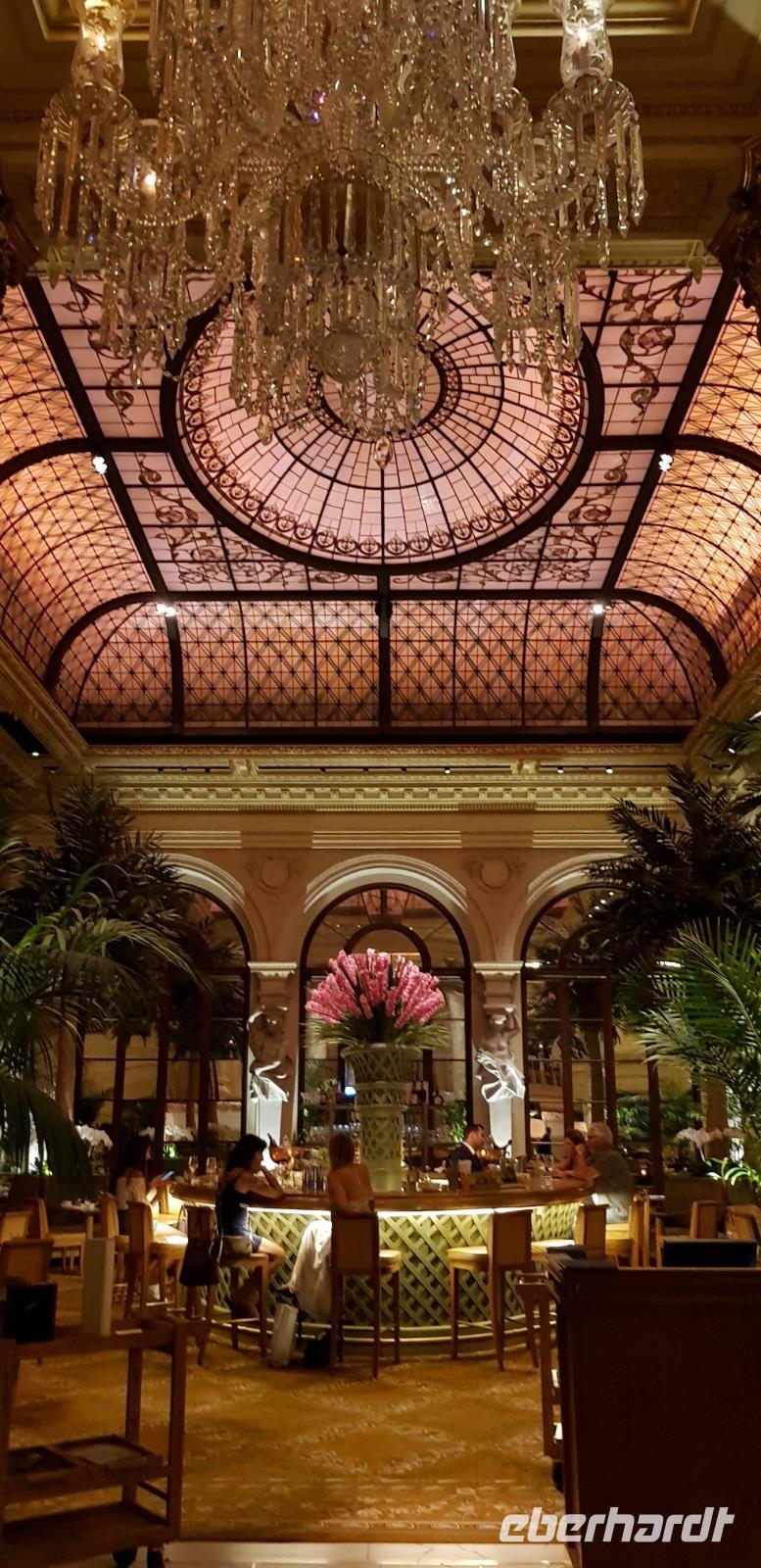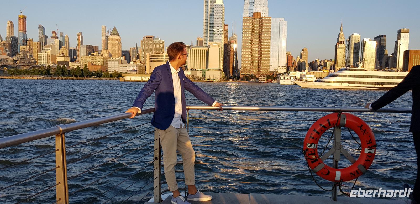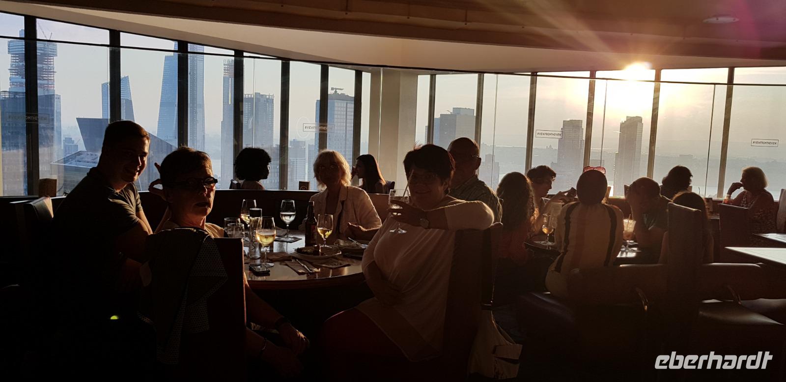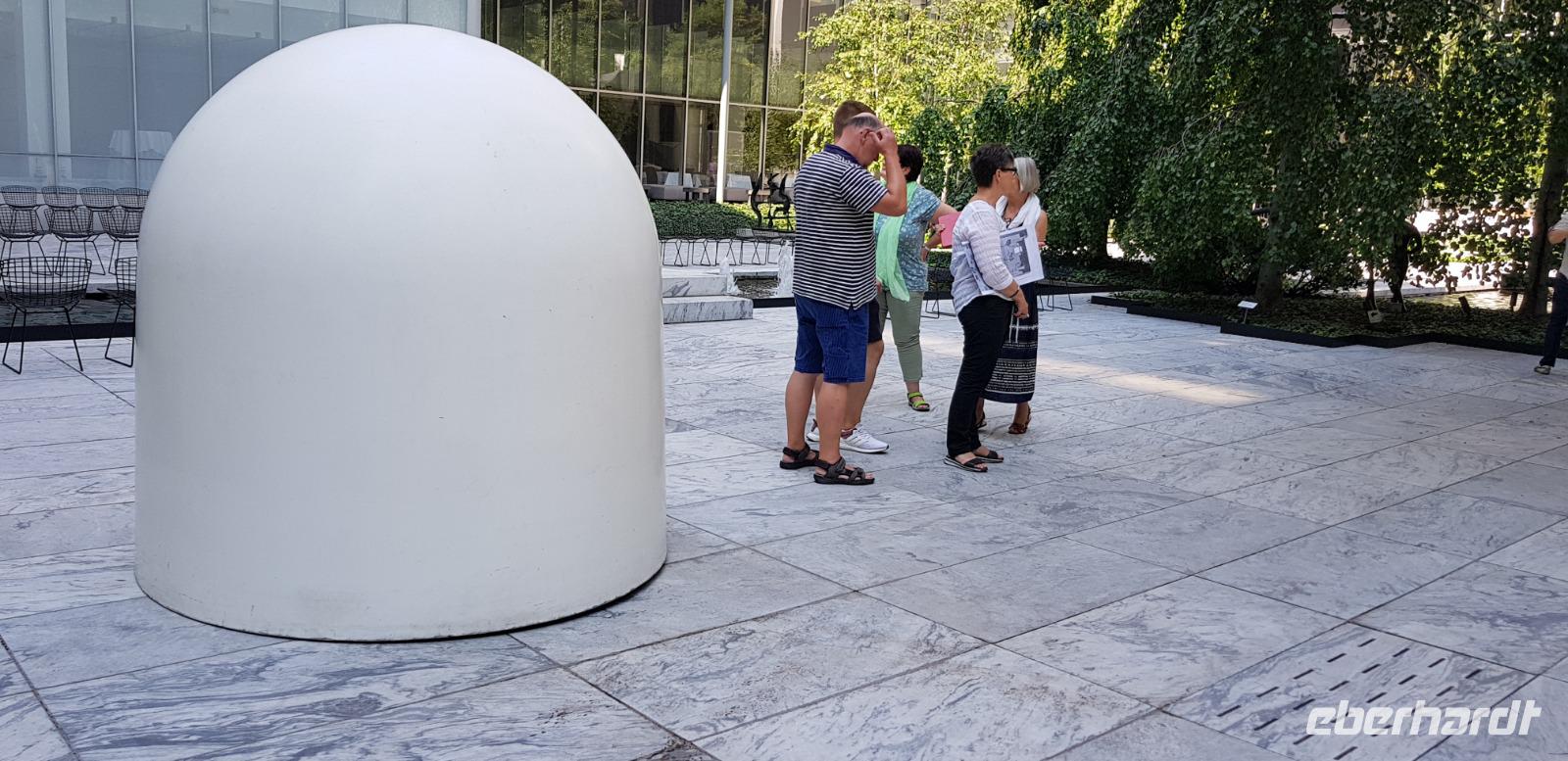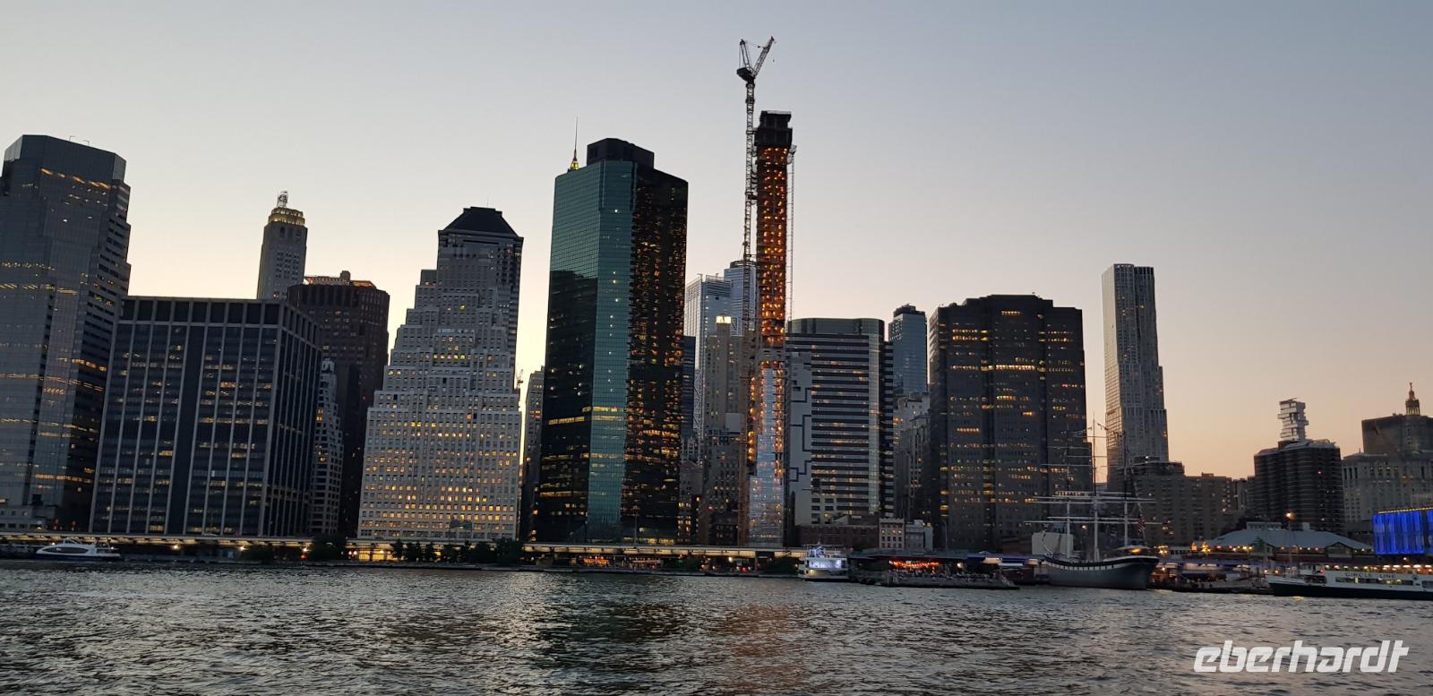 Den Vormittag verbrachte jeder individuell bis wir uns am Nachmittag wieder im Hotel trafen. Mit der U-Bahn fuhren wir gemeinsam zum High Line Park, einer alten Güterzugtrasse, die zu einer schönen grünen Parkanlage umgebaut wurde. Wir spazierten von einem Ende zum anderen, bewunderten die vielen Pflanzen und Blumen, die liebevoll gepflanzt wurden und machten einige Pausen auf den vielen Bänken des Parks. Wir waren sehr beeindruckt von den neu entstehenden Wolkenkratzern und Luxus-Apartments links und rechts der Trasse. Hier können sich die namenhaften Architekten aus aller Welt so richtig austoben. Zum Abschluss besuchten wir noch die Markthallen des Chelsea Markets, bevor wir mit der Subway zum Hotel zurück fuhren. Um 18Uhr stand schon unser Transfer zum Spirit Curise Pier bereit. Also fuhren wir ca. 35min. vom Hotel in Richtung Hudson River, um dort an Bord eines Dinner-Schiffs zu gehen. Wir legten ab und fuhren bei einem traumhaften Sonnenuntergang an der imposanten Skyline vorbei. An Bord fehlte es uns an nix. Es gab gut gekühlte Getränke und feinstes Essen. Ob Ente, Rindfleisch oder Fisch, es schmeckte wieder einmal hervorragend. Die Fahrt ging gute 3 Stunden und wir fuhren vorbei an Lower Manhattan, durchquerten die Brooklyn Bridge, Manhattan Bridge und passierten die Freiheitsstatue. Ein toller Abschluss einer grandiosen New York Reise. Gegen 22Uhr erreichten wir wieder den Pier und wer wollte besuchte mit mir noch die Skybar „Bar 54" im Hyatt Hotel, bevor wir todmüde ins Bett fielen. :-)