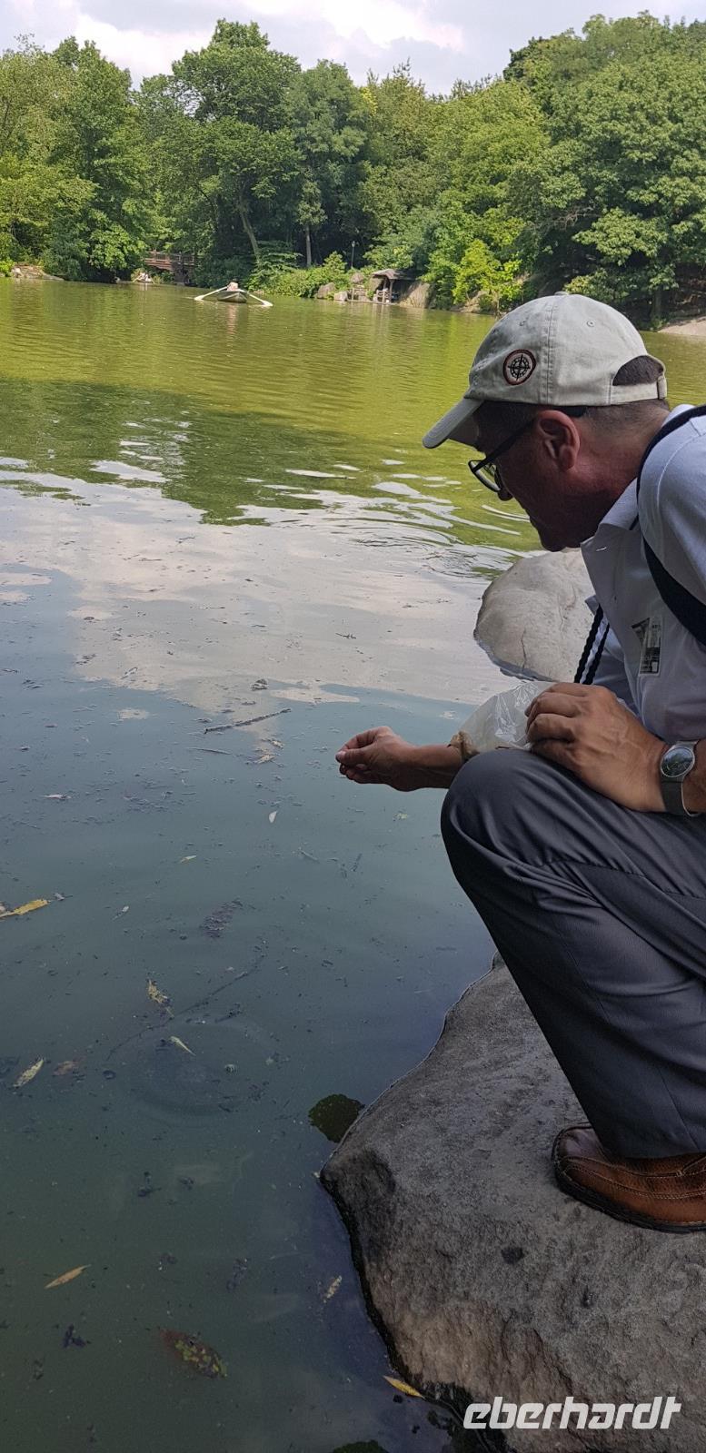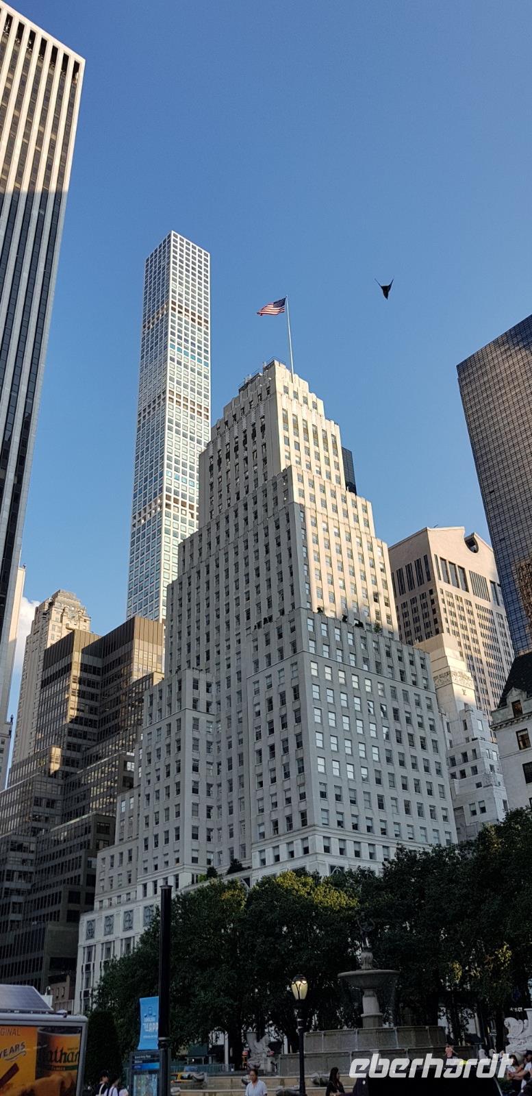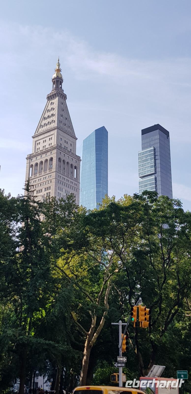 Nach unserer ersten Nacht im schönen Chambers Hotel, wurden wir bereits um 8:30Uhr von Reiseleiter Hans in der Hotellobby herzlich begrüßt. Gemeinsam gingen wir auf große Stadtrundfahrt durch Manhattan. Wir fuhren entlang der 5th Avenue zum berühmten Flatiron Building (dem Bügeleisenhaus) und blickten von dort aus das Empire State Building. Weiter ging es in Richtung Süd-Manhattan, von wo aus wir die nächste Stunde zu Fuß spazierten. Hans zeigte uns den neuen World Trade Center Complex mit dem neuen höchsten Gebäude der USA - dem Freedom Tower mit 541m höhe bzw. 1776 Fuß, was der Jahreszahl der Unabhängigkeitserklärung entspricht. Im selben Areal befindet sich außerdem der Ground Zero, wo ein beeindruckendes Mahnmal für Opfer der Terroranschläge vom 11.September 2001 errichtet wurde. Gleich daneben befindet sich der Survivor Tree - er ist der einzige Baum, der den Anschlag auf das WTC überstand. Wir gingen weiter zur Trinity Church, der Wallstreet und zum George Washington-Denkmal an der Federal Hall und lauschten gespannt Hans Erzählungen. Desweiteren bewunderten wir das Woolworth Building, einst das höchste Gebäude der Welt (erbaut von 1913 bis 1930), bis es vom Bank of Manhattan Building abgelöst wurde. Natürlich durfte bei unserer Tour die Besichtigung der Grand Central Station nicht fehlen - der Bahnhof mit der grandiosen Eingangshalle, den täglich Millionen Menschen auf ihren Weg zur Arbeit durchqueren. Auch unzählige Hollywoodfilme haben ihn bekannt gemacht.Nun ging es wieder in Richtung Upper Manhattan. Mittags gegen 12:30 erreichten wir das UN Hauptquartier, wo wir eine exklusive Führung durch die verschiedenen Versammlungssäle unternahmen. Nach so vielen Eindrücken, brauchten wir etwas Erholung mit einem Kontrastprogramm. Die fanden wir anschließend bei einem kurzen Besuch im Central Park. Wir spazierten zu einem kleinen See und Hans zeigte uns die zahlreichen Schildkröten die sofort auftauchten als Hans etwas Schildkrötenfutter verstreute. Zudem hatten wir von hier aus einen tollen Blick auf die nördliche Skyline und auf den Central Park. Nach dem kleinen Ausflug in die Natur ging es zurück in den Großstadtdschungel zum Rockefeller Center. Dort endete auch unsere Stadtrundfahrt und wir bedankten uns bei Hans mit einem Trinkgeld für den tollen Tag. Er ist ein klasse Reiseleiter und hat uns alles Wichtige über New York näher gebracht. Danach spazierten wir zum Hotel zurück und genossen etwas Freizeit. Am frühen Abend besuchten wir dann den Times Square und das Restaurant „The View", von wo aus wir eine grandiose Aussicht über die Skyline hatten. Wir waren so begeistert, dass wir unsere Speiße- und Getränke Flatrate noch um eine halbe Stunde verlängerten. Schließlich wurde es dunkel und wir beschlossen die bunten Lichter am Times Square noch ein wenig genauer anzuschauen. Gesagt getan... es war taghell und unglaublich gut besucht. Als ob hier heute ein Volksfest wäre....aber es ist jeden Tag so. Ein toller Tag geht zu Ende und wir freuen uns auf unser Bett im schönen Chambers Hotel. Gute Nacht Big Apple! :-)