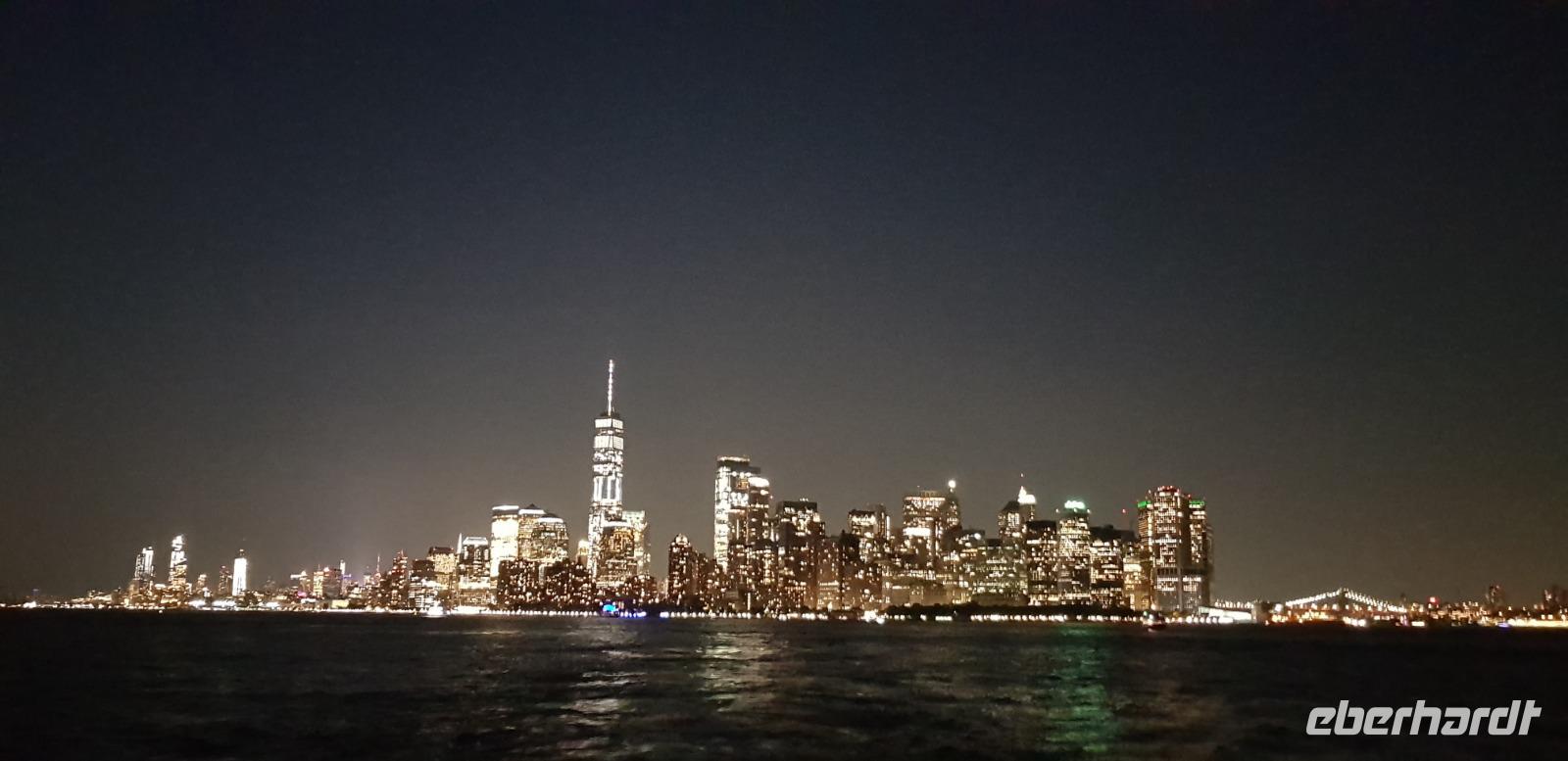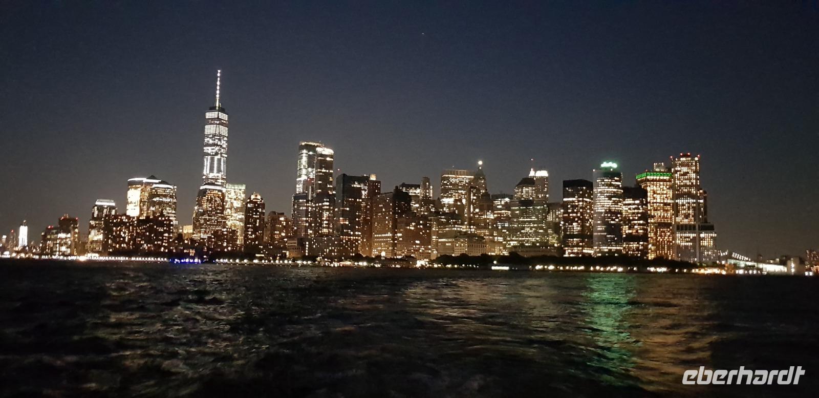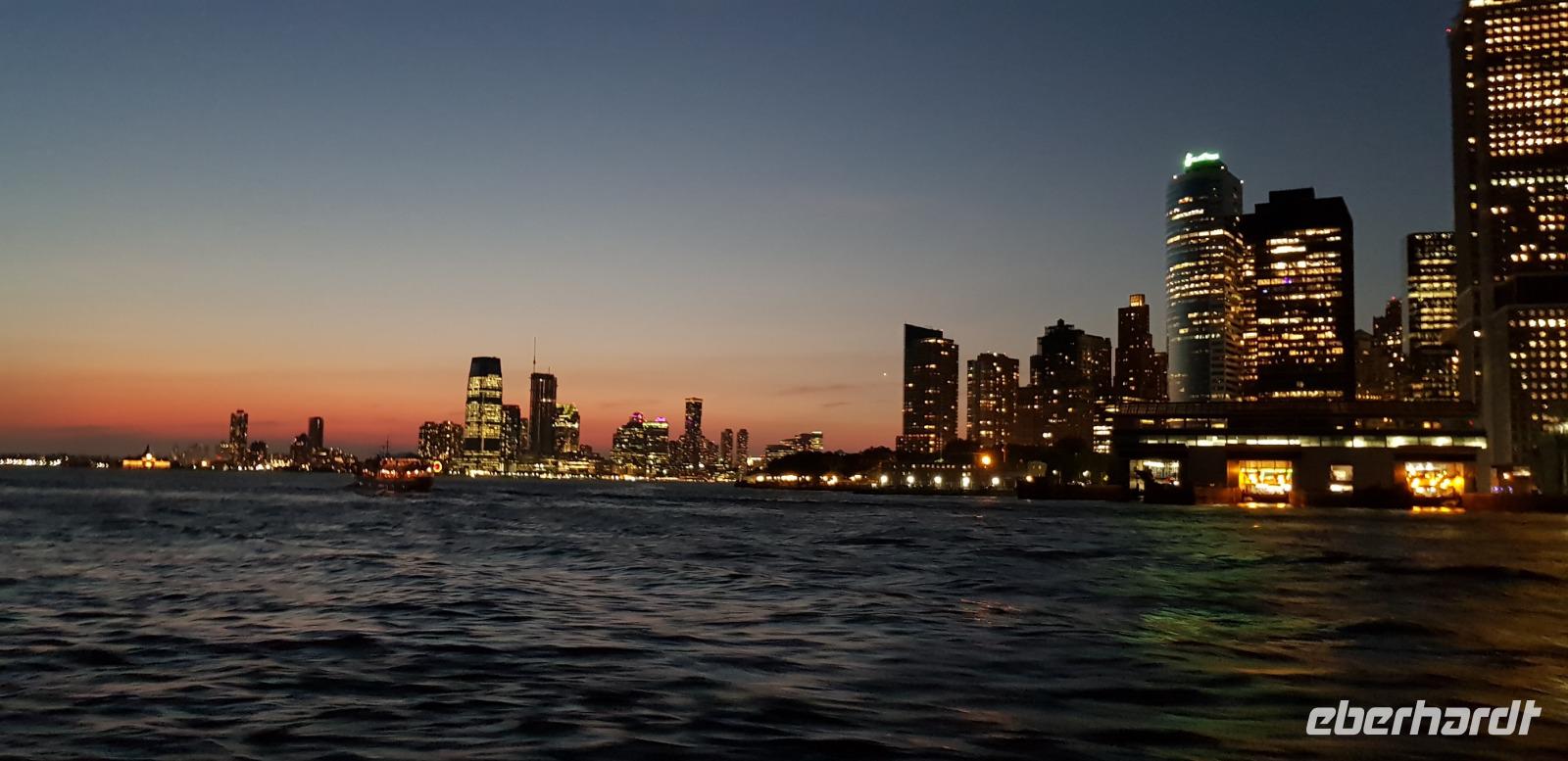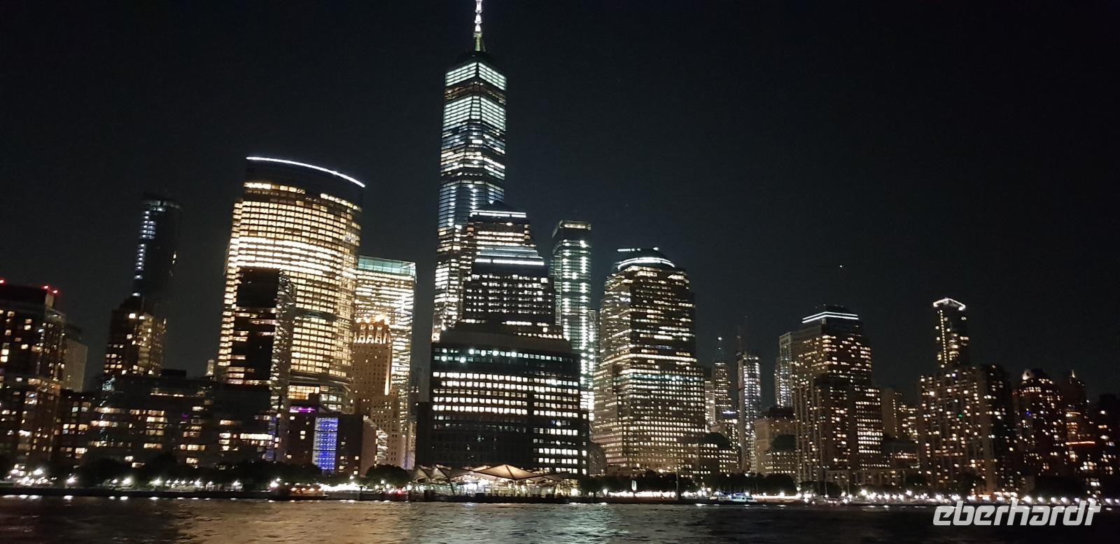 Nach ca. acht Stunden Flug überstanden wir die amerikanische Einreiseprozedur mit links und schon ging es mit einem großen Reisebus nach Manhattan. Ein kleiner Bus hätte uns natürlich auch gereicht. ;-) Wir hatten super schönes Wetter und erhaschten einen ersten Blick auf die beeindruckende Skyline. Im Hotel angekommen, bezogen wir unsere Zimmer und hatten noch ein wenig Zeit, bis es dann zum ersten gemeinsamen Abendessen ging. Um 18Uhr spazierten wir am Trump Tower vorbei und knipsten am Rand des Central Parks die ersten tollen Fotos. Nach dem einstündigen Spaziergang erreichten wir schließlich unser heutiges Restaurant - das „Benihana New York". Dies ist keine gewöhnliche Restaurantkette, sondern ein Edel Japaner mit live-cooking. Es gab Lobster und Filet Mignon mit diversen Beilagen. Das Essen wurde uns direkt am Tisch auf einer Grillplatte zubereitet. Und da das Auge bekanntlich mit isst, gab es zwischendurch immer wieder tolle Showeinlagen. Es war ein tolles Erlebnis und es schmeckte einfach hervorragend. Gut gesättigt spazierten einige mit mir noch zum Times Square, um die bunten Leuchtreklamen bei Nacht zu bestaunen. Ein klasse Abschluss unseres ersten NYC - abends.