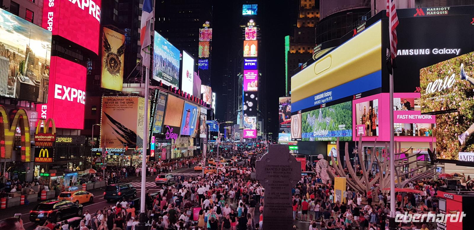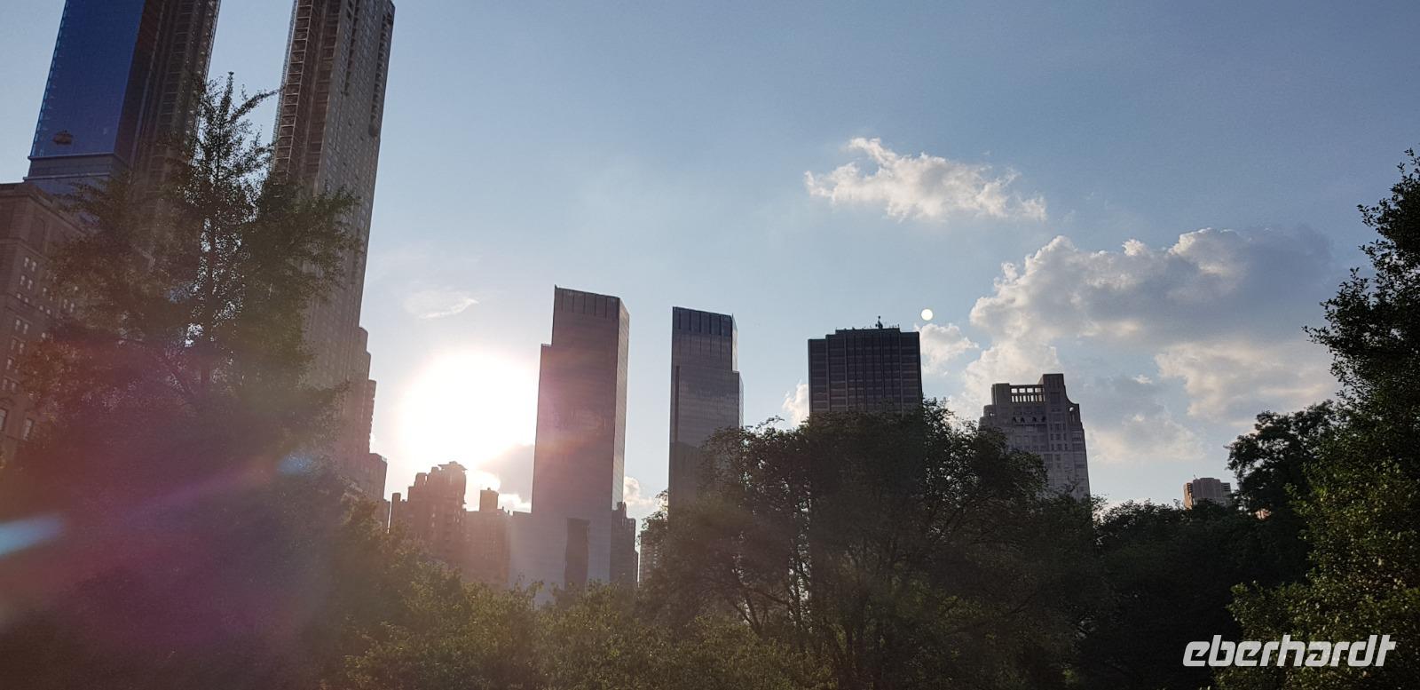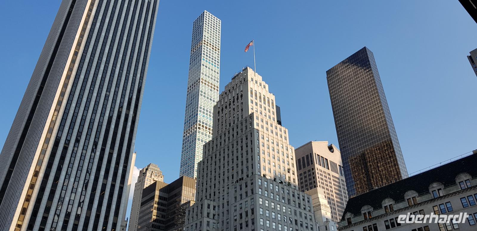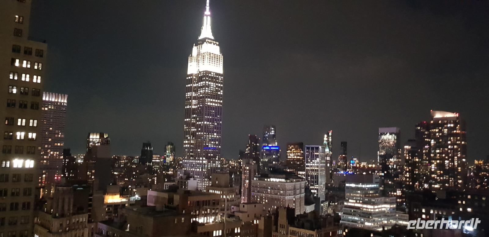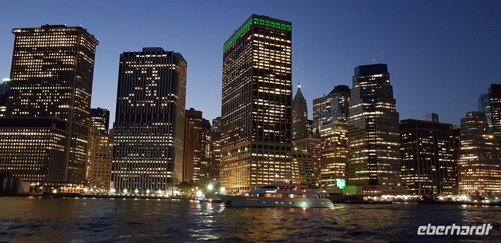 Nach ca. acht Stunden Flug überstanden wir die amerikanische Einreiseprozedur mit links und schon ging es mit einem großen Reisebus nach Manhattan. Ein kleiner Bus hätte uns natürlich auch gereicht. ;-) Wir hatten super schönes Wetter und erhaschten einen ersten Blick auf die beeindruckende Skyline. Im Hotel angekommen, bezogen wir unsere Zimmer und hatten noch ein wenig Zeit, bis es dann zum ersten gemeinsamen Abendessen ging. Um 18Uhr spazierten wir am Trump Tower vorbei und knipsten am Rand des Central Parks die ersten tollen Fotos. Nach dem einstündigen Spaziergang erreichten wir schließlich unser heutiges Restaurant - das „Benihana New York". Dies ist keine gewöhnliche Restaurantkette, sondern ein Edel Japaner mit live-cooking. Es gab Lobster und Filet Mignon mit diversen Beilagen. Das Essen wurde uns direkt am Tisch auf einer Grillplatte zubereitet. Und da das Auge bekanntlich mit isst, gab es zwischendurch immer wieder tolle Showeinlagen. Es war ein tolles Erlebnis und es schmeckte einfach hervorragend. Gut gesättigt spazierten einige mit mir noch zum Times Square, um die bunten Leuchtreklamen bei Nacht zu bestaunen. Ein klasse Abschluss unseres ersten NYC - abends.