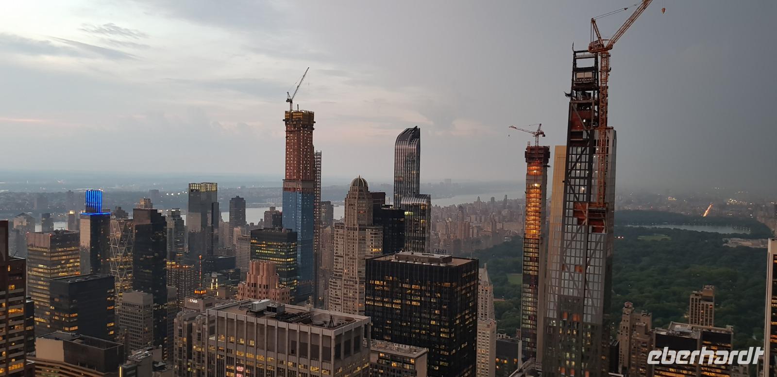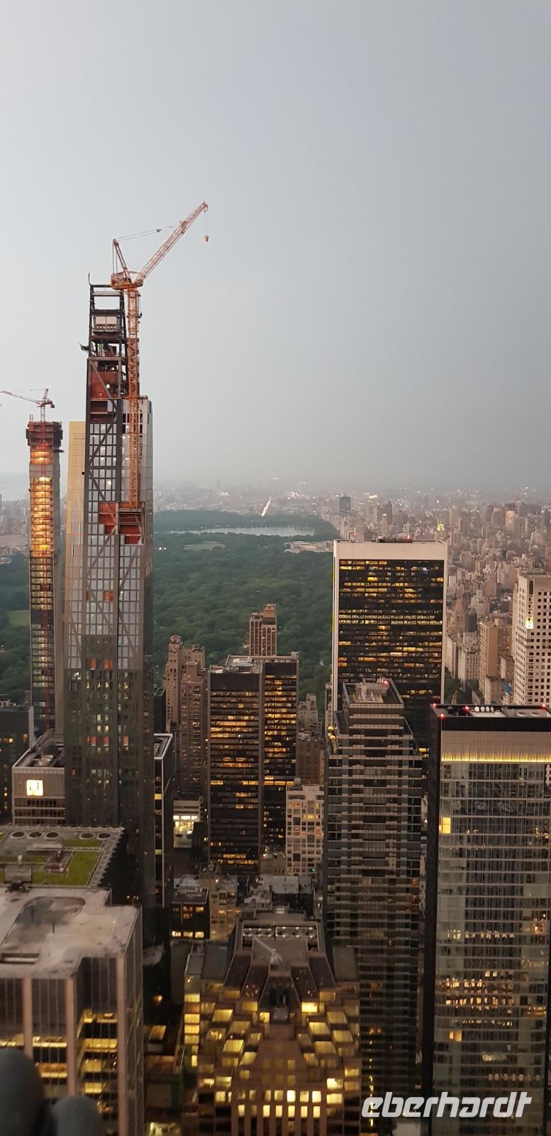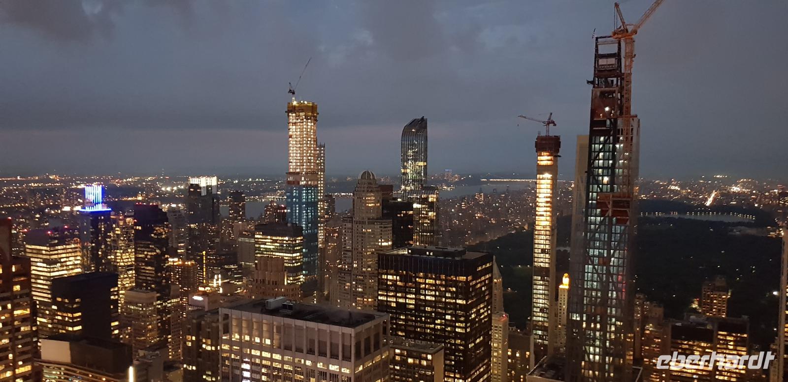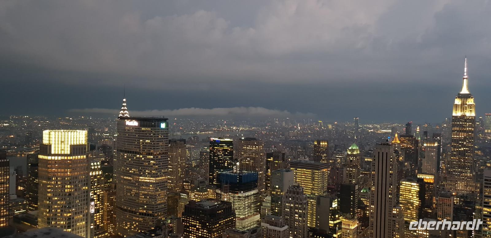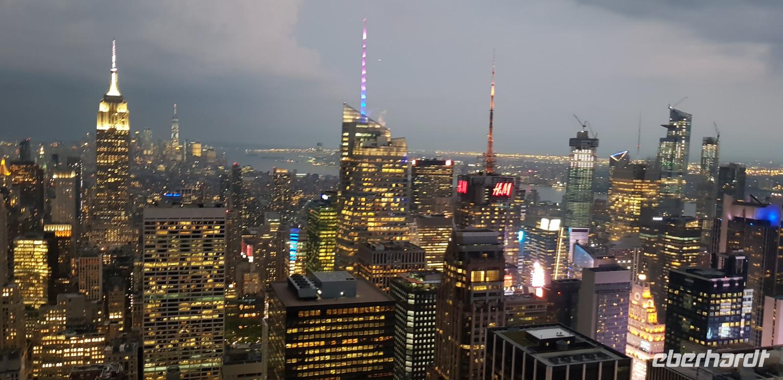 Am späten Nachmittag fuhren wir wieder mit der Subway zurück und besuchten noch die Aussichtsplattform „Top of the Rocks" im Rockefaller Center. Auch von hier war die Aussicht überwältigend. Jedoch begann es zu Donnern und Blitzen, was zu ganz besonderen Fotos führte. Als dann die Regenfront immer näher kam, schauten wir uns die Stadt weiter von drinnen an. Nichts desto trotz war es ein tolles Erlebnis.