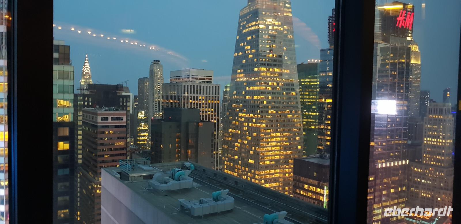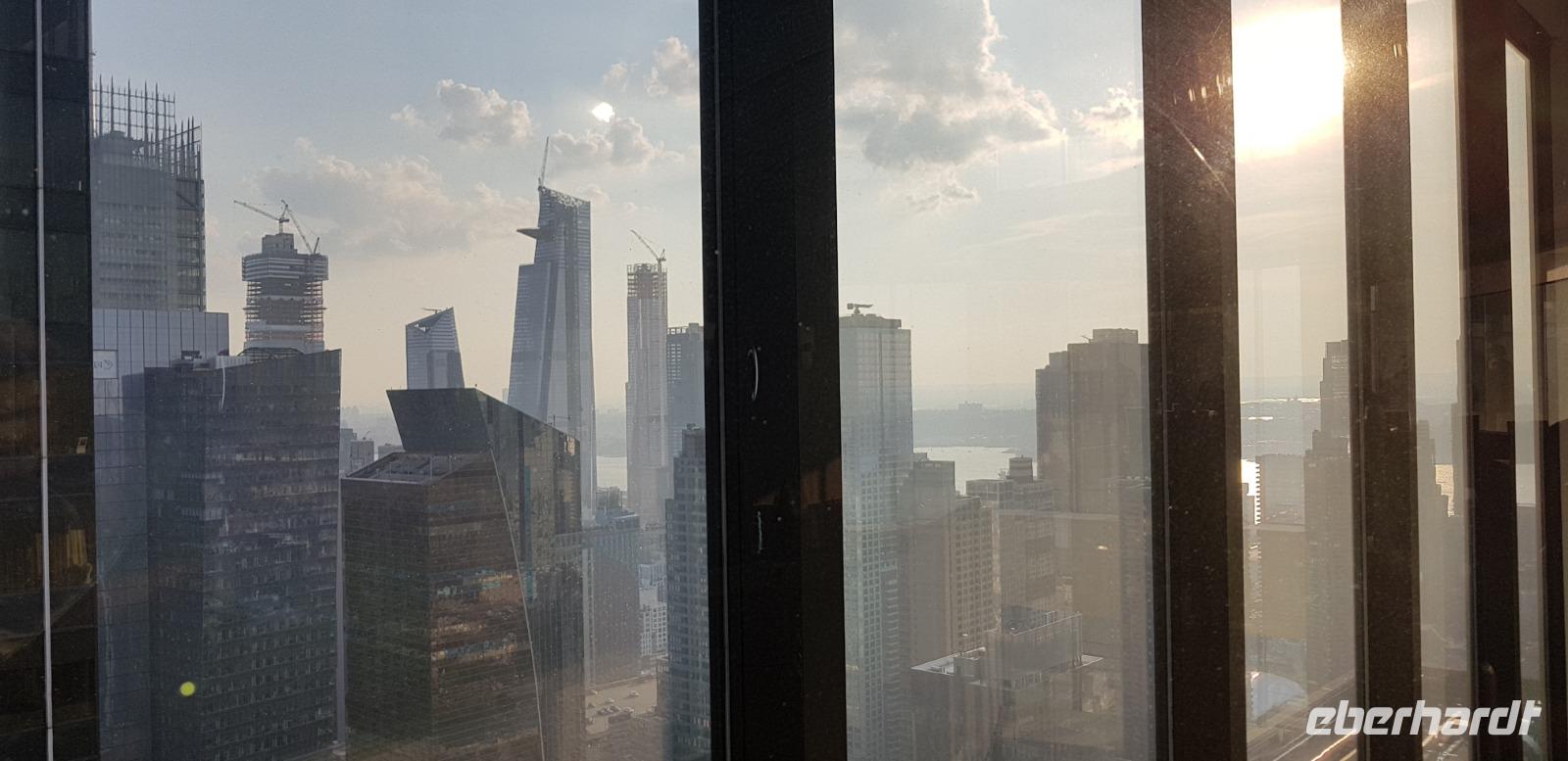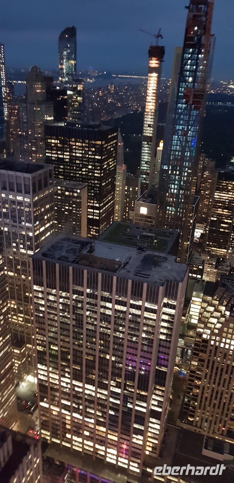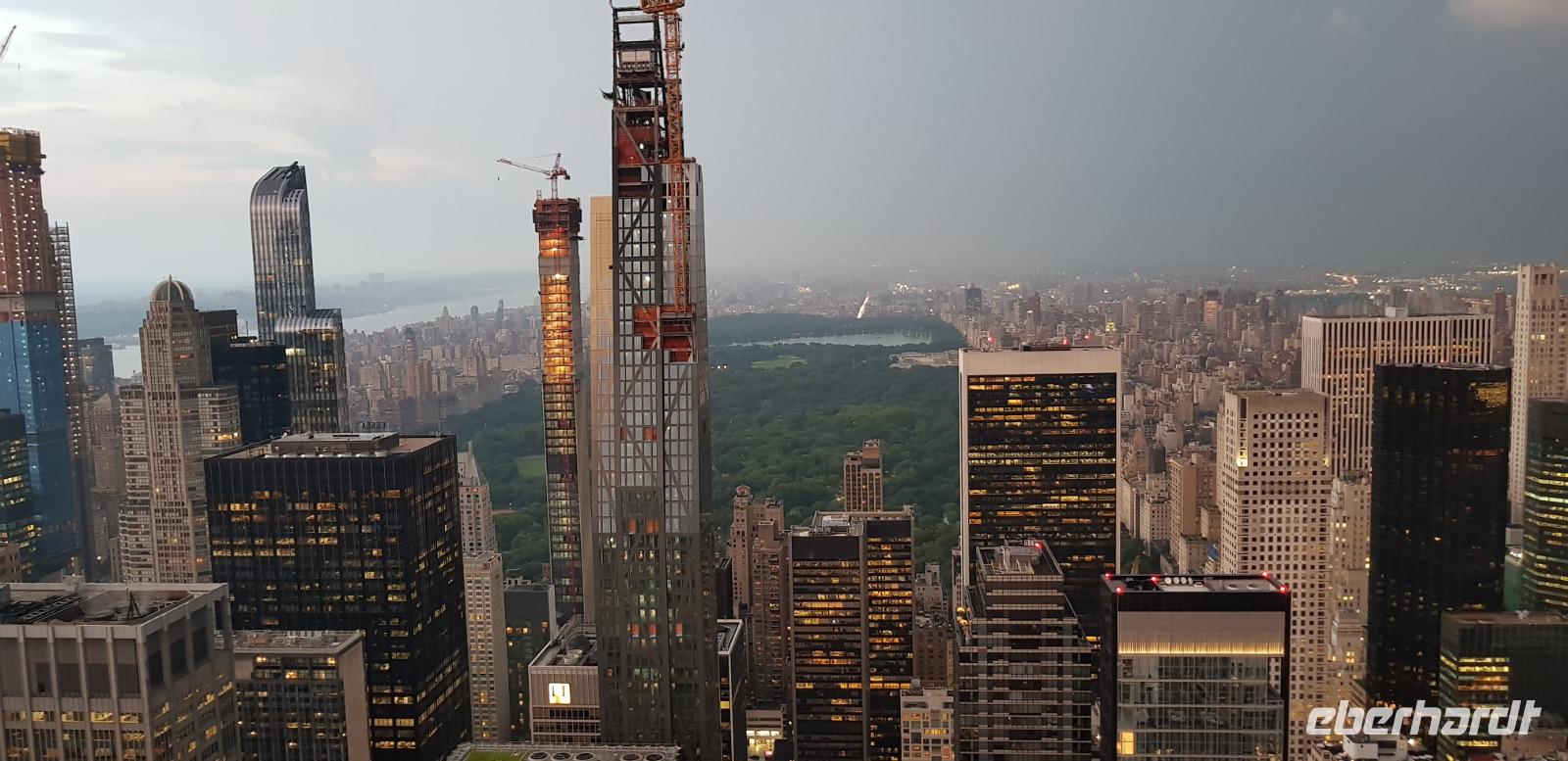 Am späten Nachmittag fuhren wir wieder mit der Subway zurück und besuchten noch die Aussichtsplattform „Top of the Rocks" im Rockefaller Center. Auch von hier war die Aussicht überwältigend. Jedoch begann es zu Donnern und Blitzen, was zu ganz besonderen Fotos führte. Als dann die Regenfront immer näher kam, schauten wir uns die Stadt weiter von drinnen an. Nichts desto trotz war es ein tolles Erlebnis.