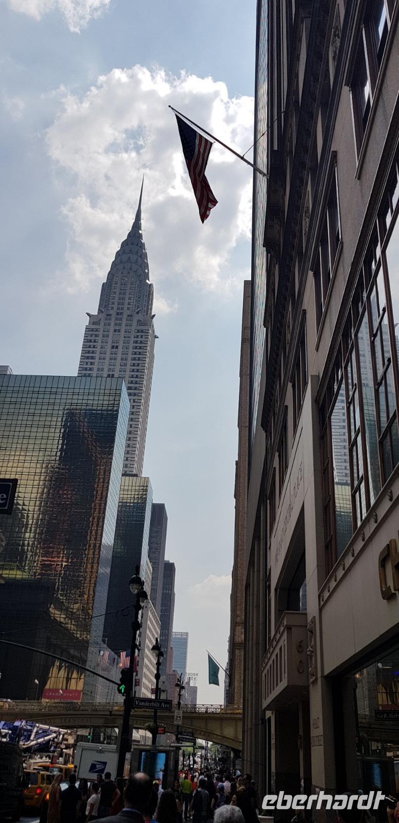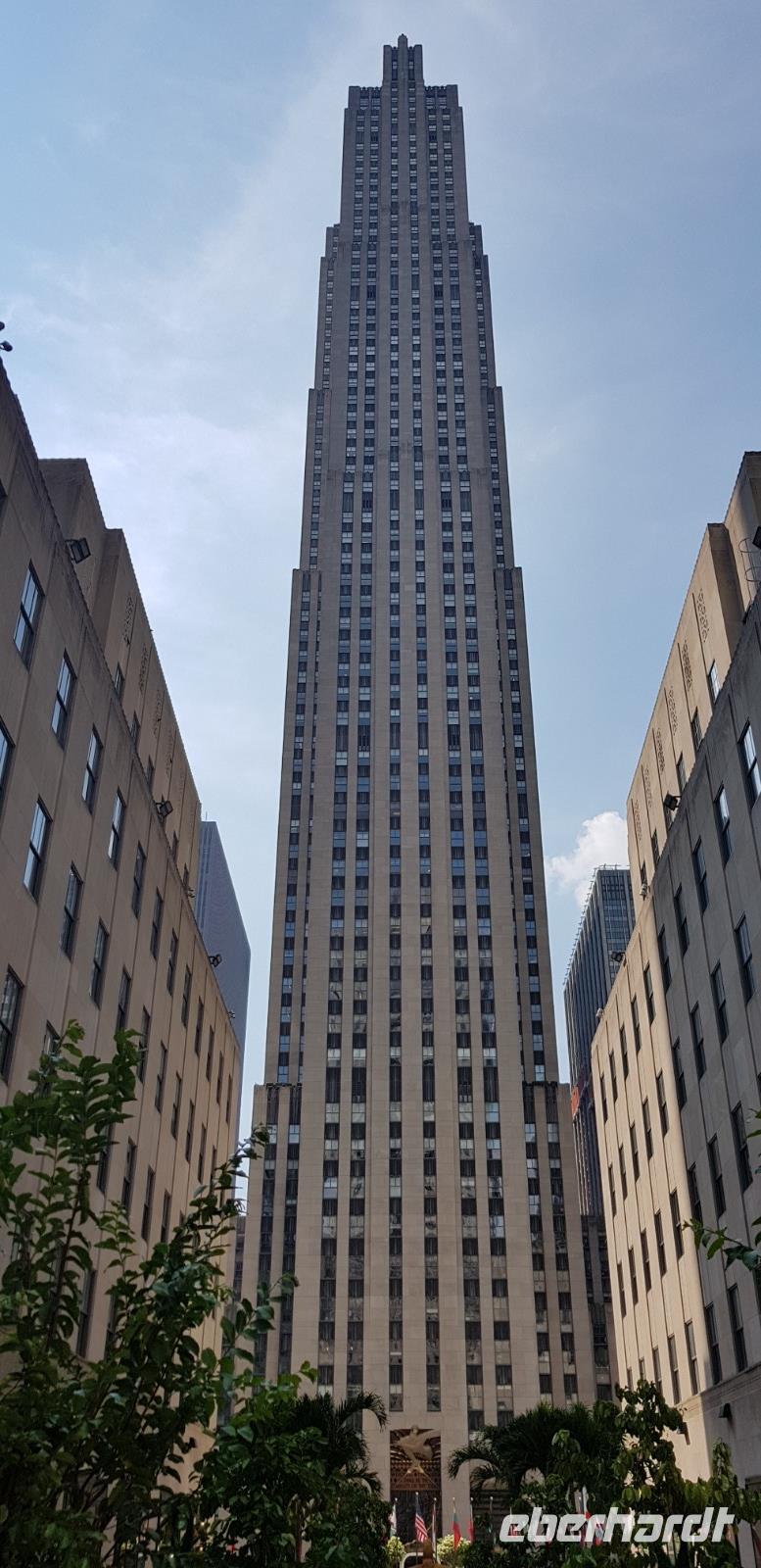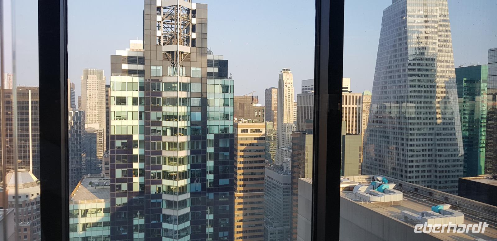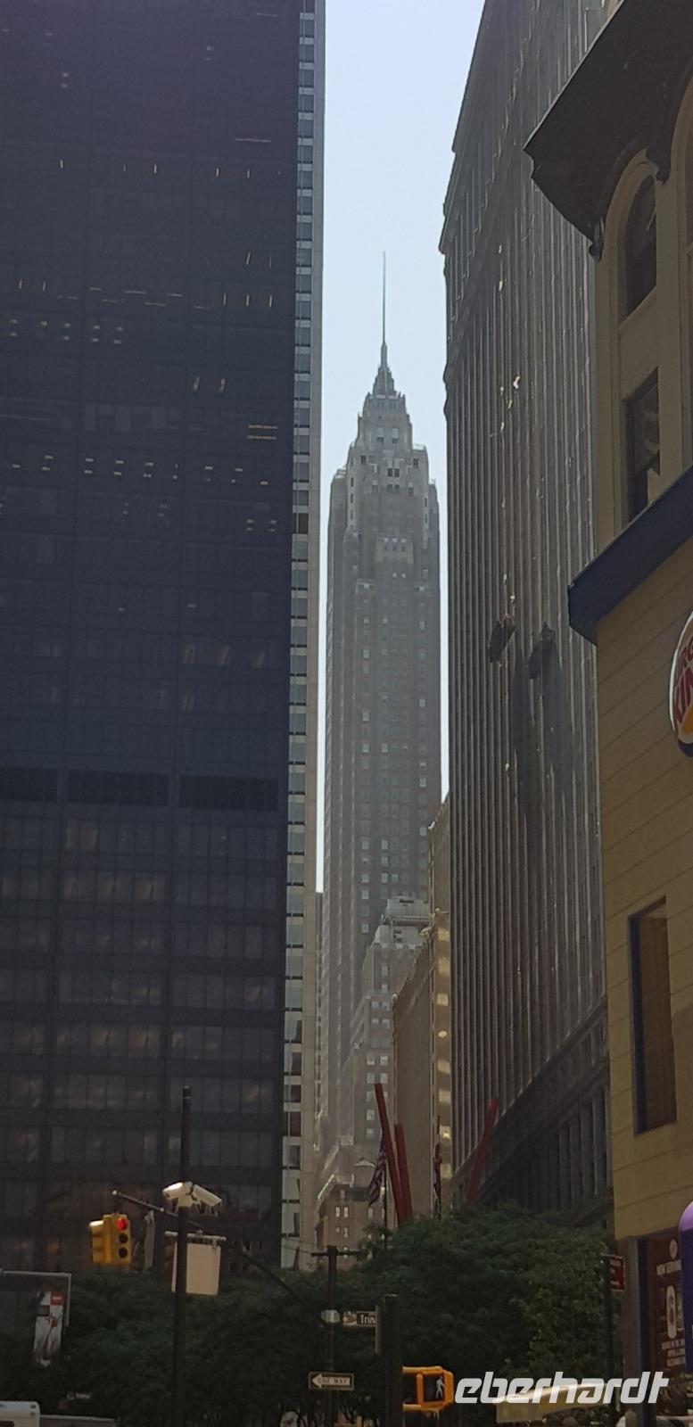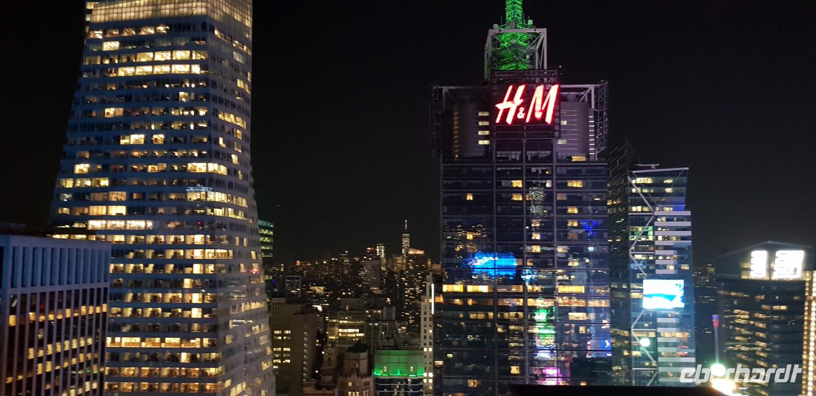 Am späten Nachmittag fuhren wir wieder mit der Subway zurück und besuchten noch die Aussichtsplattform „Top of the Rocks" im Rockefaller Center. Auch von hier war die Aussicht überwältigend. Jedoch begann es zu Donnern und Blitzen, was zu ganz besonderen Fotos führte. Als dann die Regenfront immer näher kam, schauten wir uns die Stadt weiter von drinnen an. Nichts desto trotz war es ein tolles Erlebnis.