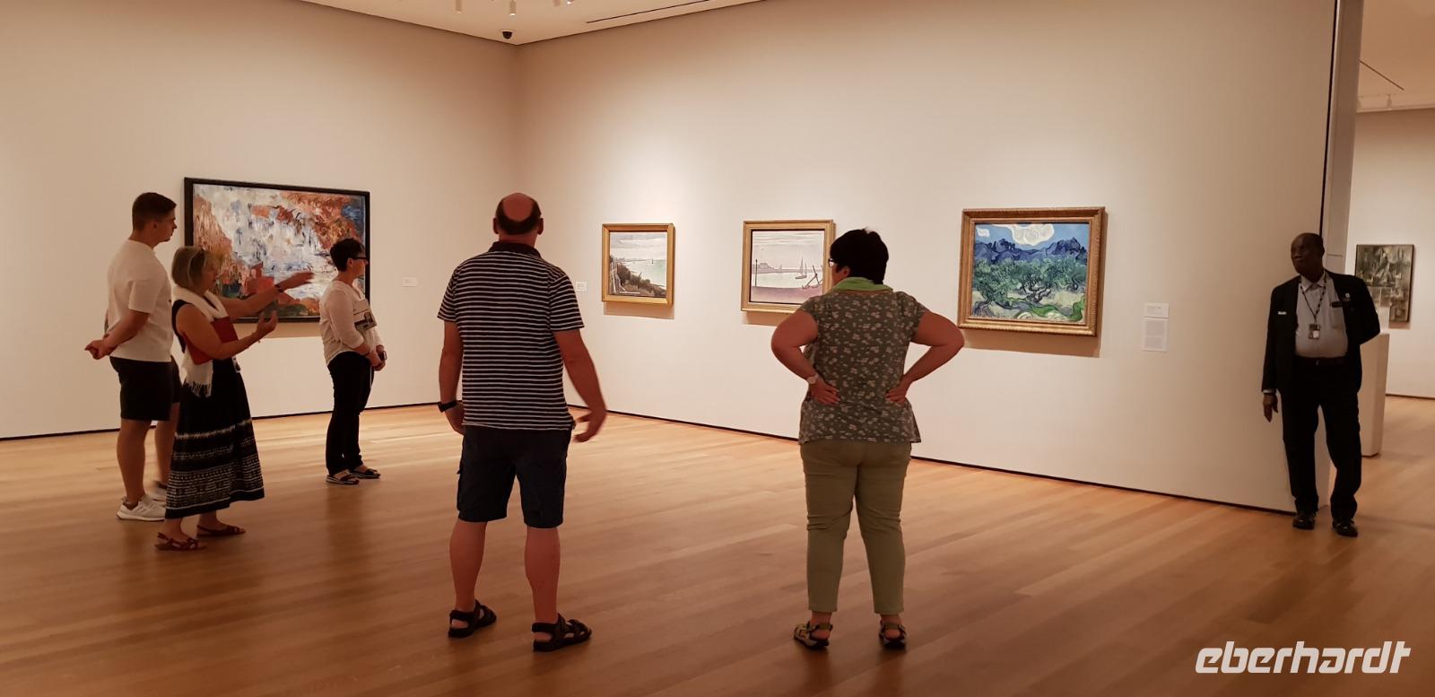 Heute besuchten wir das weltbekannte Kunstmuseum MoMa, welches sich nur 3 Häuserblocks von uns weg befand. Dort hatten wir eine exklusive Führung vor den Öffnungszeiten von Elisabeth, einer deutschsprachigen Lektorin. Sie führte uns über eine Stunde durch das Museum und schließlich standen wir ganz alleine vor weltbekannten Werken von Gaugin, Picasso oder Vincent Van Gogh. Was für eine Ehre. :-)