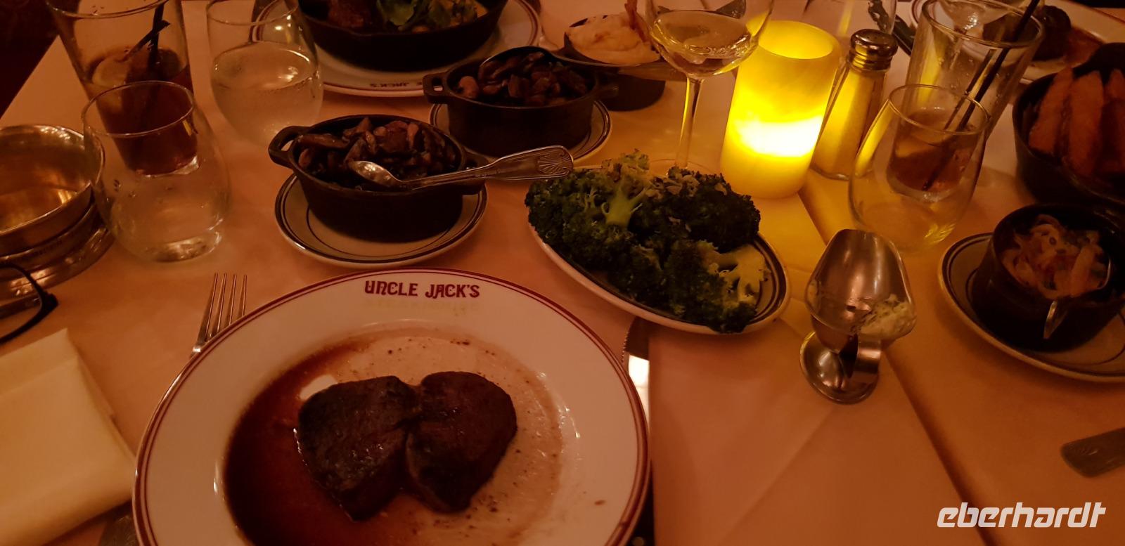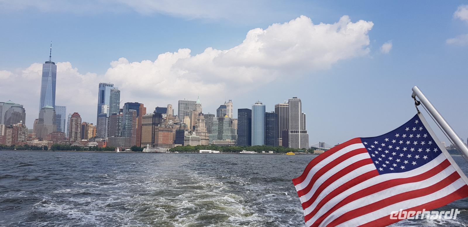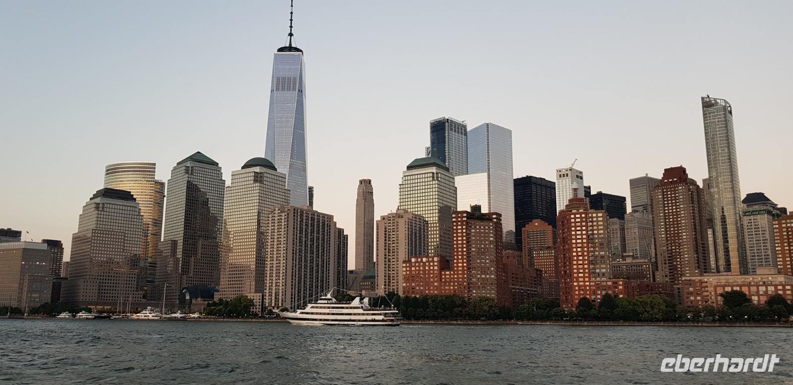 Bereits um 8:30Uhr fuhren wir mit der Subway in Richtung Süd Manhattan, um pünktlich am Heli-Port zu sein. Dort checkte ich alle Gäste zum Helikopter fliegen ein. Nach einer kurzen Einweisung und dem Sicherheitsvideo ging es auch schon los. Der Heli startete und flog in Richtung Freiheitsstatue, Lower Manhattan und Upper Manhattan auf dem Hudson River entlang und drehte schließlich wieder. Der Flug dauerte rund 15min. und war ein absolutes Highlight auf dieser Reise. Gut gelandet und sichtlich begeistert spazierten wir in Ruhe in Richtung 9/11 Museum, wo zwei Reisegäste einen Museumsbesuch einlegten. Mit allen weiteren Gästen fuhr ich in der Zeit in Richtung Macys, wo wir uns etwas Freizeit zum Shoppen gönnten. Nachmittags trafen wir uns wieder am Ground Zero, um auf das One World Trade hinauf zu fahren. Er ist mit seinen 541m Höhe das höchste Gebäude von Nordamerika und gleichzeitig das höchste von Manhattan. Nach der Sicherheitskontrolle, fuhren wir hinauf und waren begeistert von der gigantischen Aussicht. Wir ließen uns rund 45min. Zeit, um alles genau zu besichtigen. Anschließend ging es mit der Subway gemütlich zum Hotel zurück, wo wir noch etwas Freizeit bis zum Abendessen hatten. Für heute Abend hatte ich einen Tisch in einem angesagten Steakhouse für uns reserviert. Gleich um die Ecke von unserem Hotel liegt das Restaurant „Uncle Jacks", wo wir mit großen Erwartungen unsere Steaks bestellten. Uns hat man dabei nicht zu viel versprochen, es schmeckte einfach hervorragend. Perfekt gebraten ob Medium oder Durch, es war einfach ein Genuss! Gut gesättigt fuhren wir anschließend mit zwei Taxen zur Skybar „The Skylark", um von da aus die Aussicht über die Stadt zu genießen. Mit einem Cocktail oder Bier in der Hand blickten wir über die Lichter der Stadt und ließen den Abend in Ruhe ausklingen.