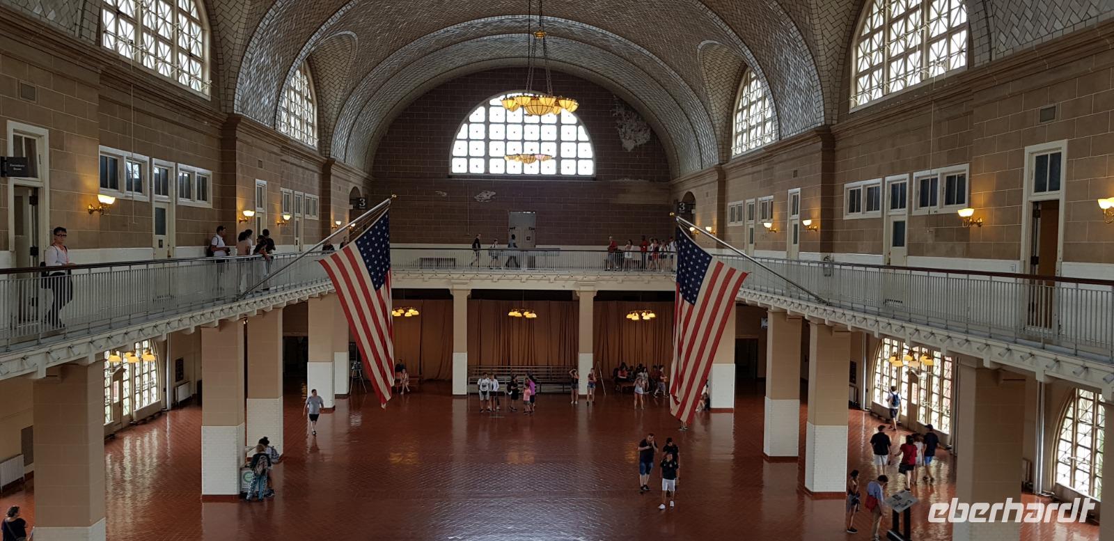 Danach ging es weiter mit der Subway in Richtung Battery Park, um von da die Fähre zur Freiheitsstatue zu nehmen. Dort angekommen, hatten wir genügend Zeit, um die Eiserne Lady zu bewundern. Weiter ging es mit der Fähre nach Ellis Island, dem Einwanderer-Museum. Von hier aus versuchten zahlreiche Ankömmlinge Anfang des 20. Jahrhunderts, ihren amerikanischen Traum zu verwirklichen. Wir besichtigen u.a. die Eingangshalle, in der alle Einwanderer registriert wurden. Durch die Audioguides konnten wir uns alles auf Deutsch anhören. Sehr praktisch. ;)