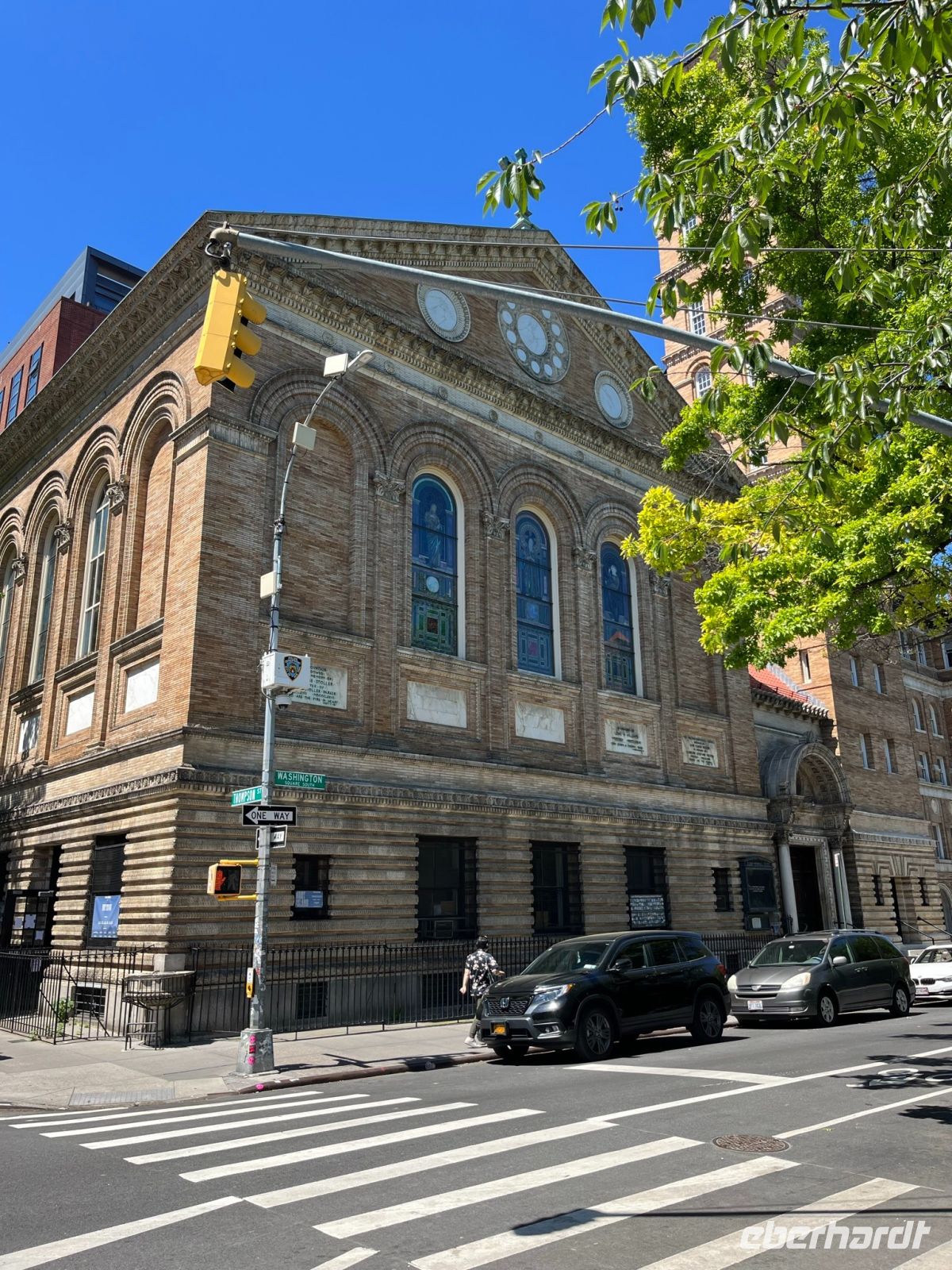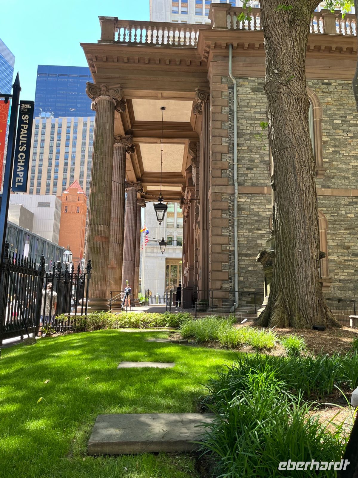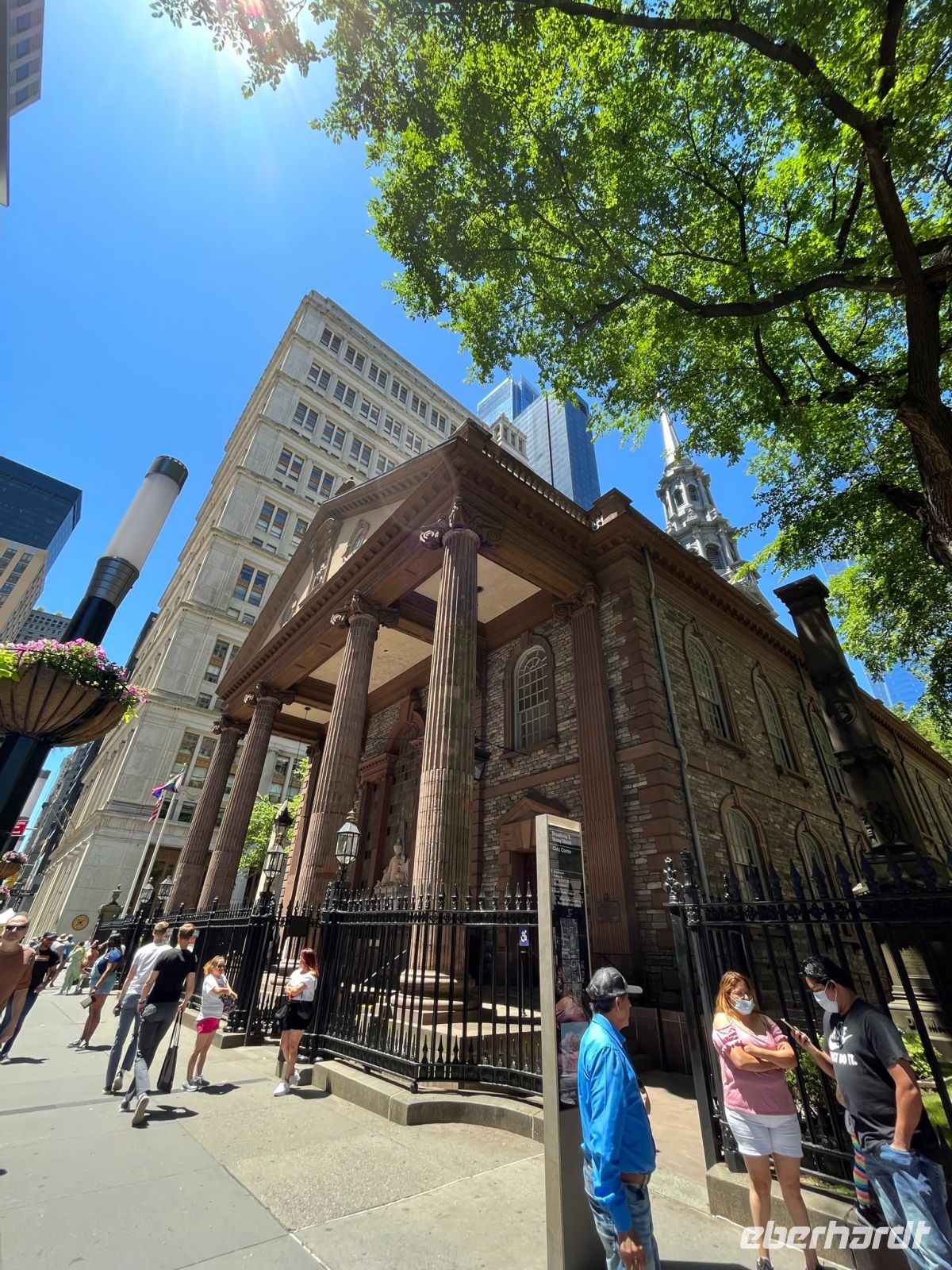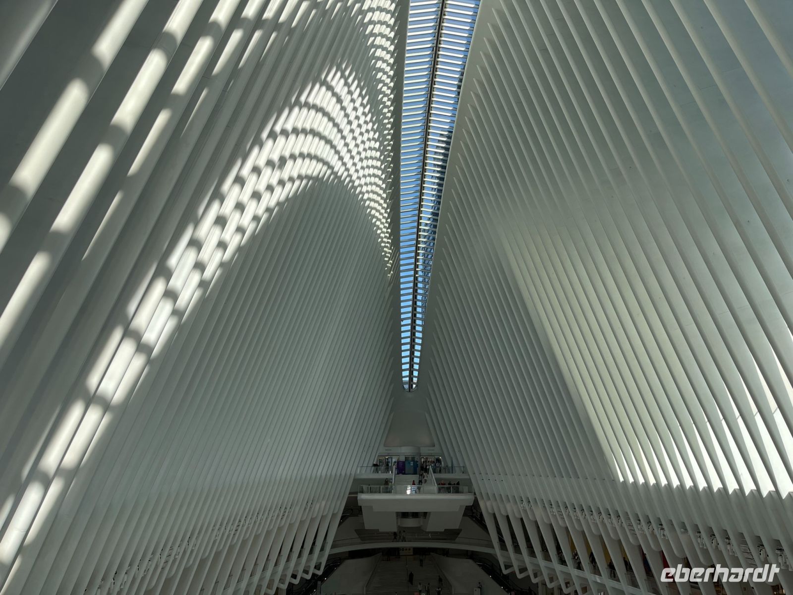 An der St. Pauls Chapel machten wir Halt, um zur Wallstreet zu laufen. Die Chapel scheint ein Wunder zu sein, so sagen es die New Yorker. Denn diese Kirche blieb unversehrt, als die Zwillingstürme und die anderen Gebäude ringsum einstürzten. Wir schauten uns den „Neuen“ Bahnhof Oculus an, einer der teuersten Bahnhöfe der Welt. 4 Milliarden Dollar hat der Bau gekostet. Die Architektur ist etwas Besonderes und ein beliebtes Fotomotiv. Es soll einen Phoenix darstellen, der aus der Asche (der Asche aus 9/11) aufsteigt.