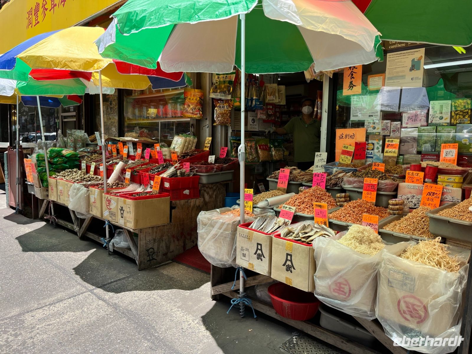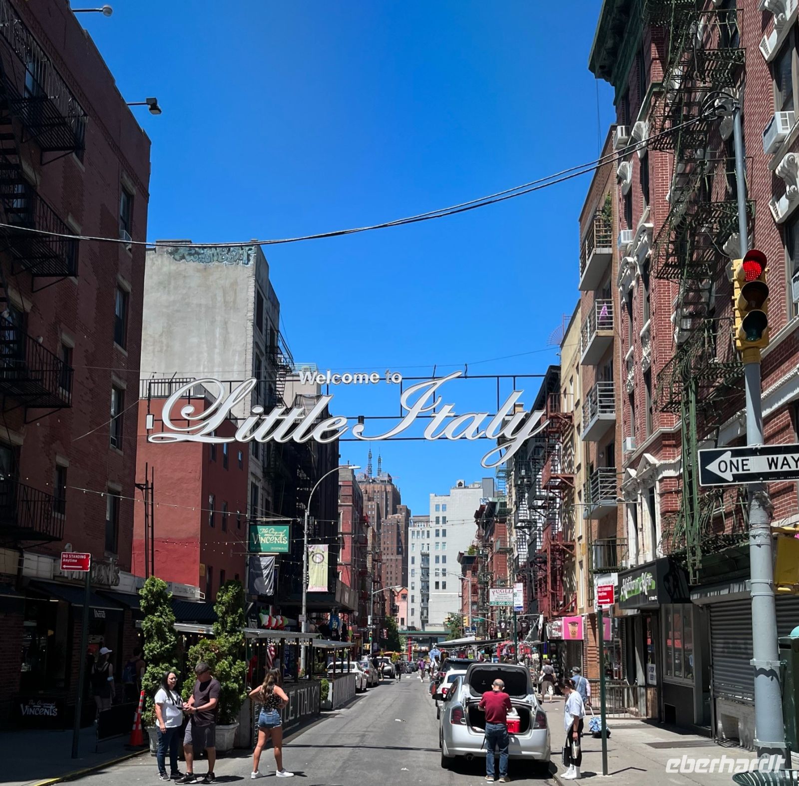 Über die Grandstreet fuhren wir durch Chinatown und sahen die frischen Märkte mit Obst, Gemüse und Fisch. Alle Schilder waren mit chinesischen Zeichen, kaum ein Wort Englisch. Chinatown in Manhattan ist die größte chinesische Gemeinde außerhalb Chinas und sie wird immer größer. So ist es kein Wunder, dass das angrenzende Viertel Little Italy immer kleiner wurde, weil Chinatown sich ausbreiten musste.