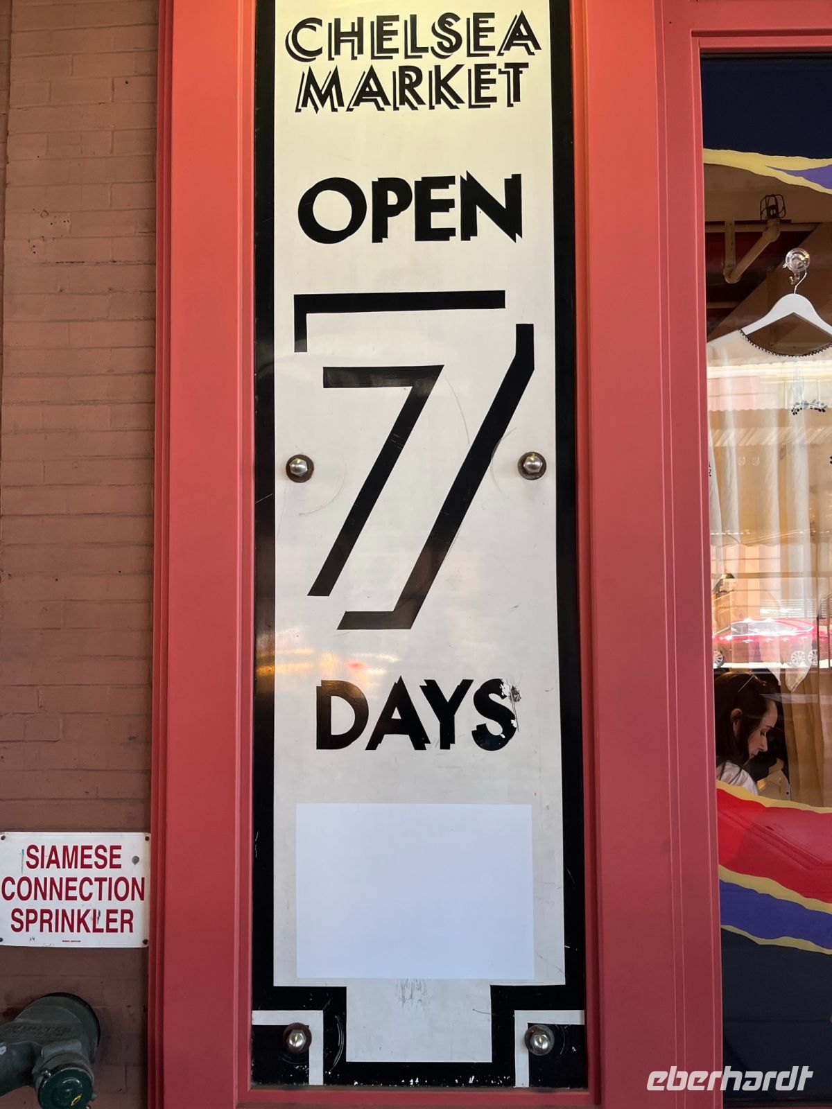 Unsere Mittagspause verbrachten wir im Chelsea Market, der alten Oriokeksfabrik, die zu einer großartigen Markthalle umgebaut wurde. Neben kleinen Spezialitätenläden, Buchhandlungen und Boutiquen bekommt man hier auch eine deutsche Currywurst.
