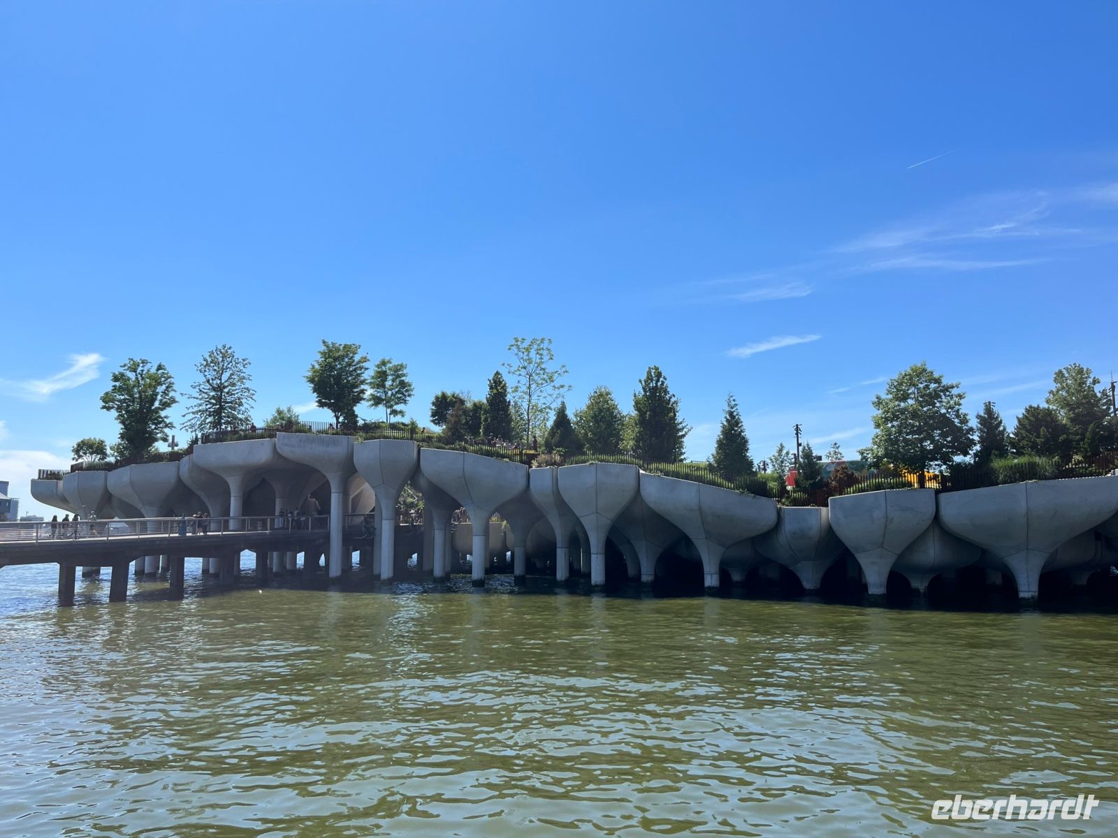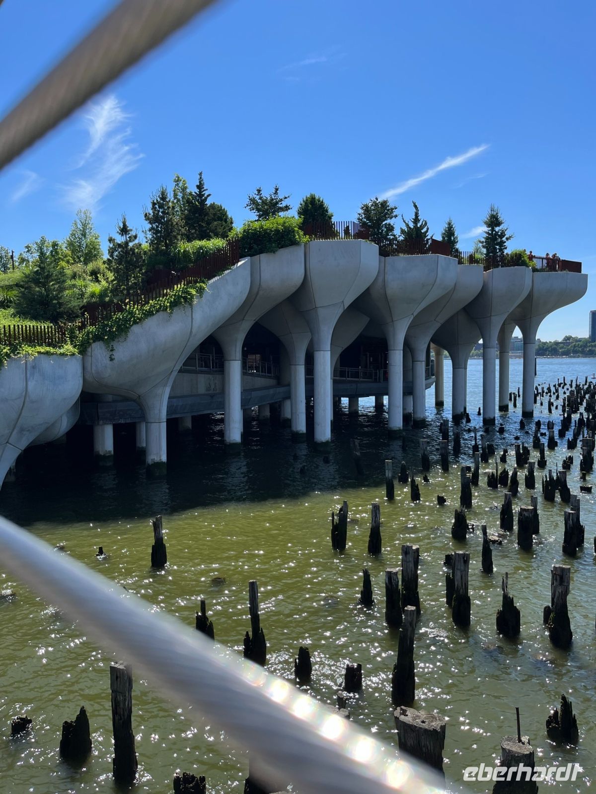 Aus dem Bus heraus entdeckten wir etwas Neues - Little Island. Bevor es also auf die Highline ging, schauten wir uns die im Mai eröffneten Betontulpen an. Auf 280 Pfählen wurde der kleine Inselpark am Hudson River angelegt, wo viele New Yorker entspannen, spazieren oder Kaffee trinken.