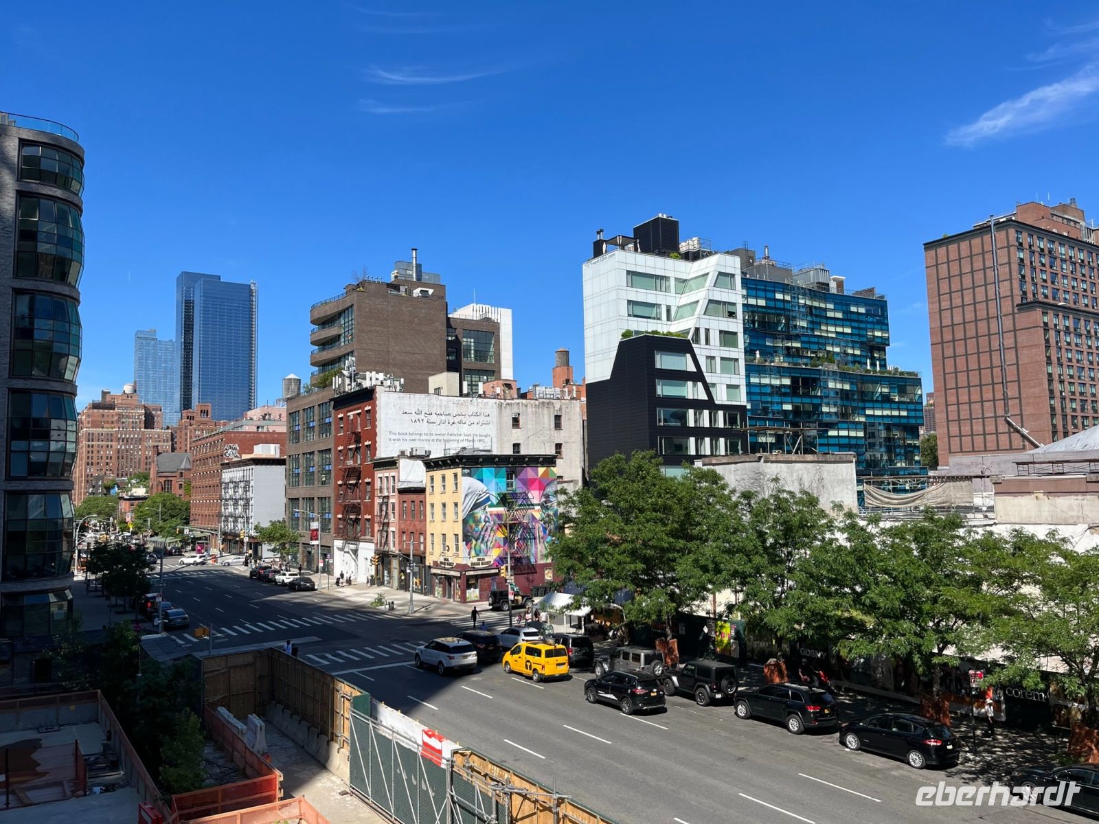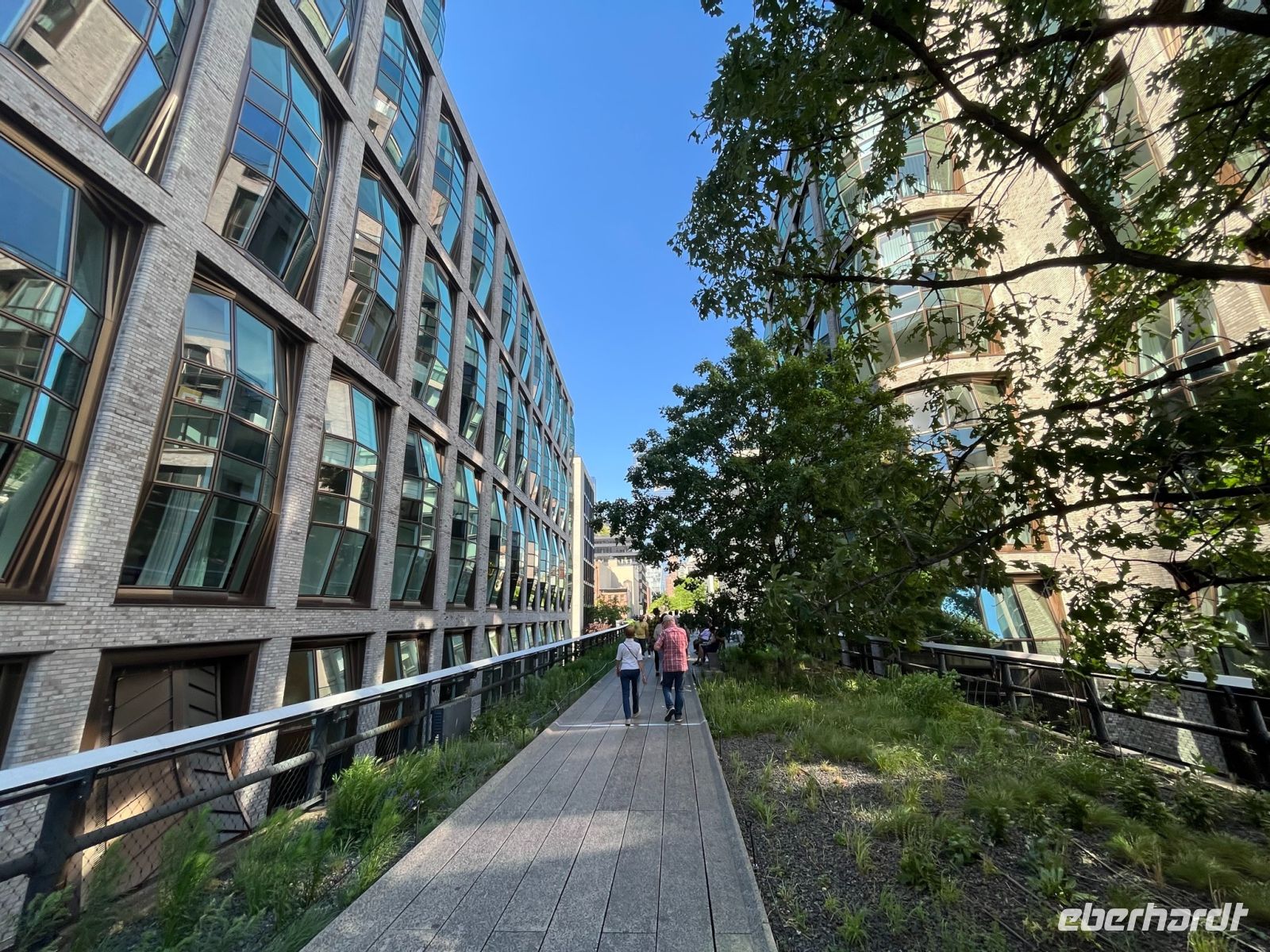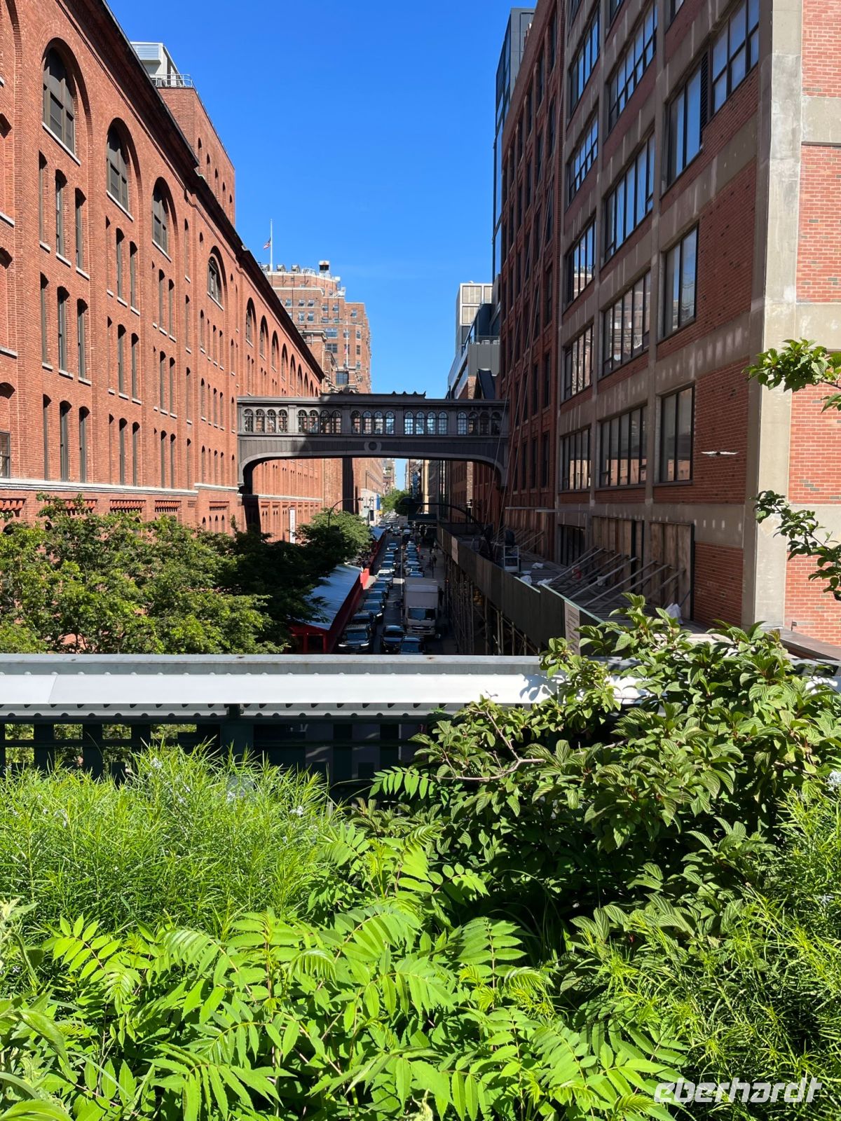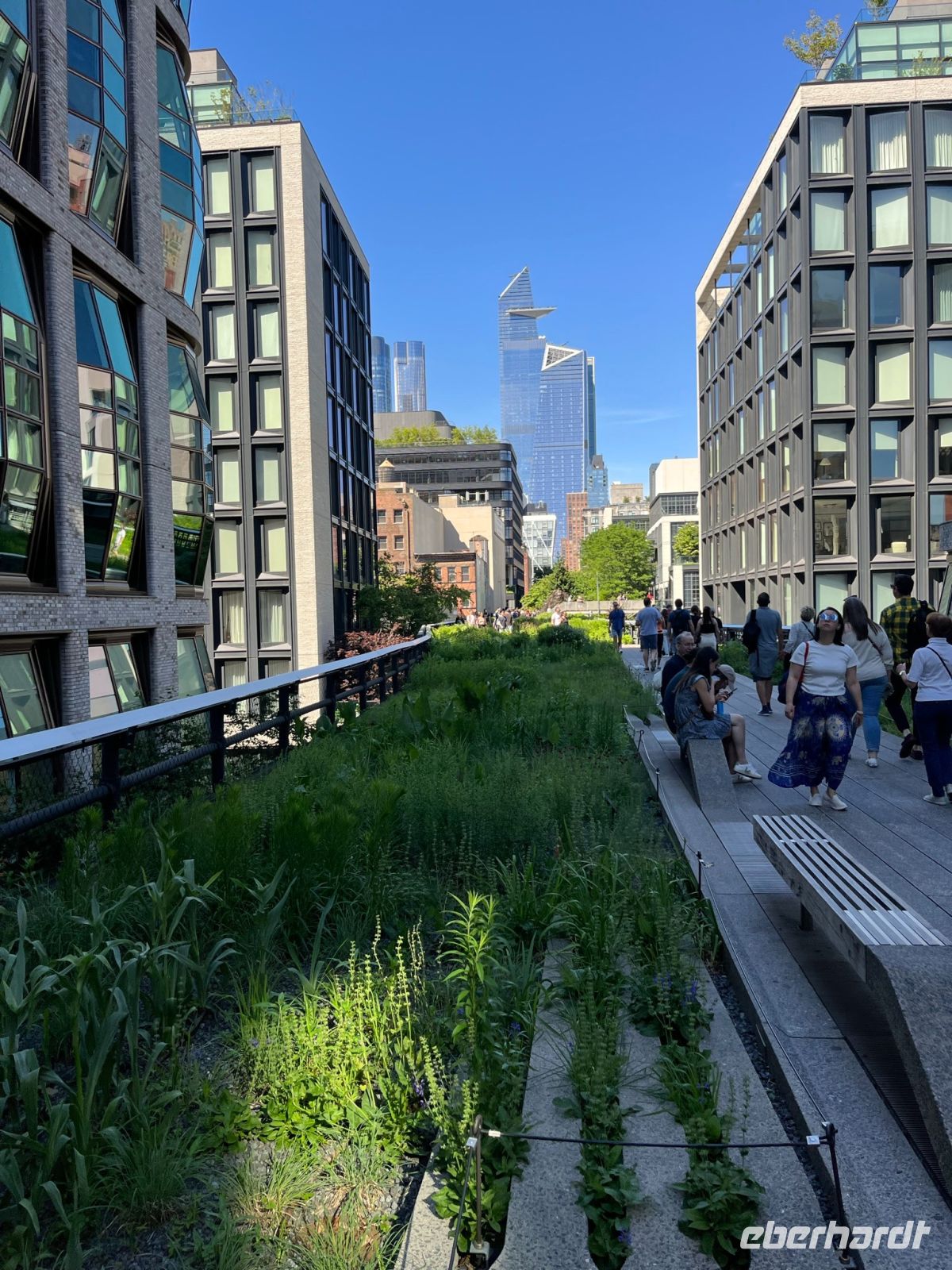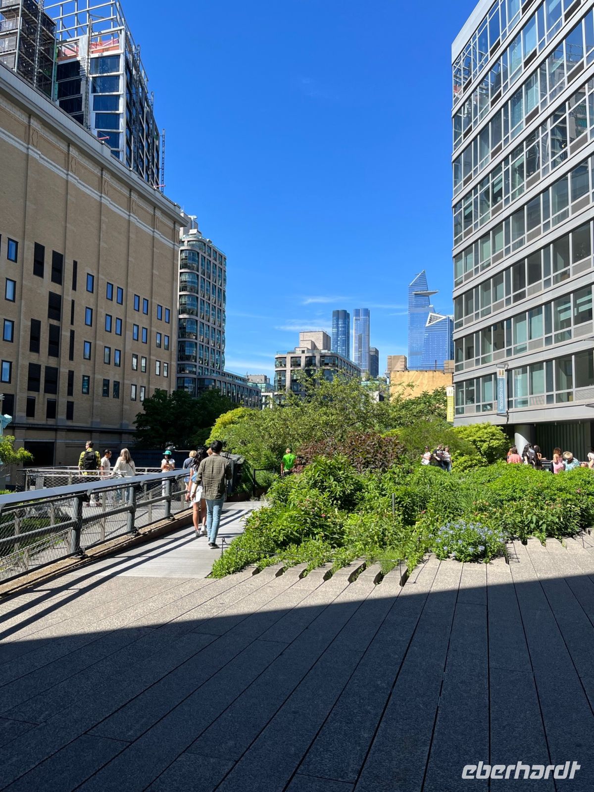Als nächstes spazierten wir über den 1,8 km langen Highline Park, der 7,5 Meter hoch über den Straßen New Yorks lieht und liebevoll konzipiert wurde. Wen man Glück hat findet man Platz auf einer der Sonnenliegen und entspannt unter exotischen Pflanzen.