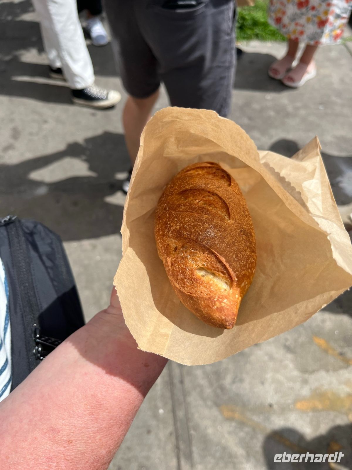 Nach dem Frühstück besuchten wir heute einen anderen Stadtteil. Mit der U-Bahn ging es in den Süden New Yorks, nach Brooklyn. In Brooklyn wurden wir von Greg empfangen, der uns auf eine Foodtour mitnahm. Wir starteten mit einem kleinen Familienunternehmen, was angeblich die besten Baguettes außerhalb Frankreichs backt. Wir verkosteten Baguette und Broicher.