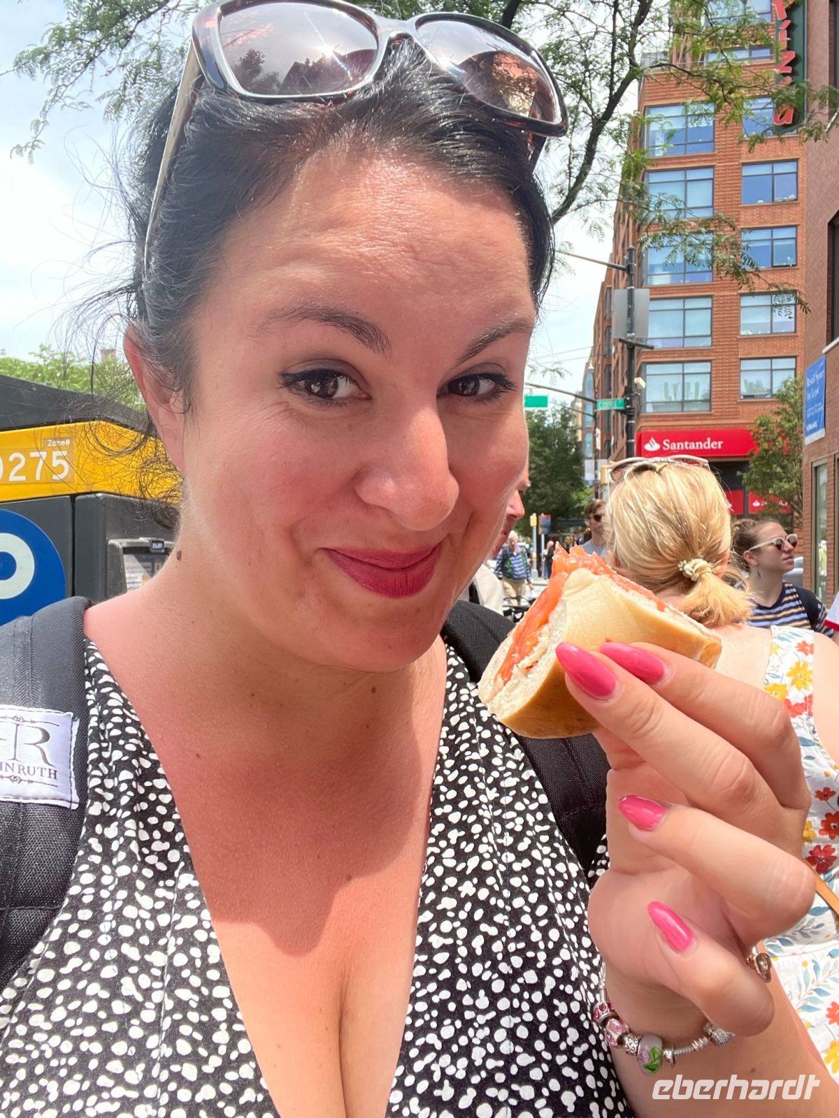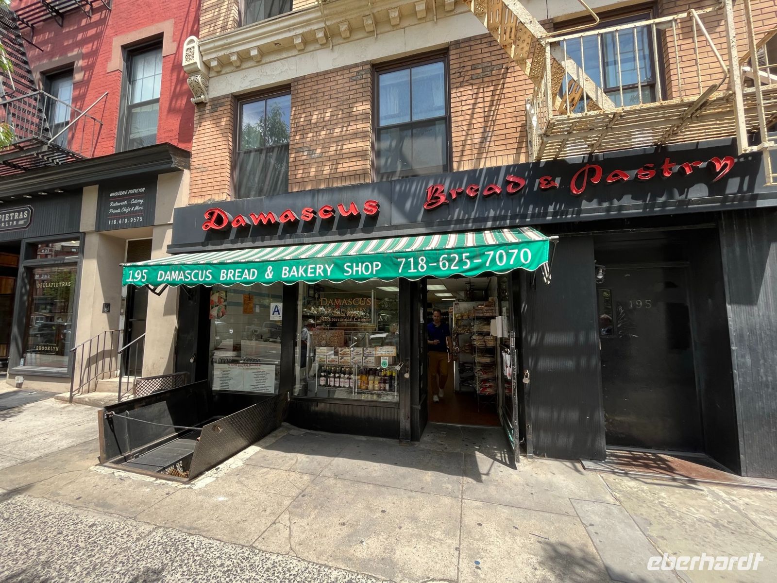Ein typische New Yorker Snack ist der Bagel mit Frischkäse und geräuchertem Lachs, weshalb dieser auf der Foodtour nicht fehlen durfte. Im jüdischen Laden „Shelsky‘s“ gab es diese Leckerei, was der nächste Leckerbissen unserer Tour. Eigentlich waren wir schon satt, aber wir hatten noch einiges vor uns. Nun wurde es orientalisch. In dem seit 1930 existierenden Laden mit Produkten aus Damaskus, verkosteten wir eine mit Spinat gefüllte Pita.