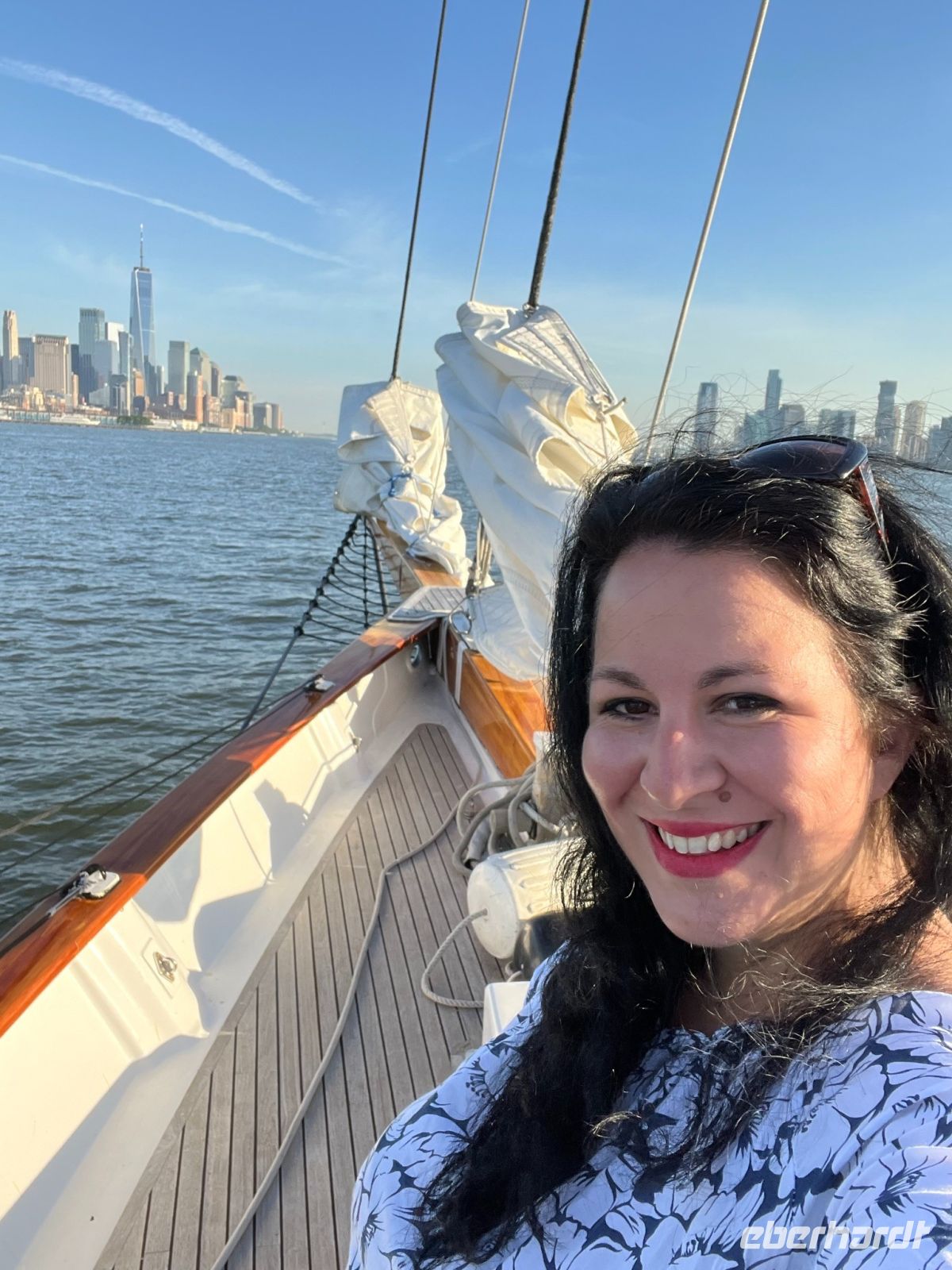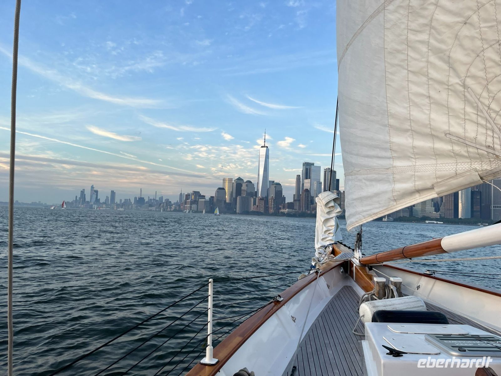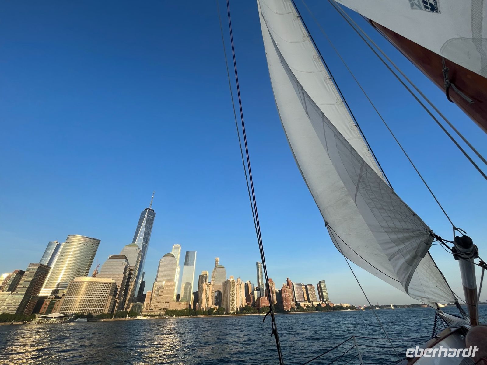 Am Abend hatten wir ein ganz besonderes Highlight. Auf einem Segelschiff starteten wir am Pier 62 und segelten auf dem Hudson River entlang Manhattan. Es war ein unglaublicher Anblick. Man entflieht dem Lärm, der Hektik und hat die Möglichkeit New York City und diese Wahnsinns-Skyline einfach mal auf sich wirken zu lassen und vor allem zu genießen. Die Crew an Bord spendierte einige Drinks und so beobachteten wir bei Wein und Bier den Sonnenuntergang. Wir segelten bis an die Südspitze Manhattans, vorbei am Battery Park, der Freiheitsstatue und Ellis Island. Es war unbeschreiblich schön. Nach zwei Stunden waren wir wieder sicher an Land. Auf dem Rückweg hielten wir noch in einer Bar und ließen den Tag bei einem weiteren Bier ausklingen.