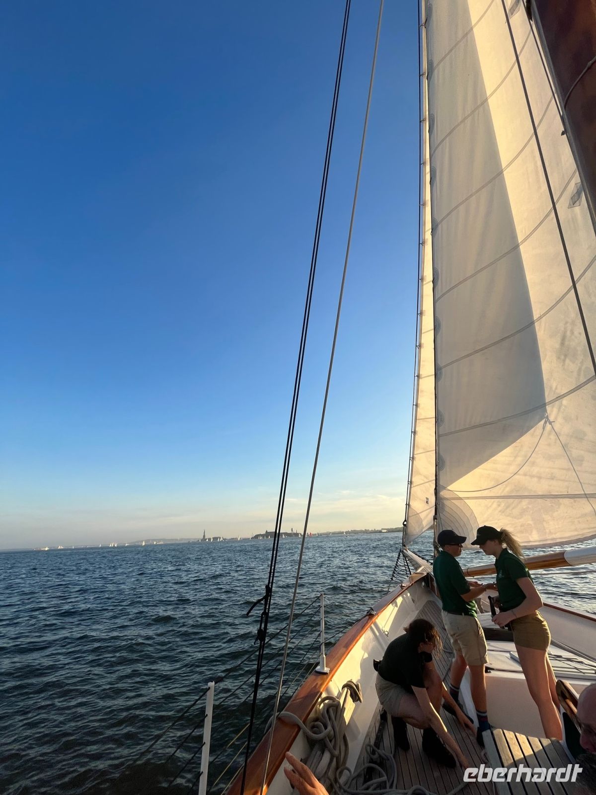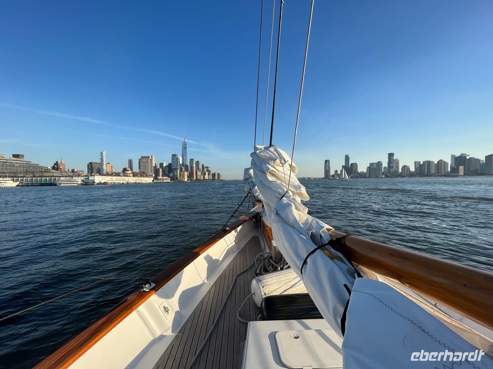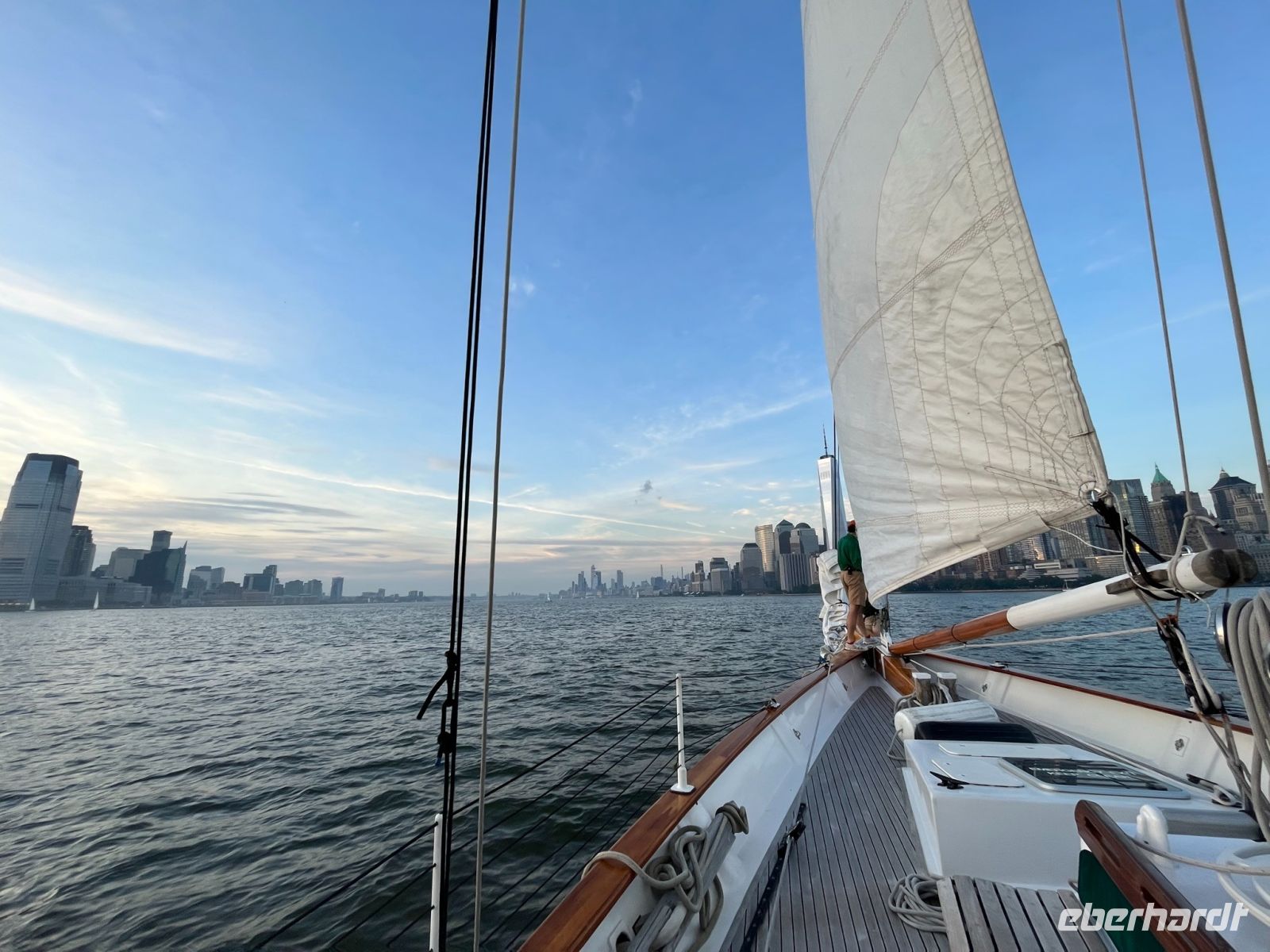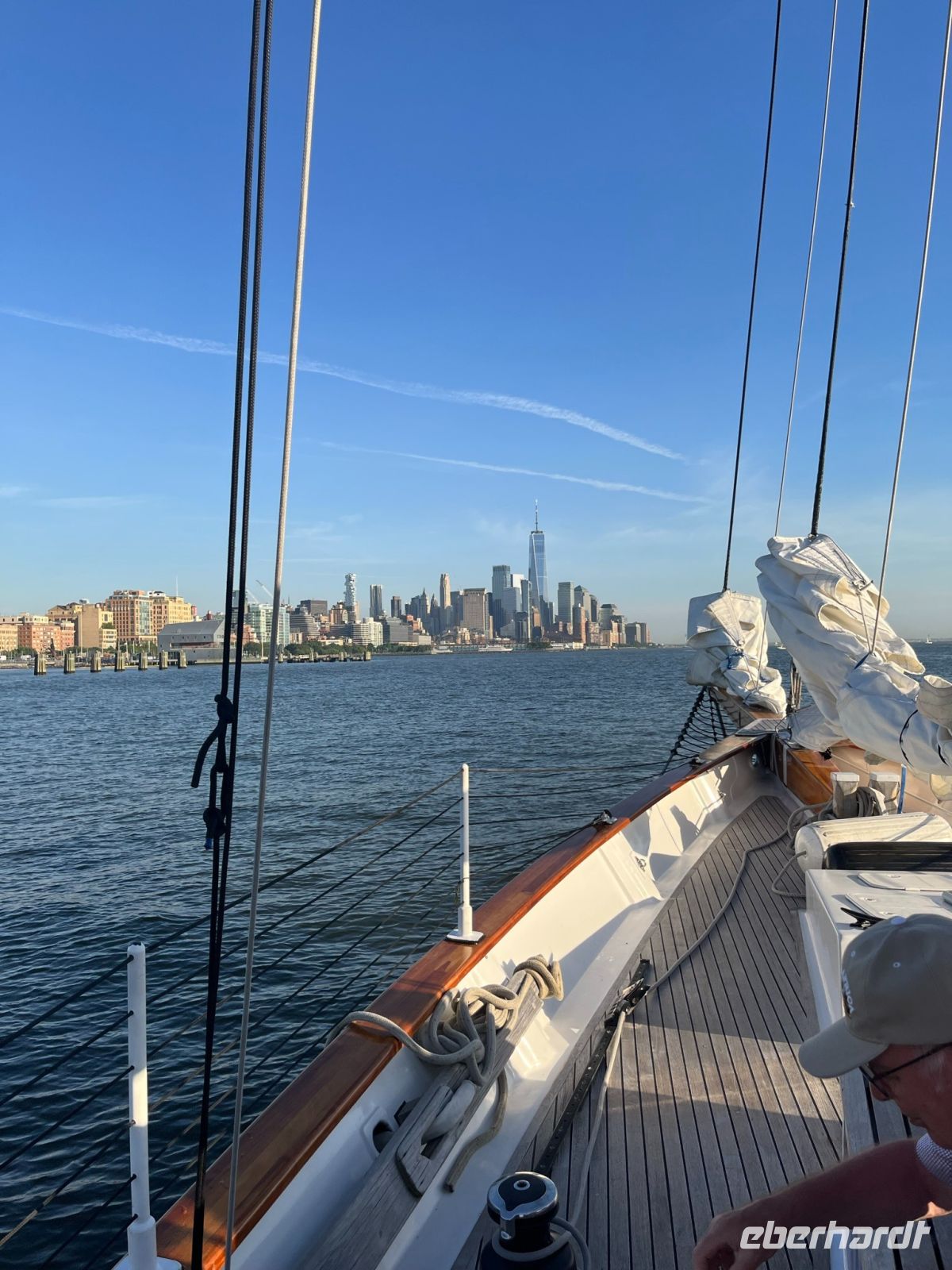 Am Abend hatten wir ein ganz besonderes Highlight. Auf einem Segelschiff starteten wir am Pier 62 und segelten auf dem Hudson River entlang Manhattan. Es war ein unglaublicher Anblick. Man entflieht dem Lärm, der Hektik und hat die Möglichkeit New York City und diese Wahnsinns-Skyline einfach mal auf sich wirken zu lassen und vor allem zu genießen. Die Crew an Bord spendierte einige Drinks und so beobachteten wir bei Wein und Bier den Sonnenuntergang. Wir segelten bis an die Südspitze Manhattans, vorbei am Battery Park, der Freiheitsstatue und Ellis Island. Es war unbeschreiblich schön. Nach zwei Stunden waren wir wieder sicher an Land. Auf dem Rückweg hielten wir noch in einer Bar und ließen den Tag bei einem weiteren Bier ausklingen.