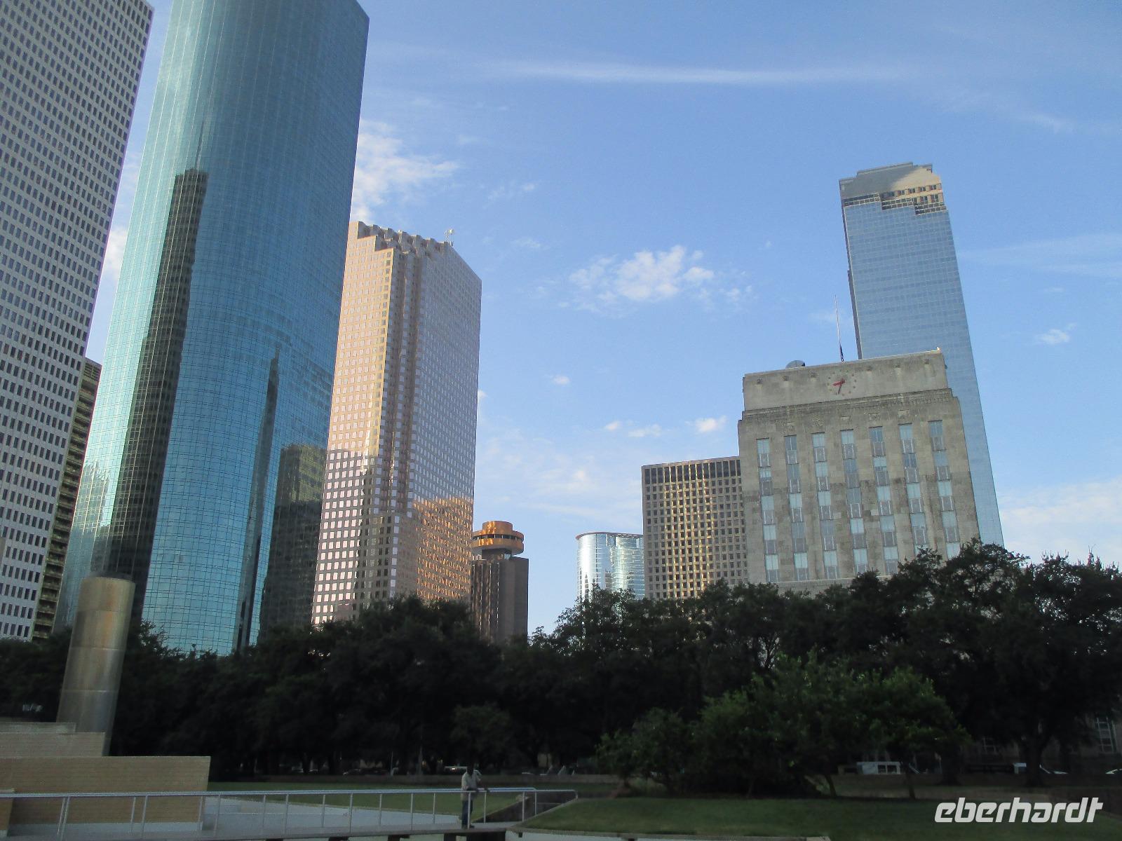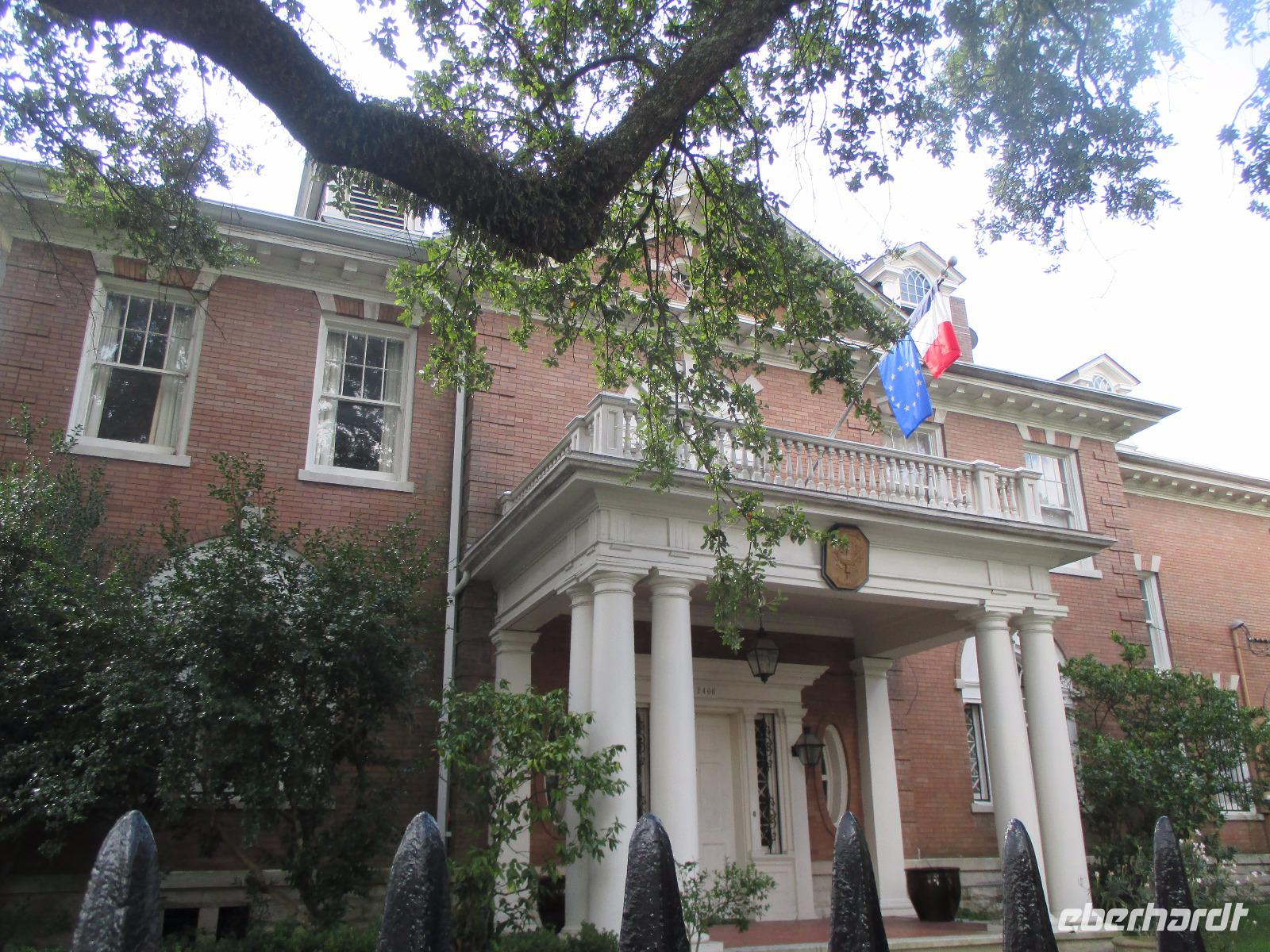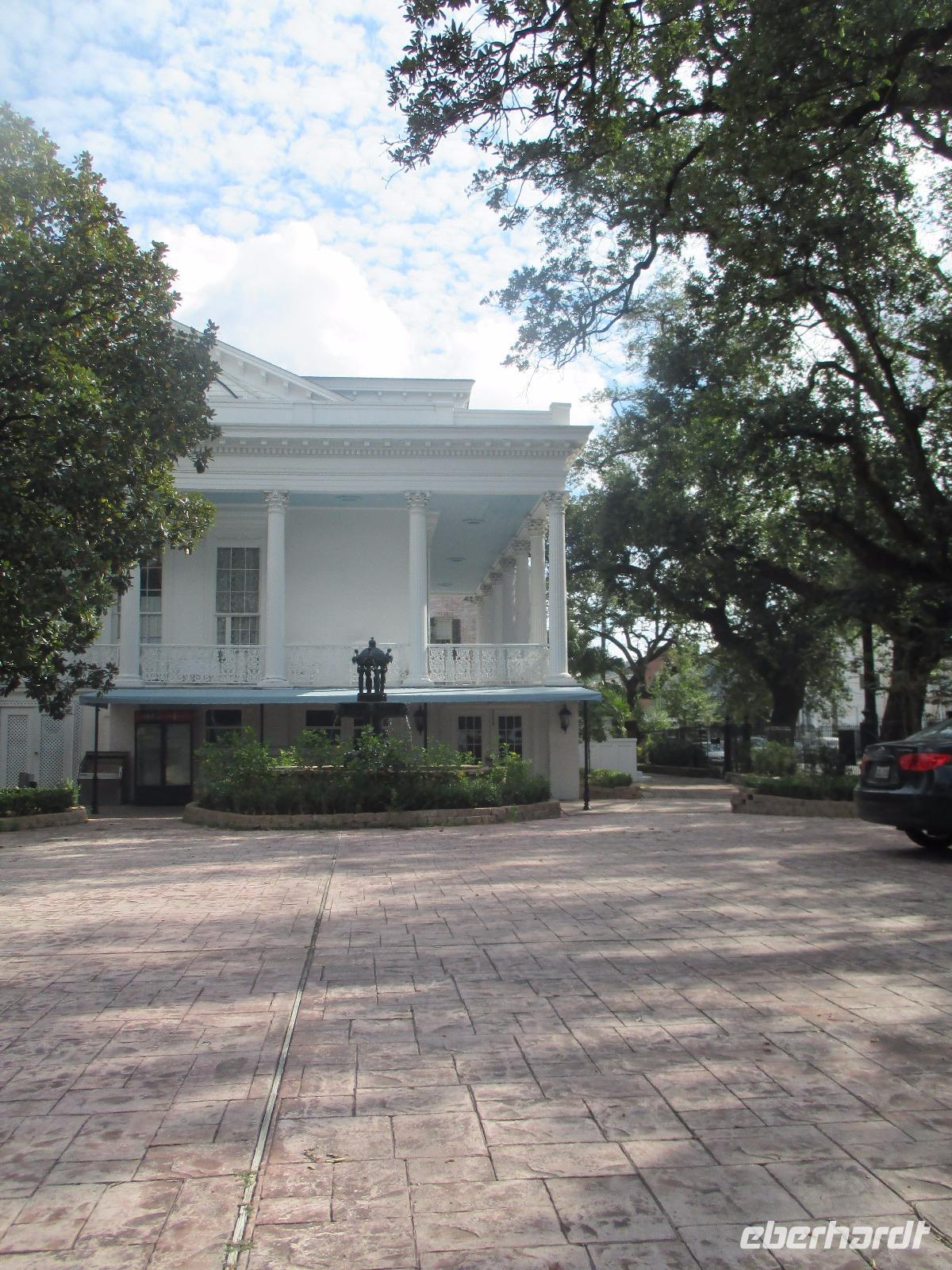 Heute ist der Beginn einer wunderschönen Reise. 10 Eberhardt-Gäste freuen sich darauf, die südlichen Staaten der USA zu bereisen und zu entdecken. Dafür müssen wir schon sehr zeitig aufstehen. Um 04:45 Uhr treffe ich mich mit der Hälfte meiner Reisegruppe am Flughafen Dresden. Nach dem Checkin und der Sicherheitskonotrolle frühstücken wir erst einmal im Flughafenbistro Cassis. Danach gehen wir an Bord einer vollbesetzen Lufthansa-Maschine, die uns nach Frankfurt bringt. Dort ist es sehr neblig und die Landung etwas „ruppig". In Frankfurt selber müssen wir noch einmal durch die Passkontrolle bevor wir schließlich unser Abfluggate nach Houston erreichen. Hier treffen wir auf drei weitere Gäste unserer Gruppe, die selbstständig nach Frankfurt angereist sind. Leider verpassen meine zwei Gäste aus Leipzig den Flug nach Houston, da die Lufthansa zum wiederholten Male an diesen Tagen und ohne Begründung einfach Flüge streicht und auch der nächste Flug nach Frankfurt mit Verspätung startet. Am Abfluggate wurden sie dann leider nicht mehr auf den Flieger gelassen, obwohl dieser mit Verspätung startet. Glücklicherweise geht vier Stunden später noch ein Flug nach Houston mit United Airlines, auf den sich meine zwei Gäste umbuchen konnten. Nach rund zehn Stunden Flugzeit erreichen meine Gruppe und ich die Großstadt Houston. Nach einer langwierigen Einreiseprozedur holen wir schließlich unsere Koffer ab und Marguerite, unsere örtliche Reiseleiterin, erwartet uns bereits. Die Wiedersehensfreude ist groß denn ich war mit einigen Teilnehmern meiner Gruppe vor drei Jahren bereits im Westen der USA unterwegs und da war Marguerite ebenfalls unsere Reiseleiterin. Unser sehr guter Fahrer Leo, sehr ausgeglichen und ein sehr ruhiger Fahrer, bringt uns im Tropenregen über die Interstate und einigen Nebenstraßen zu unserem Hotel „Crowne Plaza Houston River Oaks". Wir beziehen unsere Zimmer und treffen uns zum gemeinsamen Kennenlernen und Abendessen im Hotelrestaurant. Da wir a-la-carte auswählen dürfen, fällt die mehrheitliche Entscheidung auf Steaks. Gegen 20:00 Uhr Ortszeit treffen schließlich auch meine zwei Gäste aus Leipzig ein.