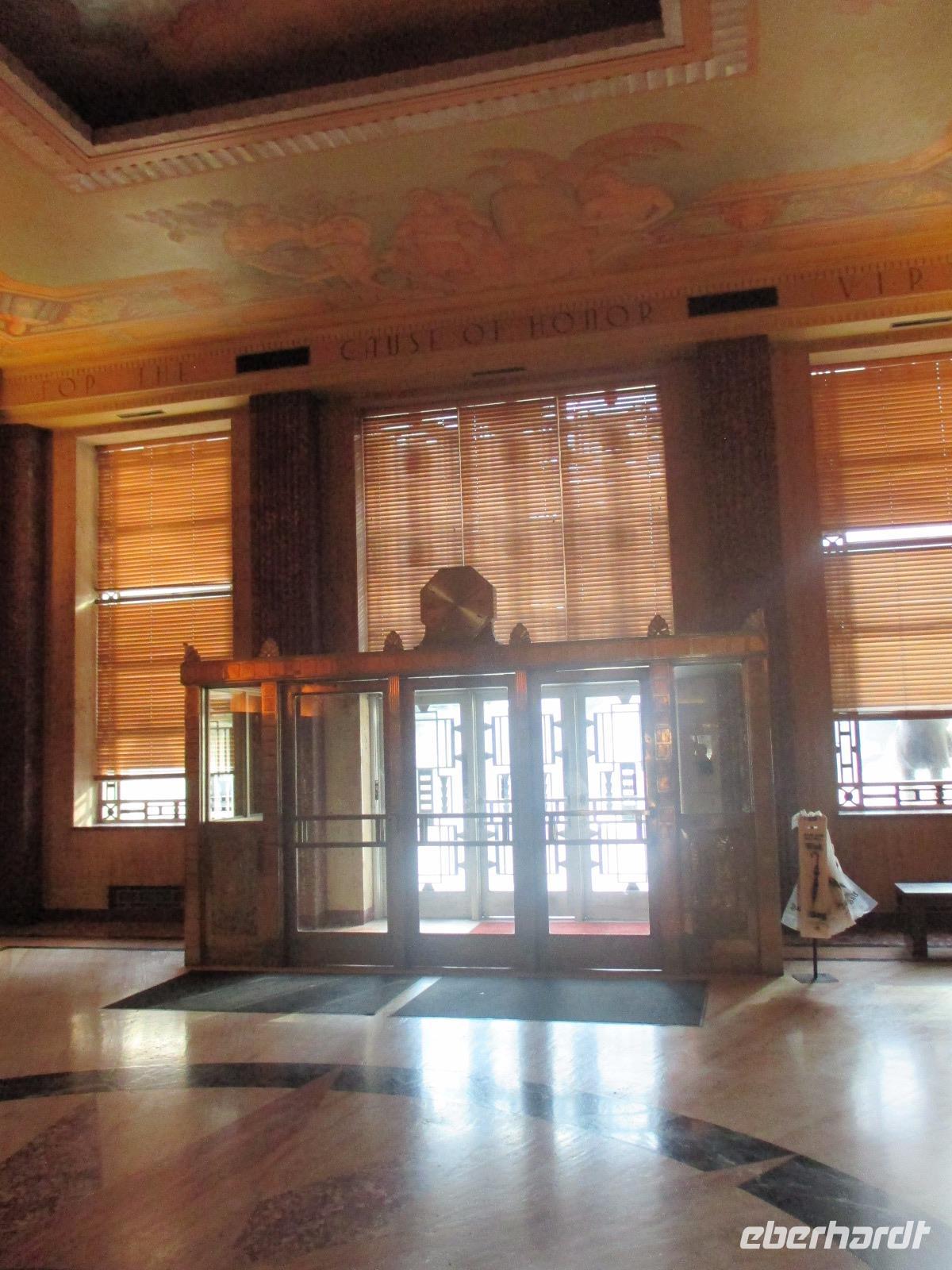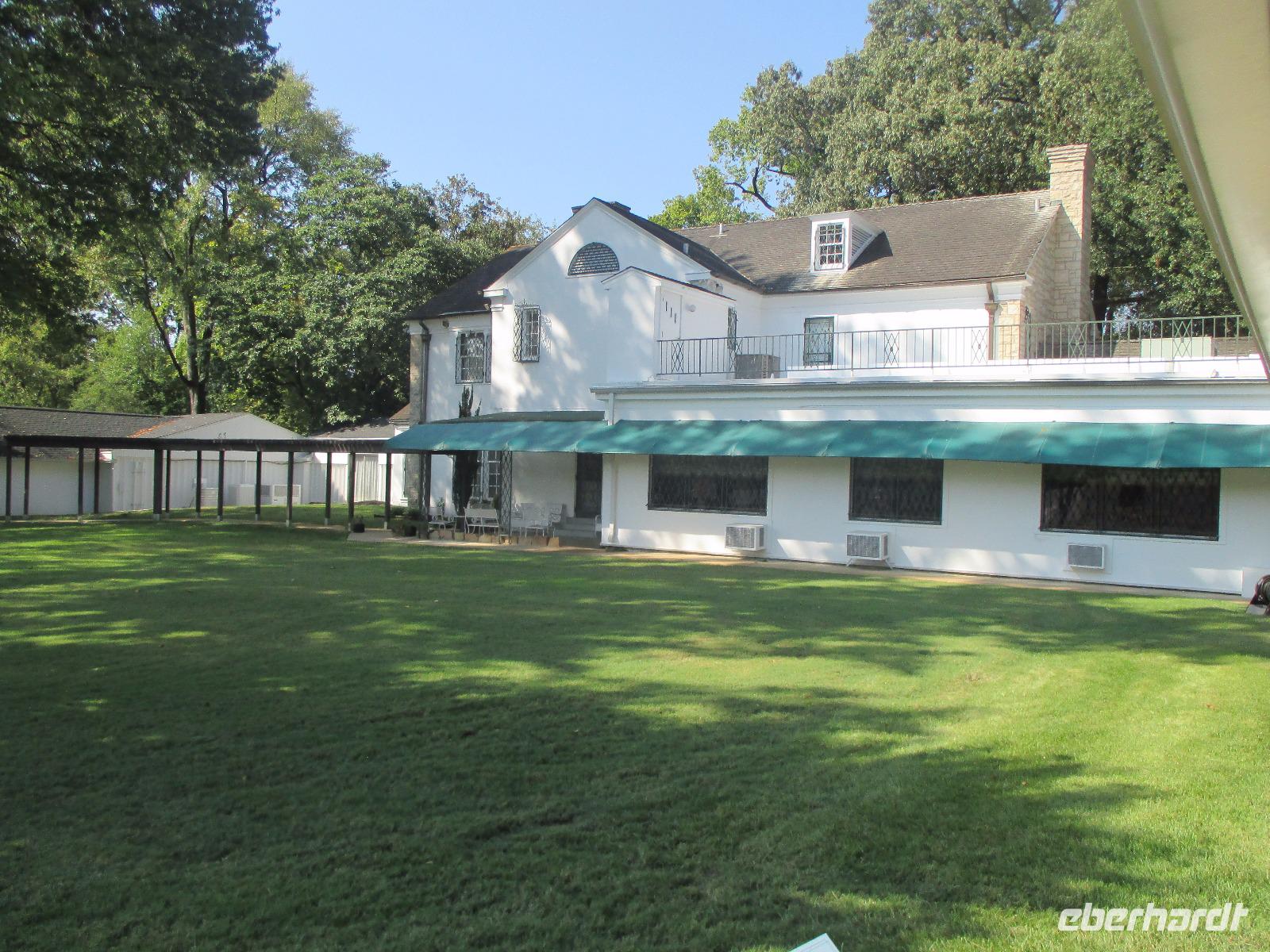 Heute gibt es zum ersten Mal Frühstück von Plastegeschirr und ehrlich gesagt, kommt es mal vor aber nicht so oft, wie ich oder wir es eigentlich erwartet haben. Leo holt den Bus und wir fahren nach Graceland, dem einstigen Wohnsitz von Elvis Presley. Wir sind noch eine der ersten Gruppen am Morgen und somit ist wenig los aber schon als wir das Areal erreichen, bemerken wir, dass hier großes Geld gemacht wird. Allein die Halle, in der Tickets verkauft werden, ist riesig. Dahinter sind weitere Hallen, wo man sich (gegen Zusatzkosten) noch Elvis seine Auszeichnungen, Klamotten, Flugzeuge und Autos anschauen kann. Als erstes werden wir in einen Raum geführt, wo ein kleiner Film über Elvis vorgeführt wird, ein Schnelldurchlauf seines Lebens. Danach erhalten wir Kopfhörer mit ipads mit denen wir eine Audioguideführung durch die Villa des King of Rock'n'Roll machen. Alles ist hier gut durchorganisiert. Mit einer kleinen Bahn werden wir ins gegenüberliegende Grundstück gefahren, auf dem sich die Villa befindet. Die obere Etage des Hauses ist für Besucher gesperrt aber im Erd- und Untergeschoss können wir jede einzelne Station mittels der deutschsprachigen Audioguideführung ganz entspannt genießen. Im Haus selber dürfen wir das Wohn- und Esszimmer als auch das Schlafzimmer von Elvis seinen Eltern sehen. Ebenso die Küchen, die zu damaliger Zeit und eigentlich auch für heutige Zeiten noch sehr modern eingerichtet ist. Gleich dahinter schließt sich der Jungle room an, indem Elvis auch Gäste empfangen hat. Das Untergeschoss ist eher für die Unterhaltung da gewesen. Ein Fernsehraum mit Bar sowie ein Billiardraum haben keine Langeweile aufkommen lassen. Als wir aus der Villa austreten, erreichen wir über den Carport, wo Elvis einst seine vielen Autos parkte, einen kleinen Bungalow, der als Büro für seine Angestellten diente. Hier sind auch noch viele Fan-Geschenke wie Portraits ausgestellt. Im Hintergrund läuft ein Film mit einem Interview mit Elvis, in dem er betont, wie glücklich er hier auf Graceland mit seiner Familie war...sehr interessant. Danach errreichen wir einen Bungalow mit sehr persönlichen Sachen der Familie Elvis. Es wird der Stammbaum dargestellt und ganz viele private Fotos ausgestellt. Auch private Videos werden gezeigt wie beispielsweise die ca. zweijährige Tochter von Elvis mit dem Weihnachtsmann spricht und von einer privaten Party. Es ist auch das Hochzeitskleid von Priscilla und der Smoking von Elvis als auch das Kinderbettchen von Lisa-Marie ausgestellt. Über den Haustürschlüssel wie Geschosse sind wirklich viele private einzigartige Dinge ausgestellt. Dieser Rundgang hier endet wiederum am Pool, an dem Elvis schöne Stunden verlebt hat und bevor wir an den Grabstellen der Familie Presley (Elvis seine Eltern, sein Grab selber als auch das seiner Großmutter, die alle überlebte) kommen, spazieren wir in den letzten Bungalow, indem Elvis seine letzte Stunden hier auf der Erde mit Squash und Klavierspielen verbrachte. Es ist wirklich sehr emotional hier und sehr beeindruckend. Unsere Mittagspause verleben wir hier auch noch auf dem riesigen Gelände, können was essen oder in den Souvenirläden Andenken shoppen. Nachdem unser Bus von der staatlichen Behörde fertig kontrolliert ist und Leo seinen Aufkleber auf den Bus erhalten hat, fahren wir zurück in die Innenstadt von Memphis wo uns Leo an einer Schwebebahn heraus lässt. Wir betreten diese und fahren innerhalb von zwei Minuten hinüber auf Mud-Island, ein Museum über den Mississippi-Fluss und seine Geschichte. Nach einem Raum voller Theorie wird das Museum interaktiv mit einem nachgebauten Mississippi-Dampfer und Uniformen aus der damaligen Zeit. Auch ein kleiner Film wird darüber gezeigt. Zum Schluss gibt es noch eine kleine Ausstellung zur hiesigen Musik, die hier überall gespielt wird. In der Außenanlage angekommen kann man in der Parkanlage dem Flussverlauf von der Quelle mit allen Zuflüssen und Städten folgen. Am Nachmittag sind wir zurück in unserem Stadthotel. Jeder kann seinen Freizeit nun verbringen, wie er möchte. Ich biete meinen Gäste an, und einige nehmen dieses Angebot auch an, mit ihnen gemeinsam zum Peabody-Hotel zu laufen. Hier gibt es eine alltägliche Tradition, die wirklich viele Touristen anzieht: jeden Tag um 17 Uhr spazieren die Enten des Hotels, die in einem Bansin in der Lobby schwimmen, über einen roten Teppich zum Lift. Der Lift schließt sich und die Enten fahren hinaus in ihr Entenhaus - total amerikanischer Kitsch aber irgendwie auch niedlich. Am Abend nehmen wir unser Abendessen in einem italienischen Restaurant ein, wo das Essen wirklich sehr gut schmeckt. Wer möchte, schließt sich unserem Vorschlag an, noch einen Drink in einer Rooftop-Bar einzunehmen. Von hier oben haben wir einen schönen Blick über die beleuchtete Innenstadt und genießen eine ruhige Zeit hier oben.