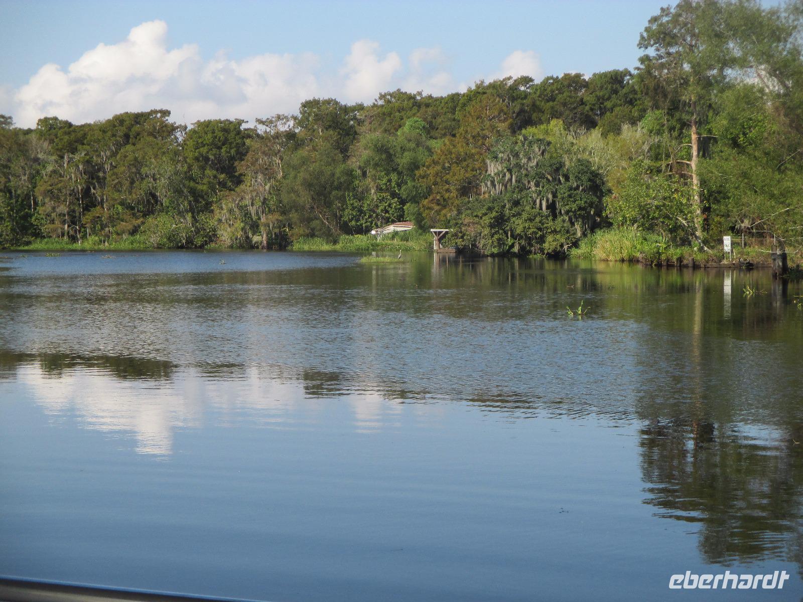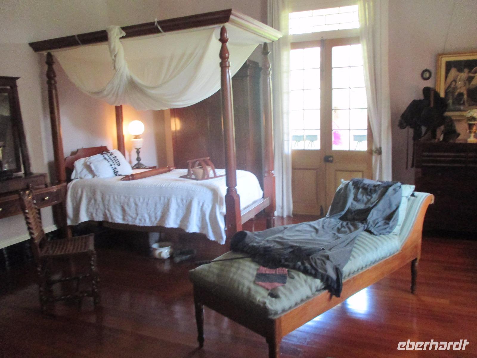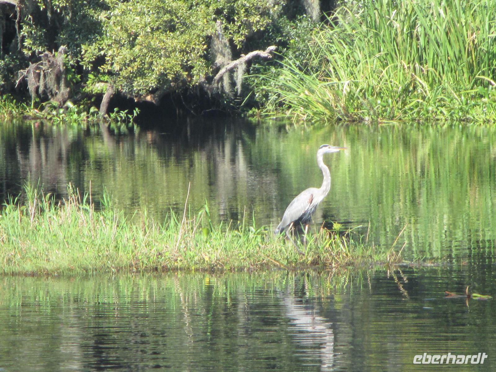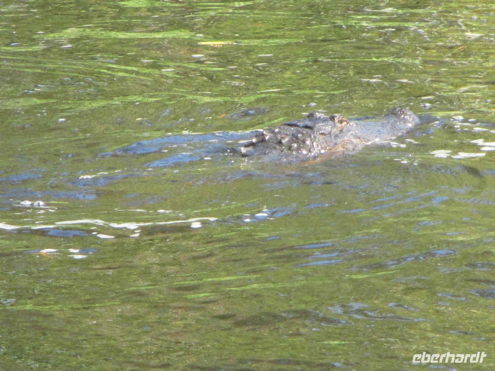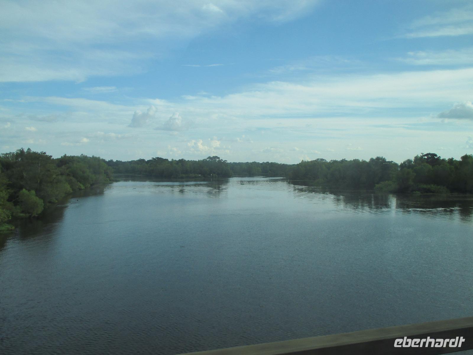 Ein weiteres Highlight erwartet uns heute. Aber leider heißt es erst einmal Abschied nehmen von New Orleans, eine Stadt, die uns sehr beeindruckt hat. Unser Weg führt uns durch die Abgeschiedenheit Louisanas zu Roland, der hier lebt und ein großes Stück Land besitzt. Er begrüßt uns ganz freudig und schon dürfen wir es uns auf seinem großen, zumindest für uns kleine Gruppe, gemütlich machen. Sicher lenkt er das Boot rückwärts aus dem Hafen hinaus und langsam gleiten wir entlang des Wasserkanals. Dabei sehen wir als allerstes einen Reiher. Aber auch die vielen Bäume mit dem spanischen Moos, das Schilf und all die endemischen Pflanzen lassen unsere Fotoapparate nicht ruhen. Nach einiger Zeit kommt der erste Alligator auf unser Boot zu. Roland versucht es mit Marshmallows anzufüttern aber wahrscheinlich hat es schon gefrühstückt, denn es bleibt ziemlich unbeeindruckt. Roland erzählt uns von seiner Kindheit hier im Sumpfgebiet und das er auch heute noch mit seinem Sohn und Enkelsohn Alligatoren jagen geht. Irgendwann bittet er uns, ein wenig leise zu sein, damit wir den Geräuschen der Natur lauschen können. Vorher allerdings kommt ein großer Alligator auf uns zu, der auch wieder mit Marshmallows angefüttert wird - und diesmal funktioniert auch der Trick den wir bekommen sehr gute Motive weil der Alligator ganz nah an unser Boot ran kommt. Wir bestaunen noch ein wenig die schöne Natur und lassen den Blick über das Wasser schweifen. Nach rund einer Stunde Fahrt legen wir wieder an und gehen an Bord des Busses. Leo fährt ein Stück zurück des Weges, den wir gekommen sind und schließlich biegen wir ab in Richtung Oak Alley Plantage, dem wunderschönen Herrschaftshaus, das von einer wunderschönen Eichenallee gesäumt ist. Ich persönlich dachte immer, das hier einst die Serie „Fackeln im Sturm" gedreht wurde aber das ist nicht richtig - dafür ist dieser Ort der Drehort für „Vom Winde verweht" gewesen - auch nicht schlecht, oder? Da wir bis zum Mittagessen, welches wir hier auf der Plantage einnehmen, Zeit haben, gehen wir mit Marguerite zu den ehemaligen Sklavenhäusern und sie erzählt und übersetzt uns das tragische Leben der Sklaven. Zum Mittagessen bedienen wir uns vom Buffet, welches wiederum mit Spezialitäten aus Louisana bestückt ist. Danach spazieren wir unter den Eichen entlang, wo wir bereits zu einer Privattour durch das Herrenhaus erwartet werden. In amerikanisches Mädchen mit einen sehr schönen Kleid führt uns durch den Salon, den Speisesaal und das Obergeschoss des Hauses und erzählt uns vom früheren Leben hier. Vier Dinge sind sogar noch Original. Vom Balkon aus, der im ersten Stock um das ganze Haus hin um führt sehen wir dann die bekannte Eichenallee - wunderhübsch. Nach der Führung laufen wir natürlich noch entlang der Allee, um wohl eines der bekanntesten Fotomotive hier auf der Plantage selbst zu schießen. Eine wirklich schöne Zeit hier geht zu Ende. Zurück am Bus erwartet uns eine längere Fahrt, die uns nach Natchez, unserem nächsten Übernachtungsort, führt. Nach einer kleinen Orientierungsfahrt checken wir um Hotel ein, das auf einem Hügel liegt und von wo aus wir einen tollen Blick auf den Mississippi haben. Am Abend treffen wir uns im Hotelrestaurant um noch ein paar Steaks und Biere zu bestellen. Unser ganz besonderer Drink-Tipp in diesem Haus: Wasser to go;-). An der Bar ist heute Abend Livemusik und wir sind ein wenig erstaunt, dass um zehn die Musiker schon ihre Instrumente abbauen und die Bar schließt aber so ist das hier leider bei den Amerikanern.