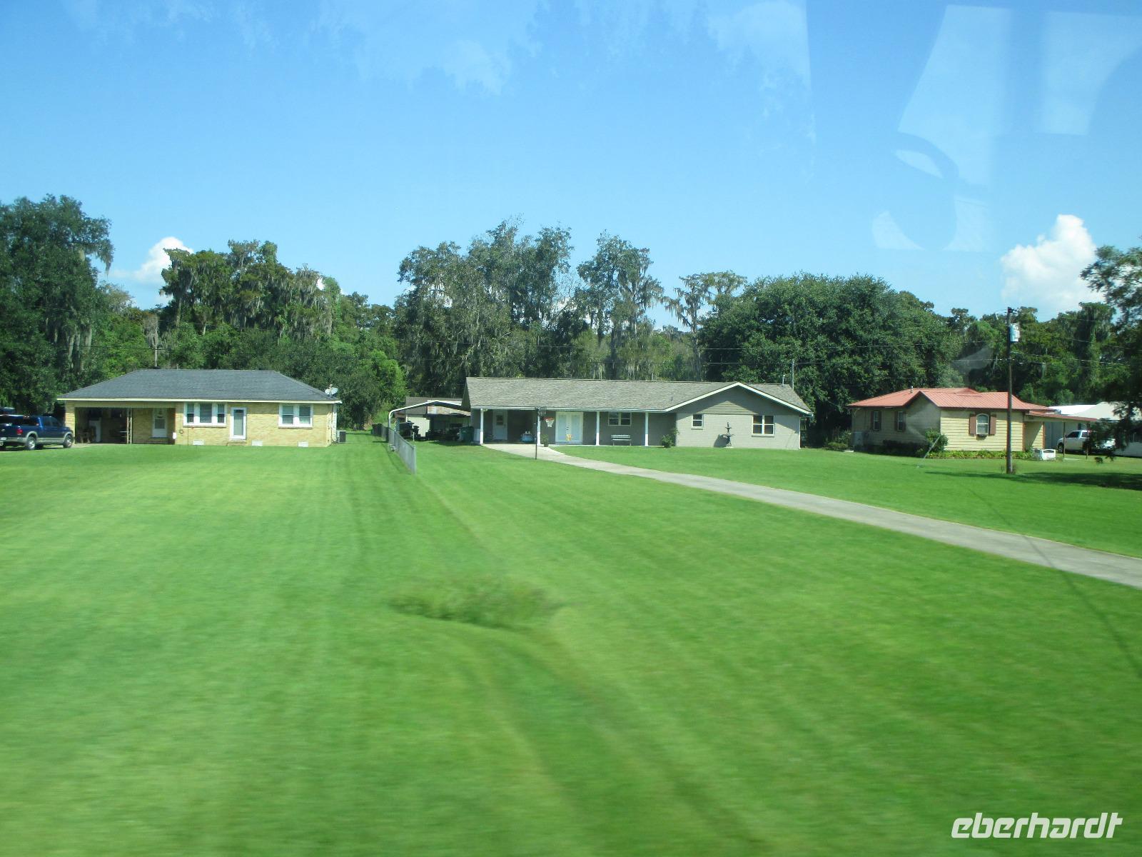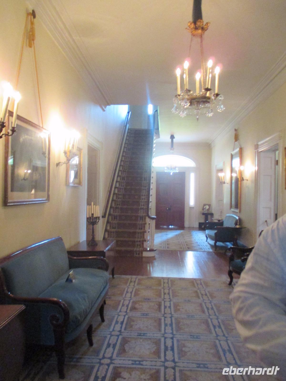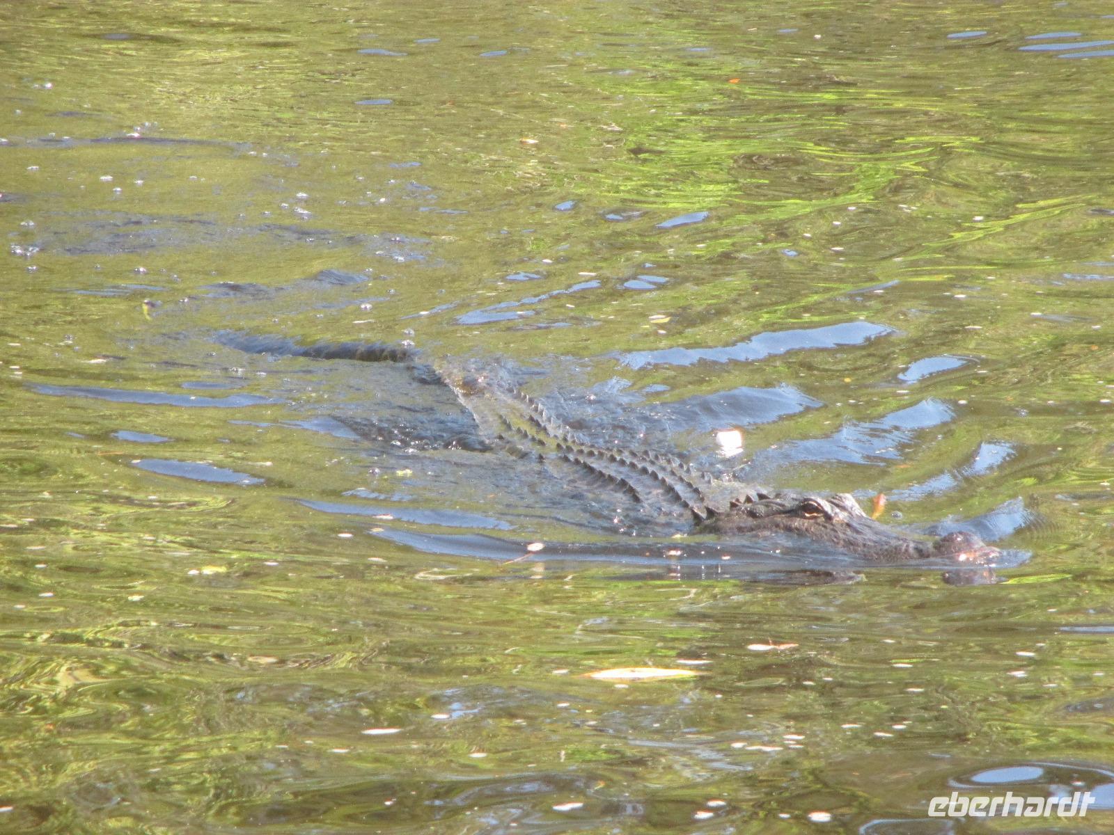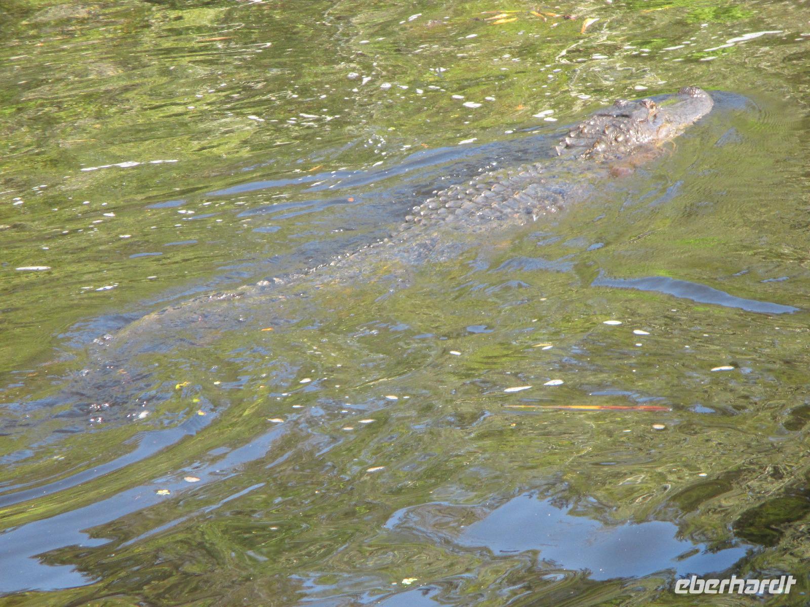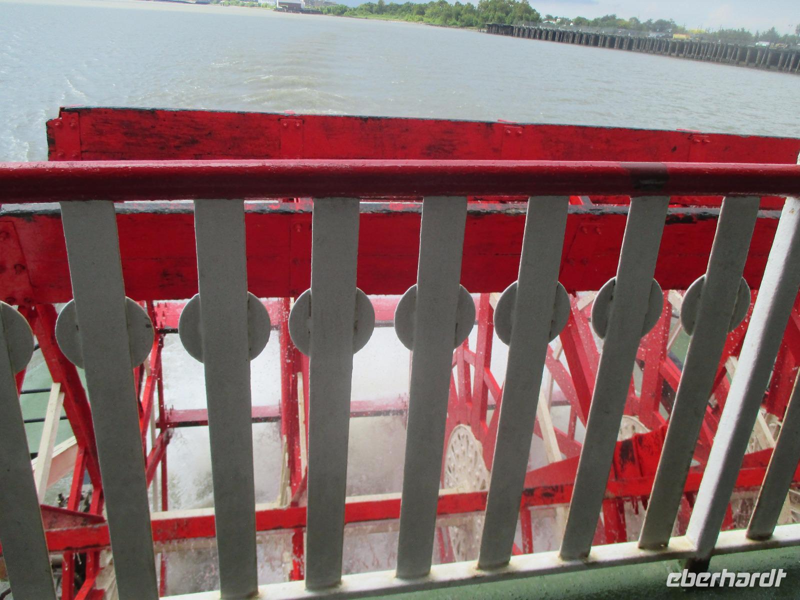 Ein weiteres Highlight erwartet uns heute. Aber leider heißt es erst einmal Abschied nehmen von New Orleans, eine Stadt, die uns sehr beeindruckt hat. Unser Weg führt uns durch die Abgeschiedenheit Louisanas zu Roland, der hier lebt und ein großes Stück Land besitzt. Er begrüßt uns ganz freudig und schon dürfen wir es uns auf seinem großen, zumindest für uns kleine Gruppe, gemütlich machen. Sicher lenkt er das Boot rückwärts aus dem Hafen hinaus und langsam gleiten wir entlang des Wasserkanals. Dabei sehen wir als allerstes einen Reiher. Aber auch die vielen Bäume mit dem spanischen Moos, das Schilf und all die endemischen Pflanzen lassen unsere Fotoapparate nicht ruhen. Nach einiger Zeit kommt der erste Alligator auf unser Boot zu. Roland versucht es mit Marshmallows anzufüttern aber wahrscheinlich hat es schon gefrühstückt, denn es bleibt ziemlich unbeeindruckt. Roland erzählt uns von seiner Kindheit hier im Sumpfgebiet und das er auch heute noch mit seinem Sohn und Enkelsohn Alligatoren jagen geht. Irgendwann bittet er uns, ein wenig leise zu sein, damit wir den Geräuschen der Natur lauschen können. Vorher allerdings kommt ein großer Alligator auf uns zu, der auch wieder mit Marshmallows angefüttert wird - und diesmal funktioniert auch der Trick den wir bekommen sehr gute Motive weil der Alligator ganz nah an unser Boot ran kommt. Wir bestaunen noch ein wenig die schöne Natur und lassen den Blick über das Wasser schweifen. Nach rund einer Stunde Fahrt legen wir wieder an und gehen an Bord des Busses. Leo fährt ein Stück zurück des Weges, den wir gekommen sind und schließlich biegen wir ab in Richtung Oak Alley Plantage, dem wunderschönen Herrschaftshaus, das von einer wunderschönen Eichenallee gesäumt ist. Ich persönlich dachte immer, das hier einst die Serie „Fackeln im Sturm" gedreht wurde aber das ist nicht richtig - dafür ist dieser Ort der Drehort für „Vom Winde verweht" gewesen - auch nicht schlecht, oder? Da wir bis zum Mittagessen, welches wir hier auf der Plantage einnehmen, Zeit haben, gehen wir mit Marguerite zu den ehemaligen Sklavenhäusern und sie erzählt und übersetzt uns das tragische Leben der Sklaven. Zum Mittagessen bedienen wir uns vom Buffet, welches wiederum mit Spezialitäten aus Louisana bestückt ist. Danach spazieren wir unter den Eichen entlang, wo wir bereits zu einer Privattour durch das Herrenhaus erwartet werden. In amerikanisches Mädchen mit einen sehr schönen Kleid führt uns durch den Salon, den Speisesaal und das Obergeschoss des Hauses und erzählt uns vom früheren Leben hier. Vier Dinge sind sogar noch Original. Vom Balkon aus, der im ersten Stock um das ganze Haus hin um führt sehen wir dann die bekannte Eichenallee - wunderhübsch. Nach der Führung laufen wir natürlich noch entlang der Allee, um wohl eines der bekanntesten Fotomotive hier auf der Plantage selbst zu schießen. Eine wirklich schöne Zeit hier geht zu Ende. Zurück am Bus erwartet uns eine längere Fahrt, die uns nach Natchez, unserem nächsten Übernachtungsort, führt. Nach einer kleinen Orientierungsfahrt checken wir um Hotel ein, das auf einem Hügel liegt und von wo aus wir einen tollen Blick auf den Mississippi haben. Am Abend treffen wir uns im Hotelrestaurant um noch ein paar Steaks und Biere zu bestellen. Unser ganz besonderer Drink-Tipp in diesem Haus: Wasser to go;-). An der Bar ist heute Abend Livemusik und wir sind ein wenig erstaunt, dass um zehn die Musiker schon ihre Instrumente abbauen und die Bar schließt aber so ist das hier leider bei den Amerikanern.