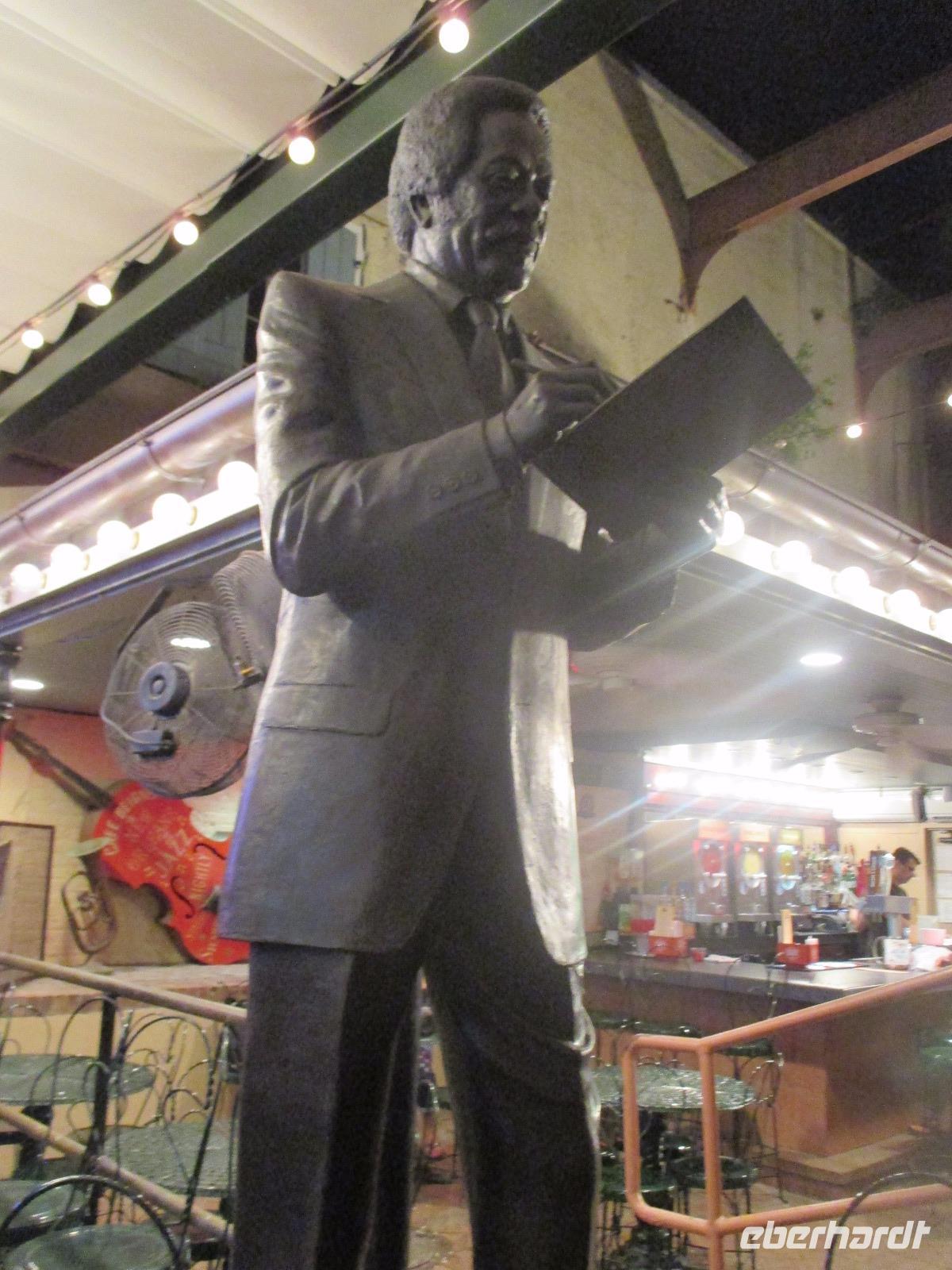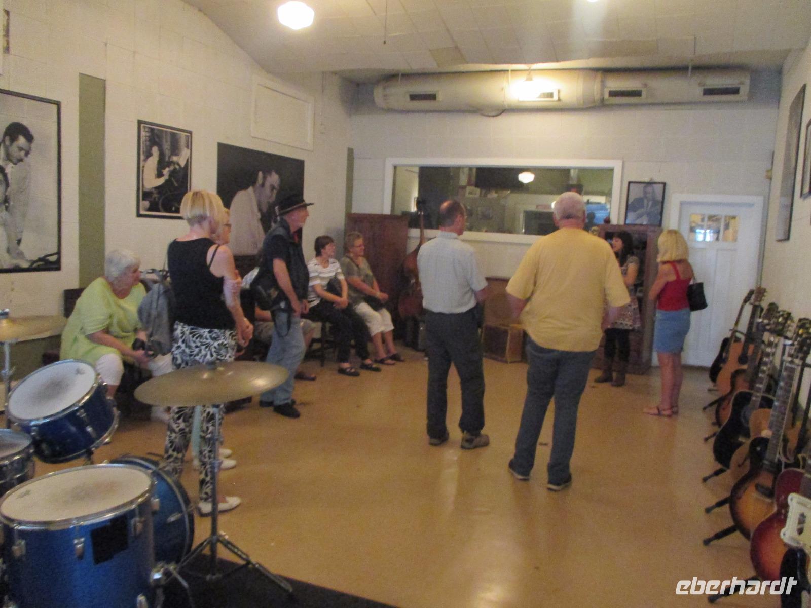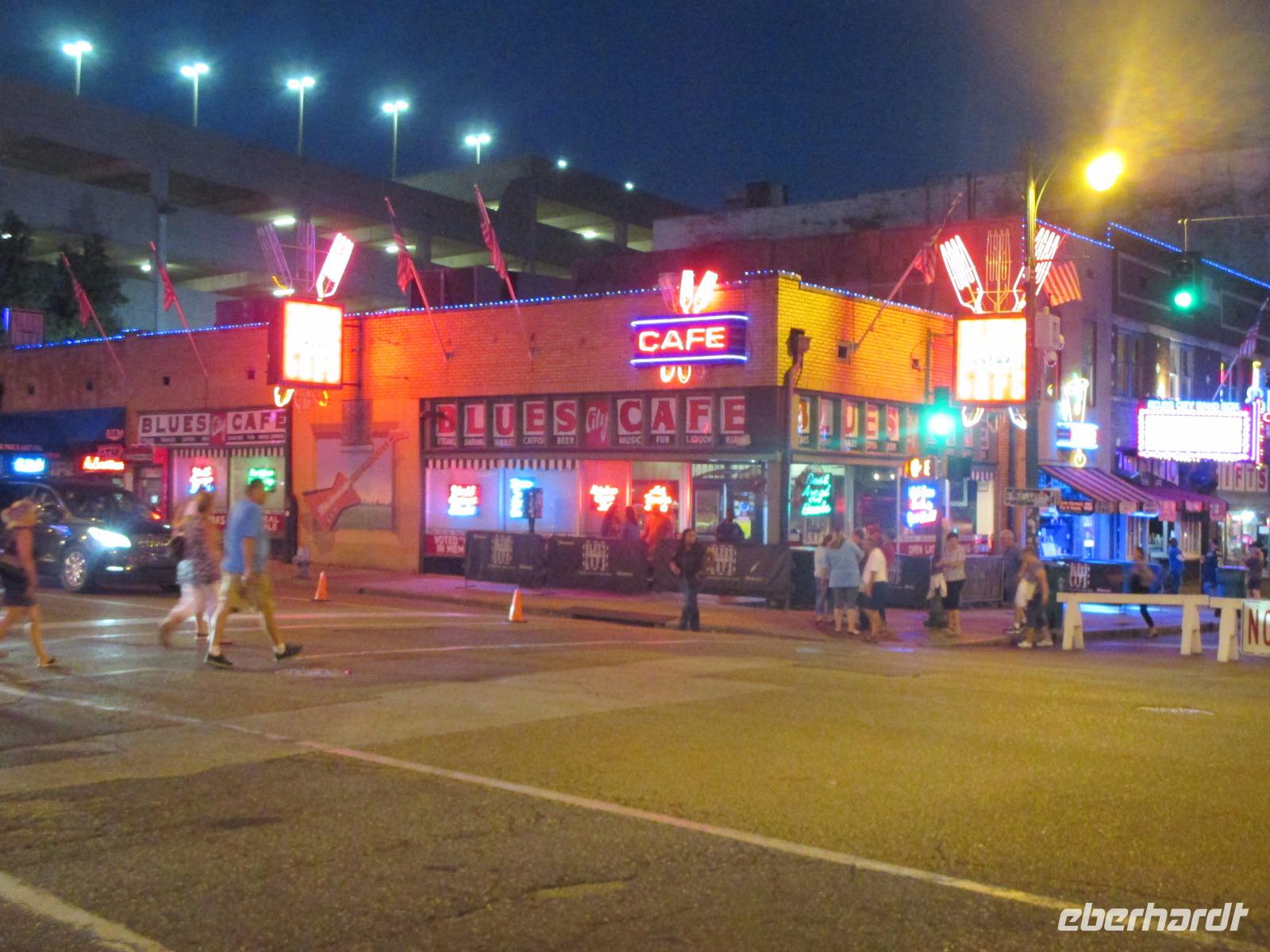 Wir verlassen das Hotel auf dem Hügel und fahren hinunter in die Stadt. Hier unternehmen wir noch einen kleinen Rundgang über die Washington Street und schauen uns die schönen Villen der Stadt an. Das besondere hier in der Stadt ist ein Rundgang, wo einmal im Jahr die Hausbesitzer ihre Türen öffnen und fremde Leute hineinbitten. Wir haben auch das Glück, dass ich von einem Mann auf der Straße angesprochen werde. Er lädt uns ein, seine Kirche von Innen zu besichtigen. Die Einladung nehmen wir sehr gern an und im Inneren sehen wir eine schlichte Kirche mit wunderschönen verglasten Fenstern. Alles wirkt sehr harmonisch. Nachdem das letzte Foto geschossen wurde, steigen wir wieder ein in den Bus und fahren nun ein Stück entlang des Nachtez-Trace, einer historischen Straße, die durch die Wälder von Mississippi führt. Es ist sehr grün hier und erinnert stellenweise an die schönen Wälder bei uns in Deutschland. Jedoch wirkt hier alles irgendwie verlassen, kein Haus außer in den vereinzelten Städten. Irgendwann vor Jacksonville biegen wir wieder auf die Interstate ab und machen eine kleine notwendige Rast. Gegen vier am Nachmittag erreichen wir schließlich die Stadt des Rock'n'Rolls, Memphis. Da wir doch etwas zeitig da sind, unternehmen Marguerite und Leo mit uns eine kleine Rundfahrt vorbei am Basketballstadium und der Beale Street, DER Straße hier in Memphis wo es zahlreiche Bars und Kneipen gibt bis hin zu dem Motel, wo einst Martin Luther King erschossen wurde. Wir steigen aus und Marguerite zeigt uns zum einen die Stelle, an der der Mörder stand. Ein riesiges Blumenbouquet markiert das Zimmer und die Stelle, wo Martin Luther King zusammenbrach und starb. Etwas bewegt geht es zurück in Richtung Zentrum und dort wartet das nächste Highlight auf uns: wir besuchen das legendären SUN Record Studio von Sam Philipps. Nachdem wir uns ein wenig im Souvenirshop umgeschaut haben, werden wir von einem lustigen brasilianischen Mädchen begrüßt. Wir gehen in die erste Etage, einer nach dem anderen, den hier sind die Räume winzig. Wir gelangen in einen Raum, in dem die Geschichte der SUN-Record-Studios mittels Ausstellungsstücken sehr gut dargestellt ist. Natürlich erzählt uns das Mädchen auch alles Wichtige dazu, z.B. wie ehemalige Gefangene hierher gebracht und wurden und hier einen Megahit aufnahmen, so dass sie im Nachgang sogar begnadigt wurden. Daneben wir die Geschichte von Elvis erzählt, der hier in Memphis einst aufschlug um von Sam Philipps entdeckt zu werden. Nur leider war dieser an diesem Tag nicht im Büro. Aber Elvis machte die Bekanntschaft von Philipps Sekretärin, die sofort begeistert war von Elvis seinem Talent. Sie musste Sam Philipps ein Jahr lang überreden, bevor dieser Elvis sein Studio für Aufnahmen einlud. Der Rest ist legendäre Geschichte.....Auch hier ausgestellt ist die Original-Radiostation, über die die Musik damals in das weite Amerika ausgestrahlt wurde. Eine Etage tiefer stehen wir dann in dem Studio schlechthin, wo gejammt und aufgenommen wurde, wo sich Größen wie Roy Orbison und Johnny Cash die Klinke in die Hand gaben. Hier wurde auch das legendäre 4 Millionen-Dollar-Foto mit Johnny Cash, Elvis Presley und Sam Philipps aufgenommen. Wir dürfen sogar die hier ausgestellten Musikinstrumente anfassen bevor unser Guide ein Original-Mikrofon aus den damaligen Jahren hervor holt und wir damit für ein Foto rocken dürfen. Am Abend spazieren wir dann von unserem Hotel in der Main Street zum Blues Cafe auf der bekannten Beale Street. Hier geht echt die Post ab und wir kommen uns vor wie in einem amerikanischen Film. Überall laut schnatternde Amerikaner, eine Band die spielt und eine Theke, die voll besetzt ist. Unsere Getränke, egal ob Bier oder Wein bekommen wir in Pappbechern serviert und auch die Speisen an sich werden mit Plastegeschirr serviert. ABER es schmeckt, da kann man nicht meckern. Als wir fertig sind, wird der Abfall, egal ob noch Flüssigkeit im Becher und Speisereste auf dem Teller, in einer große Tonne entsorgt. Mit einigen Gästen aus unserer Gruppe spaziere ich dann noch über die Beale Street, wo überall Polizisten für Ordnung stehen und aus jeder Kneipe andere Musik ertönt. Es ist wahrlich interessant, sich das einmal anzuschauen.