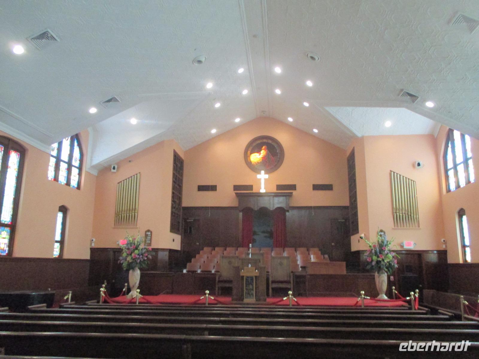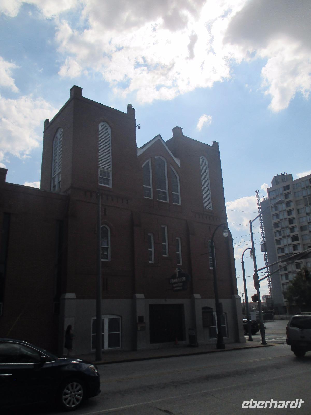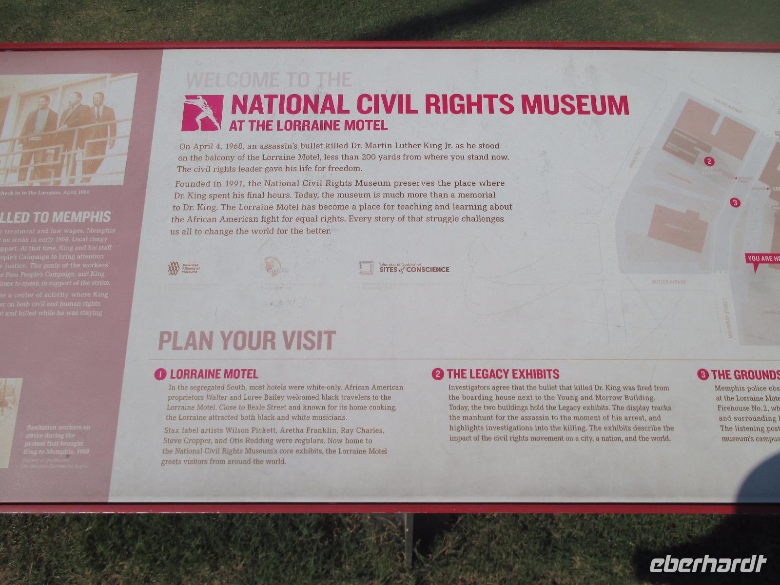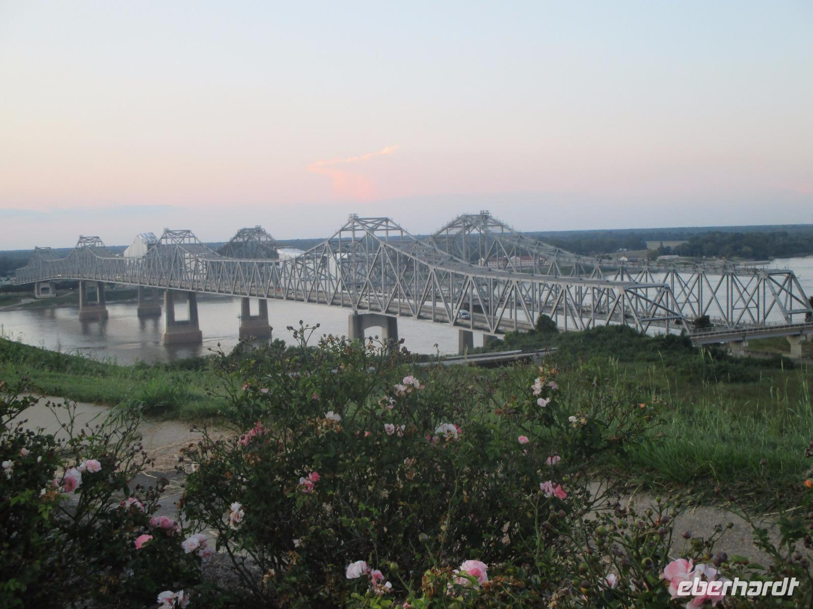 Wir verlassen das Hotel auf dem Hügel und fahren hinunter in die Stadt. Hier unternehmen wir noch einen kleinen Rundgang über die Washington Street und schauen uns die schönen Villen der Stadt an. Das besondere hier in der Stadt ist ein Rundgang, wo einmal im Jahr die Hausbesitzer ihre Türen öffnen und fremde Leute hineinbitten. Wir haben auch das Glück, dass ich von einem Mann auf der Straße angesprochen werde. Er lädt uns ein, seine Kirche von Innen zu besichtigen. Die Einladung nehmen wir sehr gern an und im Inneren sehen wir eine schlichte Kirche mit wunderschönen verglasten Fenstern. Alles wirkt sehr harmonisch. Nachdem das letzte Foto geschossen wurde, steigen wir wieder ein in den Bus und fahren nun ein Stück entlang des Nachtez-Trace, einer historischen Straße, die durch die Wälder von Mississippi führt. Es ist sehr grün hier und erinnert stellenweise an die schönen Wälder bei uns in Deutschland. Jedoch wirkt hier alles irgendwie verlassen, kein Haus außer in den vereinzelten Städten. Irgendwann vor Jacksonville biegen wir wieder auf die Interstate ab und machen eine kleine notwendige Rast. Gegen vier am Nachmittag erreichen wir schließlich die Stadt des Rock'n'Rolls, Memphis. Da wir doch etwas zeitig da sind, unternehmen Marguerite und Leo mit uns eine kleine Rundfahrt vorbei am Basketballstadium und der Beale Street, DER Straße hier in Memphis wo es zahlreiche Bars und Kneipen gibt bis hin zu dem Motel, wo einst Martin Luther King erschossen wurde. Wir steigen aus und Marguerite zeigt uns zum einen die Stelle, an der der Mörder stand. Ein riesiges Blumenbouquet markiert das Zimmer und die Stelle, wo Martin Luther King zusammenbrach und starb. Etwas bewegt geht es zurück in Richtung Zentrum und dort wartet das nächste Highlight auf uns: wir besuchen das legendären SUN Record Studio von Sam Philipps. Nachdem wir uns ein wenig im Souvenirshop umgeschaut haben, werden wir von einem lustigen brasilianischen Mädchen begrüßt. Wir gehen in die erste Etage, einer nach dem anderen, den hier sind die Räume winzig. Wir gelangen in einen Raum, in dem die Geschichte der SUN-Record-Studios mittels Ausstellungsstücken sehr gut dargestellt ist. Natürlich erzählt uns das Mädchen auch alles Wichtige dazu, z.B. wie ehemalige Gefangene hierher gebracht und wurden und hier einen Megahit aufnahmen, so dass sie im Nachgang sogar begnadigt wurden. Daneben wir die Geschichte von Elvis erzählt, der hier in Memphis einst aufschlug um von Sam Philipps entdeckt zu werden. Nur leider war dieser an diesem Tag nicht im Büro. Aber Elvis machte die Bekanntschaft von Philipps Sekretärin, die sofort begeistert war von Elvis seinem Talent. Sie musste Sam Philipps ein Jahr lang überreden, bevor dieser Elvis sein Studio für Aufnahmen einlud. Der Rest ist legendäre Geschichte.....Auch hier ausgestellt ist die Original-Radiostation, über die die Musik damals in das weite Amerika ausgestrahlt wurde. Eine Etage tiefer stehen wir dann in dem Studio schlechthin, wo gejammt und aufgenommen wurde, wo sich Größen wie Roy Orbison und Johnny Cash die Klinke in die Hand gaben. Hier wurde auch das legendäre 4 Millionen-Dollar-Foto mit Johnny Cash, Elvis Presley und Sam Philipps aufgenommen. Wir dürfen sogar die hier ausgestellten Musikinstrumente anfassen bevor unser Guide ein Original-Mikrofon aus den damaligen Jahren hervor holt und wir damit für ein Foto rocken dürfen. Am Abend spazieren wir dann von unserem Hotel in der Main Street zum Blues Cafe auf der bekannten Beale Street. Hier geht echt die Post ab und wir kommen uns vor wie in einem amerikanischen Film. Überall laut schnatternde Amerikaner, eine Band die spielt und eine Theke, die voll besetzt ist. Unsere Getränke, egal ob Bier oder Wein bekommen wir in Pappbechern serviert und auch die Speisen an sich werden mit Plastegeschirr serviert. ABER es schmeckt, da kann man nicht meckern. Als wir fertig sind, wird der Abfall, egal ob noch Flüssigkeit im Becher und Speisereste auf dem Teller, in einer große Tonne entsorgt. Mit einigen Gästen aus unserer Gruppe spaziere ich dann noch über die Beale Street, wo überall Polizisten für Ordnung stehen und aus jeder Kneipe andere Musik ertönt. Es ist wahrlich interessant, sich das einmal anzuschauen.
