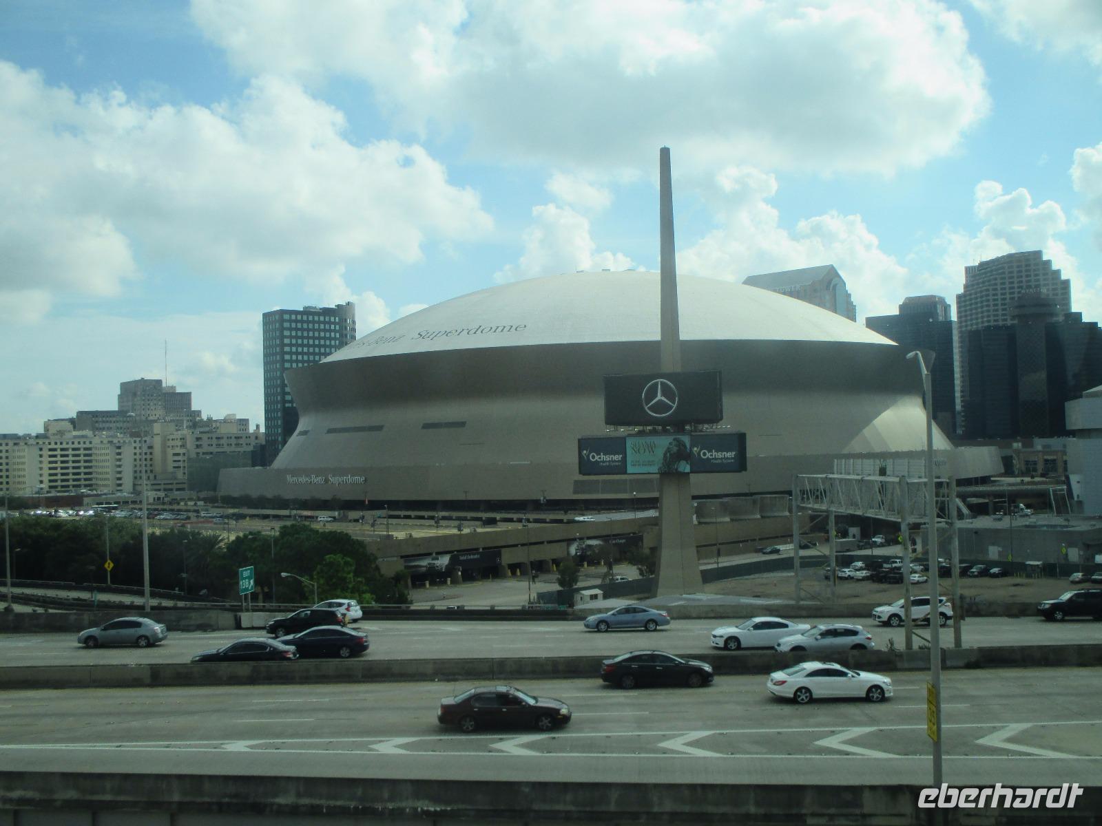 Nach einer Mütze Schlaf treffen wir uns erholt zum Frühstück wieder. Nun kann es beginnen, unsere Reise mit dem „American Way of Life". Leo erwartet uns bereits um die Koffer zu verladen. Er bringt uns von Midtown nach Downtown Houston, das vor allem durch zahlreiche Wolkenkratzer mit Büros gekennzeichnet ist. Damit die Einwohner in dieser Hitze nicht ständig ins Schwitzen geraten, sind die meisten Gebäude mit ober- und unterirdischen Gängen mit einander verbunden. Am Rathaus steigen wir aus und laufen ein wenig durch die Straßen von Downtown Houston. Wir spazieren durch einen kleinen Park von dem man auch das schöne Rockefeller-Gebäude sehen kann. In die Bank of America gehen wir auch hinein. Die Empfangshalle ist mit einer wunderschönen Uhr und zahlreichen Fahnen gestaltet. Etwas hinuntegekühlt begeben wir uns auf der anderen Seite wieder aus dem Gebäude und fotografiren dort das Gebäude der hiesigen Philharmonie. Es ist auch sehr beeindruckend, wie sich die Gebäude in den Glasfronten anderer Gebäude widerspiegeln. Vereinzelt schaut mal ein kleines Häuschen zwischen den Hochhäusern hervor, die sich dann ebenfalls in den Verkleidungen der Wolkenkratzer spiegeln. Zum Schluss gehen wir noch hinein in das Rathaus, wo uns Marguerite den Bürgermeister der Stadt Houston „vorstellt". Zurück im Bus fahren wir erneut über die Interestate und erreichen schließlich das Johnson Houston Space Center, welches nach Hurrikan Harvey bereits wieder wieder eröffnet hat. Mit einer kleinen Bimmelbahn unternehmen wir eine rund anderthalbstündige Rundfahrt über das Gelände der NASA. Vorbei am Doppeljet rattern wir zu einem Gebäude, in dem die Control Station untergebracht ist. Wir steigen die Treppen hinauf in das historische ControlCenter. Historisch deshalb, da es zwar noch das originale ist aber heute nicht mehr genutzt wird. Daher wurde es als Museum hergerichtet. Hier drin hängt noch die originale Fahne, die Amstrong bei der Begehung des Mondes gehisst hat. Das neue, aktuelle ControlCenter befindet sich heutzutage eine Etage drunter. Weiter fahren wir mit dem Zug über das Gelände und erreichen schließlich das Gebäude, in dem die Astronauten den zahlreichen Tests und Übungen unterziehen, bevor Sie eine Rakete betreten können. Nach einem kleinen Einführungsfilm besuchen wir die Halle, die mehr als zwei Fußballfelder groß ist. Hinter den großen Fensterschreiben können wir beobachten, wie einige NASA-Mitarbeiter ihrer Arbeit nachgehen. Es alles wirklich höchst interessant. Die letzte Station auf unserer Reise mit dem Bimmelzug ist eine Halle in der eine alte amerikanische Rakete in Originalgröße ausgestellt ist. Die Größe ist so beeindruckend. Auf der einen Seite der Wände sind die Apollo-Piloten und Commander mit Namen und Foto vorgestellt, was auch sehr interessant ist. Zurück im Museum haben wir nun ein wenig individuelle Freizeit, um uns umzuschauen. Ausführlich und eindrucksvoll ist die Raumfahrt hier dargestellt. Ein Höhepunkt ist die NASA 905, eine doppelgeschossige Boing, die hier ausgestellt ist. Es ist übrigens die einzige, die man sich auch von innen anschauen darf. Zurück an Bord des Busses haben wir nun die längste Fahrt der Reise vor uns. Unser Ziel ist die Stadt New Orleans. Auf unserer Reiseroute verlassen wir den Bundesstaat Texas und fahren in Lousiana weiter. Vorbei an der Hauptstadt Baton Rouge erreichen wir am Abend schließlich die Großstadt New Orleans. Unser Abend klingt beim gemeinsamen Abendessen in einem lokalen Restaurant auf der Bourbon Street aus. Mit einige Gästen aus der Reisegruppe versacke ich schlussendlich noch in einem Innenhof, wo wir der Jazz-Musik lauschen.