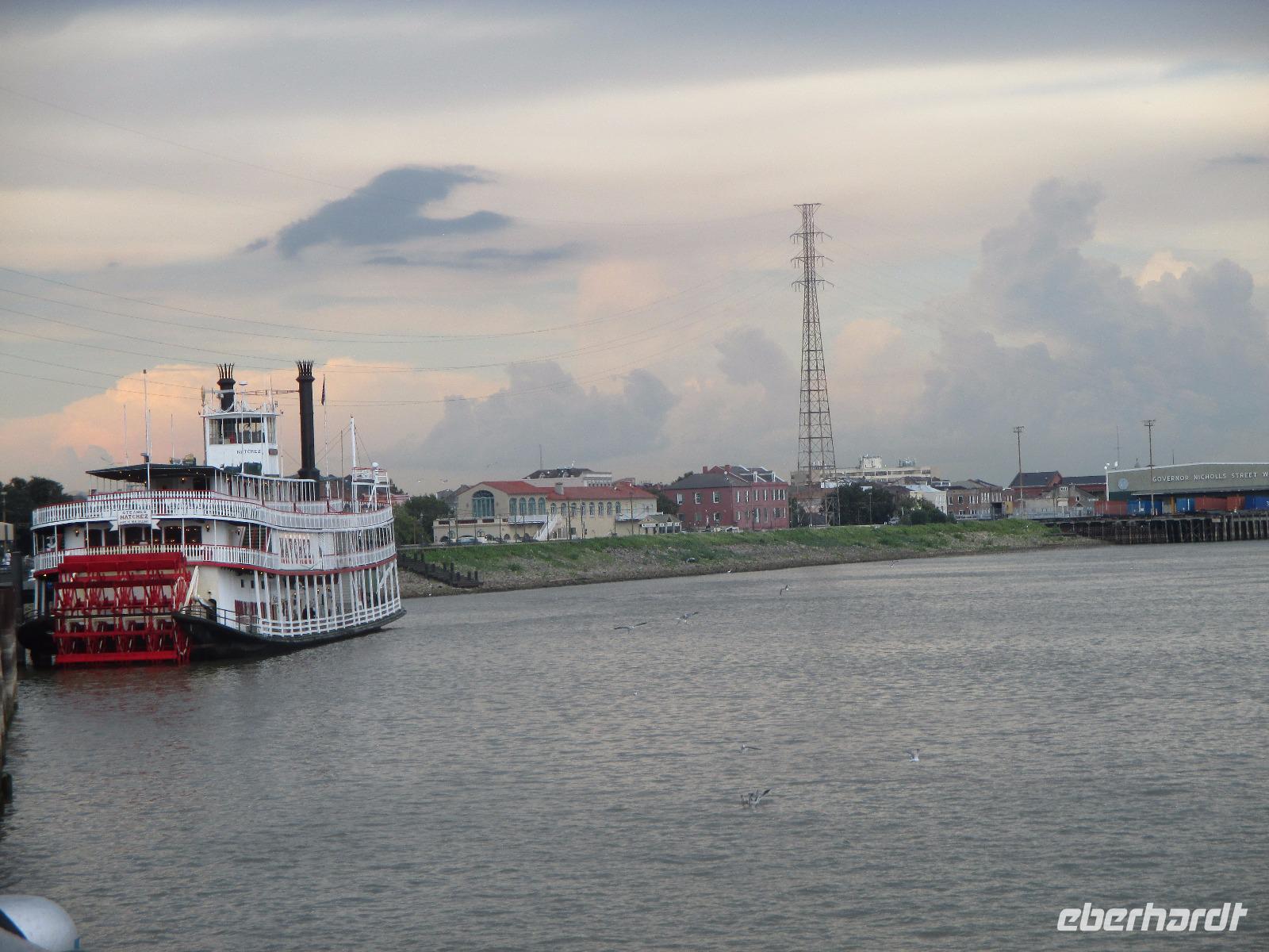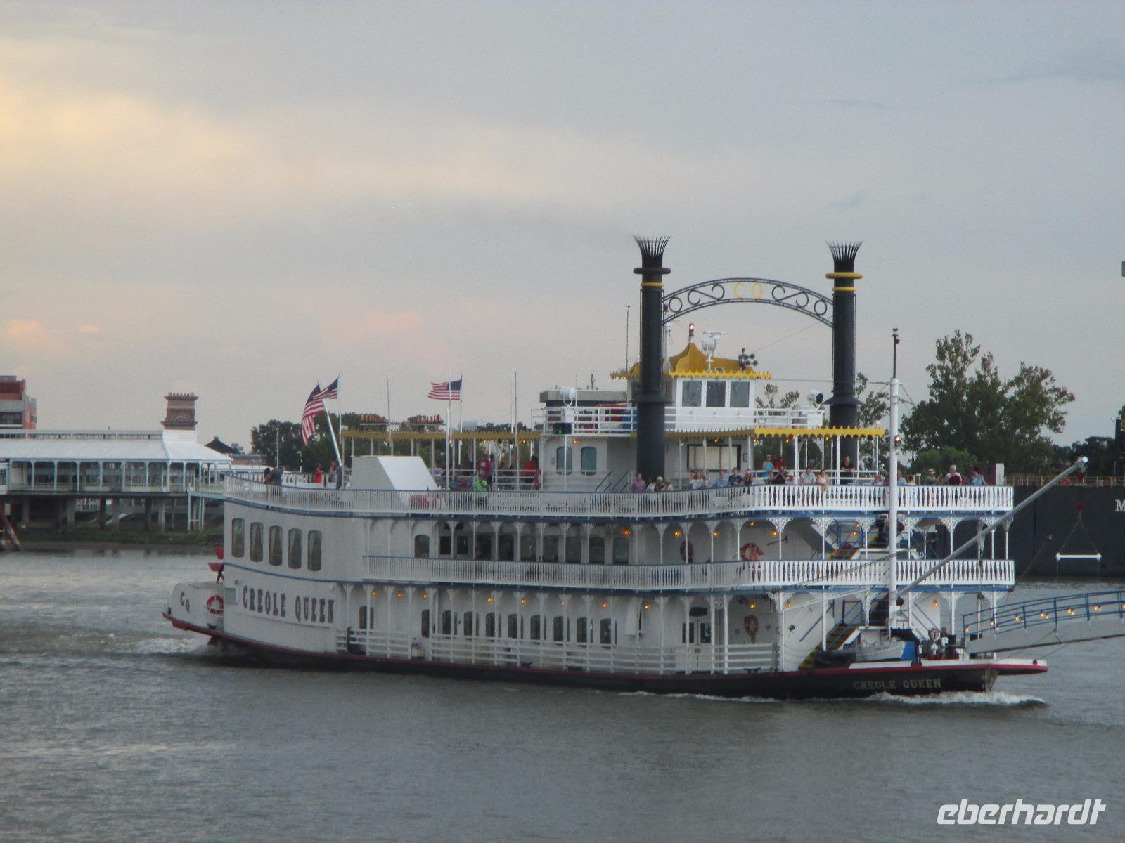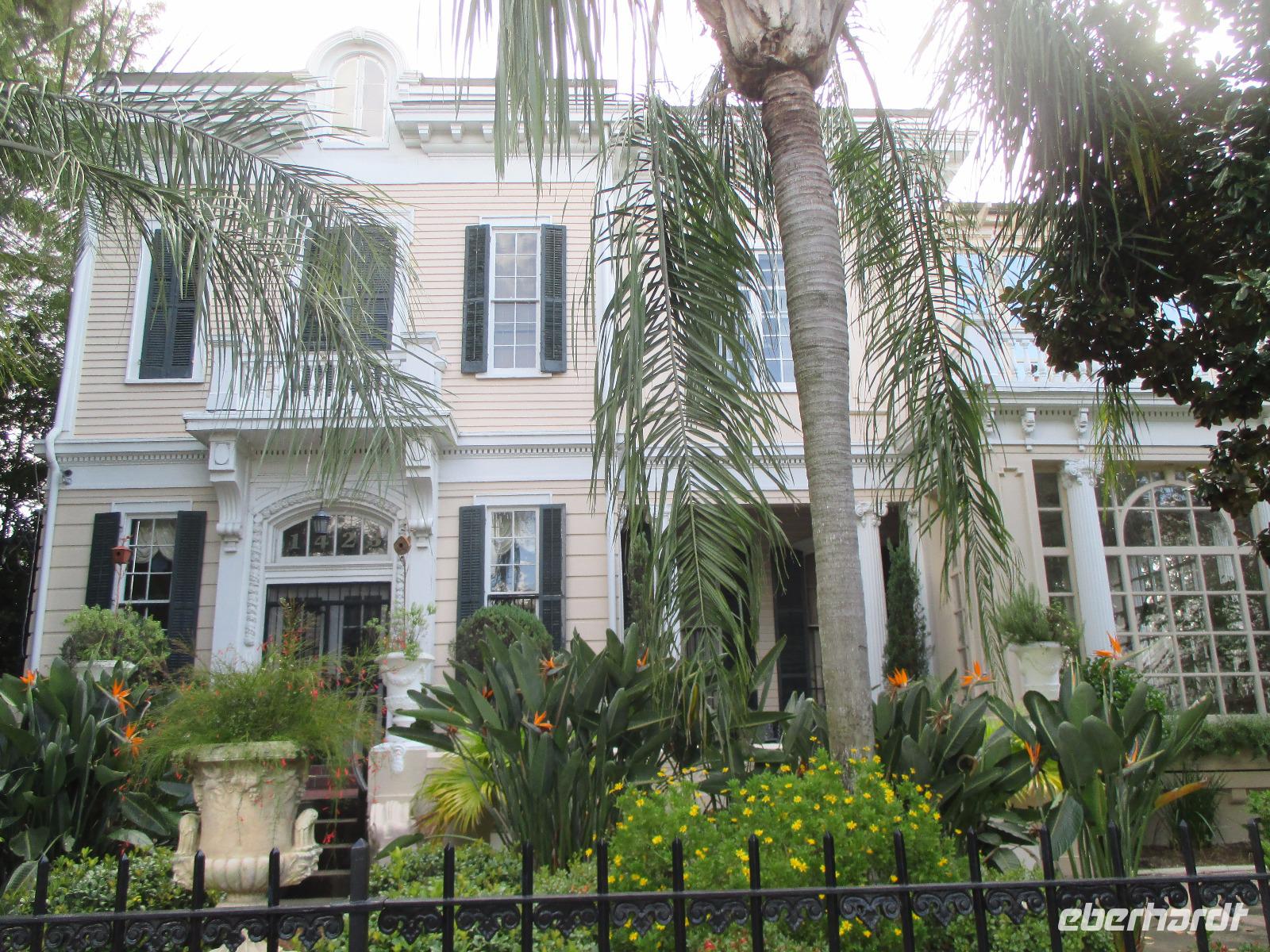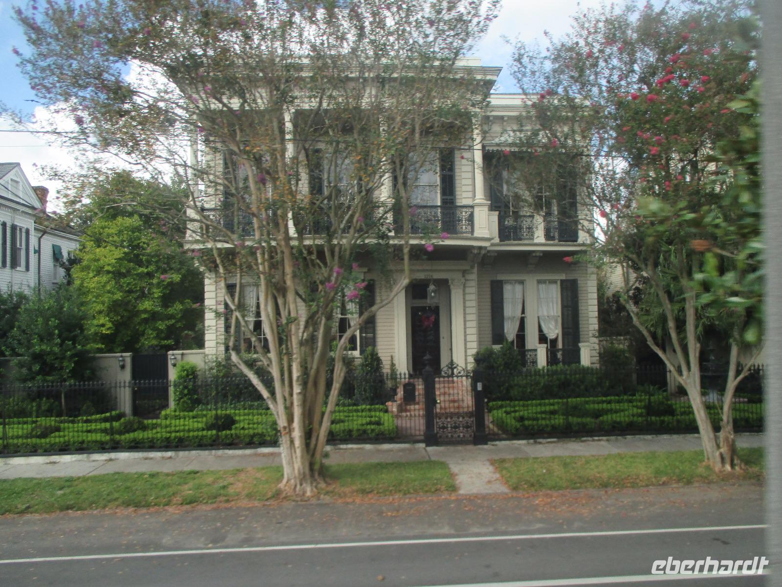 Am Morgen begrüßt uns unsere Stadtführerin Ina jeden einzeln im Bus. Sie kommt aus dem Frankenland, studierte in Hamburg und lebt bereits seit über 30 Jahren hier in den Vereinigten Staaten. Die Führung findet zunächst im Bus statt. Leo und Ina bringen uns auf die Canal Street und dort zeigen sie uns das berühmte Theater der Stadt, welches von Hurrikan Kathrina vor 12 Jahren zerstört wurde und erst seit drei Jahren wieder seine Türen öffnet. Weiter geht es entlang der wohl breitesten Geschäftsstraße der Welt, vorbei am Maison blanche, heute ein Hotel, bis hinunter zum Casino der Stadt. Gaming ist hier in diesem Bundesstaat nämlich nicht verboten. Danach biegen wir ins French Quarter ab und kommen am Schiffsanleger des Mississippi-Dampfers Natchez sowie der Kathedrale vorbei. Vor dem French Market steht die Statue von Jeanne D'Arc, einst ein Geschenk eines französischen Staatspräsidenten. Über die Champs de Elysee fahren wir in Richtung Autobahn. Zudem erzählt uns Ina, das hier innerhalb von 3 Blocks mehr als 40 Musikclubs ihr Zuhause gefunden haben und hier vorrangig auch die Einwohner New Orleans zu finden sind. Vorbei am „Geisterstadt-Krankenhaus", am Mercedes-Superdome und dem hiesigen Basketball-Stadion und am Museum des Zweiten Weltkrieges erreichen wir durch ein Viertel, in dem vorrangig Iren leben, den Garden District. Hier steigen wir aus und verabschieden uns von Leo, den wir heute nicht mehr wiedersehen. Nun geht es zu Fuß weiter und Ina zeigt uns ein schönes herrschaftliches Haus nach dem anderen. Zu ganz vielen dieser Häuser gibt es eine Geschichte zu erzählen, sei es, dass es einem Schauspieler gehört, es einen ganz speziellen Zaun hat oder es eine ganz spezielle Rolle gespielt hat im Bürgerkrieg. Zu unserem Rundgang zählt auch der Besuch des Friedhofes, denn hier sind auch viele deutsche Bürger begraben. Nach einer kleinen Pause fahren wir mit der Straßenbahn zurück in die Innenstadt von New Orleans. An der Canal Street steigen wir aus und laufen in die Bourbon Street, DIE Straße im French Quarter. Sie zeigt uns das Hotel Monteleone, dass zum einen deshalb markant ist, weil sich auf dem Dach des Hotels ein weiteres Haus befindet, in dem die Familie Monteleone, einst zum Schutz vor der Mafia, auch heute noch lebt. Zum anderen gibt es hier eine Lounge, deren Bar aus einem alten Karussell besteht. Alle Gäste, die direkt an der Bar Platz nehmen, drehen sich innerhalb von 15 Minuten eine ganze Runde. In einem kleinen Geschäft erzählt Ina uns noch was es mit den schönen alten Lampen überall in der Stadt auf sich hat bevor die wirklich mehr als interessante Stadtführung im Restaurant Court of 2 Sisters endet. Leider können wir nicht im wunderschönen Innenhof sitzen, da dieser für Filmaufnahmen gesperrt ist aber trotzdem stärken wir uns am Buffet mit louisanischen Spezialitäten und lauschen den Jazz-Melodien des Trios, das hier für uns spielt. Während unseres Spazierganges zum Hafen kommen wir an dem Haus vorbei, welches so typisch für das French Quarter ist: ein mehrgeschossiges Gebäude mit ganz vielen Grünpflanzen und einer wunderschönen Galerie. Wir kommen an einen Platz, an dem junge Musiker ihre Musik vorspielen und damit das umher stehende Publikum begeistern. Wir schauen uns noch die Kathedrale von innen an und laufen dann weiter zum Anleger, den unser nächster Programmpunkt ist eine Schifffahrt auf dem Schaufelraddampfer Natchez. Während wir anstehen um auf das Boot zu gelangen, ereilt uns ein wahrer tropischer Platzregen, der selbst mit Regenschirm schwer entgegen zu treten ist. Nun unternehmen wir eine fast zweistündige Rundfahrt auf dem Mississippi. Wir sehen noch ein paar Zerstörungen von Kathrina, kommen an einer Zuckerfabrik vorbei und sehen noch eine sehr große Werksanlage. Wir dürfen auch den Maschinenraum des Schiffes betreten und anschauen. Zurück an Land haben wir Freizeit und jeder Reisegast kann sich seinen restlichen Nachmittag so gestalten wir er möchte. Mit einigen Gästen ziehe ich in das nahegelegene Outlet los aber leider ist dieses ein nicht so schönes und so gehen wir mit fast leeren Taschen wieder heraus. So beschließen wir, unser Geld in Cocktails an der Karussel-Bar im Hotel Monteleone zu investieren. Gesagt, getan und so trinken wir Pina Colada und Wein im stillvollen Ambiente. Danach zieht es uns nochmal in das Hafengebiet bevor wir durch das French Quarter zurück zu unserem Hotel spazieren. Heute sind wir im wahrsten Sinne des Wortes pflastermüde.