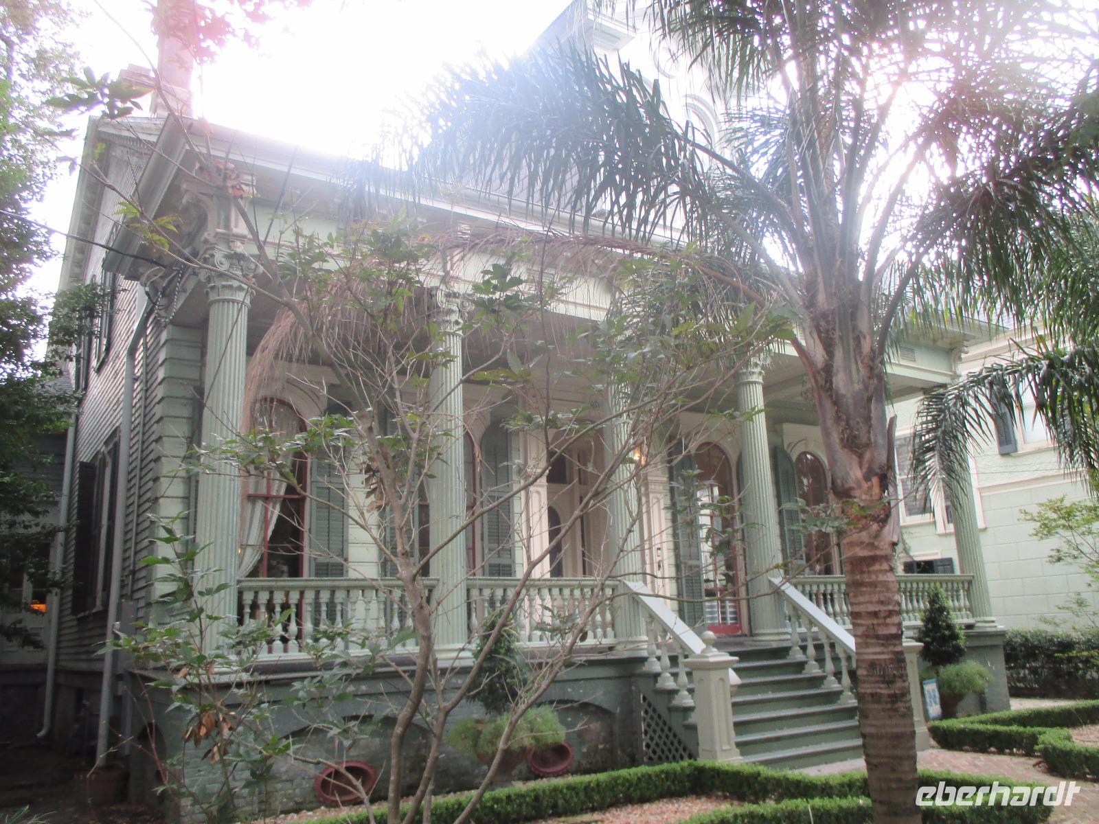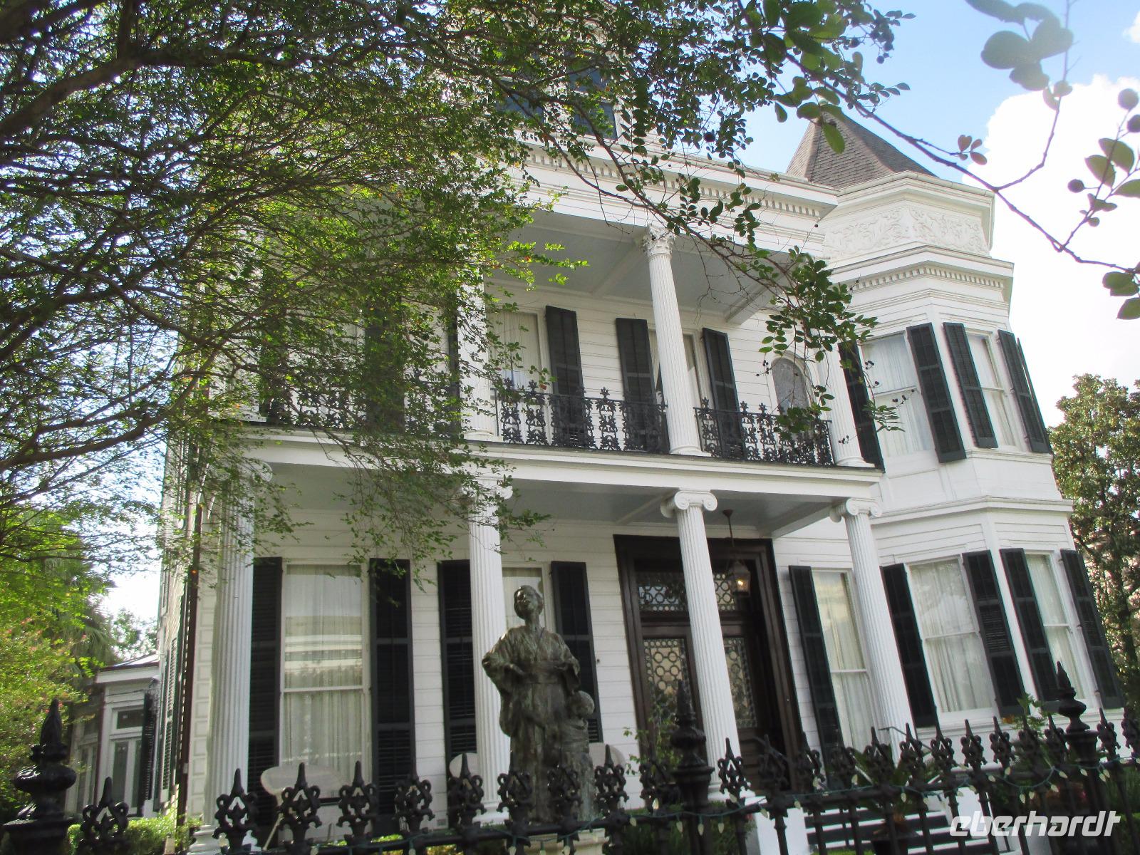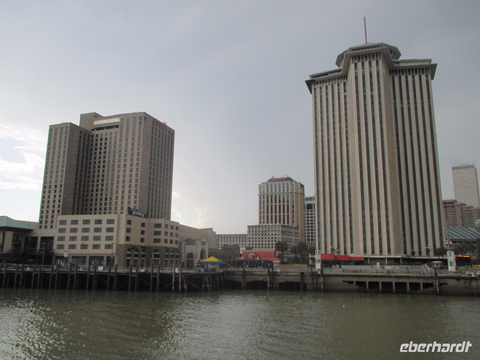 Am Morgen begrüßt uns unsere Stadtführerin Ina jeden einzeln im Bus. Sie kommt aus dem Frankenland, studierte in Hamburg und lebt bereits seit über 30 Jahren hier in den Vereinigten Staaten. Die Führung findet zunächst im Bus statt. Leo und Ina bringen uns auf die Canal Street und dort zeigen sie uns das berühmte Theater der Stadt, welches von Hurrikan Kathrina vor 12 Jahren zerstört wurde und erst seit drei Jahren wieder seine Türen öffnet. Weiter geht es entlang der wohl breitesten Geschäftsstraße der Welt, vorbei am Maison blanche, heute ein Hotel, bis hinunter zum Casino der Stadt. Gaming ist hier in diesem Bundesstaat nämlich nicht verboten. Danach biegen wir ins French Quarter ab und kommen am Schiffsanleger des Mississippi-Dampfers Natchez sowie der Kathedrale vorbei. Vor dem French Market steht die Statue von Jeanne D'Arc, einst ein Geschenk eines französischen Staatspräsidenten. Über die Champs de Elysee fahren wir in Richtung Autobahn. Zudem erzählt uns Ina, das hier innerhalb von 3 Blocks mehr als 40 Musikclubs ihr Zuhause gefunden haben und hier vorrangig auch die Einwohner New Orleans zu finden sind. Vorbei am „Geisterstadt-Krankenhaus", am Mercedes-Superdome und dem hiesigen Basketball-Stadion und am Museum des Zweiten Weltkrieges erreichen wir durch ein Viertel, in dem vorrangig Iren leben, den Garden District. Hier steigen wir aus und verabschieden uns von Leo, den wir heute nicht mehr wiedersehen. Nun geht es zu Fuß weiter und Ina zeigt uns ein schönes herrschaftliches Haus nach dem anderen. Zu ganz vielen dieser Häuser gibt es eine Geschichte zu erzählen, sei es, dass es einem Schauspieler gehört, es einen ganz speziellen Zaun hat oder es eine ganz spezielle Rolle gespielt hat im Bürgerkrieg. Zu unserem Rundgang zählt auch der Besuch des Friedhofes, denn hier sind auch viele deutsche Bürger begraben. Nach einer kleinen Pause fahren wir mit der Straßenbahn zurück in die Innenstadt von New Orleans. An der Canal Street steigen wir aus und laufen in die Bourbon Street, DIE Straße im French Quarter. Sie zeigt uns das Hotel Monteleone, dass zum einen deshalb markant ist, weil sich auf dem Dach des Hotels ein weiteres Haus befindet, in dem die Familie Monteleone, einst zum Schutz vor der Mafia, auch heute noch lebt. Zum anderen gibt es hier eine Lounge, deren Bar aus einem alten Karussell besteht. Alle Gäste, die direkt an der Bar Platz nehmen, drehen sich innerhalb von 15 Minuten eine ganze Runde. In einem kleinen Geschäft erzählt Ina uns noch was es mit den schönen alten Lampen überall in der Stadt auf sich hat bevor die wirklich mehr als interessante Stadtführung im Restaurant Court of 2 Sisters endet. Leider können wir nicht im wunderschönen Innenhof sitzen, da dieser für Filmaufnahmen gesperrt ist aber trotzdem stärken wir uns am Buffet mit louisanischen Spezialitäten und lauschen den Jazz-Melodien des Trios, das hier für uns spielt. Während unseres Spazierganges zum Hafen kommen wir an dem Haus vorbei, welches so typisch für das French Quarter ist: ein mehrgeschossiges Gebäude mit ganz vielen Grünpflanzen und einer wunderschönen Galerie. Wir kommen an einen Platz, an dem junge Musiker ihre Musik vorspielen und damit das umher stehende Publikum begeistern. Wir schauen uns noch die Kathedrale von innen an und laufen dann weiter zum Anleger, den unser nächster Programmpunkt ist eine Schifffahrt auf dem Schaufelraddampfer Natchez. Während wir anstehen um auf das Boot zu gelangen, ereilt uns ein wahrer tropischer Platzregen, der selbst mit Regenschirm schwer entgegen zu treten ist. Nun unternehmen wir eine fast zweistündige Rundfahrt auf dem Mississippi. Wir sehen noch ein paar Zerstörungen von Kathrina, kommen an einer Zuckerfabrik vorbei und sehen noch eine sehr große Werksanlage. Wir dürfen auch den Maschinenraum des Schiffes betreten und anschauen. Zurück an Land haben wir Freizeit und jeder Reisegast kann sich seinen restlichen Nachmittag so gestalten wir er möchte. Mit einigen Gästen ziehe ich in das nahegelegene Outlet los aber leider ist dieses ein nicht so schönes und so gehen wir mit fast leeren Taschen wieder heraus. So beschließen wir, unser Geld in Cocktails an der Karussel-Bar im Hotel Monteleone zu investieren. Gesagt, getan und so trinken wir Pina Colada und Wein im stillvollen Ambiente. Danach zieht es uns nochmal in das Hafengebiet bevor wir durch das French Quarter zurück zu unserem Hotel spazieren. Heute sind wir im wahrsten Sinne des Wortes pflastermüde.