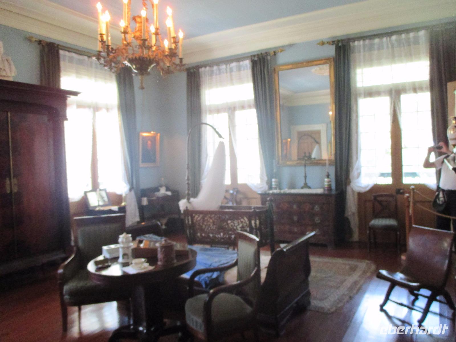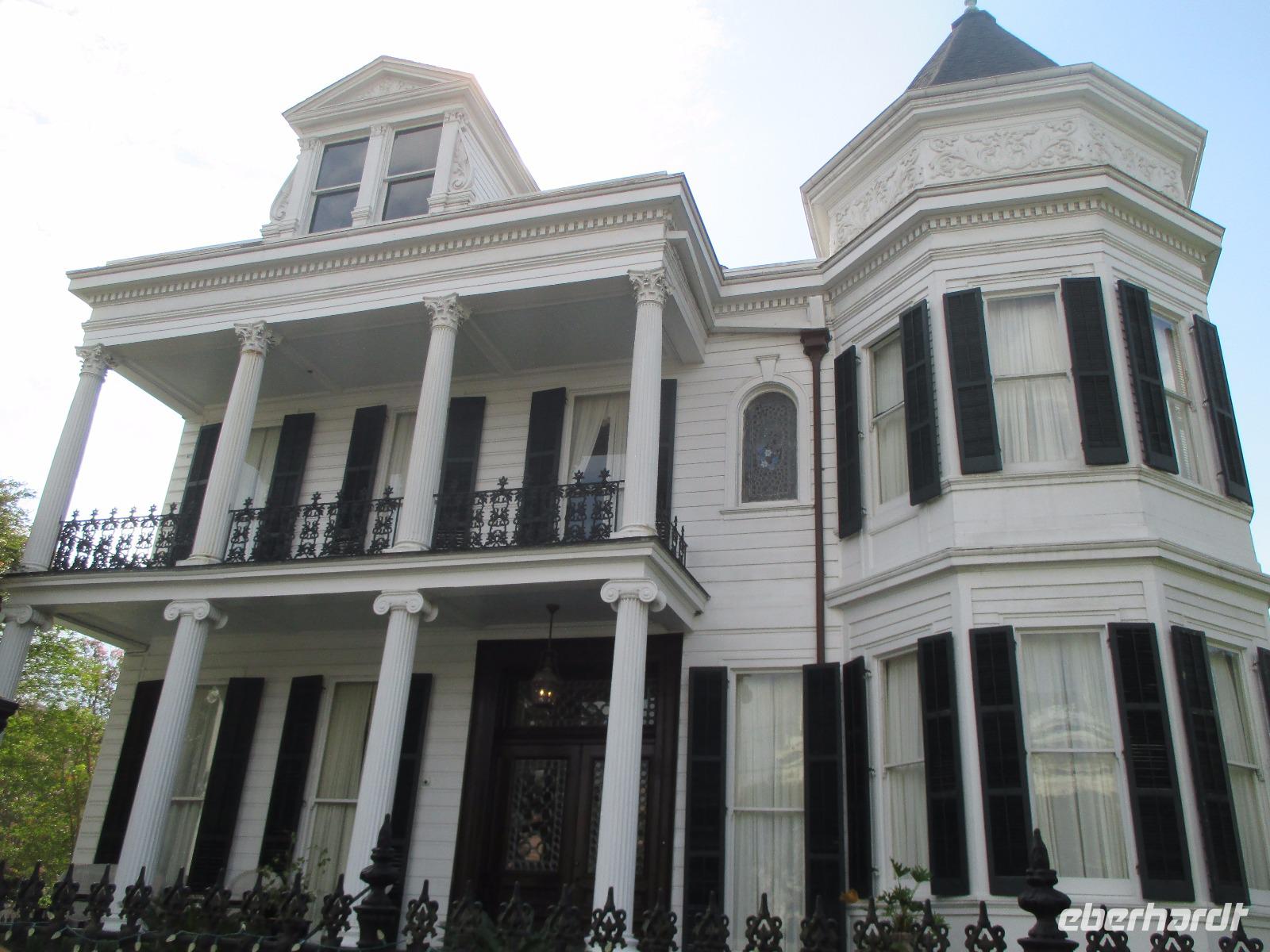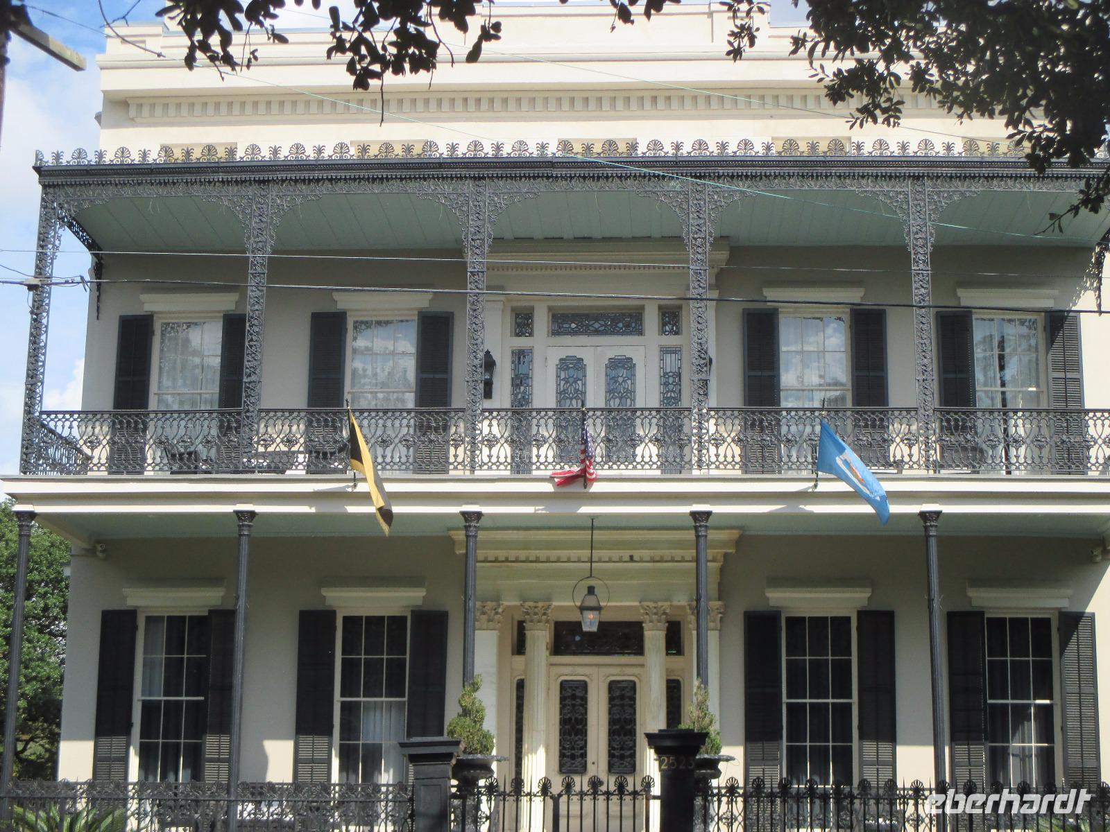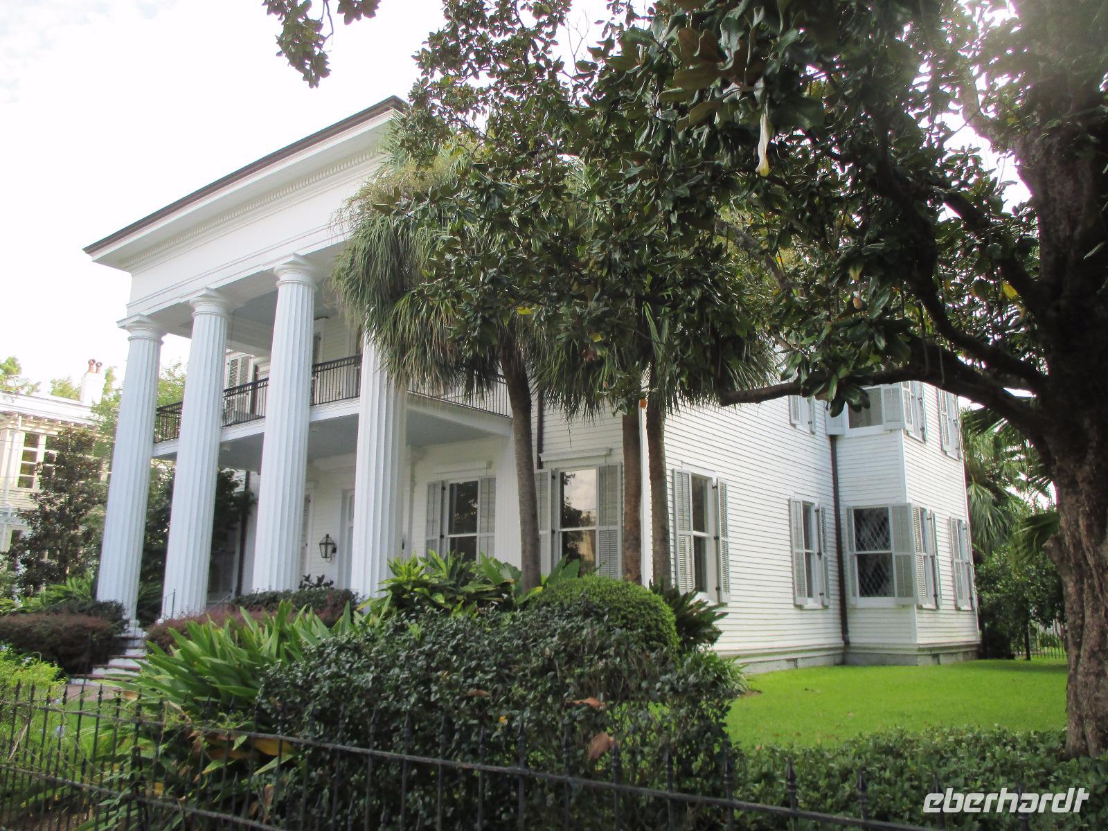 Am Morgen begrüßt uns unsere Stadtführerin Ina jeden einzeln im Bus. Sie kommt aus dem Frankenland, studierte in Hamburg und lebt bereits seit über 30 Jahren hier in den Vereinigten Staaten. Die Führung findet zunächst im Bus statt. Leo und Ina bringen uns auf die Canal Street und dort zeigen sie uns das berühmte Theater der Stadt, welches von Hurrikan Kathrina vor 12 Jahren zerstört wurde und erst seit drei Jahren wieder seine Türen öffnet. Weiter geht es entlang der wohl breitesten Geschäftsstraße der Welt, vorbei am Maison blanche, heute ein Hotel, bis hinunter zum Casino der Stadt. Gaming ist hier in diesem Bundesstaat nämlich nicht verboten. Danach biegen wir ins French Quarter ab und kommen am Schiffsanleger des Mississippi-Dampfers Natchez sowie der Kathedrale vorbei. Vor dem French Market steht die Statue von Jeanne D'Arc, einst ein Geschenk eines französischen Staatspräsidenten. Über die Champs de Elysee fahren wir in Richtung Autobahn. Zudem erzählt uns Ina, das hier innerhalb von 3 Blocks mehr als 40 Musikclubs ihr Zuhause gefunden haben und hier vorrangig auch die Einwohner New Orleans zu finden sind. Vorbei am „Geisterstadt-Krankenhaus", am Mercedes-Superdome und dem hiesigen Basketball-Stadion und am Museum des Zweiten Weltkrieges erreichen wir durch ein Viertel, in dem vorrangig Iren leben, den Garden District. Hier steigen wir aus und verabschieden uns von Leo, den wir heute nicht mehr wiedersehen. Nun geht es zu Fuß weiter und Ina zeigt uns ein schönes herrschaftliches Haus nach dem anderen. Zu ganz vielen dieser Häuser gibt es eine Geschichte zu erzählen, sei es, dass es einem Schauspieler gehört, es einen ganz speziellen Zaun hat oder es eine ganz spezielle Rolle gespielt hat im Bürgerkrieg. Zu unserem Rundgang zählt auch der Besuch des Friedhofes, denn hier sind auch viele deutsche Bürger begraben. Nach einer kleinen Pause fahren wir mit der Straßenbahn zurück in die Innenstadt von New Orleans. An der Canal Street steigen wir aus und laufen in die Bourbon Street, DIE Straße im French Quarter. Sie zeigt uns das Hotel Monteleone, dass zum einen deshalb markant ist, weil sich auf dem Dach des Hotels ein weiteres Haus befindet, in dem die Familie Monteleone, einst zum Schutz vor der Mafia, auch heute noch lebt. Zum anderen gibt es hier eine Lounge, deren Bar aus einem alten Karussell besteht. Alle Gäste, die direkt an der Bar Platz nehmen, drehen sich innerhalb von 15 Minuten eine ganze Runde. In einem kleinen Geschäft erzählt Ina uns noch was es mit den schönen alten Lampen überall in der Stadt auf sich hat bevor die wirklich mehr als interessante Stadtführung im Restaurant Court of 2 Sisters endet. Leider können wir nicht im wunderschönen Innenhof sitzen, da dieser für Filmaufnahmen gesperrt ist aber trotzdem stärken wir uns am Buffet mit louisanischen Spezialitäten und lauschen den Jazz-Melodien des Trios, das hier für uns spielt. Während unseres Spazierganges zum Hafen kommen wir an dem Haus vorbei, welches so typisch für das French Quarter ist: ein mehrgeschossiges Gebäude mit ganz vielen Grünpflanzen und einer wunderschönen Galerie. Wir kommen an einen Platz, an dem junge Musiker ihre Musik vorspielen und damit das umher stehende Publikum begeistern. Wir schauen uns noch die Kathedrale von innen an und laufen dann weiter zum Anleger, den unser nächster Programmpunkt ist eine Schifffahrt auf dem Schaufelraddampfer Natchez. Während wir anstehen um auf das Boot zu gelangen, ereilt uns ein wahrer tropischer Platzregen, der selbst mit Regenschirm schwer entgegen zu treten ist. Nun unternehmen wir eine fast zweistündige Rundfahrt auf dem Mississippi. Wir sehen noch ein paar Zerstörungen von Kathrina, kommen an einer Zuckerfabrik vorbei und sehen noch eine sehr große Werksanlage. Wir dürfen auch den Maschinenraum des Schiffes betreten und anschauen. Zurück an Land haben wir Freizeit und jeder Reisegast kann sich seinen restlichen Nachmittag so gestalten wir er möchte. Mit einigen Gästen ziehe ich in das nahegelegene Outlet los aber leider ist dieses ein nicht so schönes und so gehen wir mit fast leeren Taschen wieder heraus. So beschließen wir, unser Geld in Cocktails an der Karussel-Bar im Hotel Monteleone zu investieren. Gesagt, getan und so trinken wir Pina Colada und Wein im stillvollen Ambiente. Danach zieht es uns nochmal in das Hafengebiet bevor wir durch das French Quarter zurück zu unserem Hotel spazieren. Heute sind wir im wahrsten Sinne des Wortes pflastermüde.