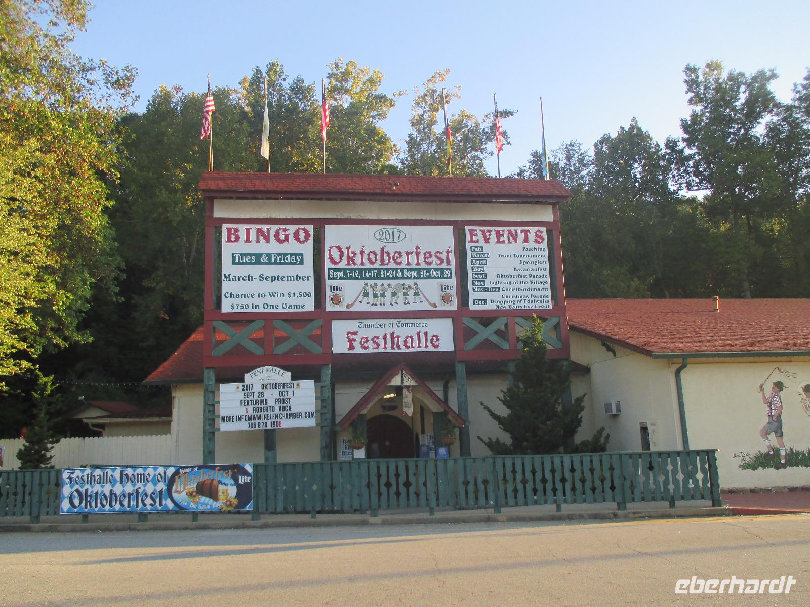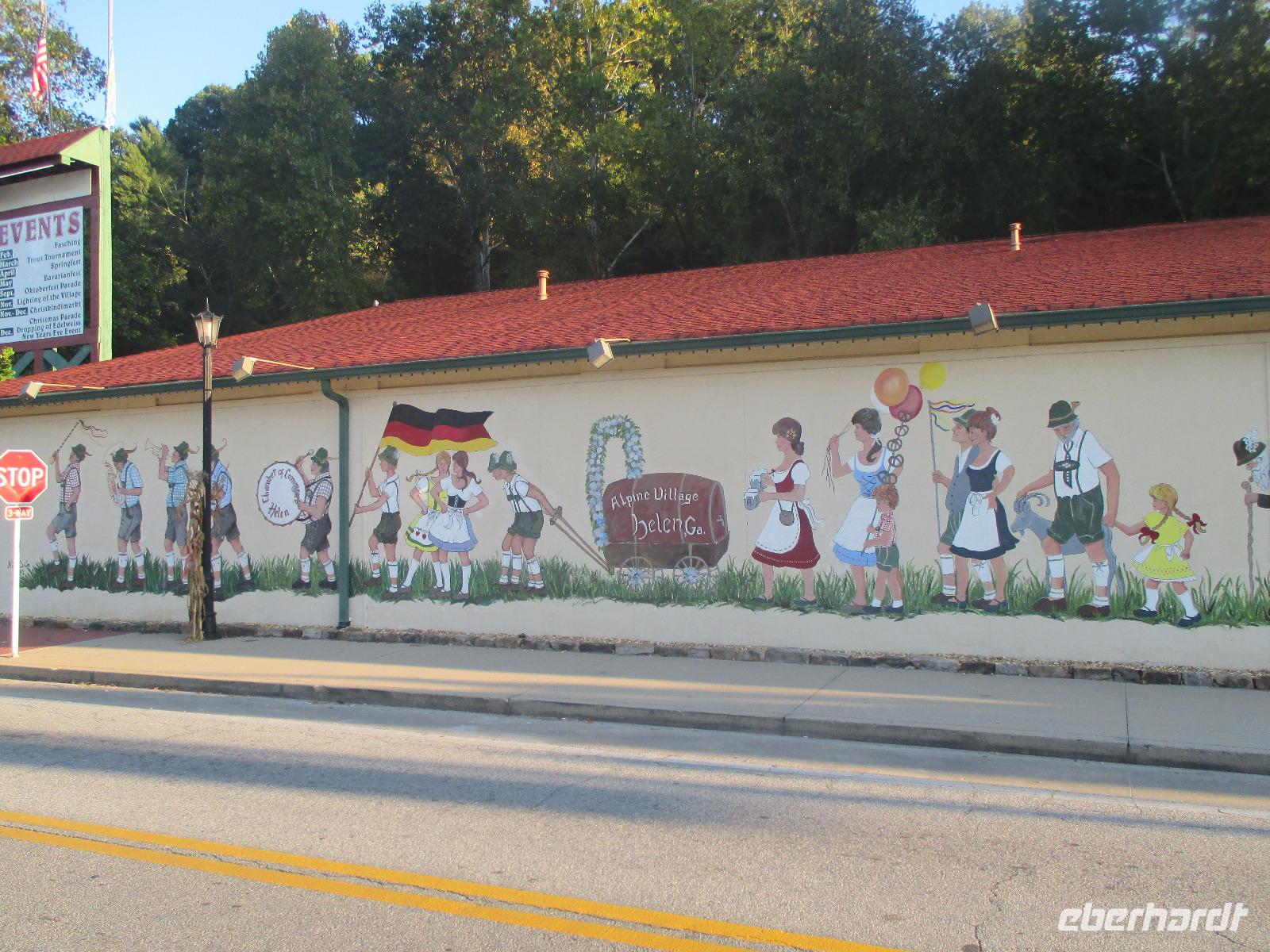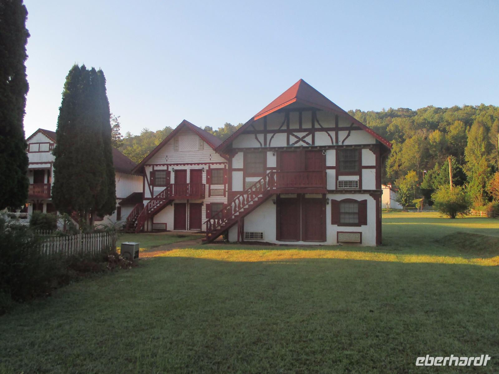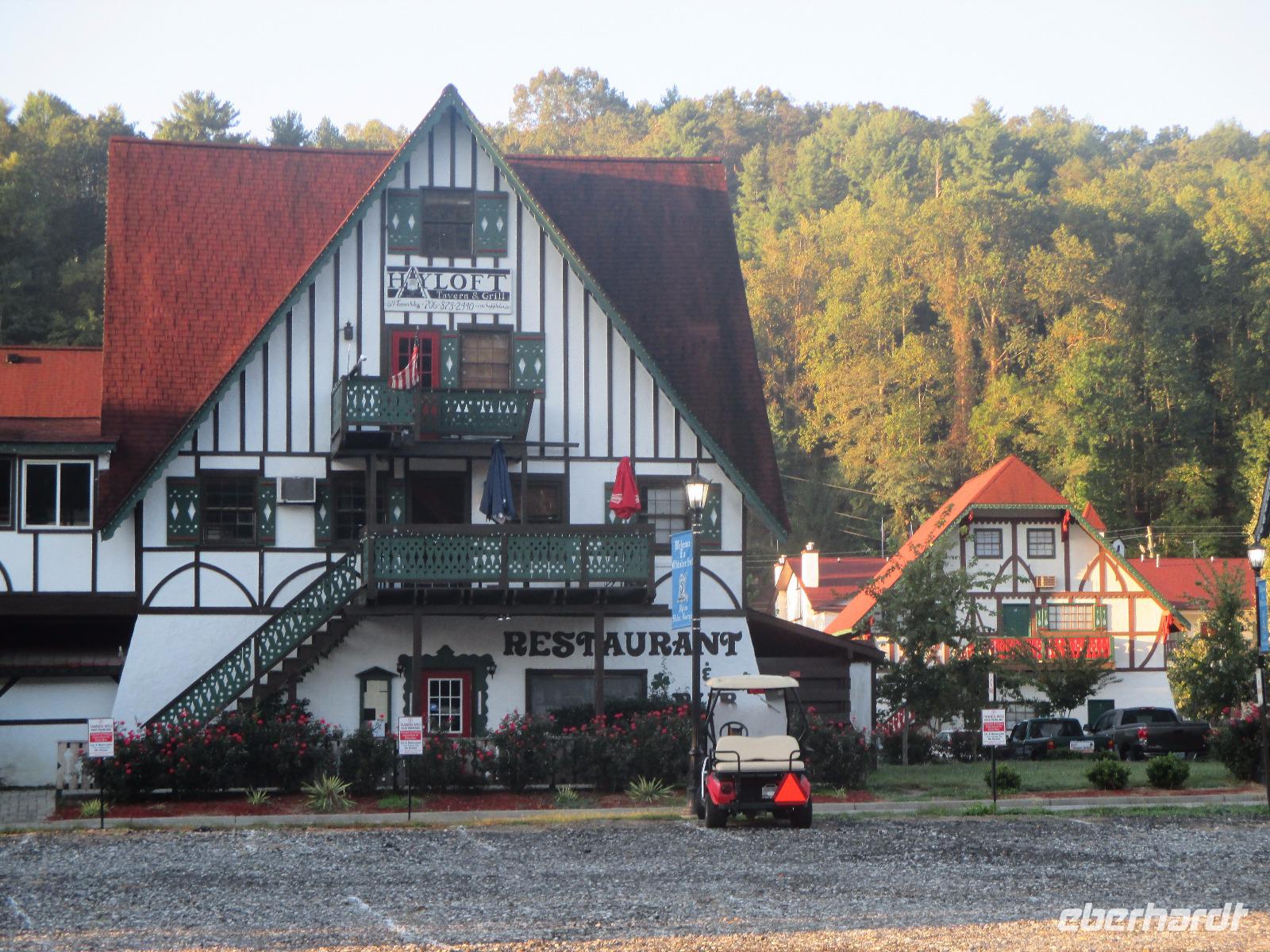 Auch das Frühstück im „„Frothy Monkey" ist sensationell und das Beste während unseres Aufenthaltes in den Südstaaten der USA. Danach besetzen wir wieder unsere Sitzplätze im Bus, der sich in Richtung Great Smoky Mountains in Bewegung setzt. Wir stoppen noch kurz an einem Supermarkt, indem wir für uns Mittagspicknick einkaufen. Leo bringt uns in Richtung Chereokee und wir passieren einen Ort nahe Dollywood (ein Vergnügungspark von Country Star Dolly Parton), der vor Kitsch nur so strotzt: Affen, Achterbahn, Weihnachtshäuser, eine nachgebaute Titanic und ein umgekipptes Haus sind nur einige Beispiele von Kuriositäten, die hier aufwarten. Endlich erreichen wir den Naturpark Great Smoky Mountains. Wir fahren hinauf und hinter jeder Biegung sind neue Naturbilder, die sich in unser Hirn abspeichern. Nach ein einem Fotostopp halten wir an einem Picknickarenal, wo wir unsere Mittagspause verbringen. Total romantisch an einem Fluss - hier kann man und frau es aushalten. Gut gestärkt fahren wir weiter und halten immer mal für Fotostopps. Schließlich halten wir am Informationszentrum der Great Smoky Mountains. Einige Reisegäste spazieren mit mir ein kleines Stück, andere gehen mit Marguerite in das Informationszentrum hinein. Die ganzen Eindrücke, die wir heute über den Tag erlebt haben, kann man eigentlich gar nicht in Worten wiedergeben. Über Chereokee, einem alten Indianerort, erreichen wir am Abend schließlich unseren Übernachtungsort Helen. Und welch Überraschung: Helen entpuppt sich als Nachbau einer bayrischen Stadt - überall Balkons und typisch bayrische Bauweise. Damit erklärt sich auch, warum wir heute Abend in einem deutschen Restaurant speisen - es gibt gar nichts anderes;-). Aber auch hier wartet eine Überraschung auf: es wird auf getafelt, im wahrsten Sinne des Wortes mit Spätzle, Rot- und Sauerkraut, Brat- und Weißwurst, Schnitzel, Rouladen, Kassler und Rinderbraten. Meine Reisegäste stürzen sich mit Begeisterung darauf. Auch die Speisekarte, die wir vorab betrachten, wartet mit zahlreichen deutschen Gerichten auf. Für die Verdauung werden noch einige Kräuter bestellt und voller Begeisterung spazieren wir anschließend zum Hotel zurück.