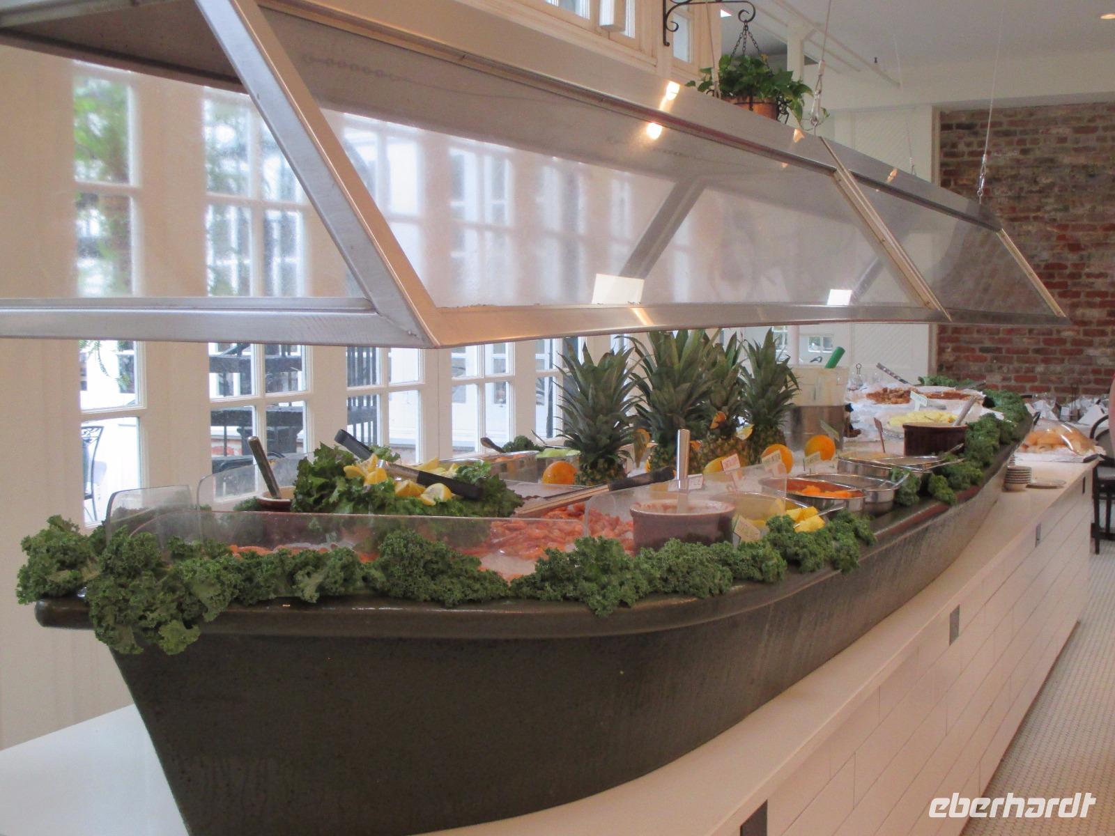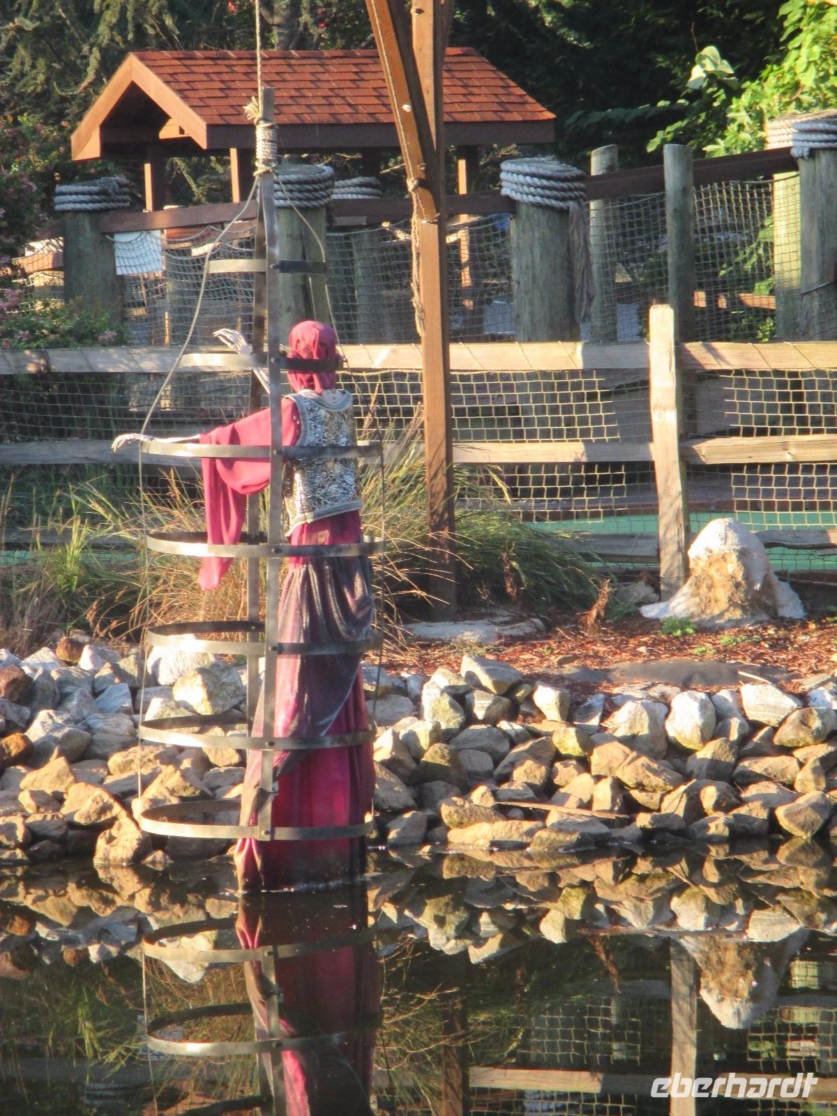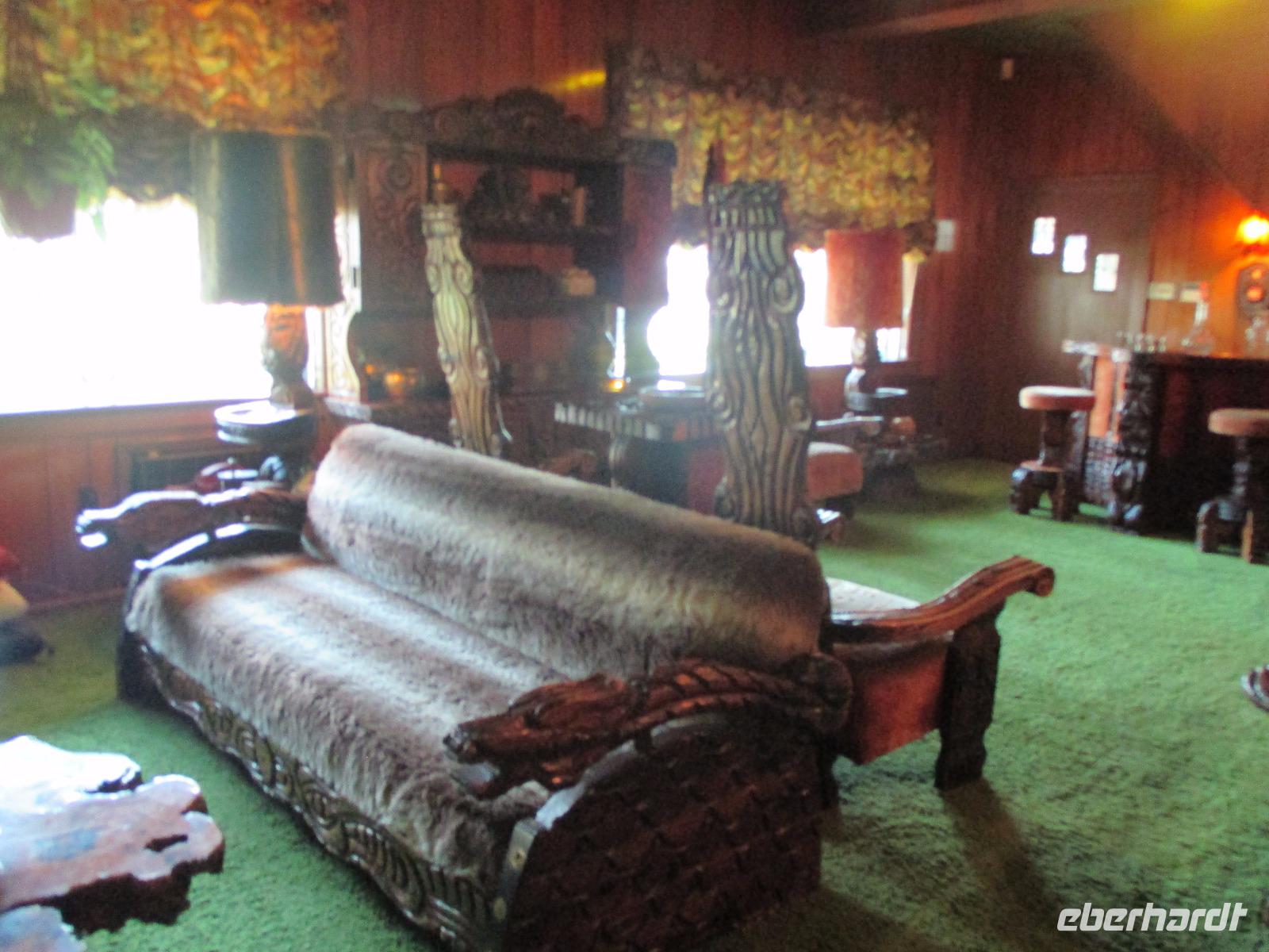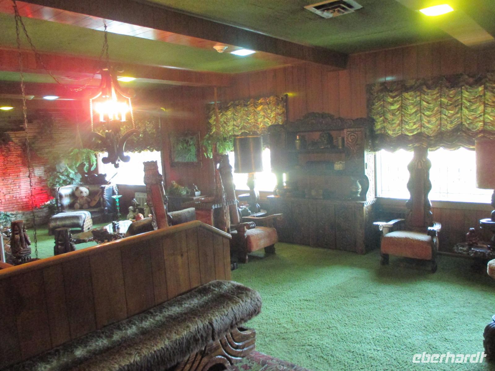 Auch das Frühstück im „„Frothy Monkey" ist sensationell und das Beste während unseres Aufenthaltes in den Südstaaten der USA. Danach besetzen wir wieder unsere Sitzplätze im Bus, der sich in Richtung Great Smoky Mountains in Bewegung setzt. Wir stoppen noch kurz an einem Supermarkt, indem wir für uns Mittagspicknick einkaufen. Leo bringt uns in Richtung Chereokee und wir passieren einen Ort nahe Dollywood (ein Vergnügungspark von Country Star Dolly Parton), der vor Kitsch nur so strotzt: Affen, Achterbahn, Weihnachtshäuser, eine nachgebaute Titanic und ein umgekipptes Haus sind nur einige Beispiele von Kuriositäten, die hier aufwarten. Endlich erreichen wir den Naturpark Great Smoky Mountains. Wir fahren hinauf und hinter jeder Biegung sind neue Naturbilder, die sich in unser Hirn abspeichern. Nach ein einem Fotostopp halten wir an einem Picknickarenal, wo wir unsere Mittagspause verbringen. Total romantisch an einem Fluss - hier kann man und frau es aushalten. Gut gestärkt fahren wir weiter und halten immer mal für Fotostopps. Schließlich halten wir am Informationszentrum der Great Smoky Mountains. Einige Reisegäste spazieren mit mir ein kleines Stück, andere gehen mit Marguerite in das Informationszentrum hinein. Die ganzen Eindrücke, die wir heute über den Tag erlebt haben, kann man eigentlich gar nicht in Worten wiedergeben. Über Chereokee, einem alten Indianerort, erreichen wir am Abend schließlich unseren Übernachtungsort Helen. Und welch Überraschung: Helen entpuppt sich als Nachbau einer bayrischen Stadt - überall Balkons und typisch bayrische Bauweise. Damit erklärt sich auch, warum wir heute Abend in einem deutschen Restaurant speisen - es gibt gar nichts anderes;-). Aber auch hier wartet eine Überraschung auf: es wird auf getafelt, im wahrsten Sinne des Wortes mit Spätzle, Rot- und Sauerkraut, Brat- und Weißwurst, Schnitzel, Rouladen, Kassler und Rinderbraten. Meine Reisegäste stürzen sich mit Begeisterung darauf. Auch die Speisekarte, die wir vorab betrachten, wartet mit zahlreichen deutschen Gerichten auf. Für die Verdauung werden noch einige Kräuter bestellt und voller Begeisterung spazieren wir anschließend zum Hotel zurück.