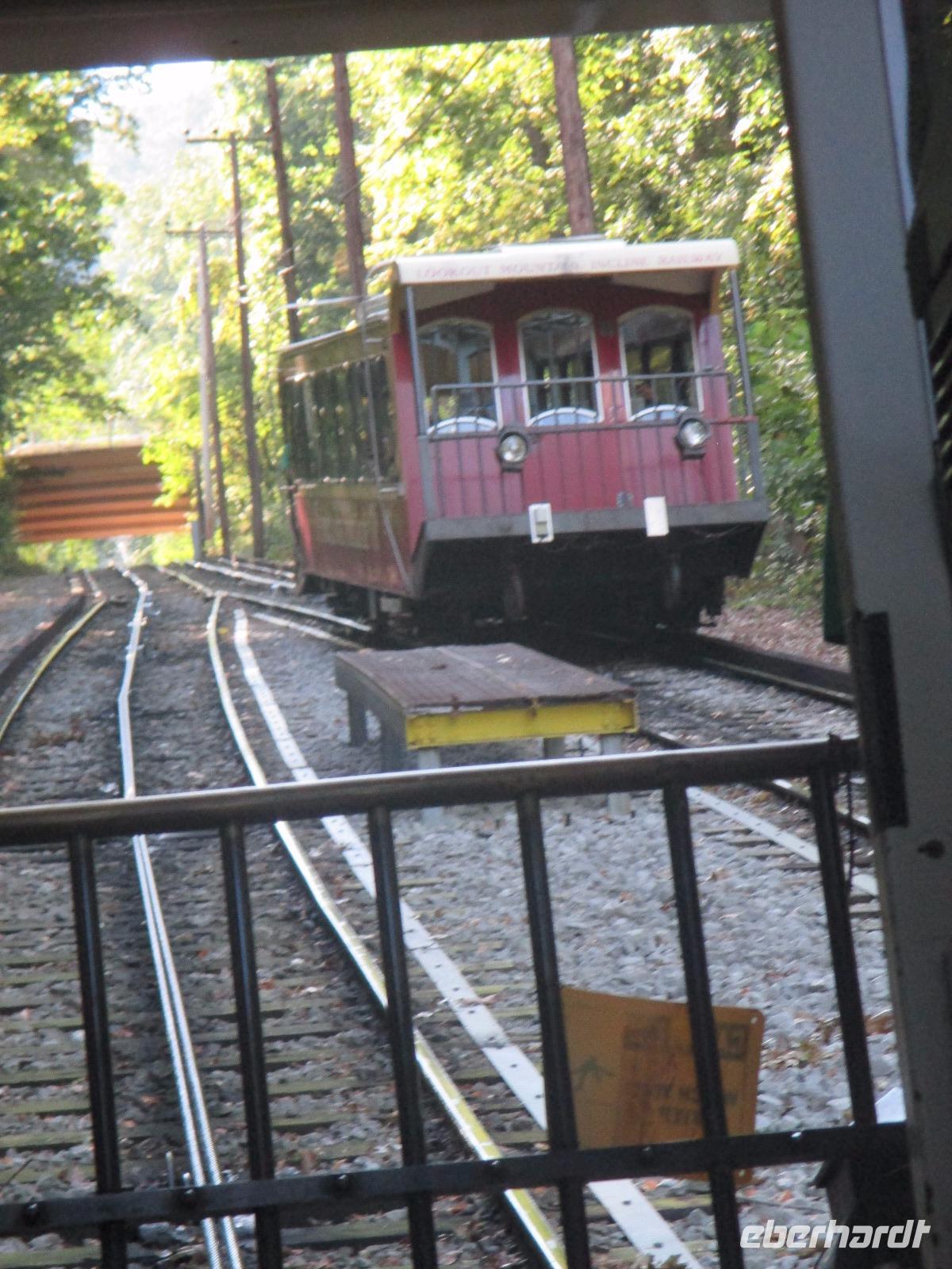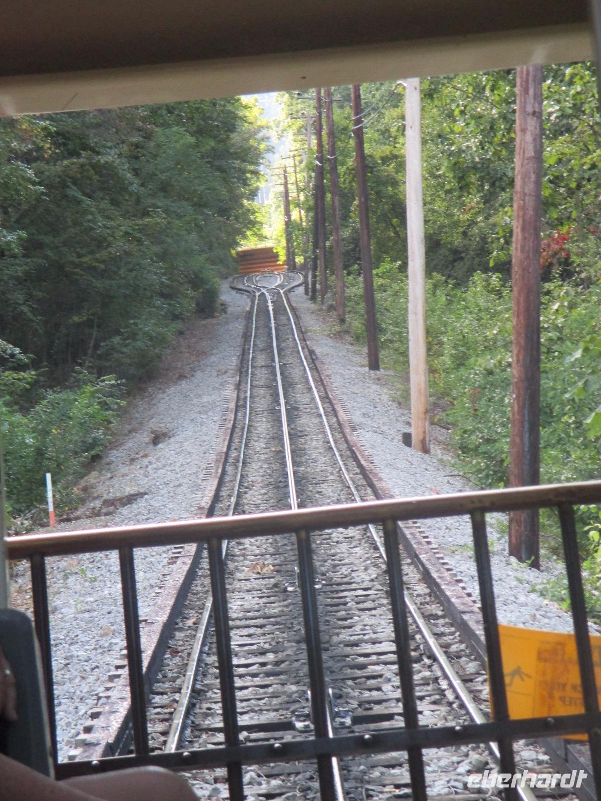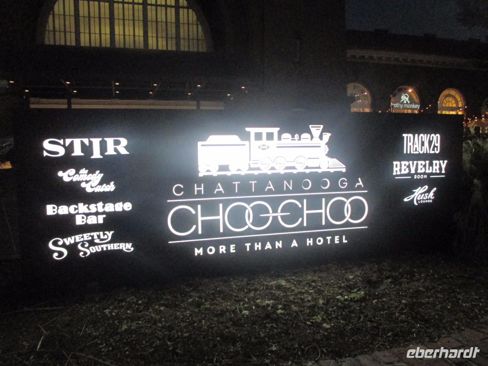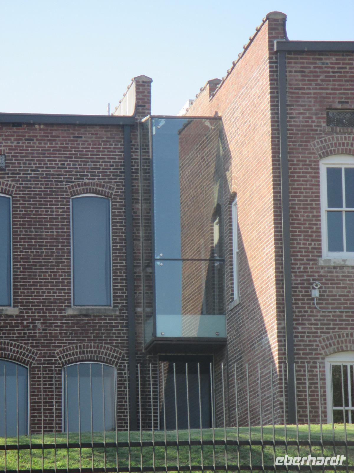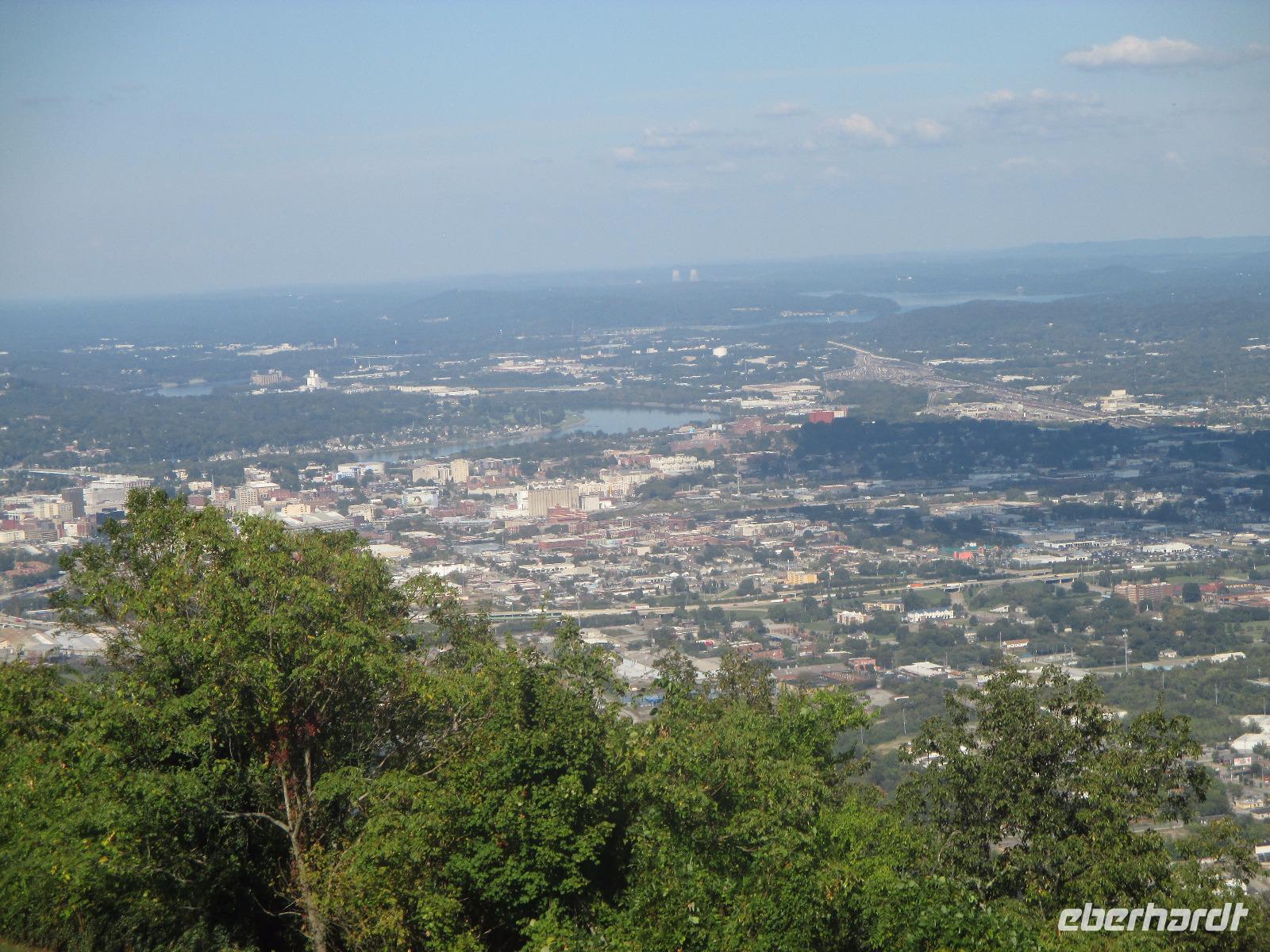 Leider ist heute der Luxus der letzten Tage vorbei und unser heutiger Startpunkt ist wieder 08:00 Uhr. Unser Weg führt uns in Richtung Lynchburg. Auf unserem Weg dahin sehen wir schon die ersten Ausläufer der Appalachen. Wir fahren nicht ganz zwei Stunden als wir unser Ziel, die Jack-Daniels-Destilliere. Da wir noch ein wenig Zeit bis zur Führung haben, schauen wir uns in der Eingangshalle um. Kurz nach 10 Uhr beginnt unsere Führung. Marguerite übersetzt für uns. Zunächst fahren wir mit dem Bus aus dem Gelände hinaus, ein Stück durch Lynchburg und steigen an einer andere Stelle des Firmengeländes wieder aus. Unser Guide erklärt uns, wie hier die Holzkohle hergestellt wird, sie zeigt uns die Wasserhöhle, aus der Herr Daniels das Wasser für die Whiskyproduktion und anschließend steht uns seine Statue für ein kleines Fotoshooting zur Verfügung. Nachdem uns der Guide noch sein Büro und den verhängnisvollen Tresor gezeigt hat, steigen wir wieder in den Bus ein. Nächster Stopp ist die Destillations-Halle, in der wir uns nur kurz aufhalten. Ein kleiner Film zeigt uns die Herstellung der Whisky-Fässer. Danach zeigt sie uns, wie die Flaschen etikettiert und verpackt werden. Zum Abschluss der Führung kommen wir noch in die große Lagerhalle. Die Führung endet im Werksverkauf, wo die Möglichkeit besteht, Whiskyflaschen käuflich zu erwerben. Wir machen noch ein kleines Fotoshooting auf einem überdimensionalen Schaukelstuhl und verbringen unsere Mittagspause in der Stadt Lynchburg. Diese ist aufgebaut wie eine kleine Westernstadt. Hier kann man zahlreiche Souvenirs, sei es verbunden mit der Jack-Daniels-Destillerie oder den Südstaaten, kaufen oder in den kleinen Cafés etwas essen oder trinken. Unser weiterer Weg führt uns nach Chattanooga. Kurz vor der Stadt müssen wir unsere Uhr um eine Stunde nach vorn stellen. Leo biegt auf den Parkplatz des Lookout Mountains ein und wir begeben uns zur Zugstation. Wir fahren mit der steilsten Zug, der Incline-Railway ca. 1,6 Kilometer hinauf. Steil deswegen weil die Steigung teilweise bis zu ca. 73% beträgt. Ziemlich steil und uns wird auch etwas mulmig, wenn wir nach hoch bzw. unten schauen. Oben angekommen, genießen wir einen Ausblick auf die weitläufige Landschaft und auf die Stadt Chattanooga. Natürlich nehmen wir den gleichen Weg hinab wie hinauf, also haben wir noch einmal ein tolles Zugerlebnis. Bevor wir in die Stadt zu unserem Hotel fahren, besuchen wir die mysteriösen Ruby-Wasserfälle. Mit einem Lift fahren wir in die Grotte hinab und spazieren rund 700 Fuß durch die Grotten und bestaunen dabei die angestrahlten Formationen. Einige erinnern an einen Elefantenfuß, Kartoffeln mit Steak, Kartoffelchips und auch Bacon. Wir kommen entlang der Hall of Dreams. Am Ende erreichen wir die legendären Ruby-Falls, ein Wasserfall in der Höhle mit einer enormen Höhe, auch der höchste Wasserfall in den Vereinigten Staaten von Amerika. Die Musik ertönt und der Wasserfall wird in bunten Farben angestrahlt. Ein schöner und seltener Anblick - da hat sich der Spaziergang untertage doch wirklich gelohnt. Zurück übertage wartet Leo bereits auf uns und bringt uns in die Stadt Chatanooga, in der wir heute in einem besonderen Hotel übernachten: in einem umgebauten Bahnhof. Nachdem wir unsere Zimmer im alten Bahnhofsgelände bezogen haben, nutzen wir noch die Zeit, um ein paar Fotos im Schwimmbad und von den ausgestellten Zugwagons zu schießen. Selbst in den Wagons sind Hotelzimmer untergebracht. Das alte Bahnhofshauptgebäude ist umgebaut und beherbergt neben der Rezeption auch das Restaurant „Frothy Monkey". Das erste Mal auf der gesamten Reise dürfen wir draußen sitzen. Natürlich nehmen wir das Angebot an, entziehen uns der typisch-amerikanischen Klimaanlage und genießen die laue Sommernacht in Chatanooga. Wir dürfen a-la-carte bestellen und werden nicht enttäuscht: das servierte Essen ist eines der besten auf der gesamten Rundreise.