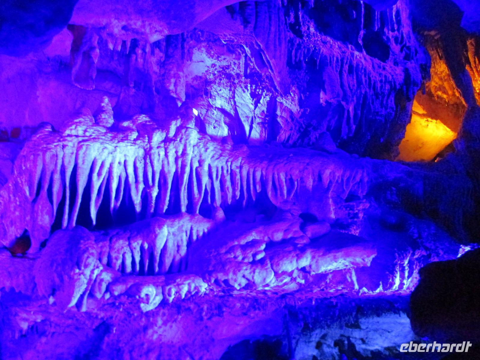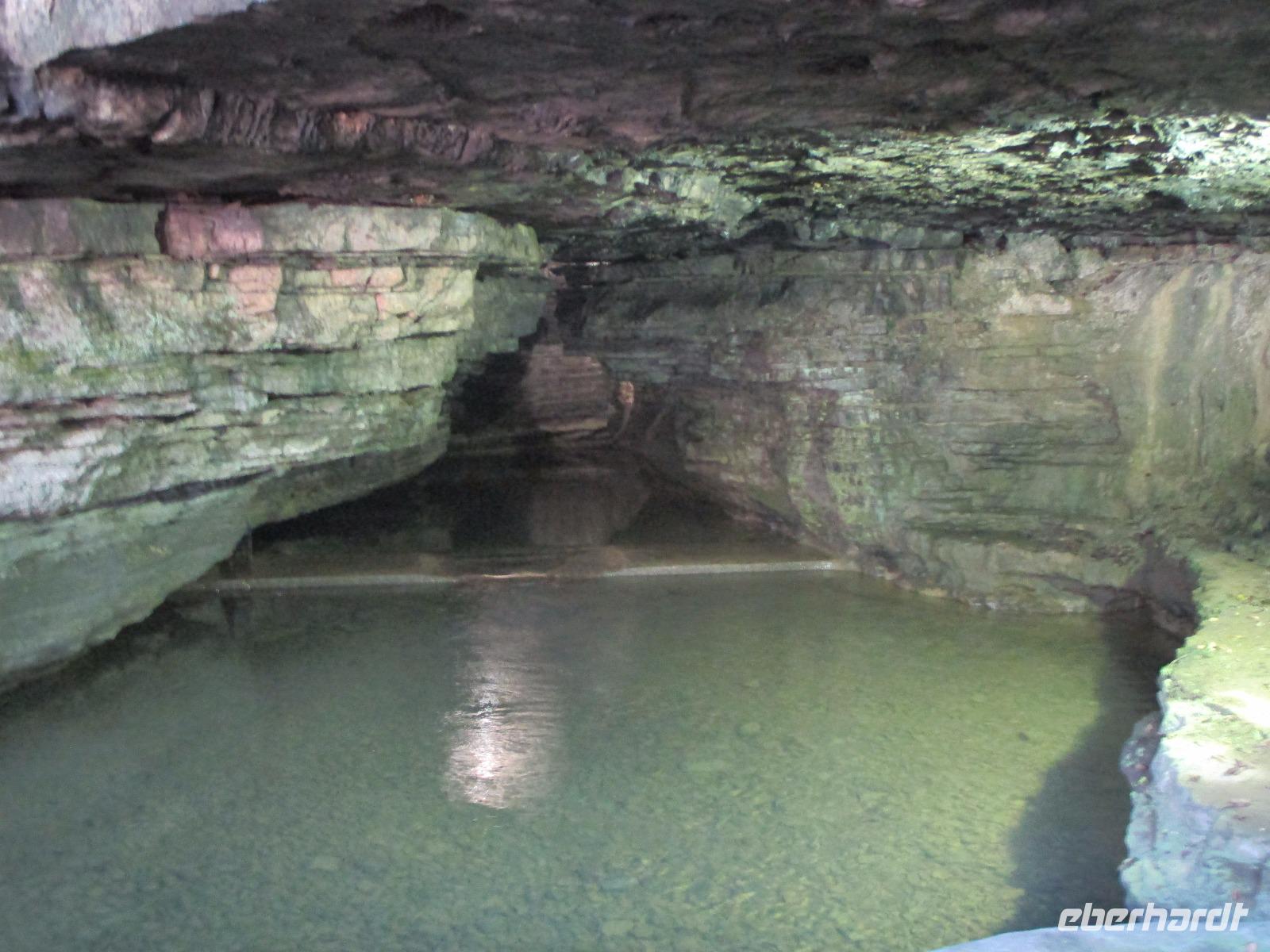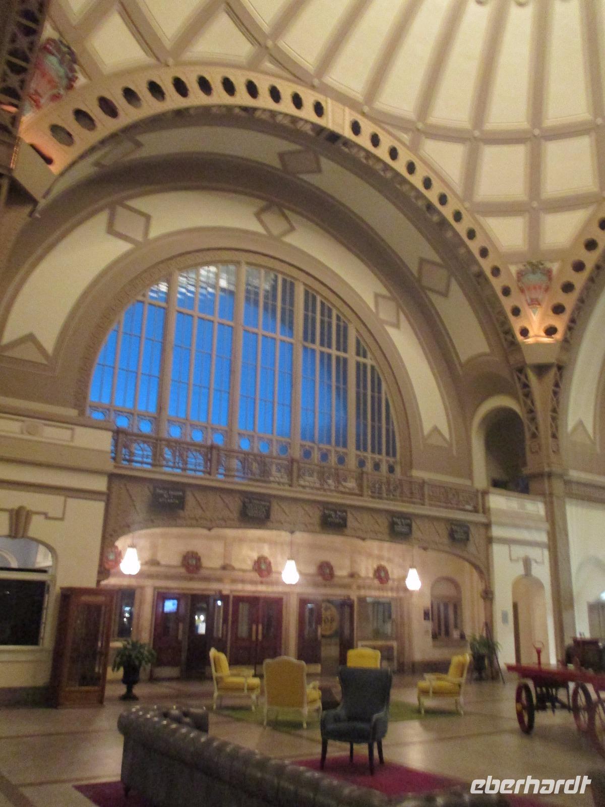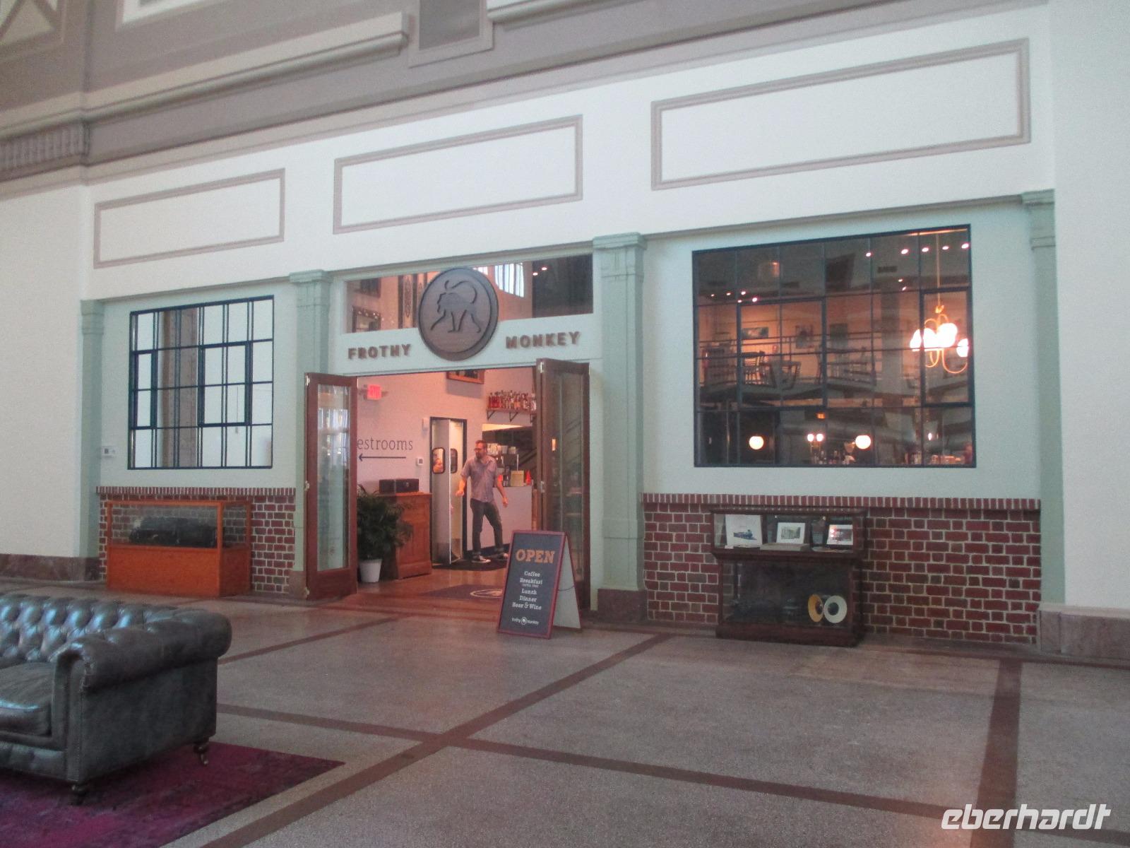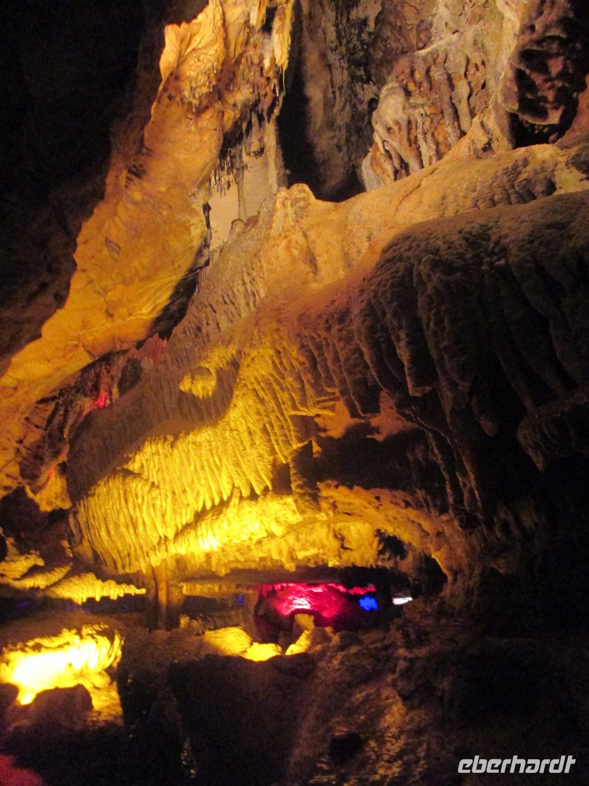 Leider ist heute der Luxus der letzten Tage vorbei und unser heutiger Startpunkt ist wieder 08:00 Uhr. Unser Weg führt uns in Richtung Lynchburg. Auf unserem Weg dahin sehen wir schon die ersten Ausläufer der Appalachen. Wir fahren nicht ganz zwei Stunden als wir unser Ziel, die Jack-Daniels-Destilliere. Da wir noch ein wenig Zeit bis zur Führung haben, schauen wir uns in der Eingangshalle um. Kurz nach 10 Uhr beginnt unsere Führung. Marguerite übersetzt für uns. Zunächst fahren wir mit dem Bus aus dem Gelände hinaus, ein Stück durch Lynchburg und steigen an einer andere Stelle des Firmengeländes wieder aus. Unser Guide erklärt uns, wie hier die Holzkohle hergestellt wird, sie zeigt uns die Wasserhöhle, aus der Herr Daniels das Wasser für die Whiskyproduktion und anschließend steht uns seine Statue für ein kleines Fotoshooting zur Verfügung. Nachdem uns der Guide noch sein Büro und den verhängnisvollen Tresor gezeigt hat, steigen wir wieder in den Bus ein. Nächster Stopp ist die Destillations-Halle, in der wir uns nur kurz aufhalten. Ein kleiner Film zeigt uns die Herstellung der Whisky-Fässer. Danach zeigt sie uns, wie die Flaschen etikettiert und verpackt werden. Zum Abschluss der Führung kommen wir noch in die große Lagerhalle. Die Führung endet im Werksverkauf, wo die Möglichkeit besteht, Whiskyflaschen käuflich zu erwerben. Wir machen noch ein kleines Fotoshooting auf einem überdimensionalen Schaukelstuhl und verbringen unsere Mittagspause in der Stadt Lynchburg. Diese ist aufgebaut wie eine kleine Westernstadt. Hier kann man zahlreiche Souvenirs, sei es verbunden mit der Jack-Daniels-Destillerie oder den Südstaaten, kaufen oder in den kleinen Cafés etwas essen oder trinken. Unser weiterer Weg führt uns nach Chattanooga. Kurz vor der Stadt müssen wir unsere Uhr um eine Stunde nach vorn stellen. Leo biegt auf den Parkplatz des Lookout Mountains ein und wir begeben uns zur Zugstation. Wir fahren mit der steilsten Zug, der Incline-Railway ca. 1,6 Kilometer hinauf. Steil deswegen weil die Steigung teilweise bis zu ca. 73% beträgt. Ziemlich steil und uns wird auch etwas mulmig, wenn wir nach hoch bzw. unten schauen. Oben angekommen, genießen wir einen Ausblick auf die weitläufige Landschaft und auf die Stadt Chattanooga. Natürlich nehmen wir den gleichen Weg hinab wie hinauf, also haben wir noch einmal ein tolles Zugerlebnis. Bevor wir in die Stadt zu unserem Hotel fahren, besuchen wir die mysteriösen Ruby-Wasserfälle. Mit einem Lift fahren wir in die Grotte hinab und spazieren rund 700 Fuß durch die Grotten und bestaunen dabei die angestrahlten Formationen. Einige erinnern an einen Elefantenfuß, Kartoffeln mit Steak, Kartoffelchips und auch Bacon. Wir kommen entlang der Hall of Dreams. Am Ende erreichen wir die legendären Ruby-Falls, ein Wasserfall in der Höhle mit einer enormen Höhe, auch der höchste Wasserfall in den Vereinigten Staaten von Amerika. Die Musik ertönt und der Wasserfall wird in bunten Farben angestrahlt. Ein schöner und seltener Anblick - da hat sich der Spaziergang untertage doch wirklich gelohnt. Zurück übertage wartet Leo bereits auf uns und bringt uns in die Stadt Chatanooga, in der wir heute in einem besonderen Hotel übernachten: in einem umgebauten Bahnhof. Nachdem wir unsere Zimmer im alten Bahnhofsgelände bezogen haben, nutzen wir noch die Zeit, um ein paar Fotos im Schwimmbad und von den ausgestellten Zugwagons zu schießen. Selbst in den Wagons sind Hotelzimmer untergebracht. Das alte Bahnhofshauptgebäude ist umgebaut und beherbergt neben der Rezeption auch das Restaurant „Frothy Monkey". Das erste Mal auf der gesamten Reise dürfen wir draußen sitzen. Natürlich nehmen wir das Angebot an, entziehen uns der typisch-amerikanischen Klimaanlage und genießen die laue Sommernacht in Chatanooga. Wir dürfen a-la-carte bestellen und werden nicht enttäuscht: das servierte Essen ist eines der besten auf der gesamten Rundreise.