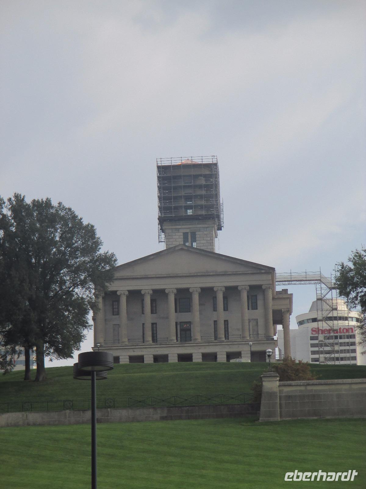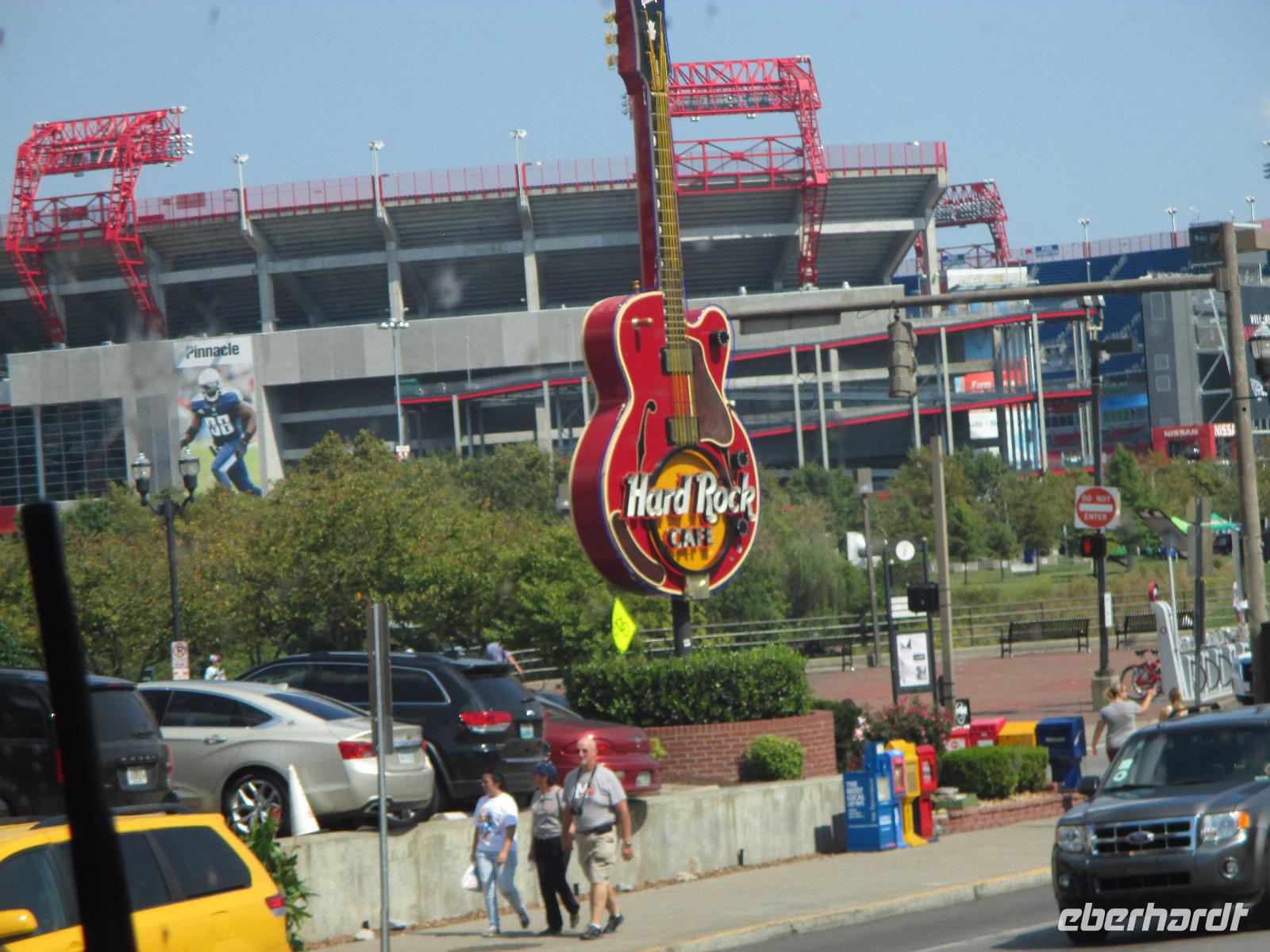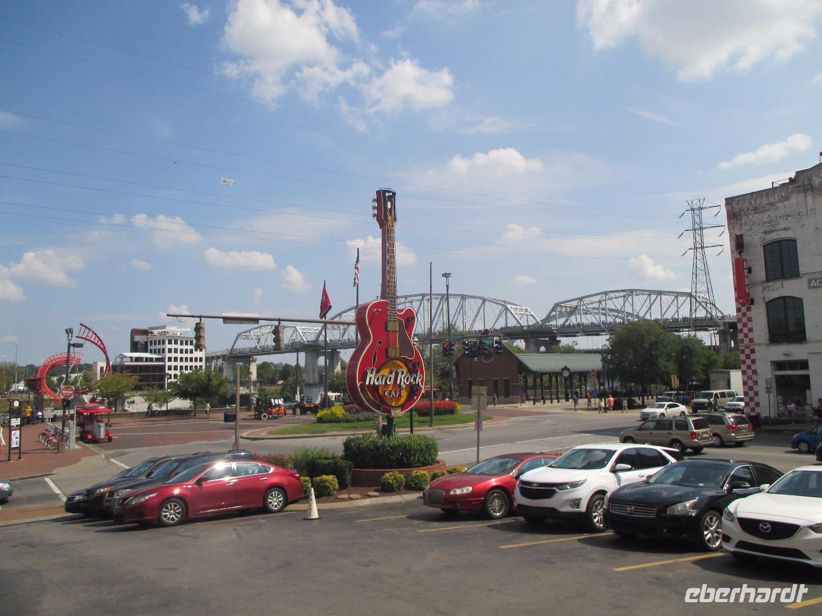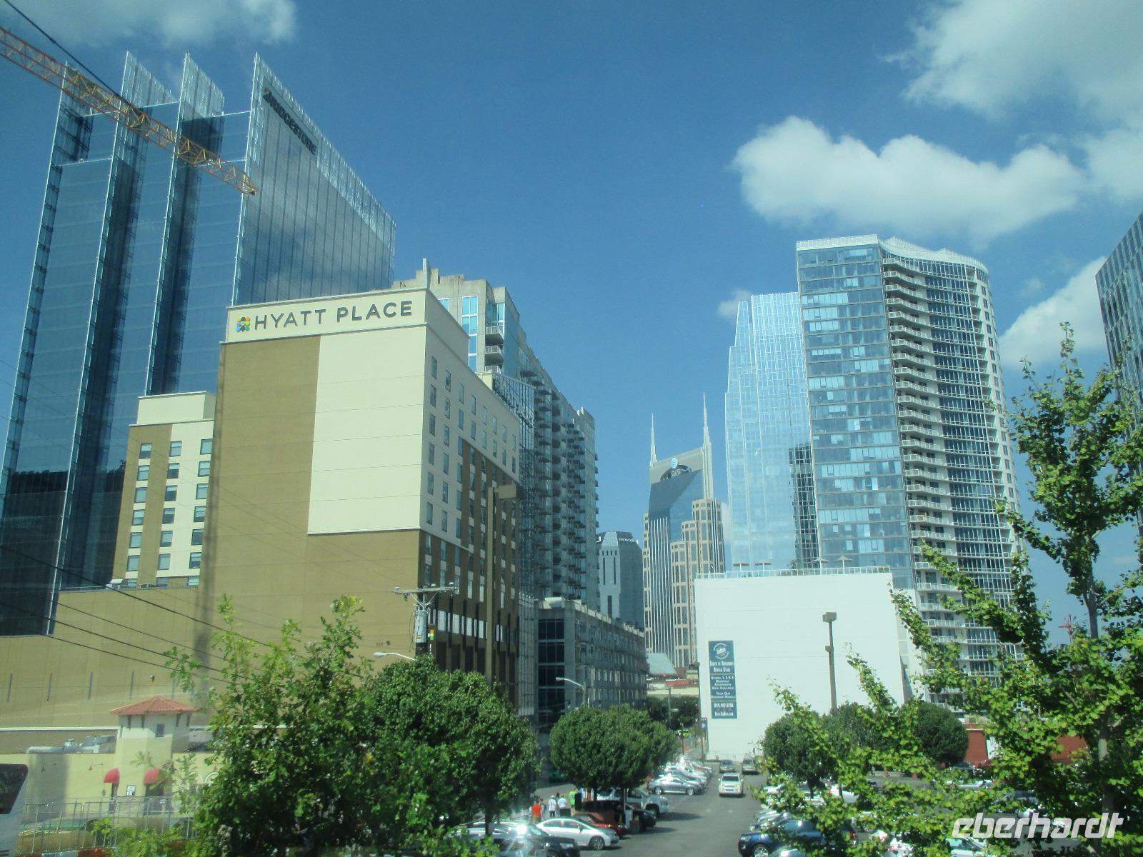 Wieder draußen im Bus setzen Marguerite und Leo unsere Stadtrundfahrt fort. Sie zeigen uns einen Tempel, der hier in der Stadt aufgestellt ist und halten in dem Viertel, indem zahlreiche Musiklabels ihre Tonstudios haben. Wir steigen hier auch aus und haben Zeit, das ein oder andere Gebäude zu fotografieren. Natürlich fahren wir danach auch nochmal durch die Stadt, kommen am Citycenter, nochmals am Stadion und am Fort vorbei, an dem die Geschichte von Nashville ihren Anfang genommen hat. Zum Schluss halten wir noch am Kapitol, welches wir uns jedoch irgendwie größer vorgestellt haben. Marguierte gibt uns im Anschluss Freizeit, um ins den Schuhgeschäften umzusehen, ein Bierchen zu trinken oder einfach nur die Stadt genießen. Es ist viel los hier auf den Straßen und doch ist es schön, es hier einfach mitzuerleben, da wir uns alle die Stadt irgendwie anders vorgestellt haben, nicht so schön, wie sie tatsächlich ist. Nach rund anderthalb Stunden treffen wir uns wieder und gehen gemeinsam in eine Kneipe, um ein Bierchen mit guter Countrymusik zu genießen. Eine sehr gute Idee von unserer Reisleiterin. Wichtig ist immer, nehmt die ID mit, sonst gibt es kein Bier. Die Musik ist so gut, dass sogar ein Ehepaar unserer Reisegruppe ein, zwei Tänzchen wagt und sich dabei verliebt in die Augen blickt. Unser Abendessen haben wir im oberen Stockwerk eines kleinen gemütlichen und vor allem ruhigen Restaurant. So ruhig, wie wir es in den letzten Tagen nicht erlebt haben. Danach bringt uns Leo zu unserem Hotel, welches doch außerhalb der Stadt liegt. Deshalb war die heutige Tagesplanung von Marguerite und Leo, so lange wie möglich in der Stadt zu bleiben, sensationell.