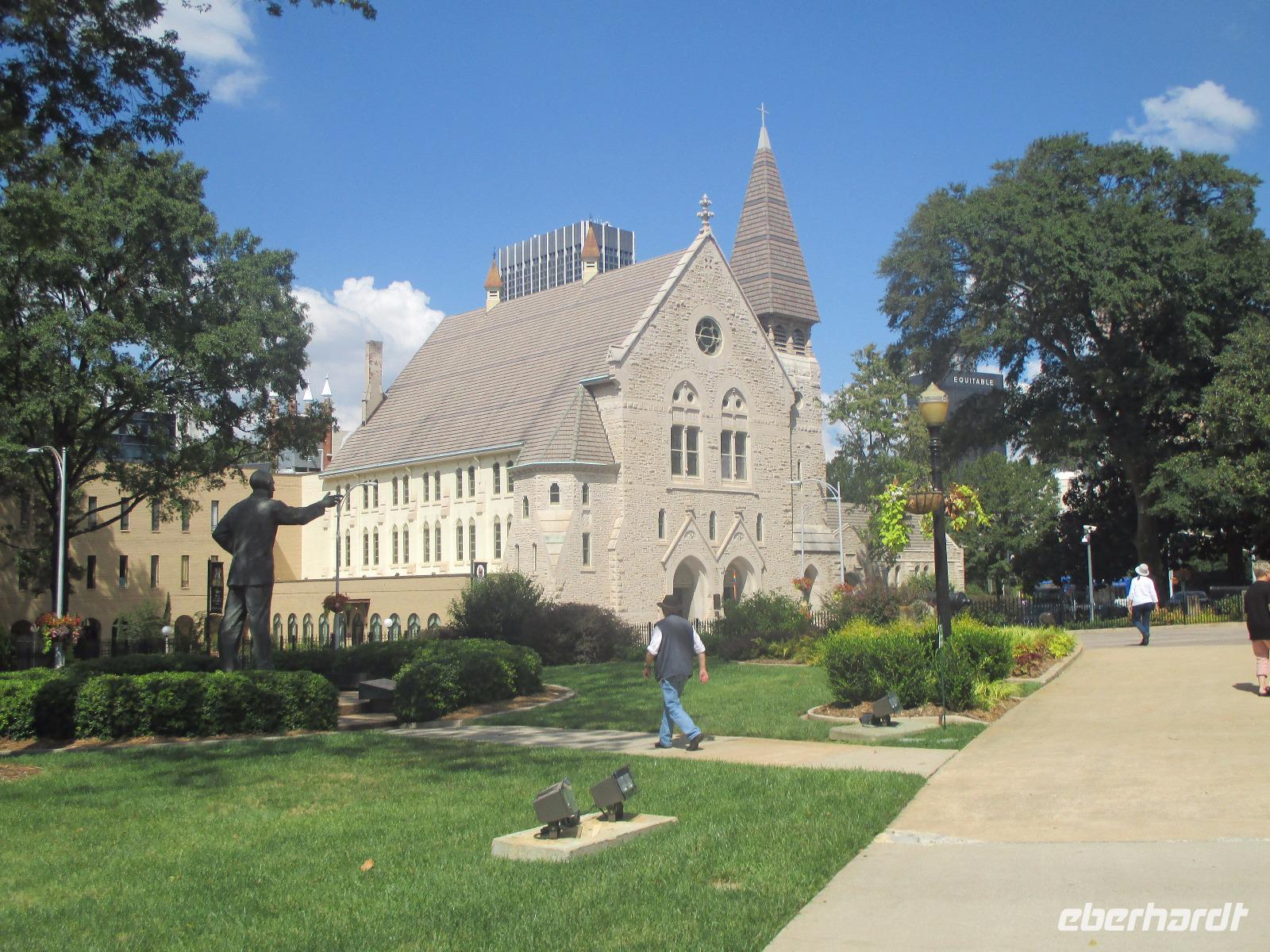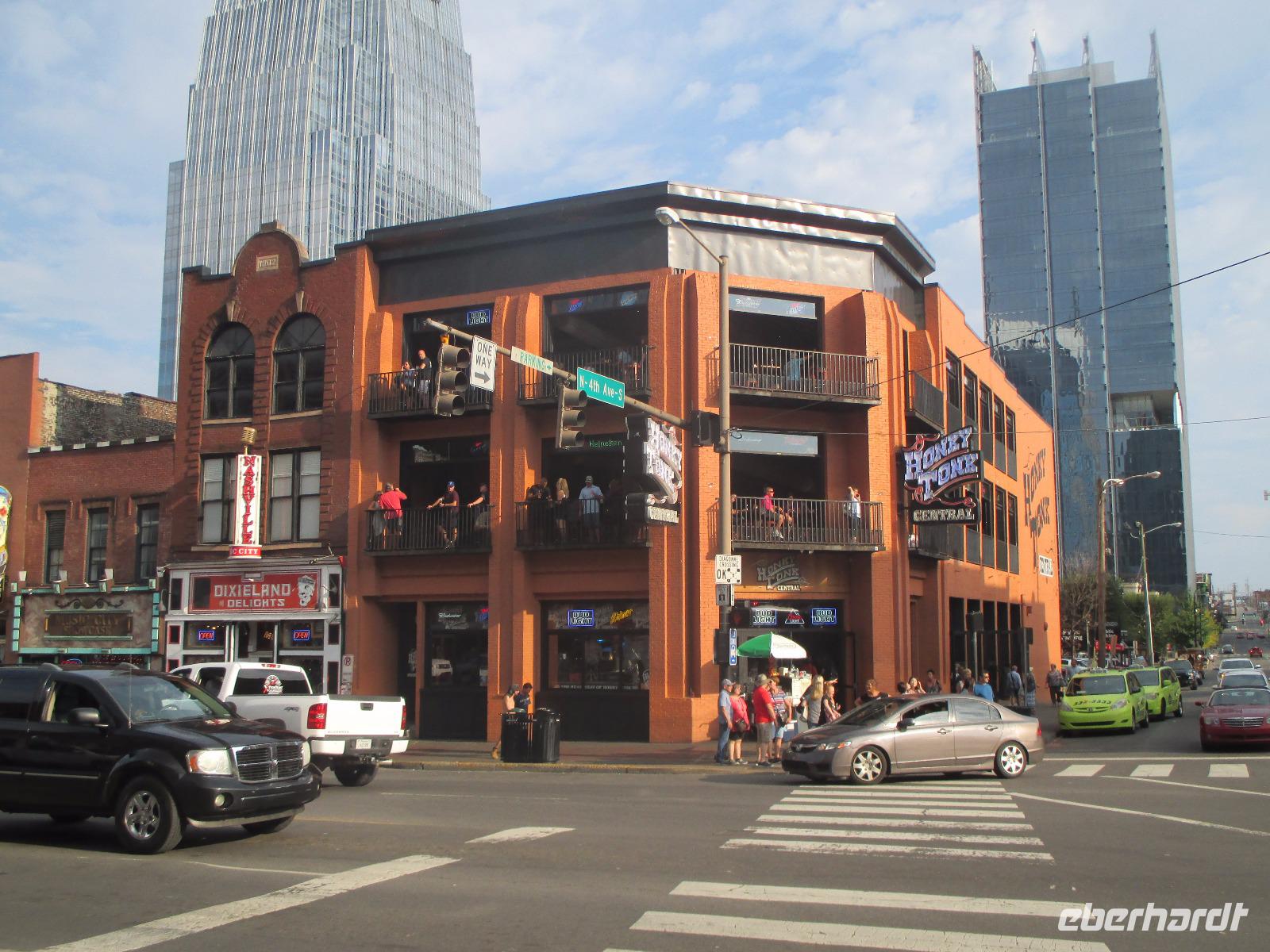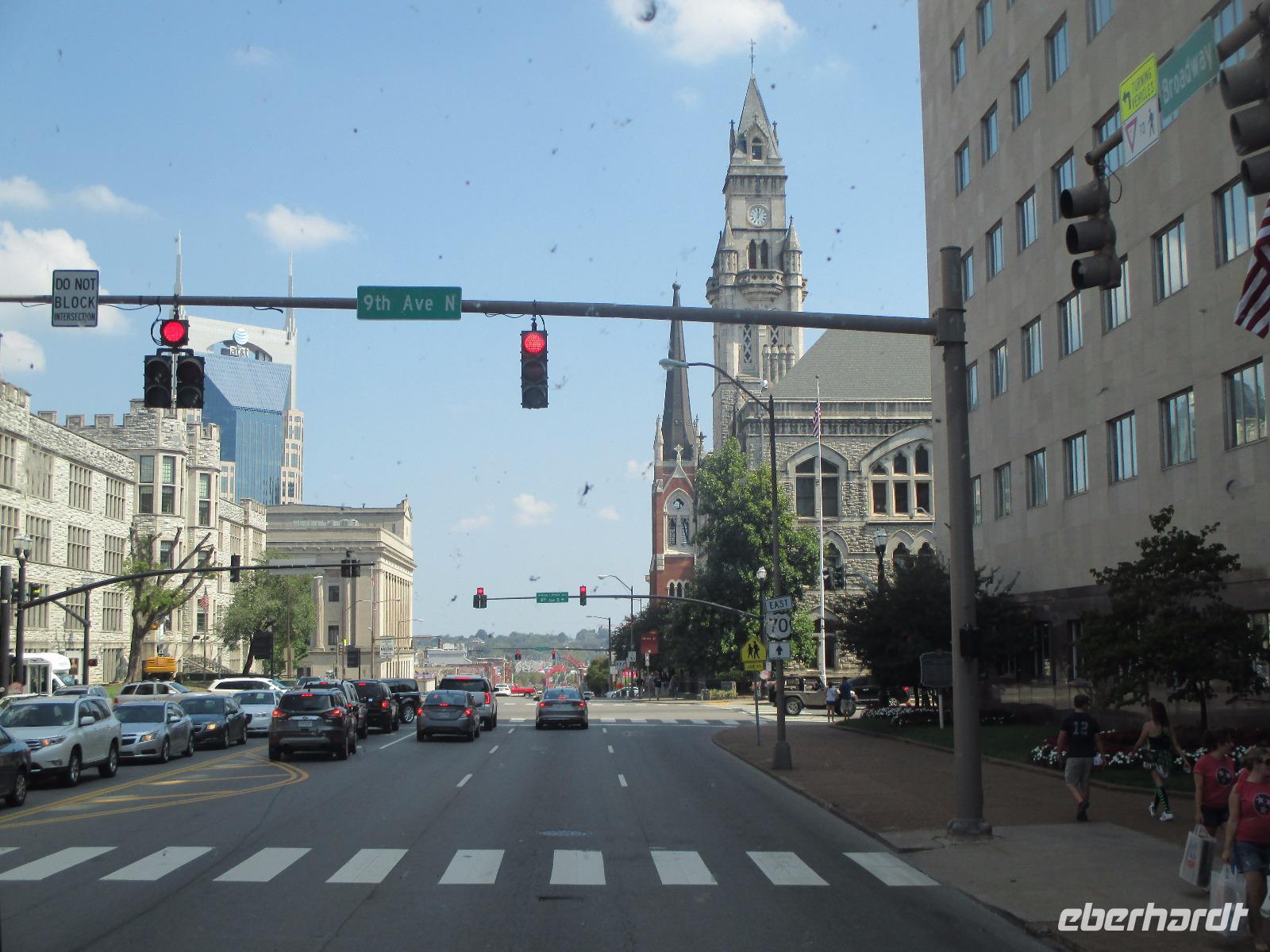 Wieder draußen im Bus setzen Marguerite und Leo unsere Stadtrundfahrt fort. Sie zeigen uns einen Tempel, der hier in der Stadt aufgestellt ist und halten in dem Viertel, indem zahlreiche Musiklabels ihre Tonstudios haben. Wir steigen hier auch aus und haben Zeit, das ein oder andere Gebäude zu fotografieren. Natürlich fahren wir danach auch nochmal durch die Stadt, kommen am Citycenter, nochmals am Stadion und am Fort vorbei, an dem die Geschichte von Nashville ihren Anfang genommen hat. Zum Schluss halten wir noch am Kapitol, welches wir uns jedoch irgendwie größer vorgestellt haben. Marguierte gibt uns im Anschluss Freizeit, um ins den Schuhgeschäften umzusehen, ein Bierchen zu trinken oder einfach nur die Stadt genießen. Es ist viel los hier auf den Straßen und doch ist es schön, es hier einfach mitzuerleben, da wir uns alle die Stadt irgendwie anders vorgestellt haben, nicht so schön, wie sie tatsächlich ist. Nach rund anderthalb Stunden treffen wir uns wieder und gehen gemeinsam in eine Kneipe, um ein Bierchen mit guter Countrymusik zu genießen. Eine sehr gute Idee von unserer Reisleiterin. Wichtig ist immer, nehmt die ID mit, sonst gibt es kein Bier. Die Musik ist so gut, dass sogar ein Ehepaar unserer Reisegruppe ein, zwei Tänzchen wagt und sich dabei verliebt in die Augen blickt. Unser Abendessen haben wir im oberen Stockwerk eines kleinen gemütlichen und vor allem ruhigen Restaurant. So ruhig, wie wir es in den letzten Tagen nicht erlebt haben. Danach bringt uns Leo zu unserem Hotel, welches doch außerhalb der Stadt liegt. Deshalb war die heutige Tagesplanung von Marguerite und Leo, so lange wie möglich in der Stadt zu bleiben, sensationell.