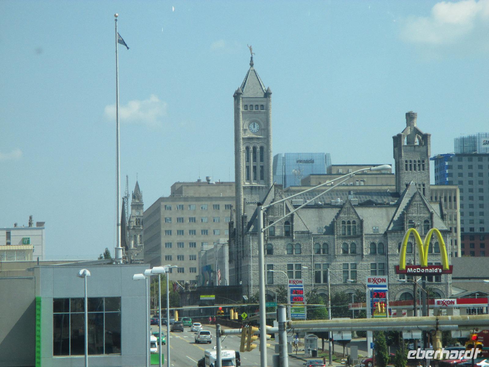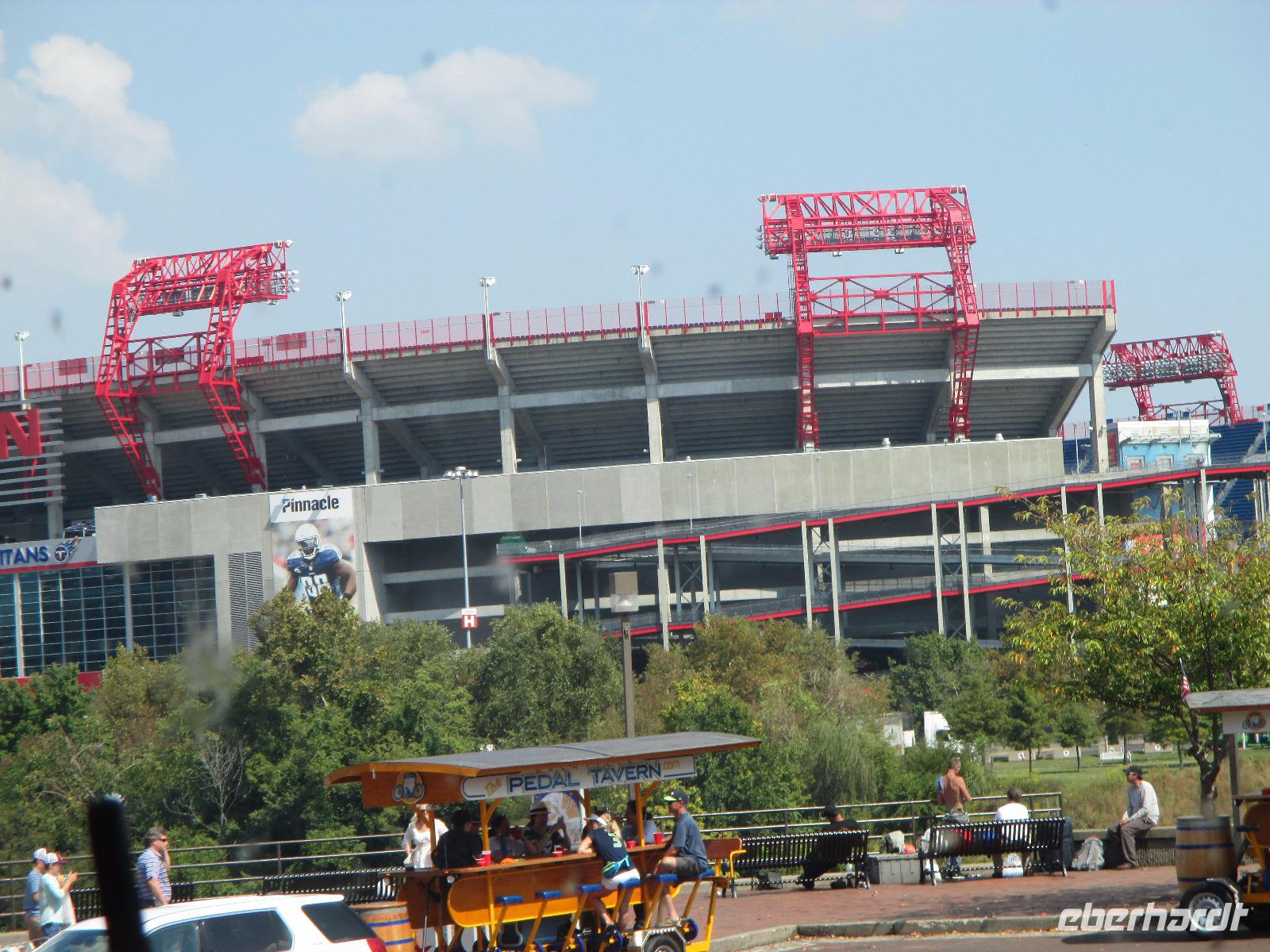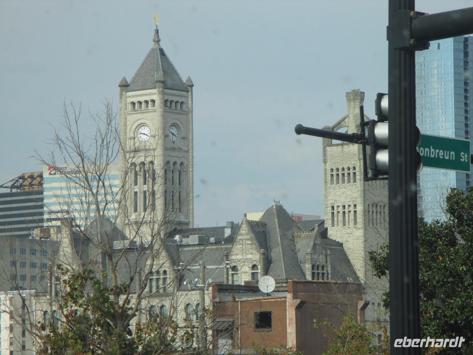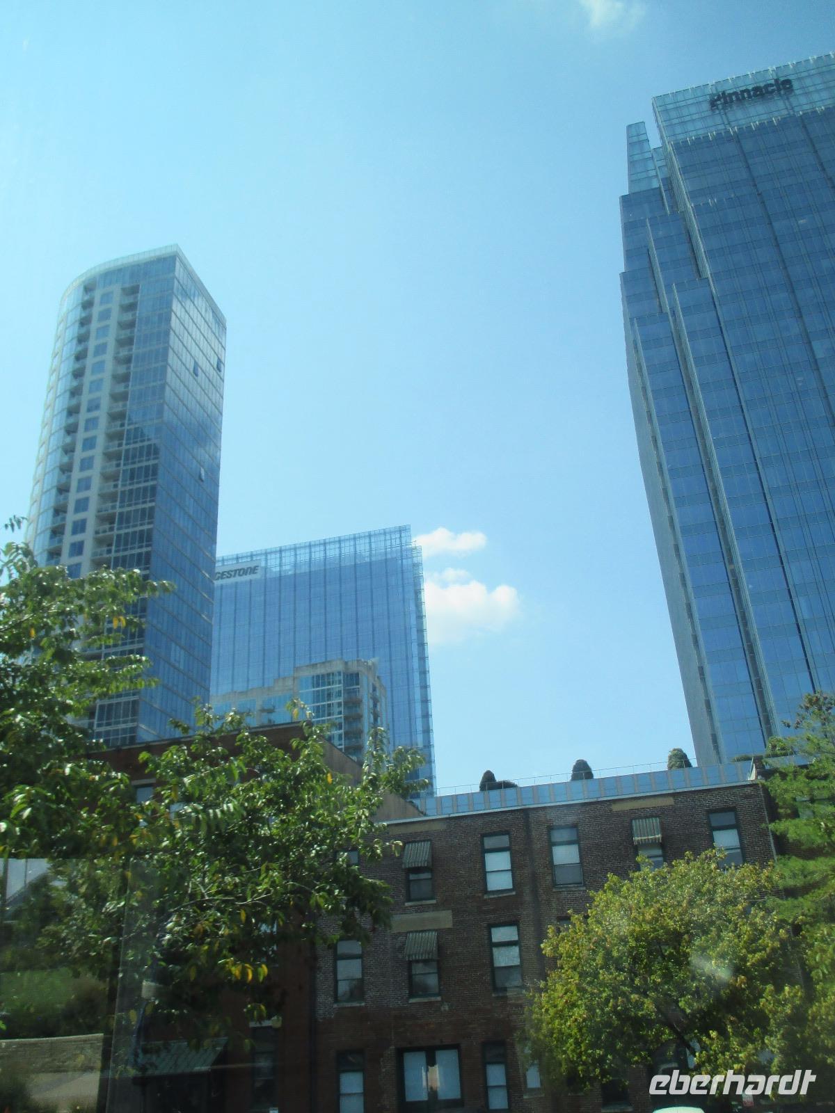 Wieder draußen im Bus setzen Marguerite und Leo unsere Stadtrundfahrt fort. Sie zeigen uns einen Tempel, der hier in der Stadt aufgestellt ist und halten in dem Viertel, indem zahlreiche Musiklabels ihre Tonstudios haben. Wir steigen hier auch aus und haben Zeit, das ein oder andere Gebäude zu fotografieren. Natürlich fahren wir danach auch nochmal durch die Stadt, kommen am Citycenter, nochmals am Stadion und am Fort vorbei, an dem die Geschichte von Nashville ihren Anfang genommen hat. Zum Schluss halten wir noch am Kapitol, welches wir uns jedoch irgendwie größer vorgestellt haben. Marguierte gibt uns im Anschluss Freizeit, um ins den Schuhgeschäften umzusehen, ein Bierchen zu trinken oder einfach nur die Stadt genießen. Es ist viel los hier auf den Straßen und doch ist es schön, es hier einfach mitzuerleben, da wir uns alle die Stadt irgendwie anders vorgestellt haben, nicht so schön, wie sie tatsächlich ist. Nach rund anderthalb Stunden treffen wir uns wieder und gehen gemeinsam in eine Kneipe, um ein Bierchen mit guter Countrymusik zu genießen. Eine sehr gute Idee von unserer Reisleiterin. Wichtig ist immer, nehmt die ID mit, sonst gibt es kein Bier. Die Musik ist so gut, dass sogar ein Ehepaar unserer Reisegruppe ein, zwei Tänzchen wagt und sich dabei verliebt in die Augen blickt. Unser Abendessen haben wir im oberen Stockwerk eines kleinen gemütlichen und vor allem ruhigen Restaurant. So ruhig, wie wir es in den letzten Tagen nicht erlebt haben. Danach bringt uns Leo zu unserem Hotel, welches doch außerhalb der Stadt liegt. Deshalb war die heutige Tagesplanung von Marguerite und Leo, so lange wie möglich in der Stadt zu bleiben, sensationell.