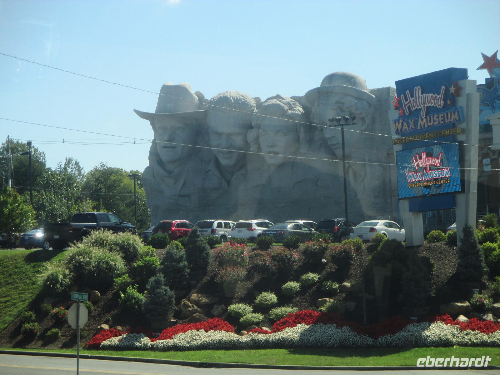 Wir verlassen Memphis in Richtung Nashville, der Hauptstadt des Bundesstaates Tennesee. Am Mittag erreichen wir die Hauptstadt der Countrymusik und sehen schon von weiten die Hochhäuser der Stadt. Wohltuend dabei ist, dass der Himmel blau ist und die Sonne sich strahlend vom Himmel zeigt. Leo und Marguerite fahren mit uns in die Innenstadt und dabei sehen wir schon das Gebäude der amerikanischen Telefongesellschaft ATM, welches aussieht wie das Batman-Gebäude. Wir kommend dabei auch am riesigen Football-Stadion vorbei, welches rund 69.000 Besucher fasst und an der bekannten Kneipenmeile Broadway. Unsere Mittagspause verbringen wir an der bekannten Country Music Hall of Fame, wo es im Inneren kleinere Restaurants gibt. Wer möchte, kann auch auf den Broadway spazieren gehen, was auch einige Gäste der Reisegruppe tun. Aus jeder Kneipe klingt andere, coole Country-Musik heraus und es ist auch zur Mittagszeit schon einige Leute zum Tanzen aufgelegt. Die Stimmung ist gut und aufgeheitert. Nach unserer Pause unternehmen wir mittels deutschsprachige Audioguides auf in die Geschichte der Country Musik, die hier auf 3 Etagen ausgestellt ist. Viele Kleidungsstücke amerikanischer Countrystars sind hier ausgestellt und der Erzähler nimmt uns mit auf eine Zeitreise in die amerikanische Musik. Für viele meiner Reisegäste in diese Reise auch eine Reise in ihre Jugend. Sie kennen viele der hier dargestellten Musiker, die mir beispielsweise nicht viel sagen. Am Ende des Rundganges kommen wir noch in die Country Music Hall of Fame, wo die amerikanischen Superstars mittels eines Gesichtspotraits ausgestellt und damit geehrt sind.